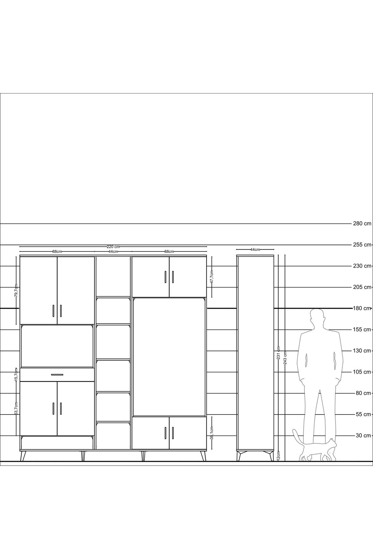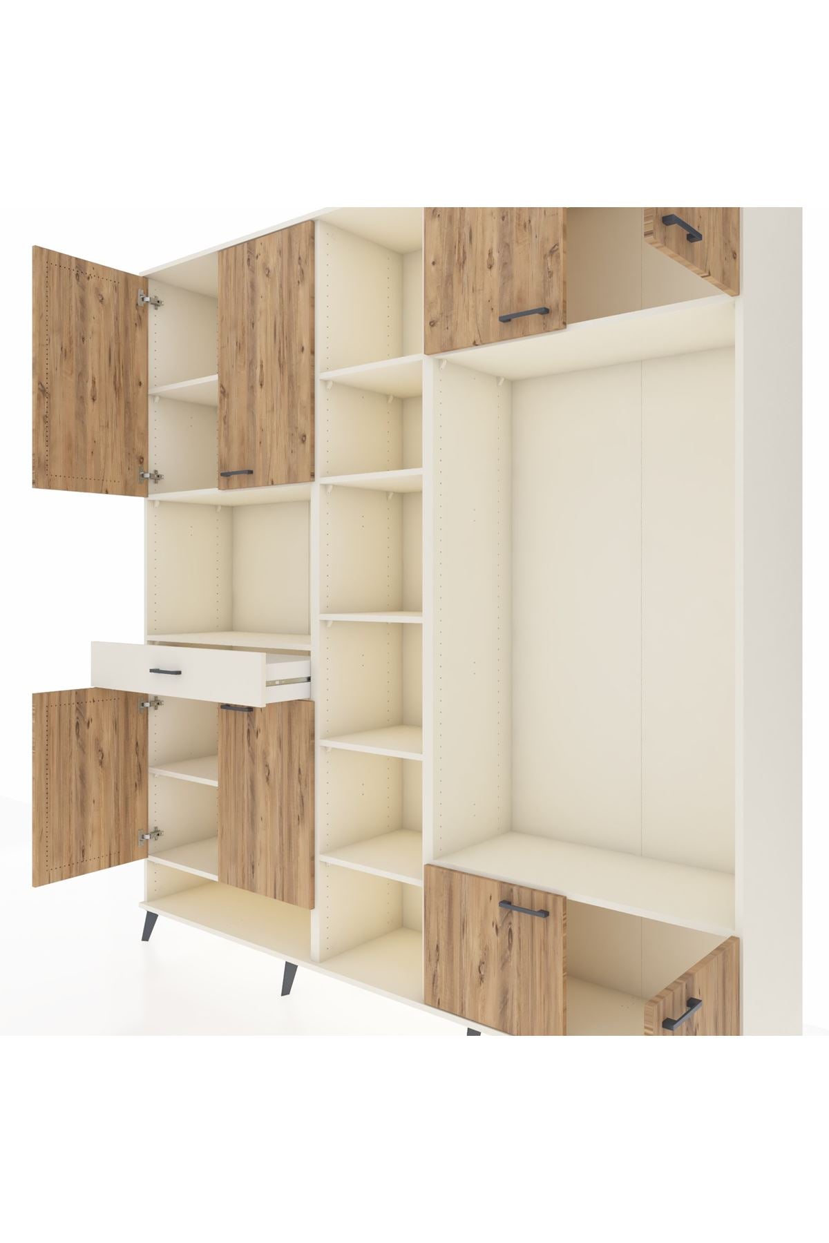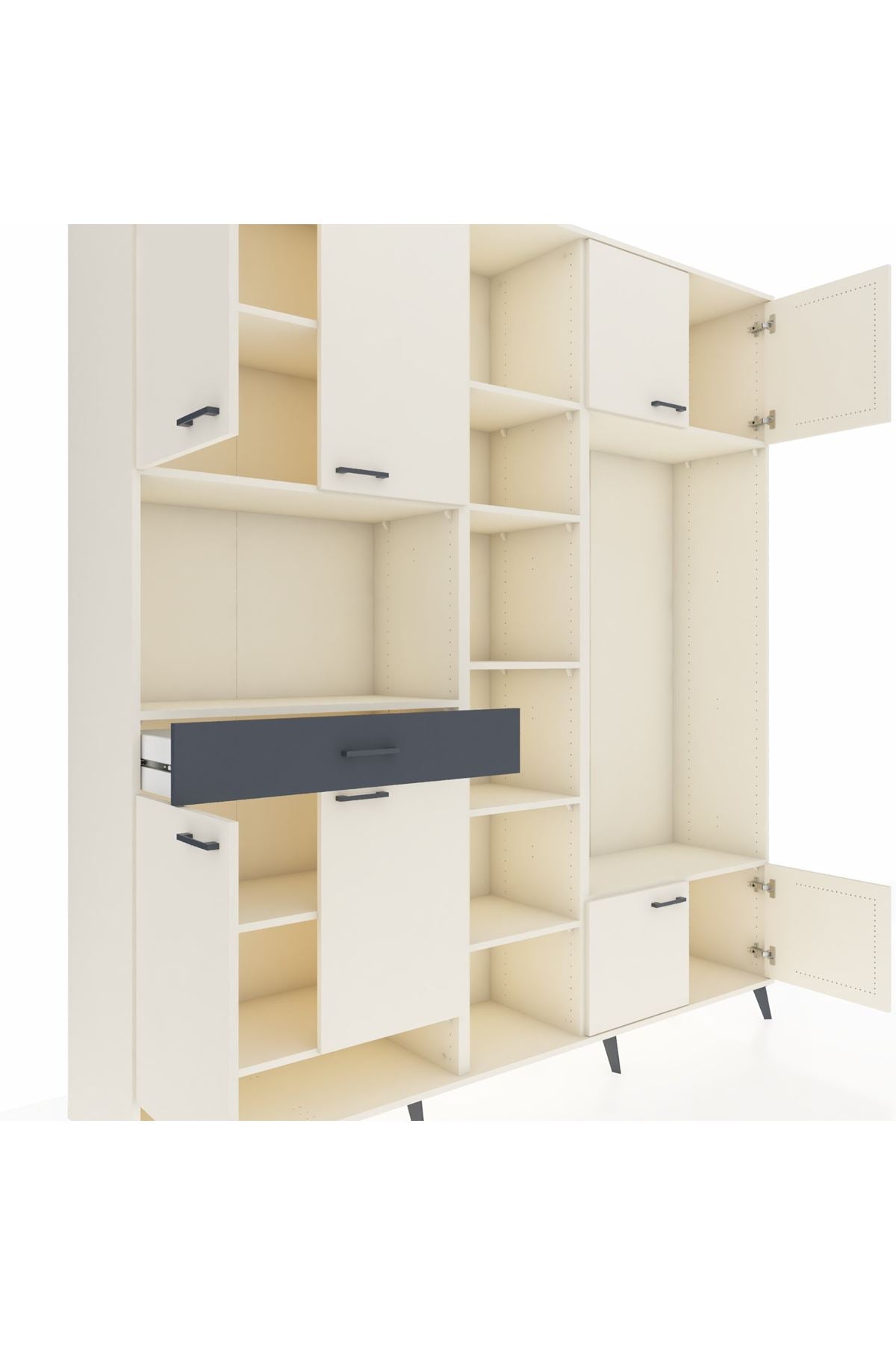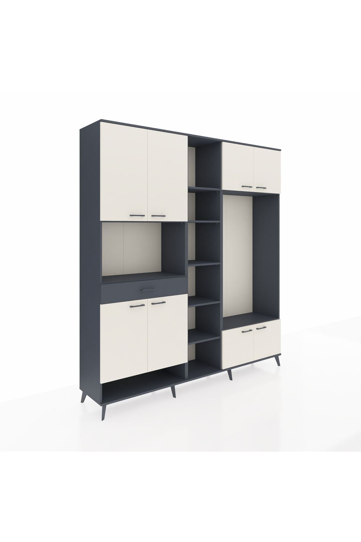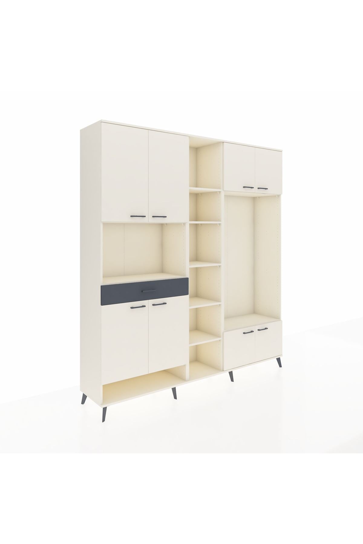 📌 Hyperion Dolap 12 Raflı Tek Çekmeceli 8 Kapaklı 220x44x243