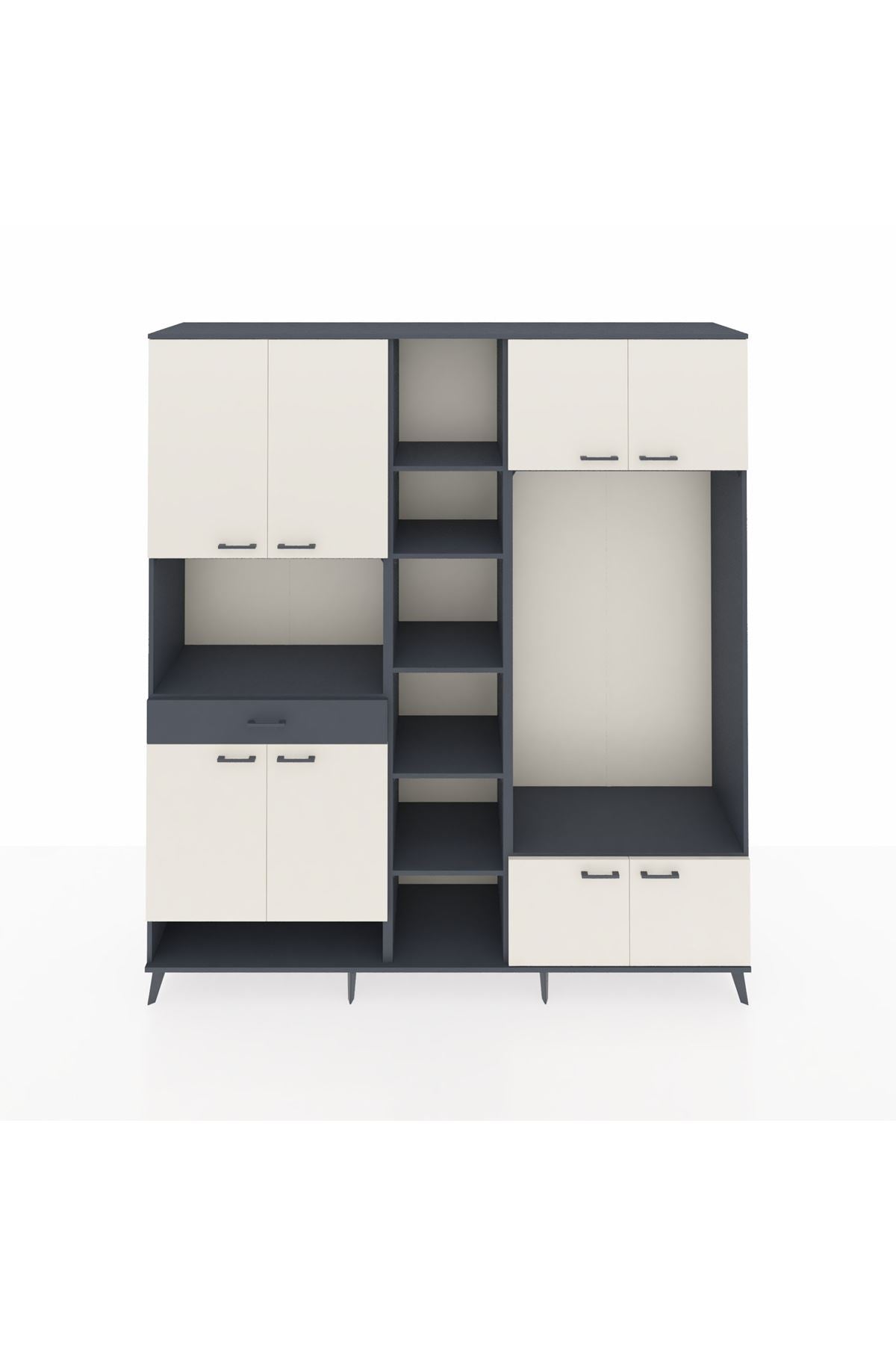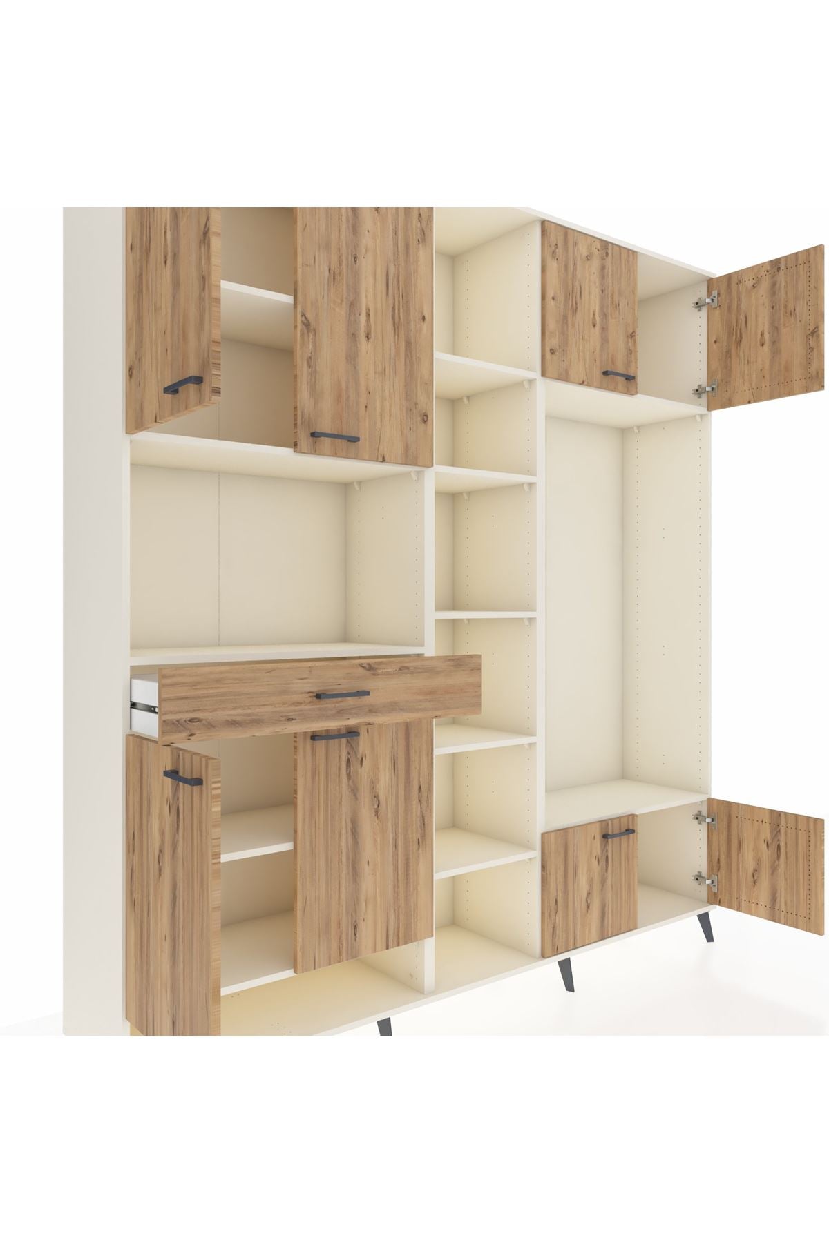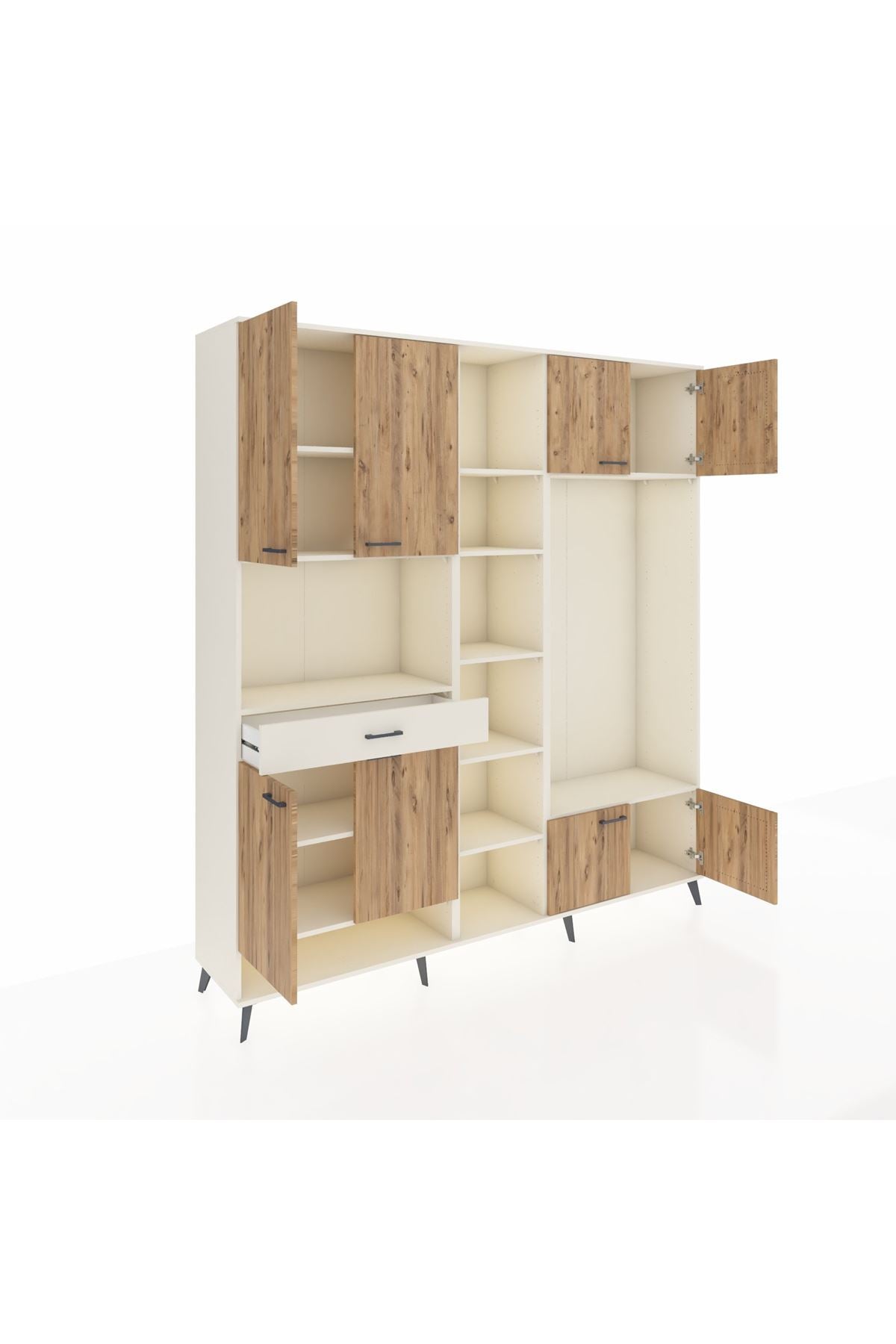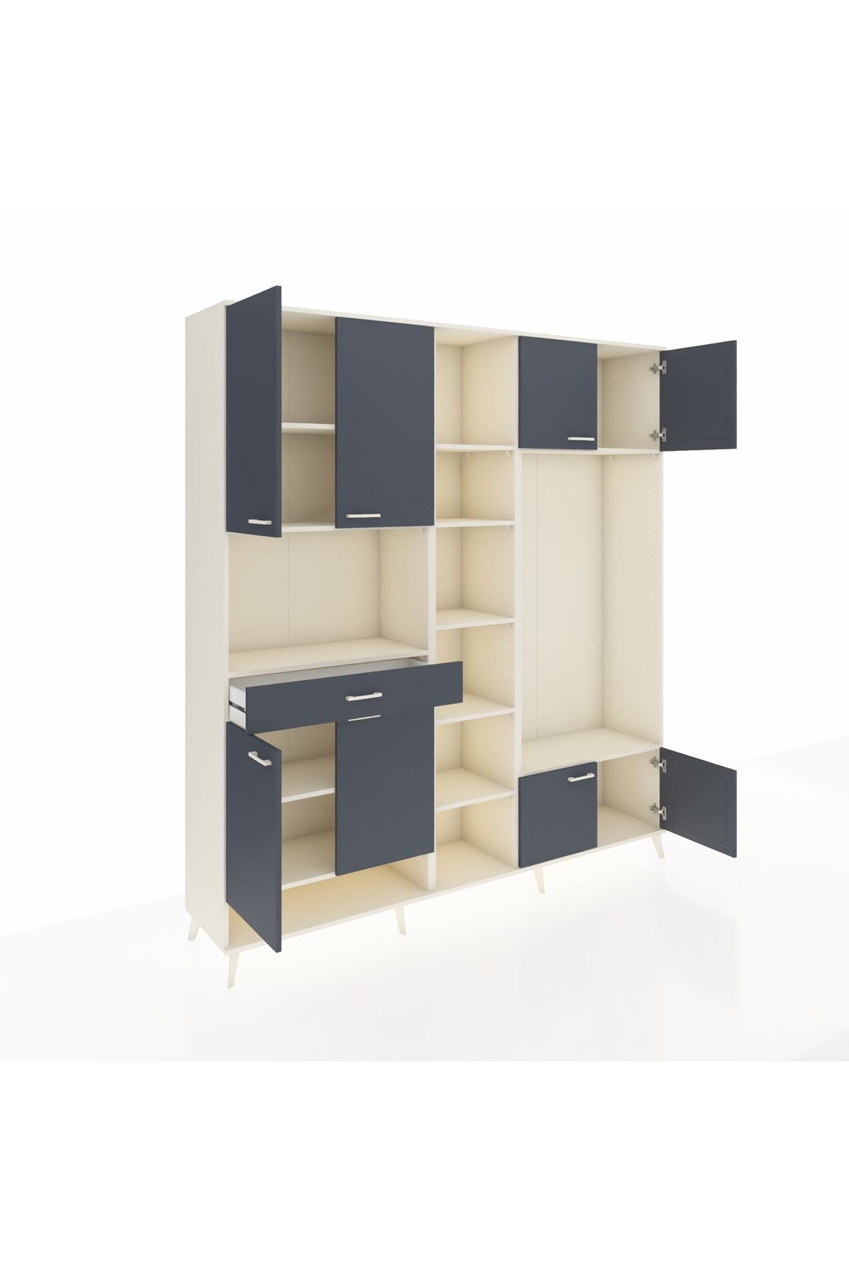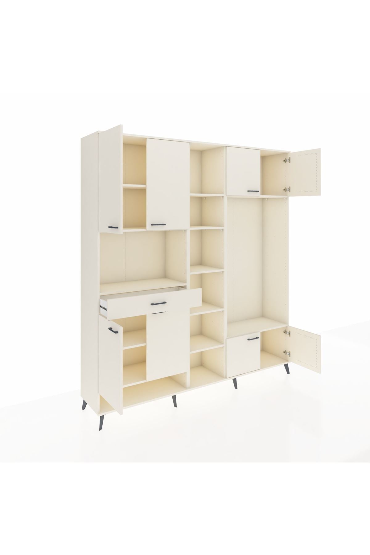 📌 Hyperion Dolap 12 Raflı Tek Çekmeceli 8 Kapaklı 220x44x243