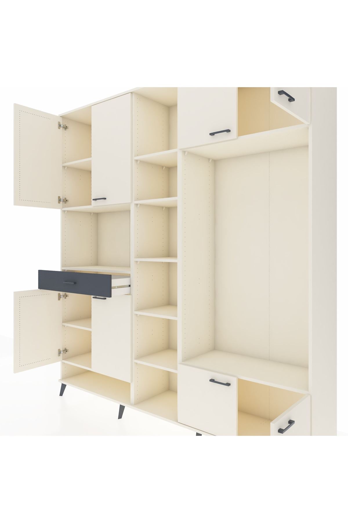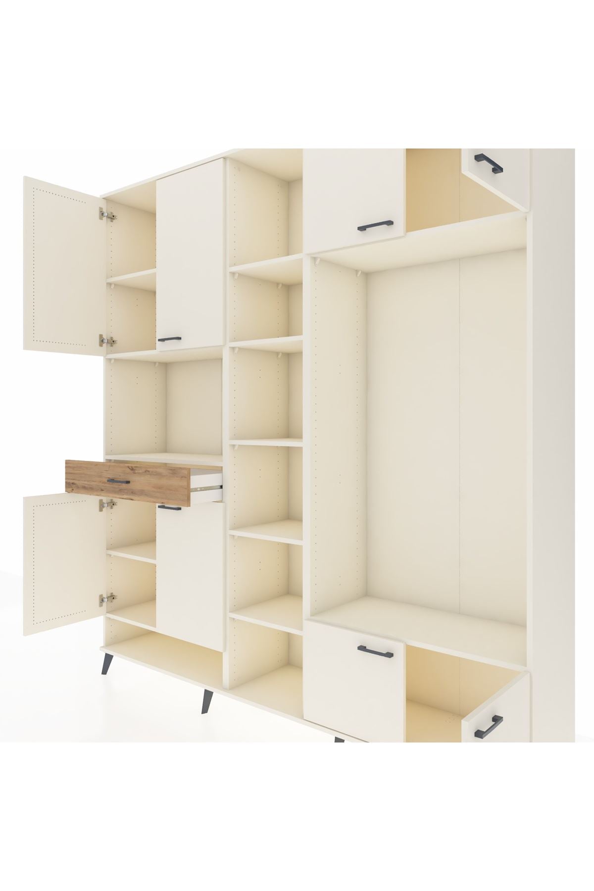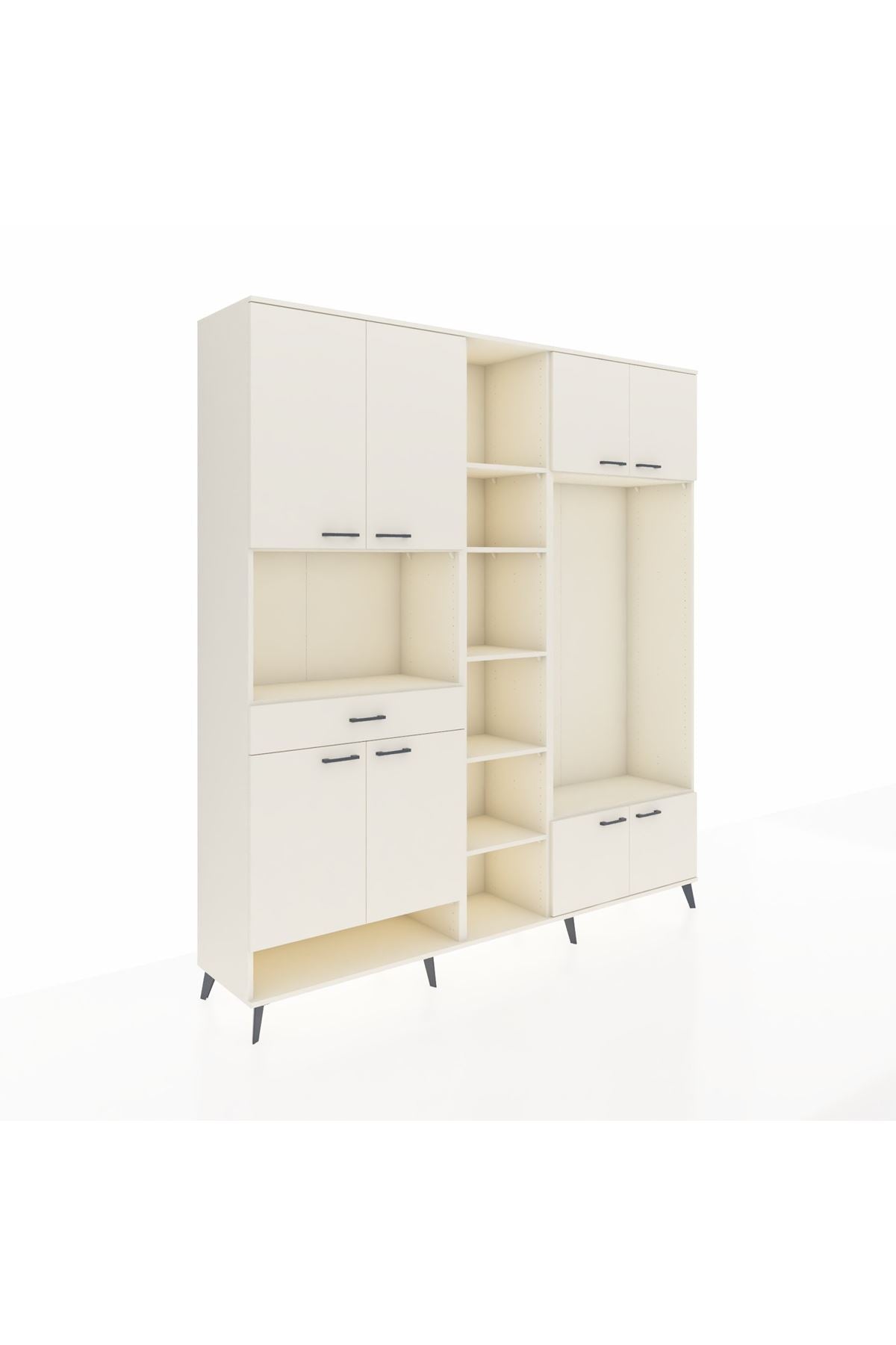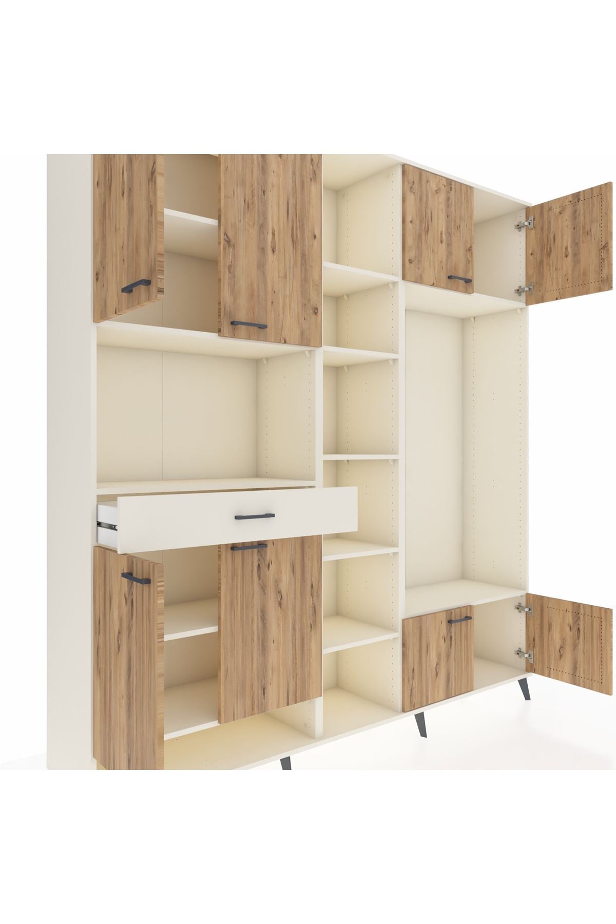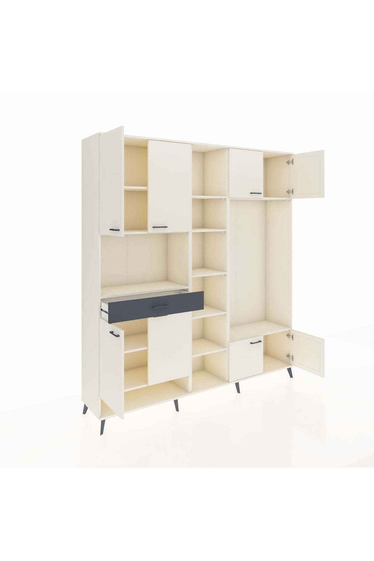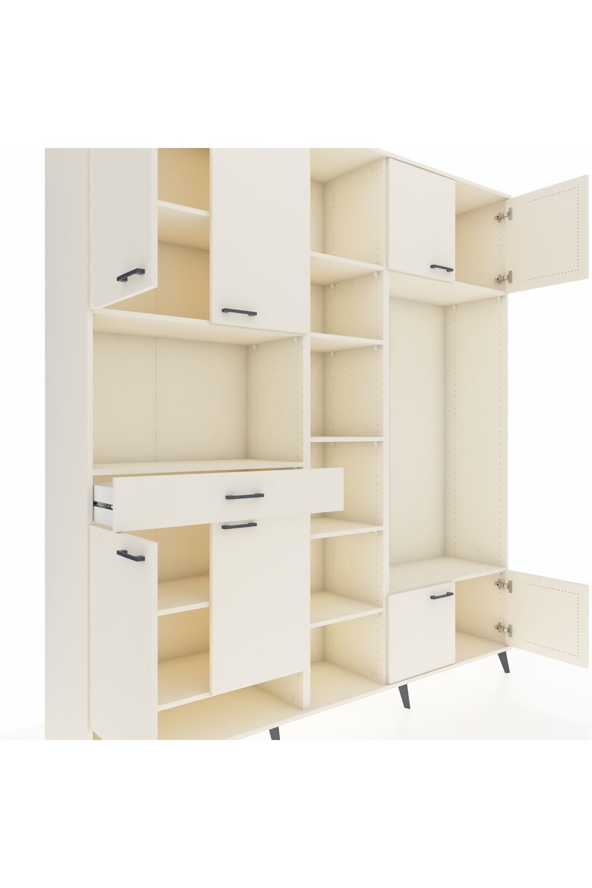 📌 Hyperion Dolap 12 Raflı Tek Çekmeceli 8 Kapaklı 220x44x243