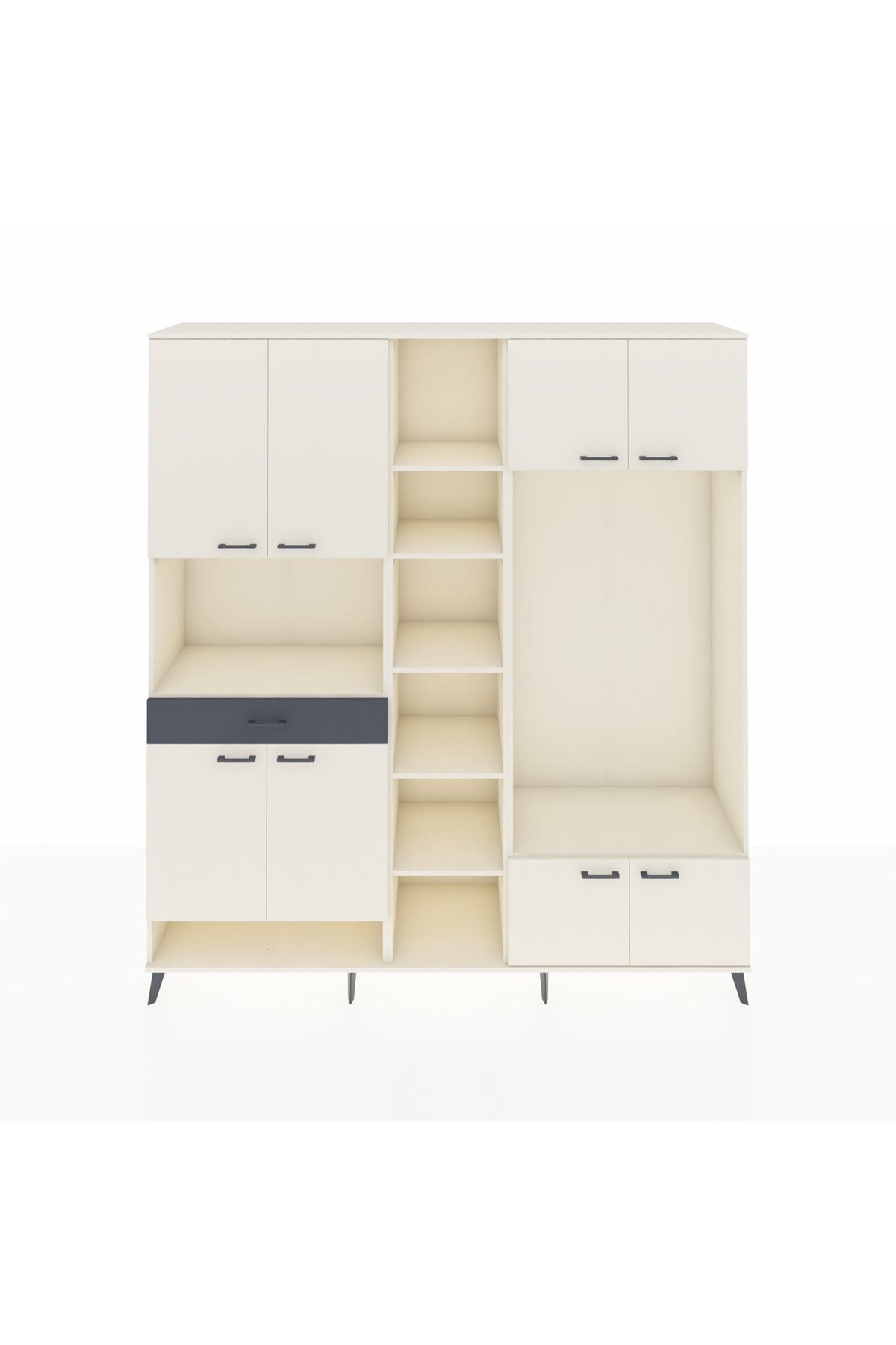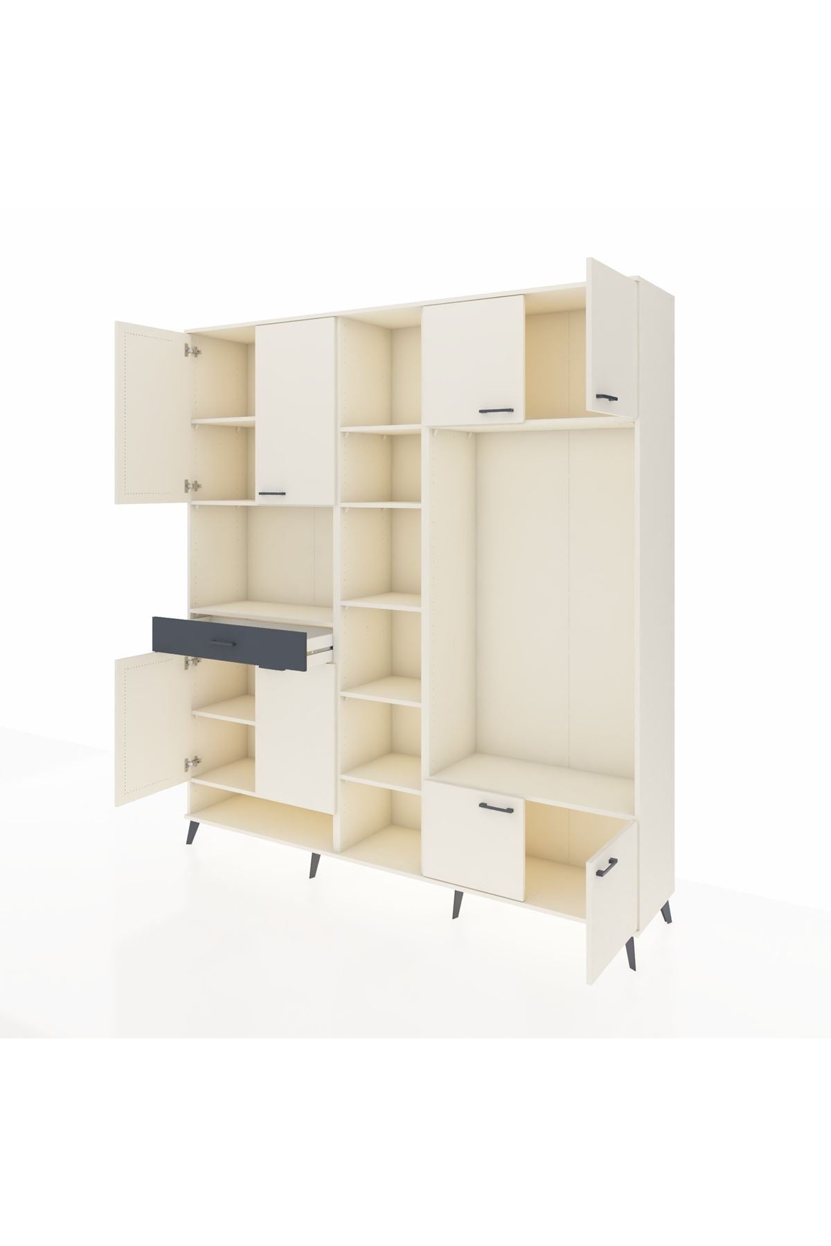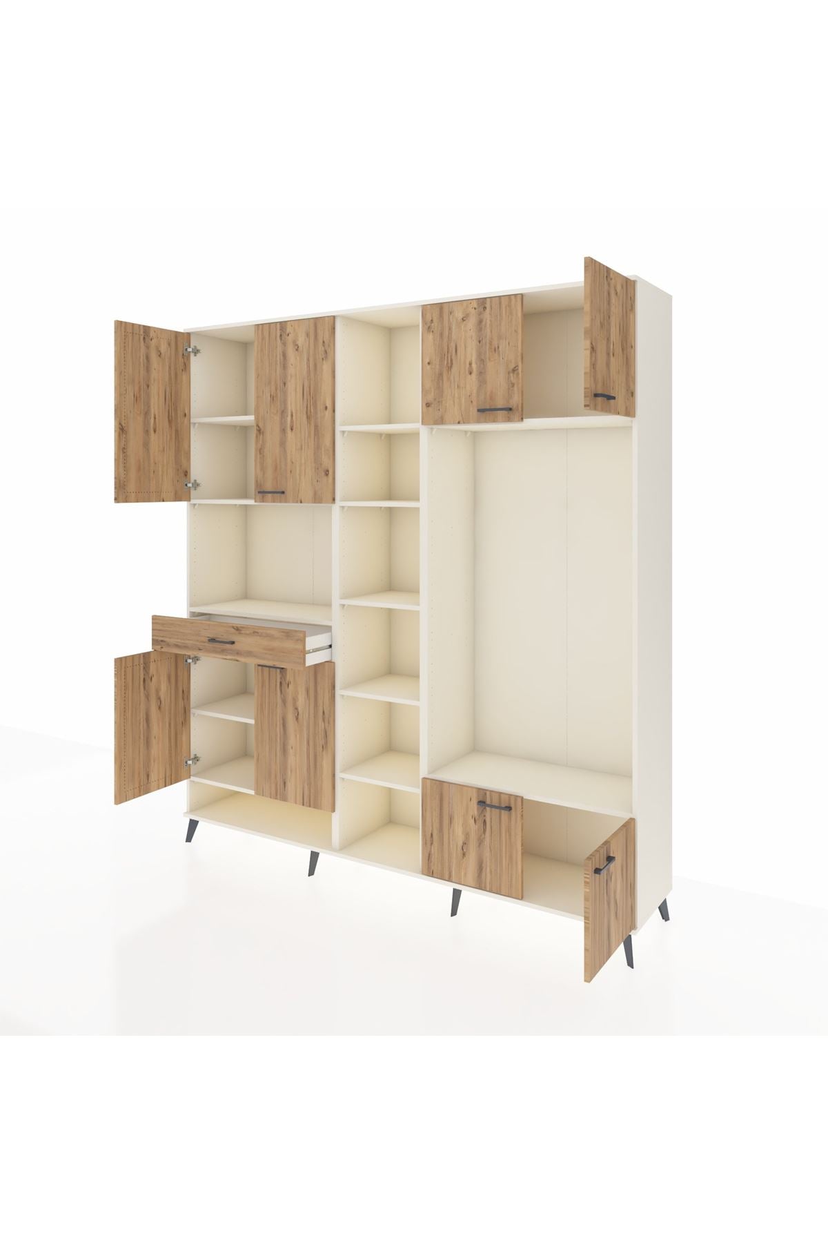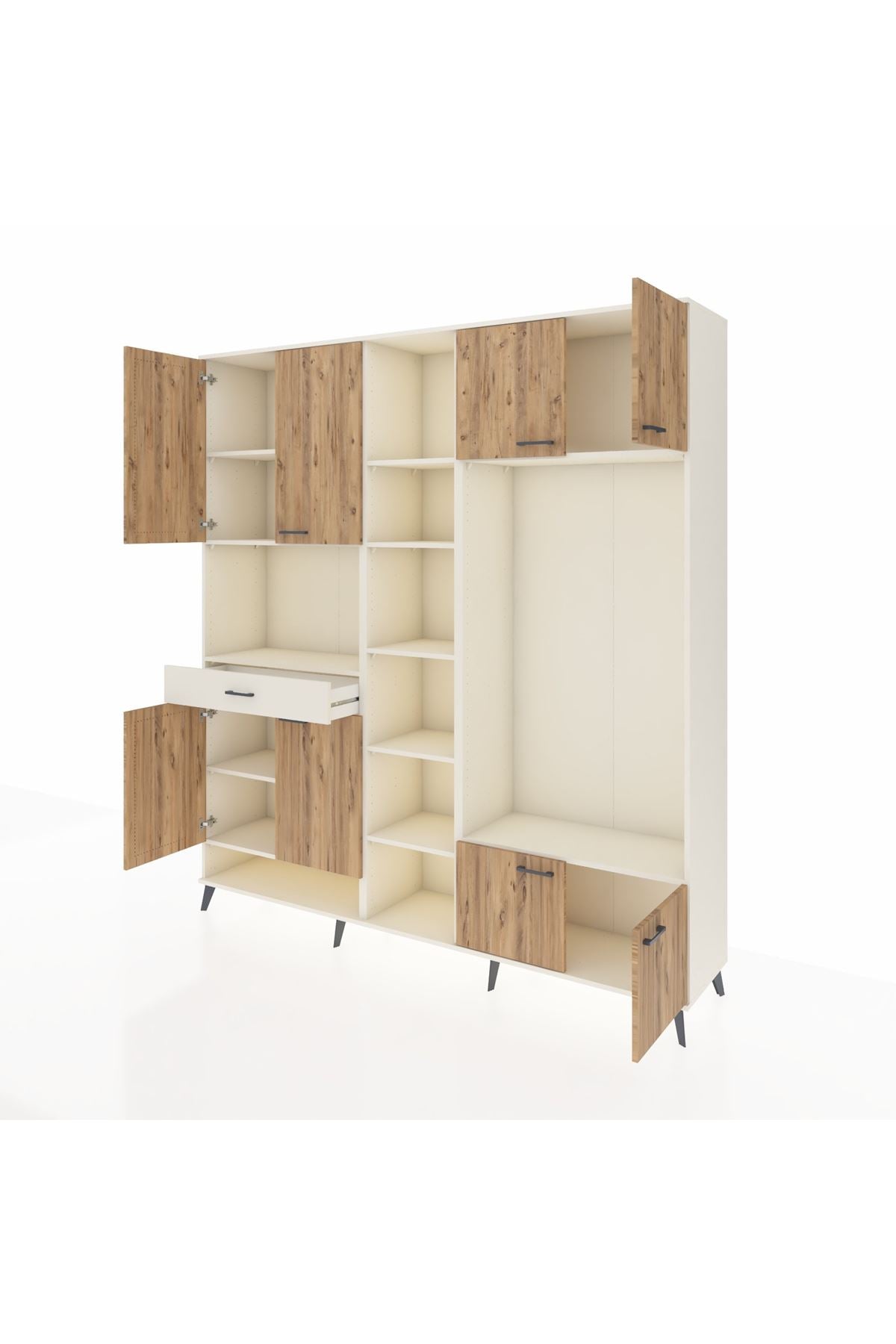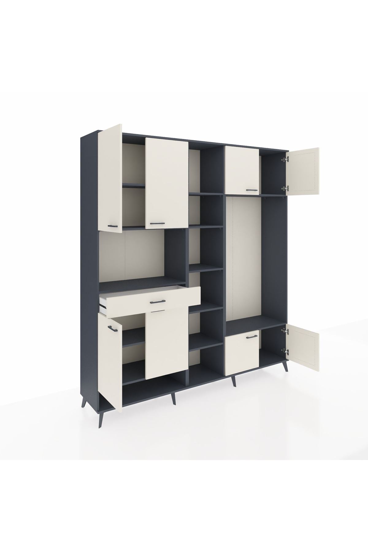 📌 Hyperion Dolap 12 Raflı Tek Çekmeceli 8 Kapaklı 220x44x243
