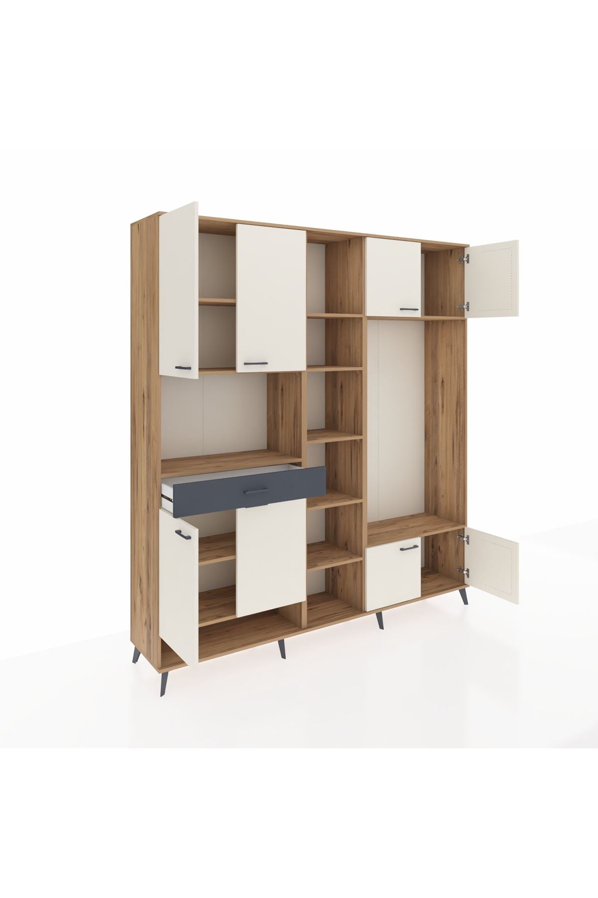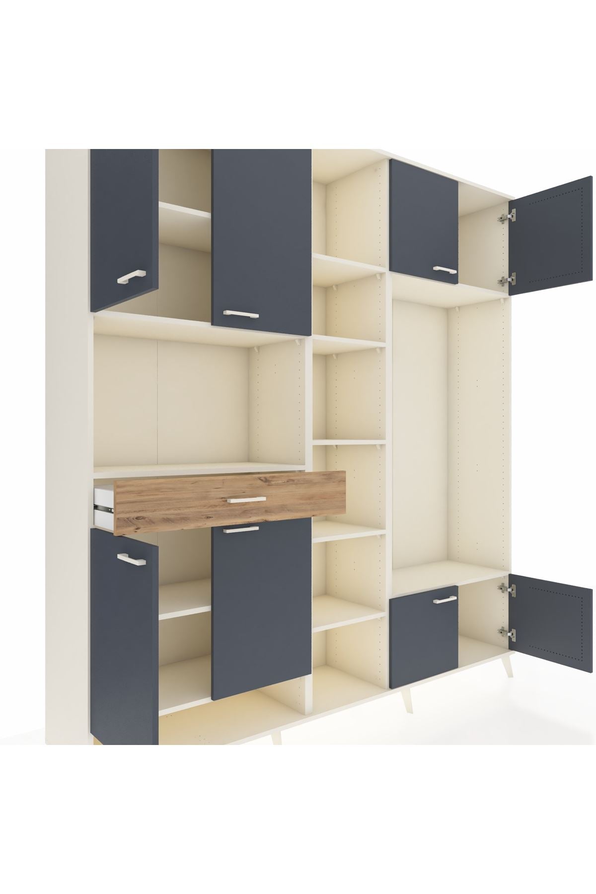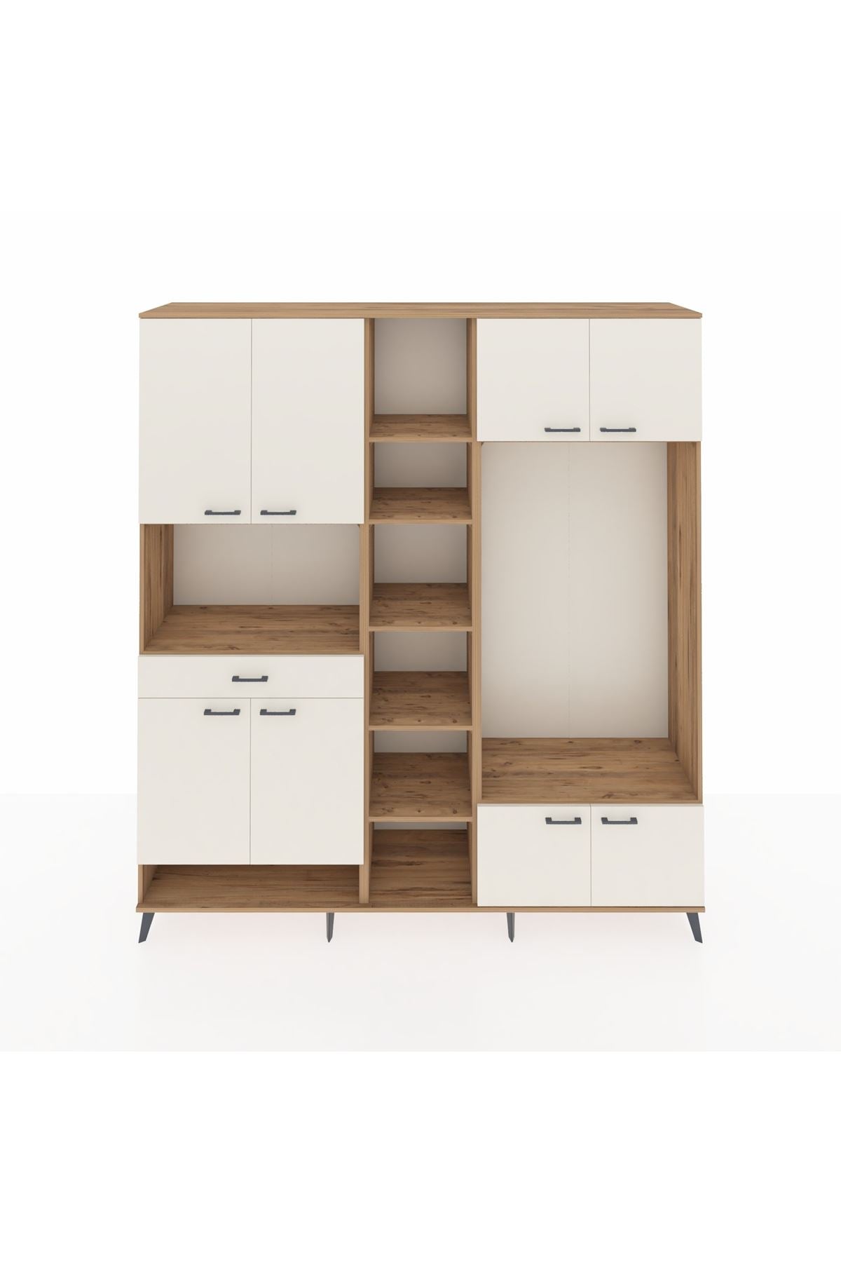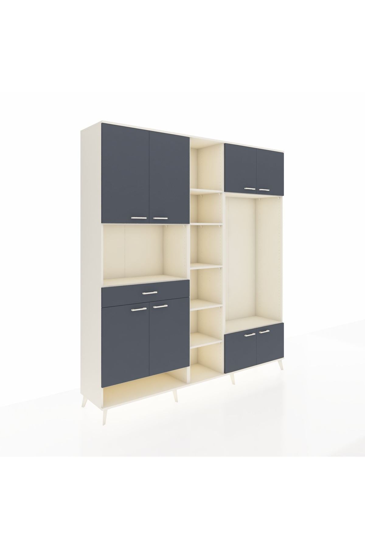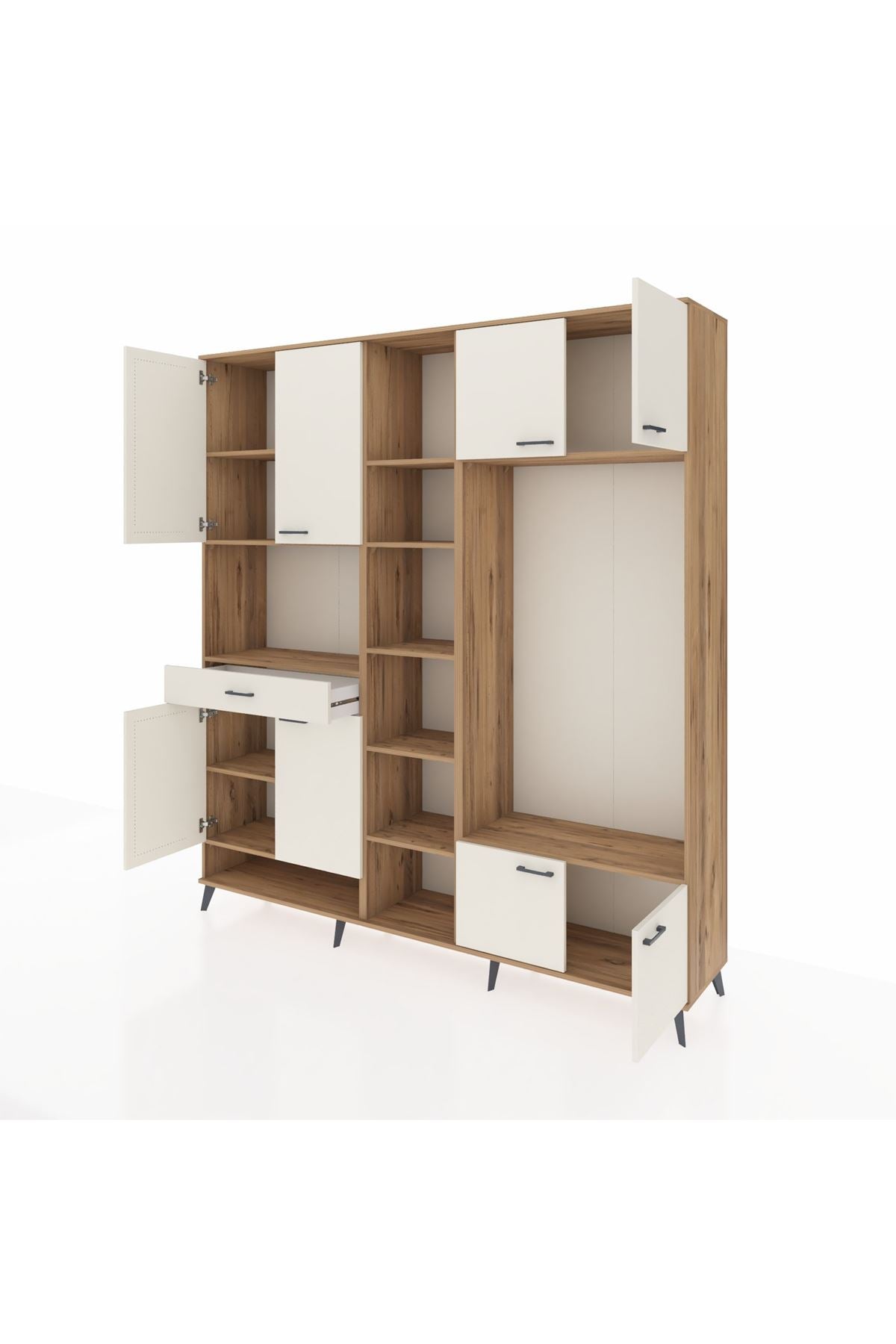 📌 Hyperion Dolap 12 Raflı Tek Çekmeceli 8 Kapaklı 220x44x243