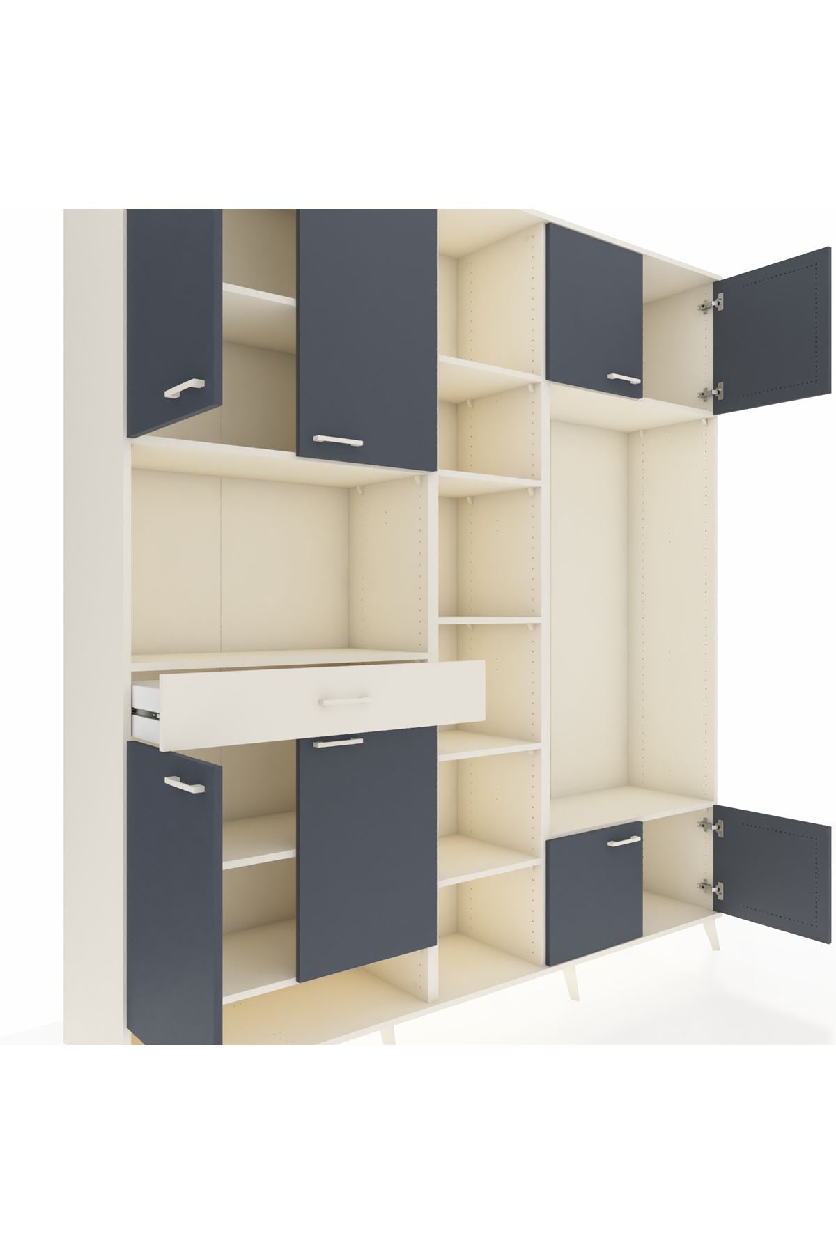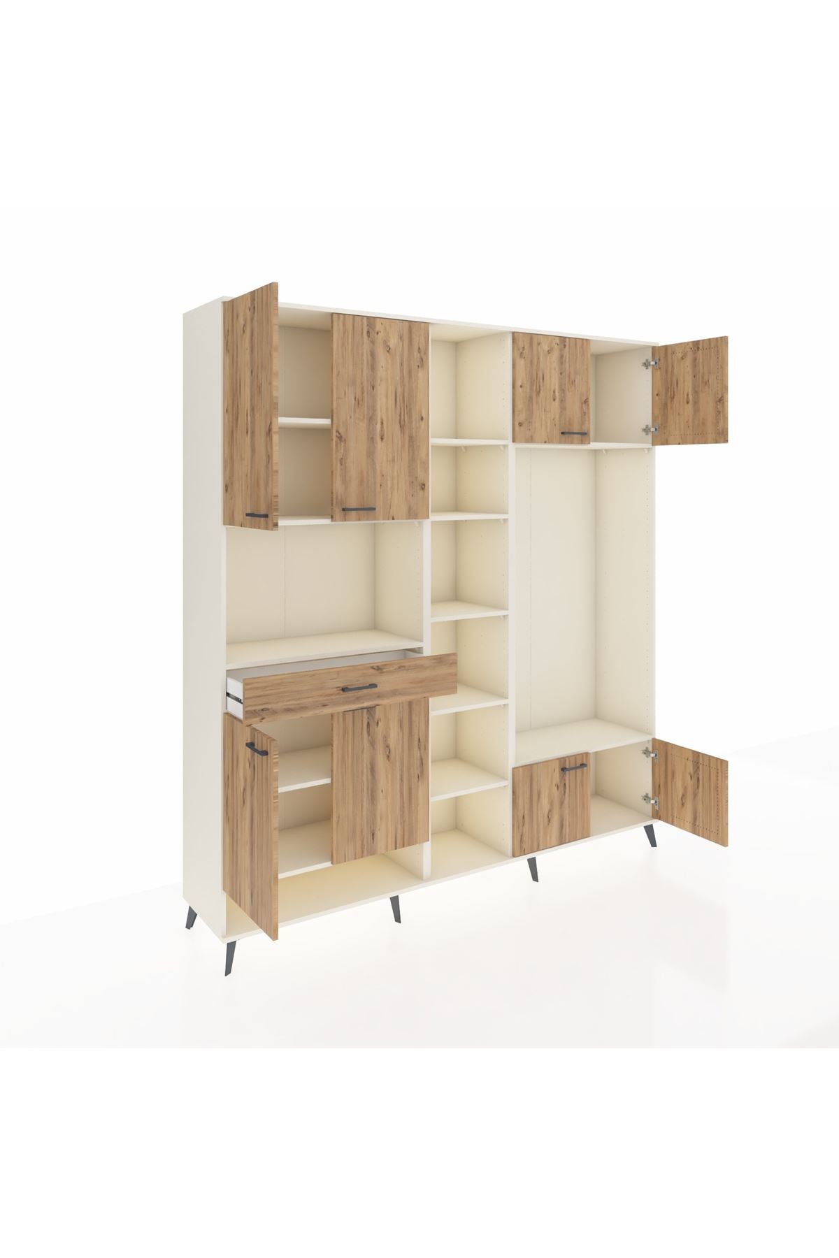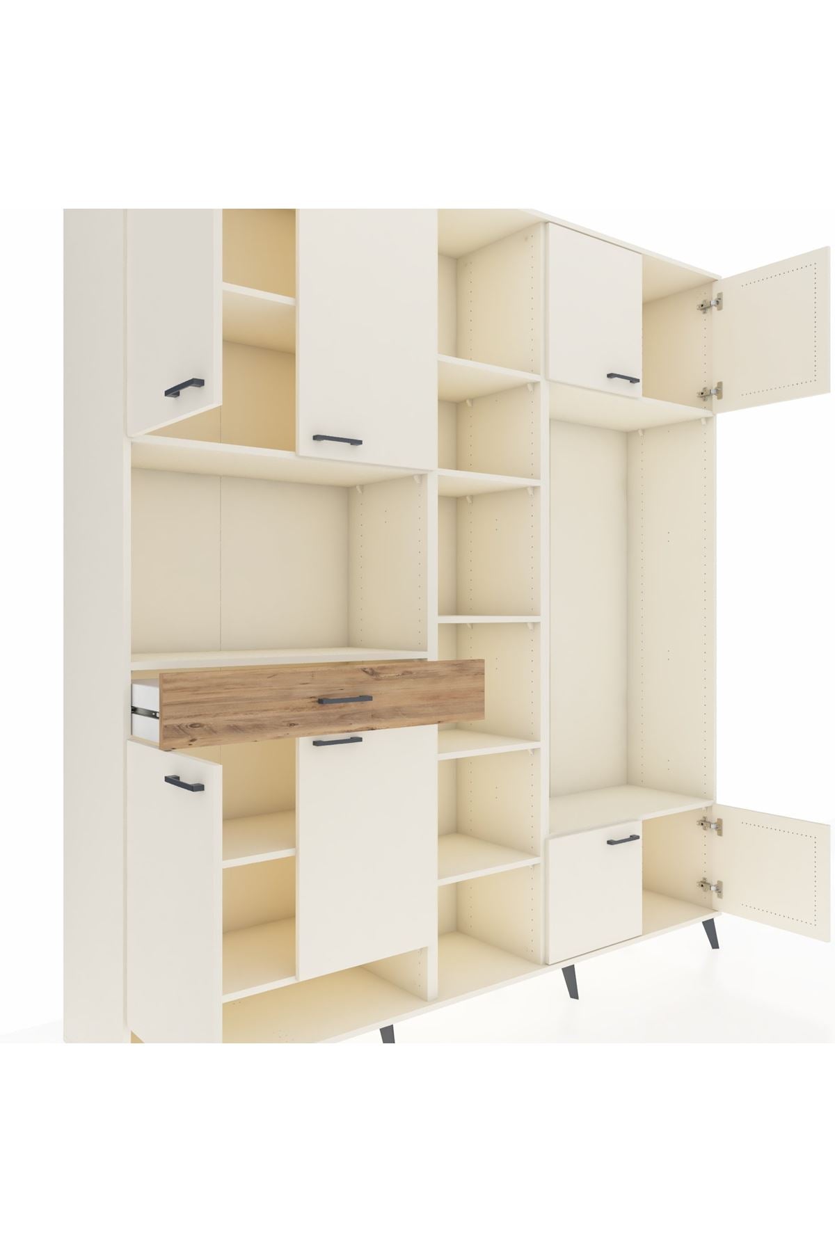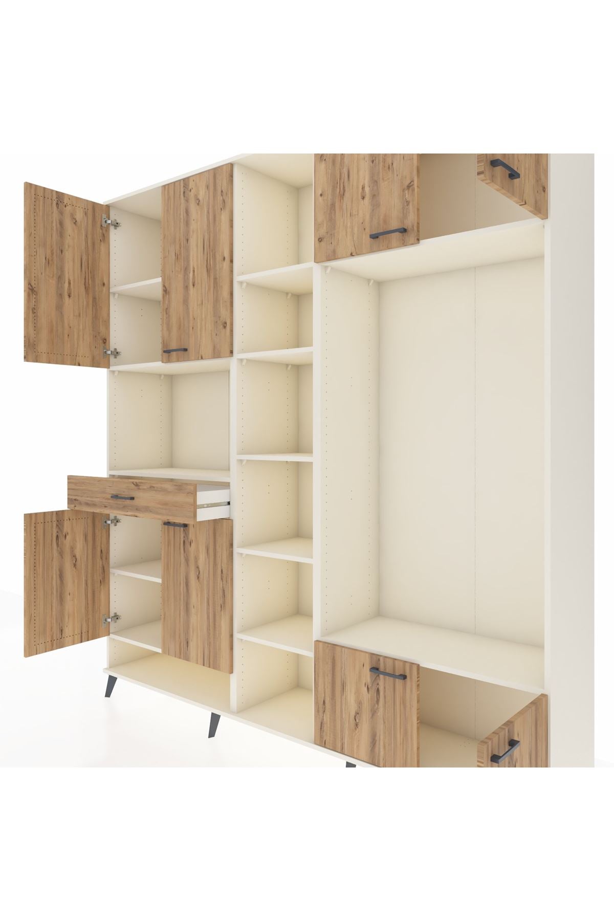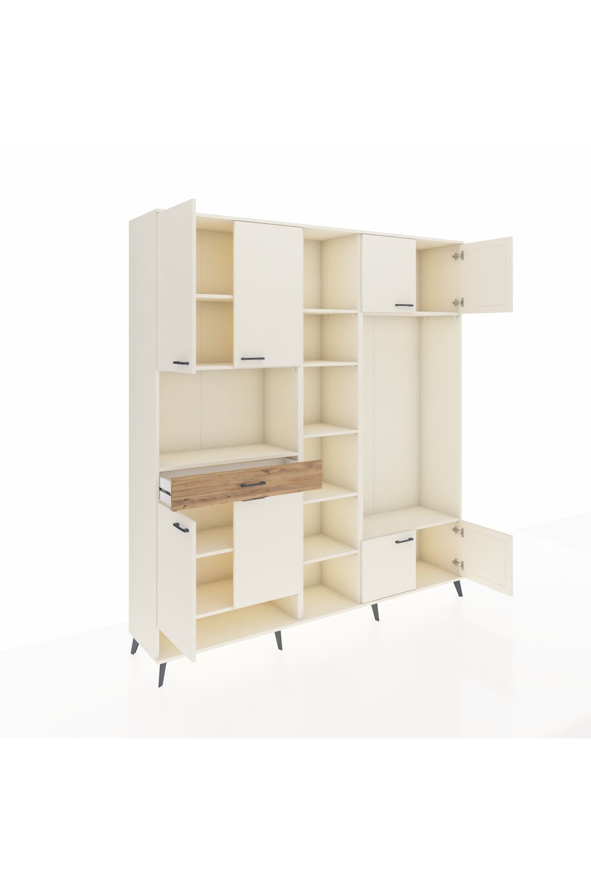 📌 Hyperion Dolap 12 Raflı Tek Çekmeceli 8 Kapaklı 220x44x243