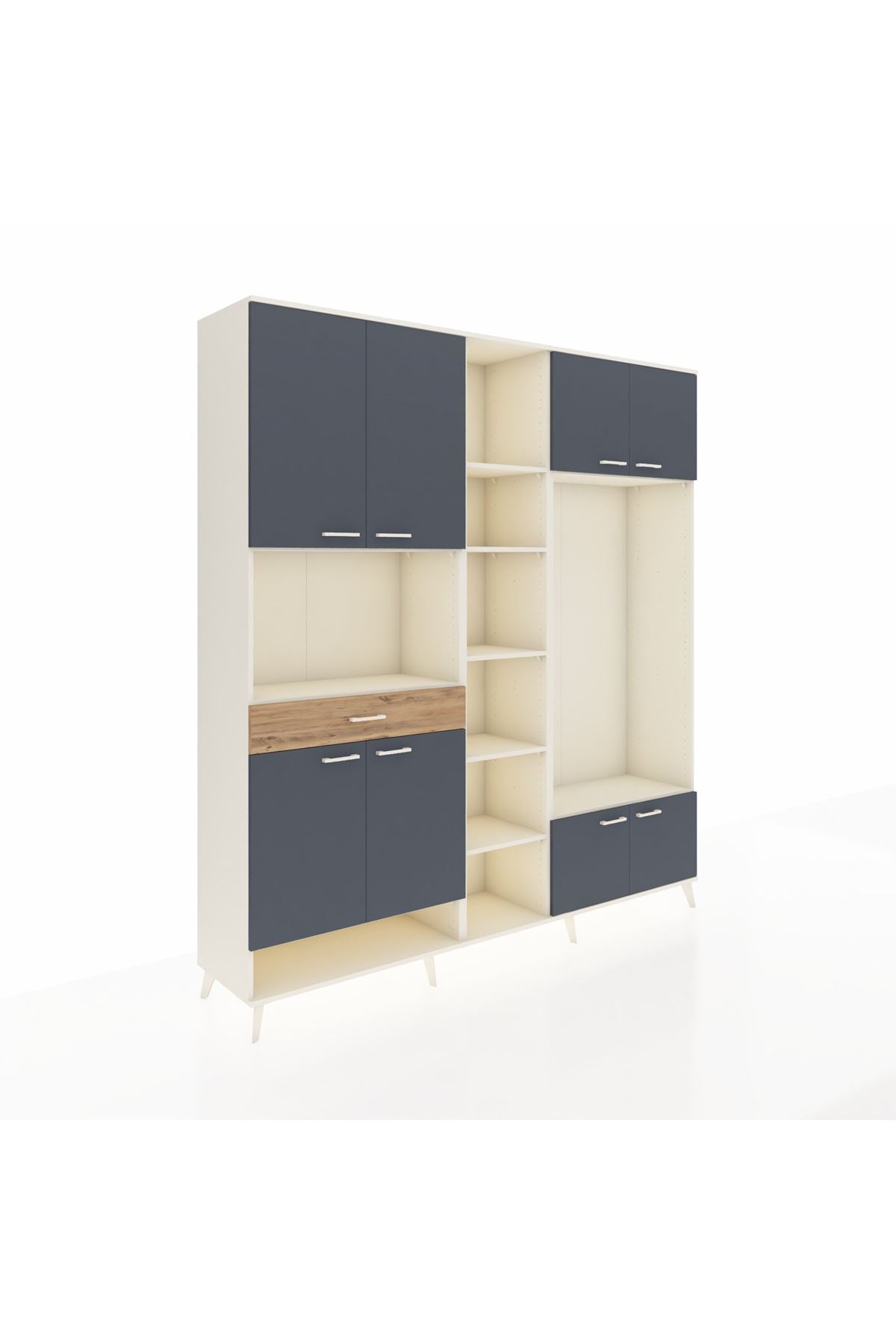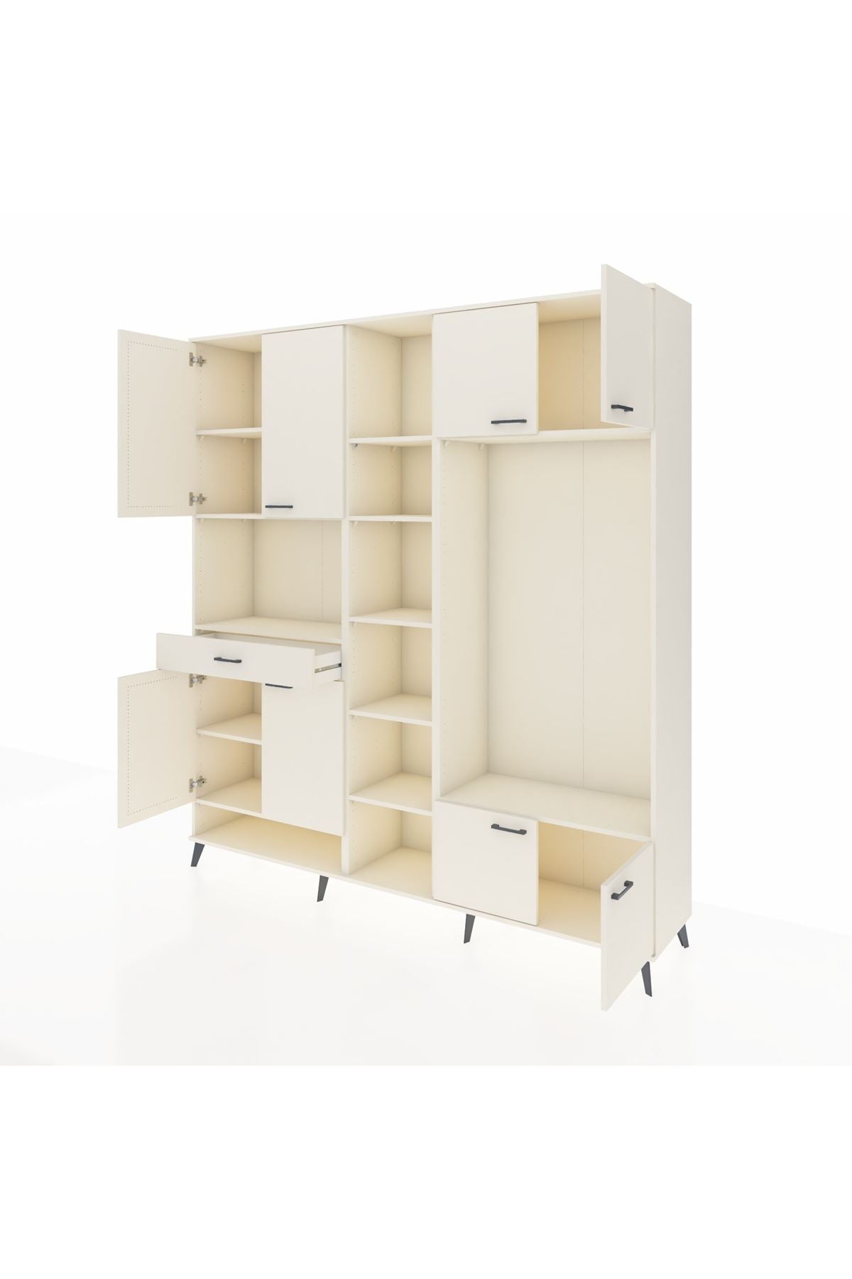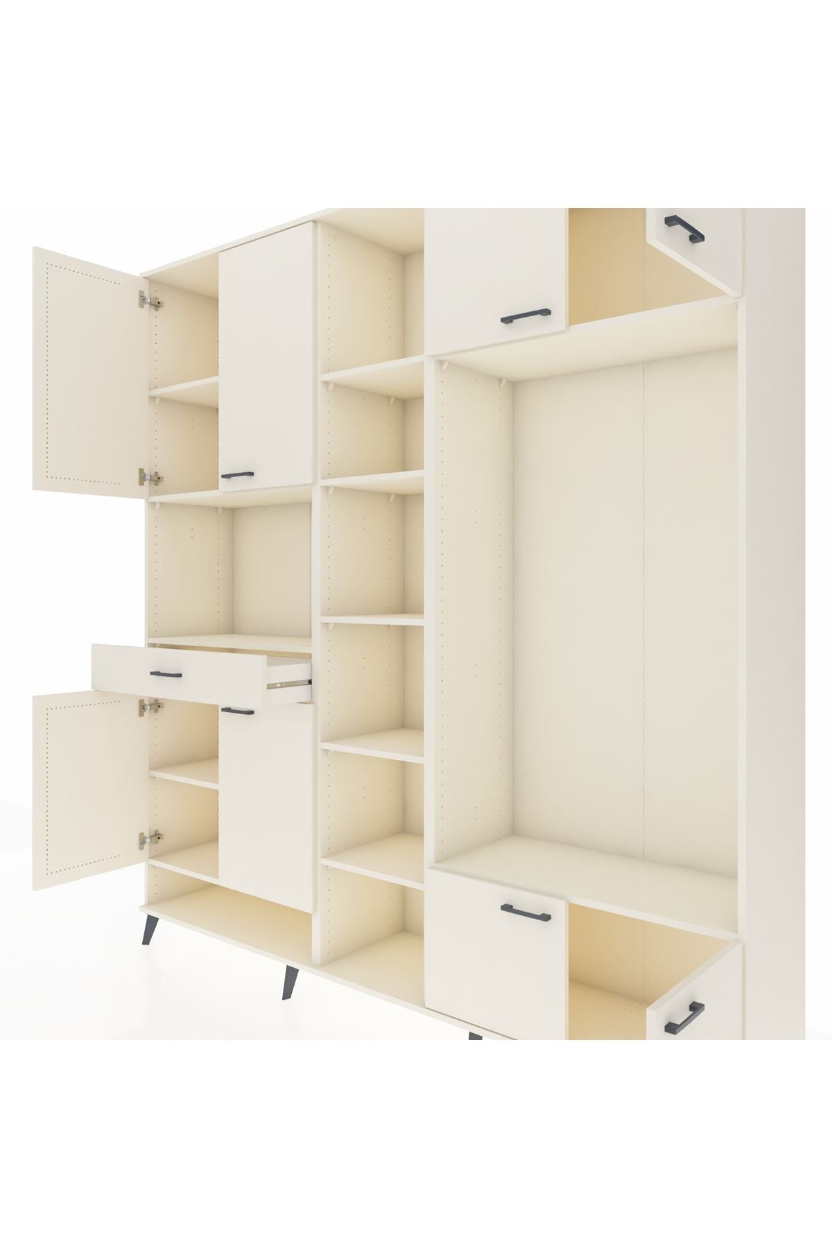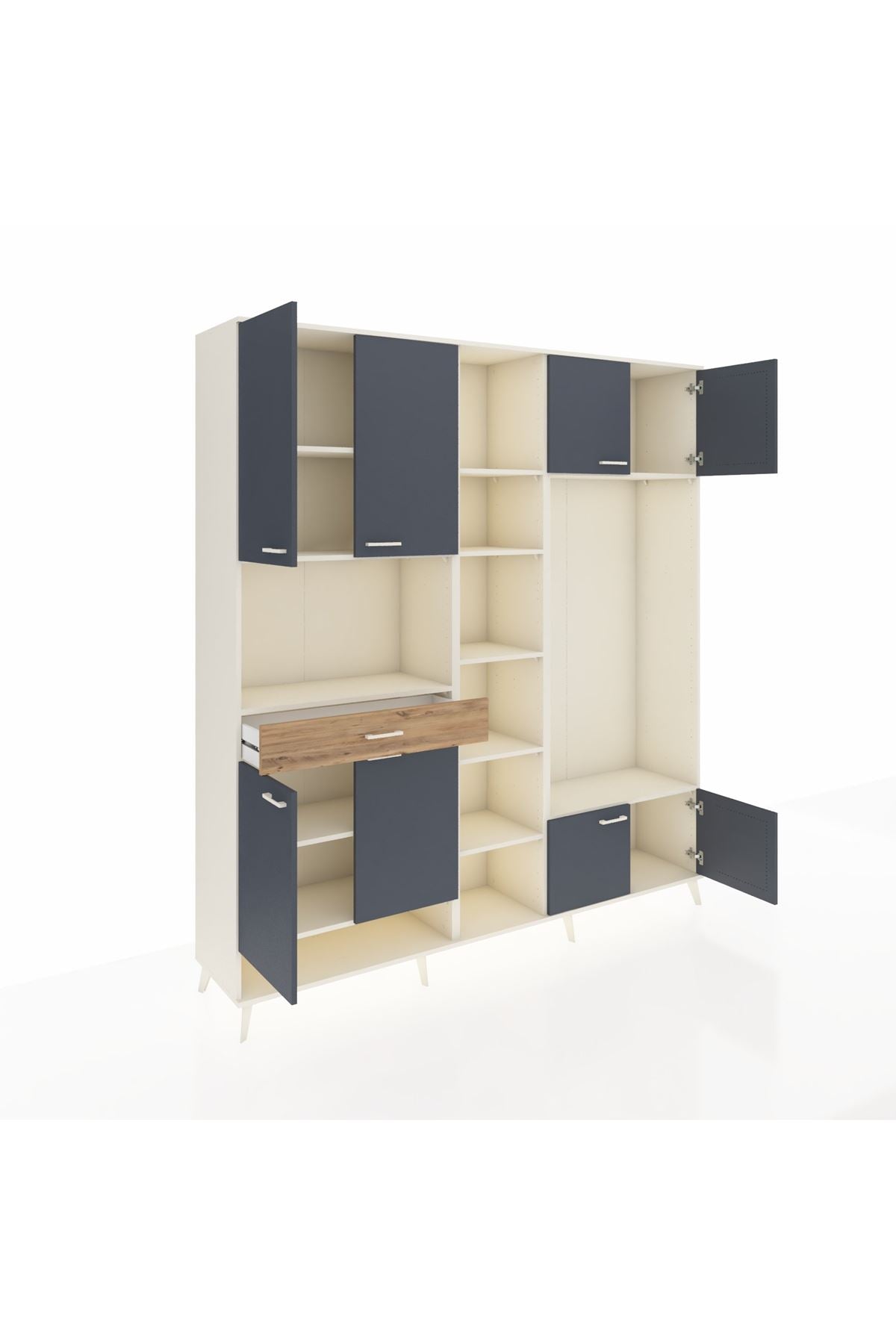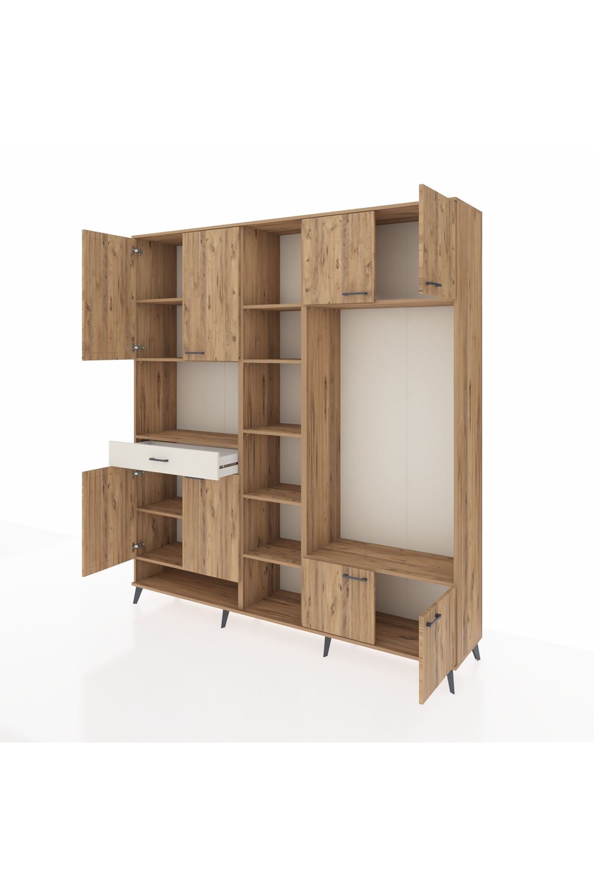 📌 Hyperion Dolap 12 Raflı Tek Çekmeceli 8 Kapaklı 220x44x243
