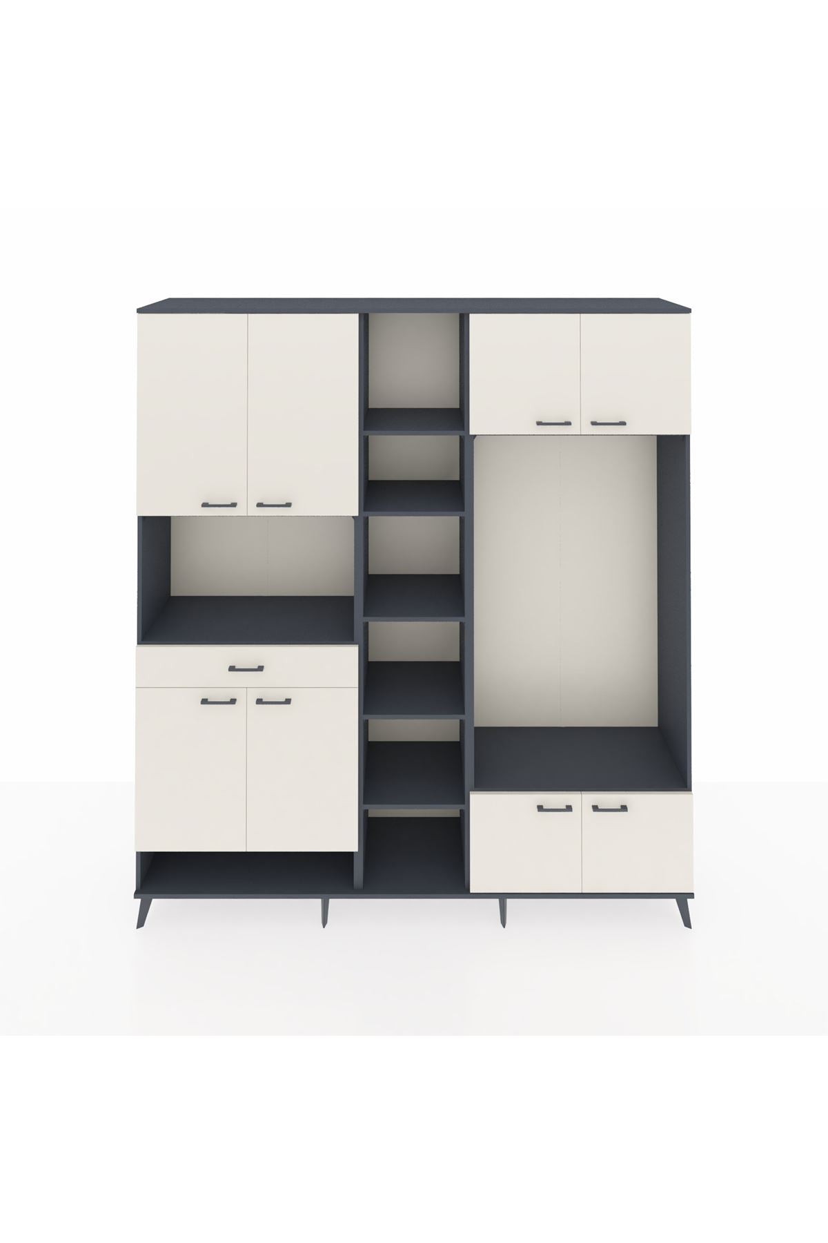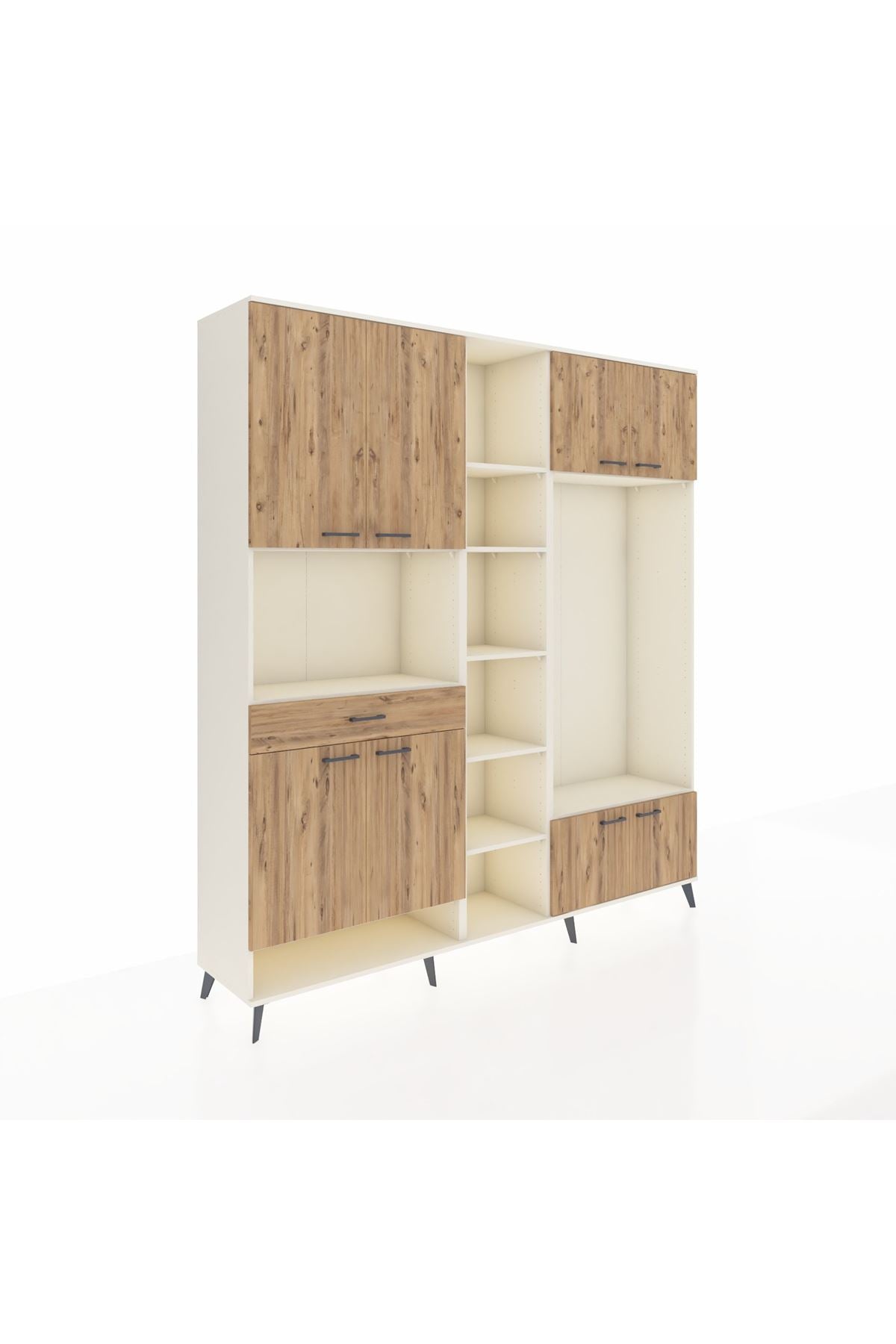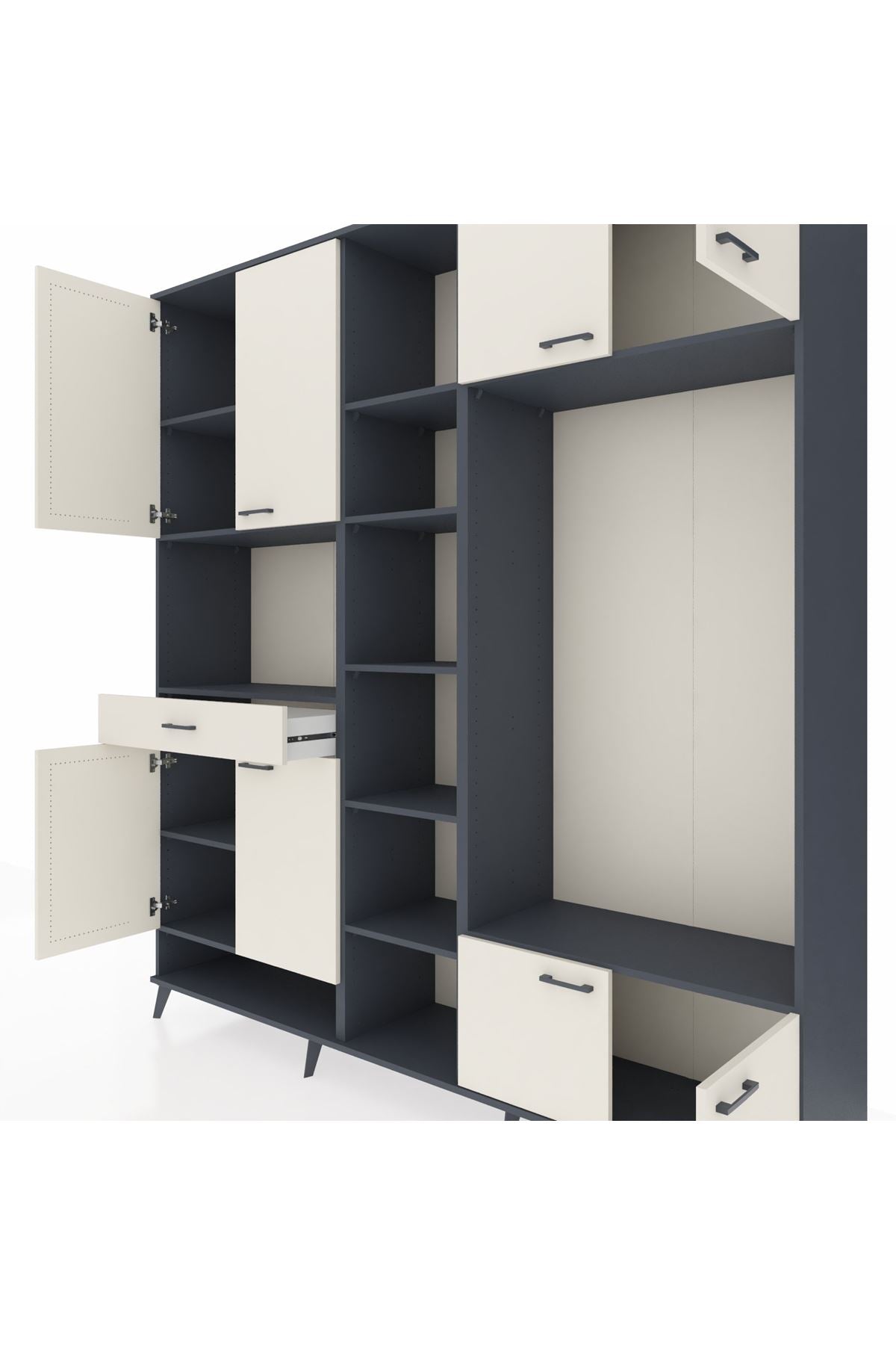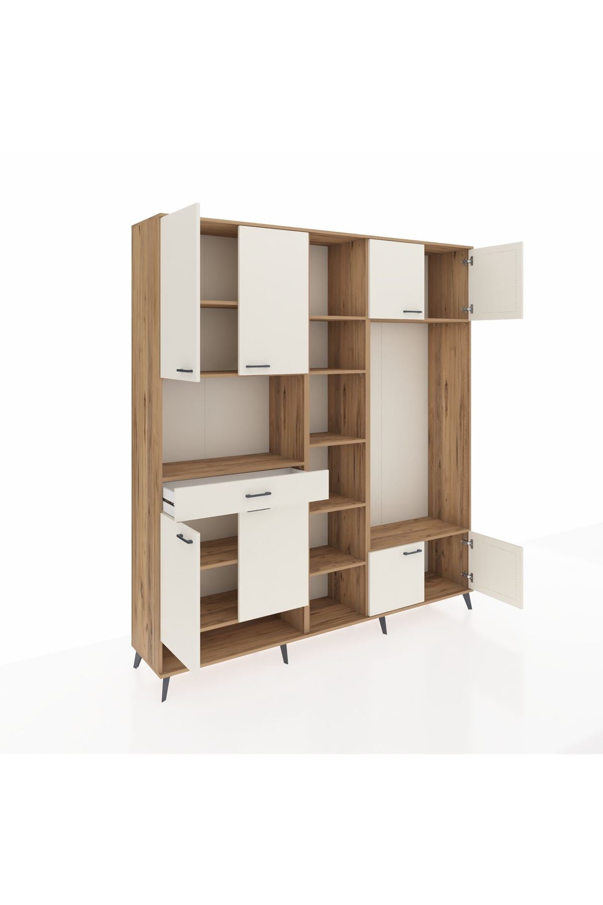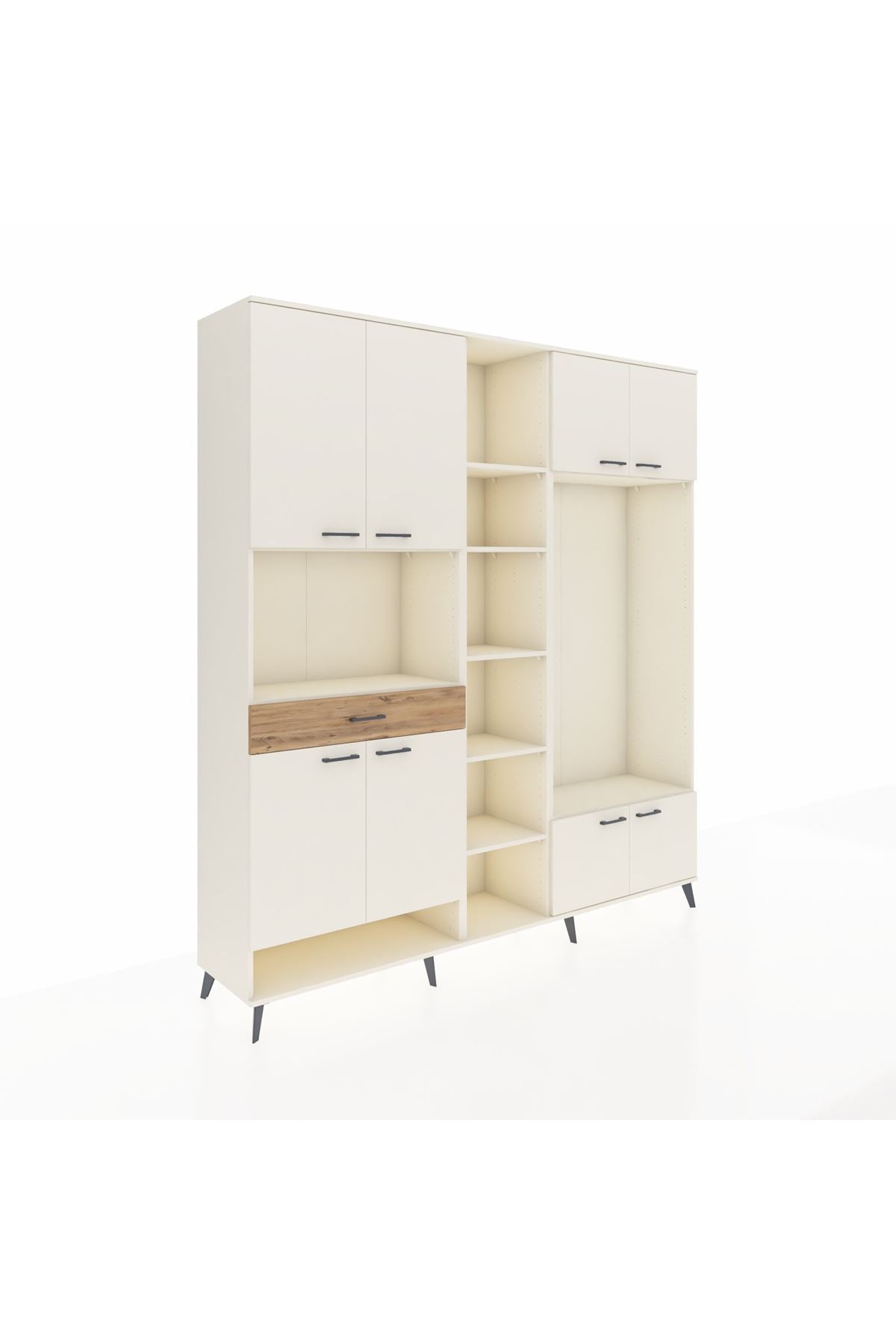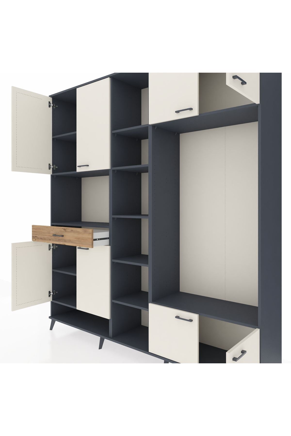 📌 Hyperion Dolap 12 Raflı Tek Çekmeceli 8 Kapaklı 220x44x243