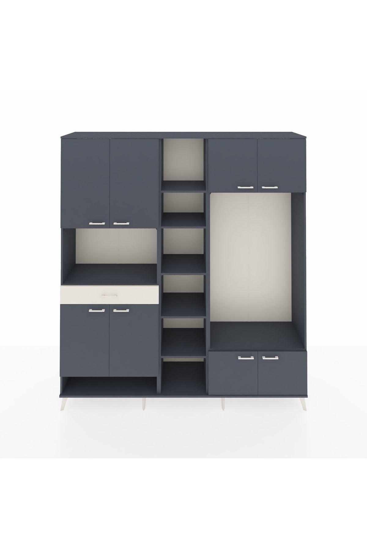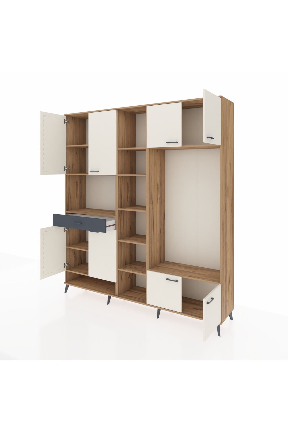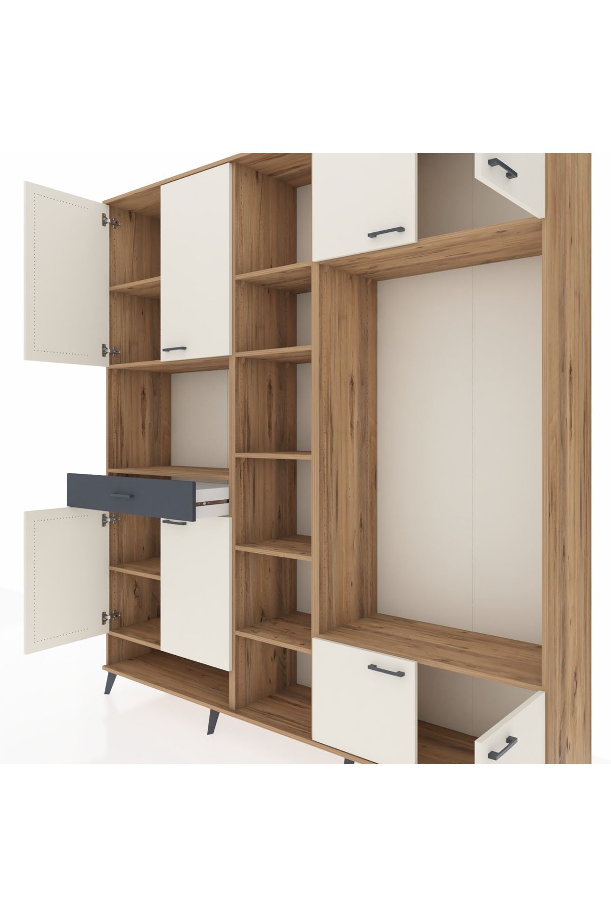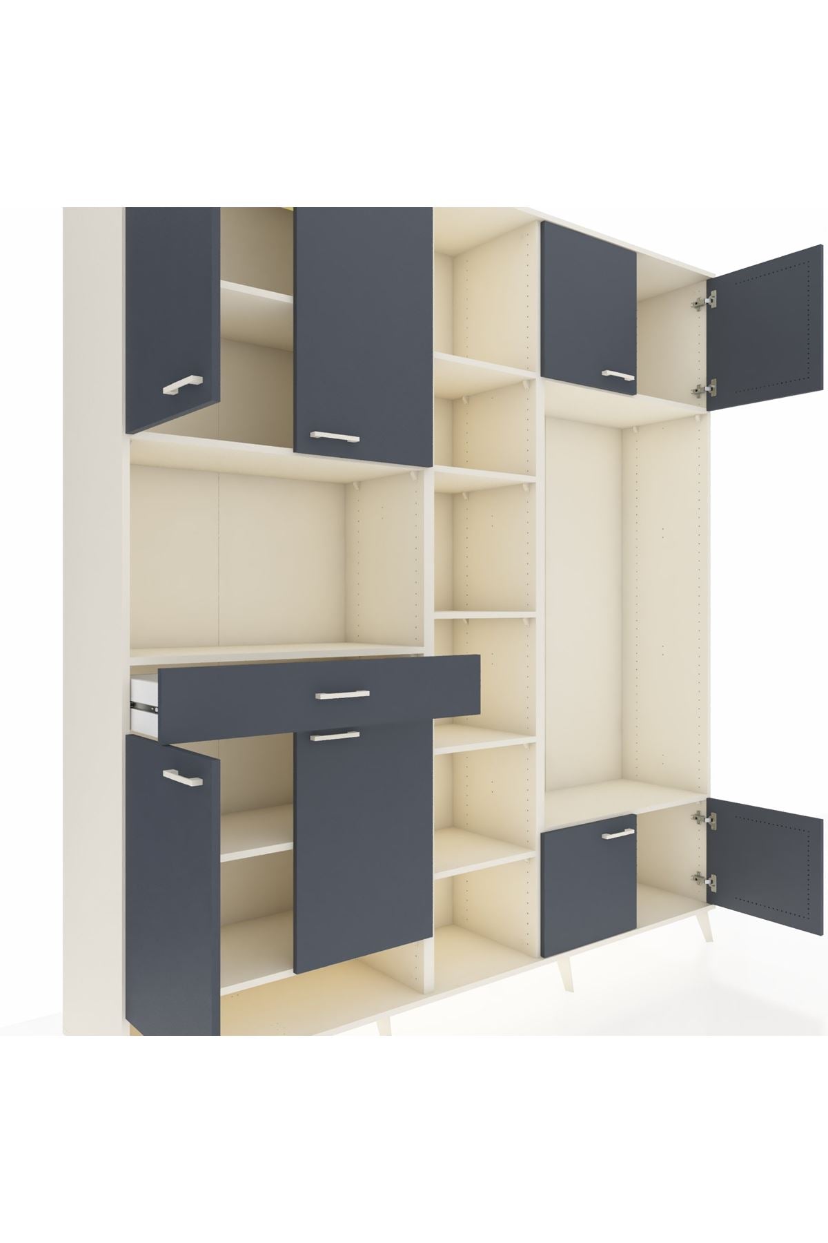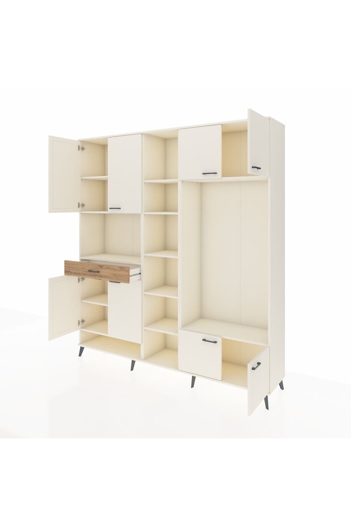📌 Hyperion Dolap 12 Raflı Tek Çekmeceli 8 Kapaklı 220x44x243