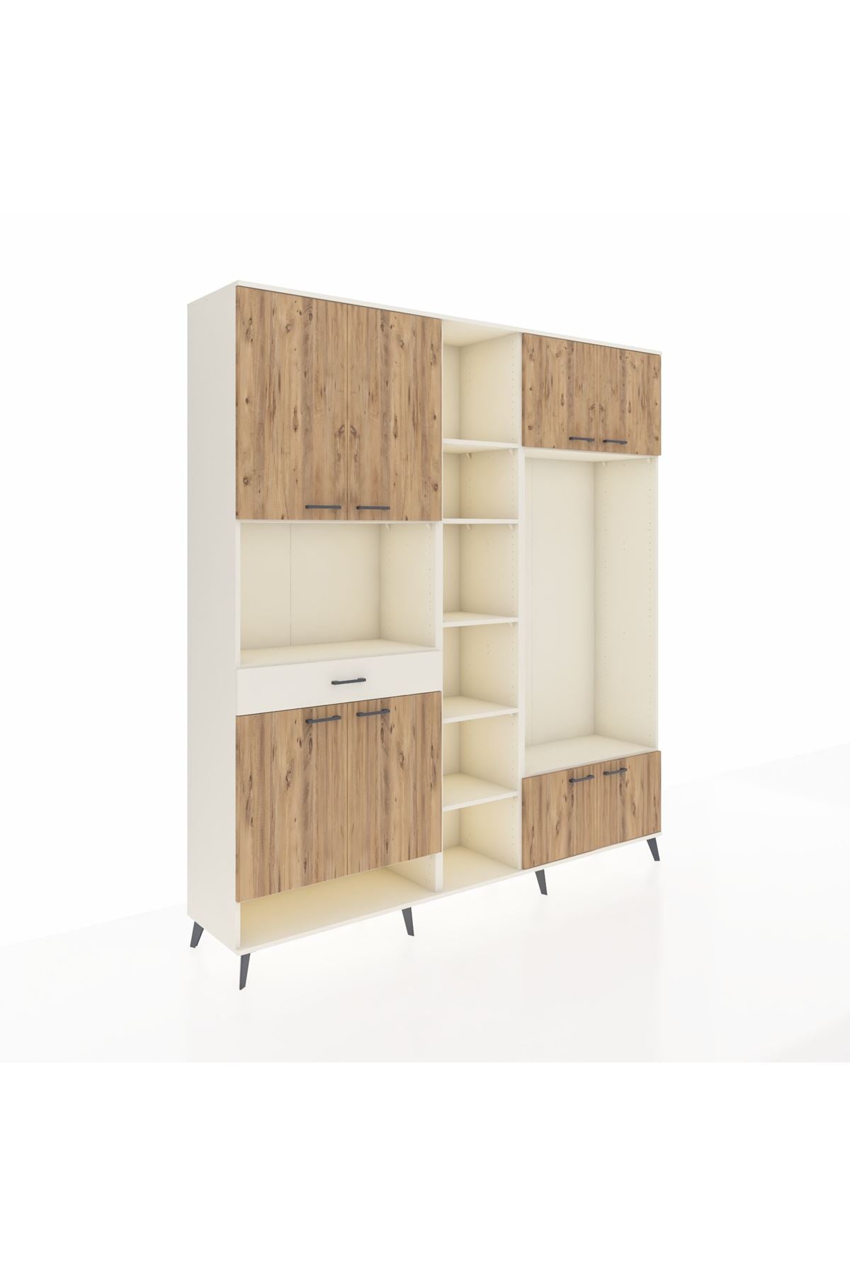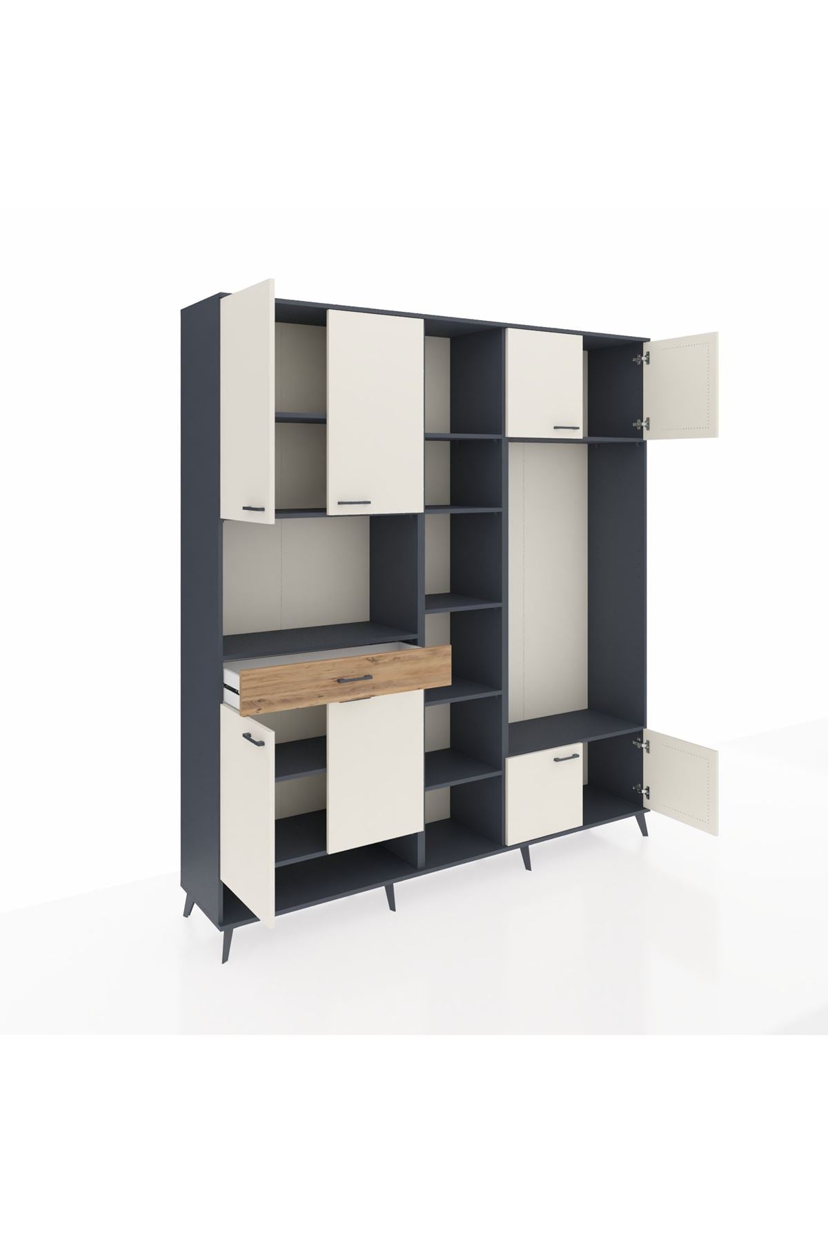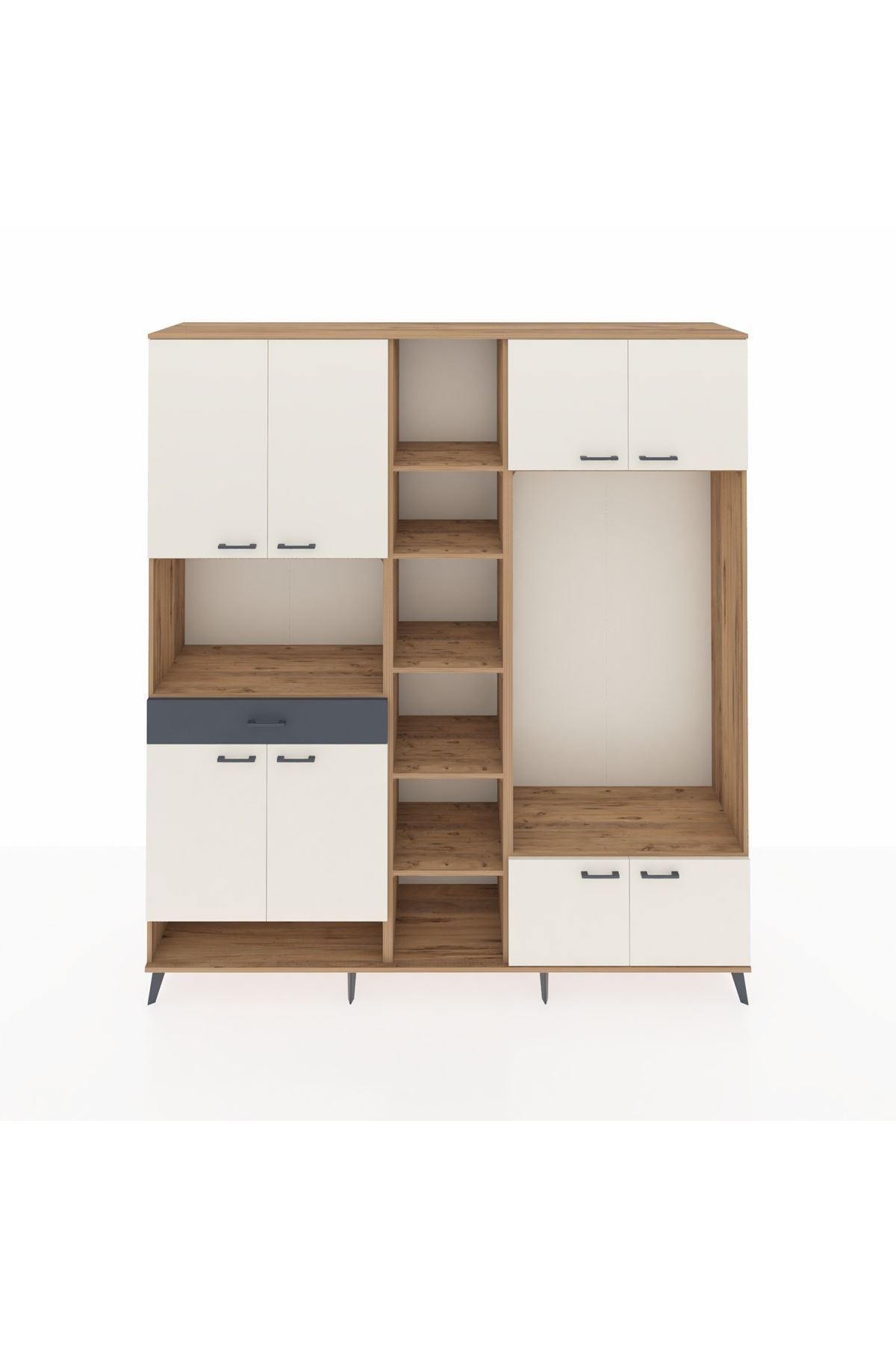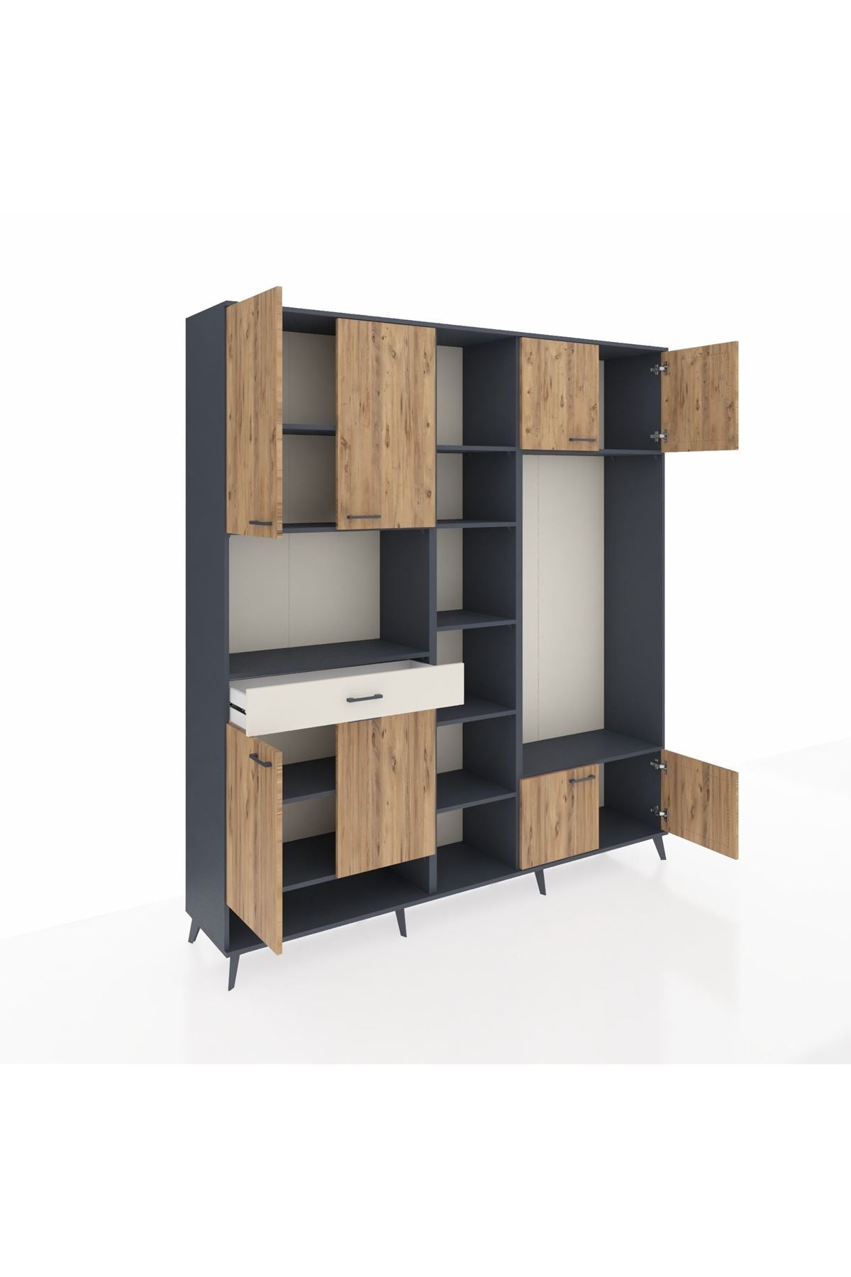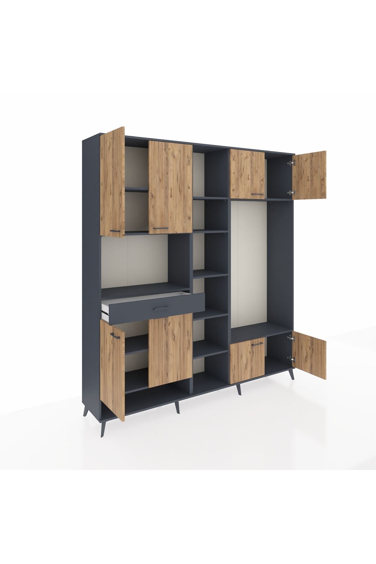 📌 Hyperion Dolap 12 Raflı Tek Çekmeceli 8 Kapaklı 220x44x243
