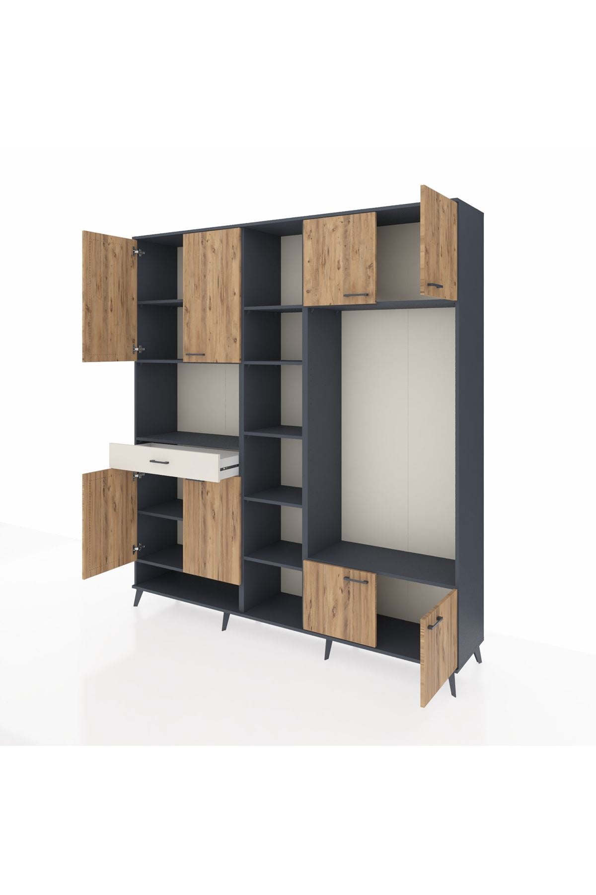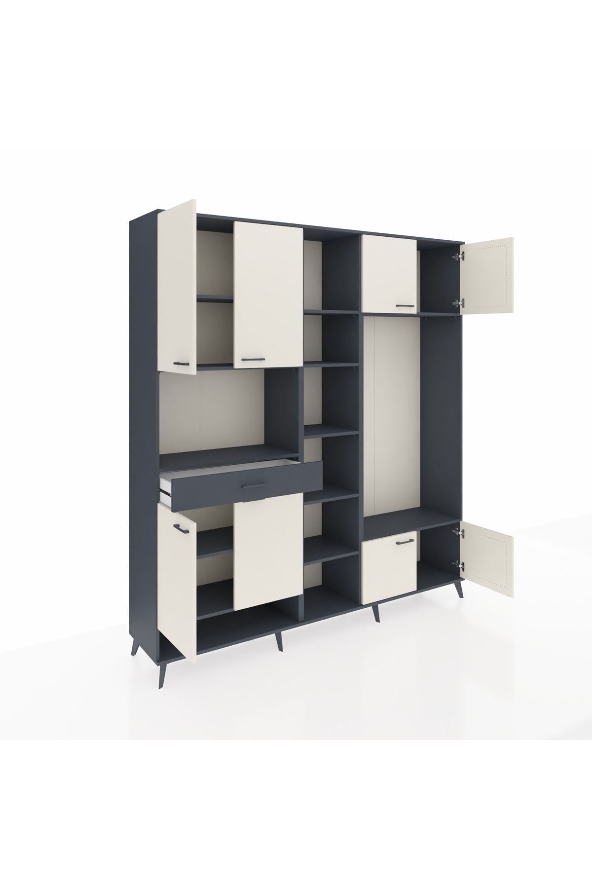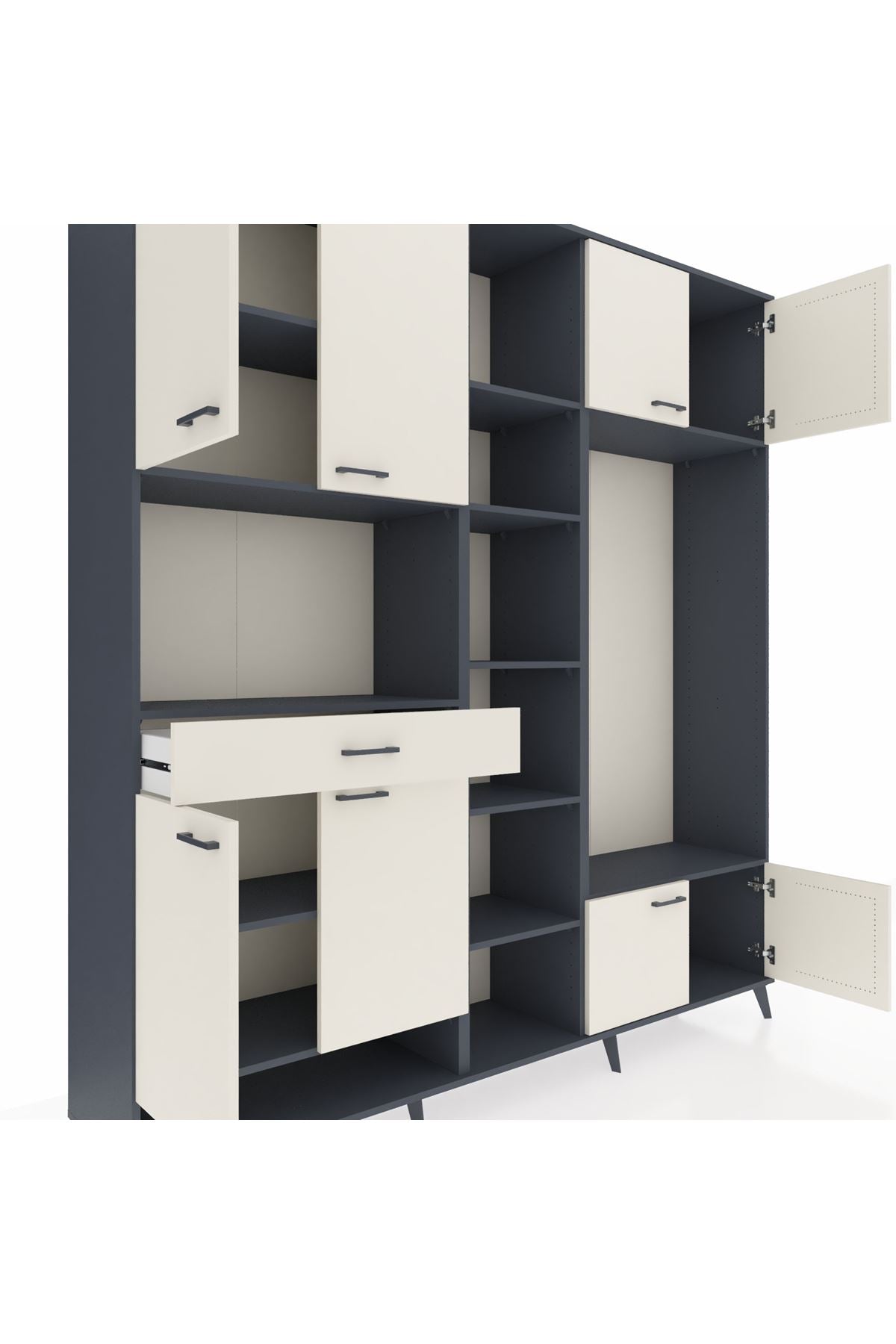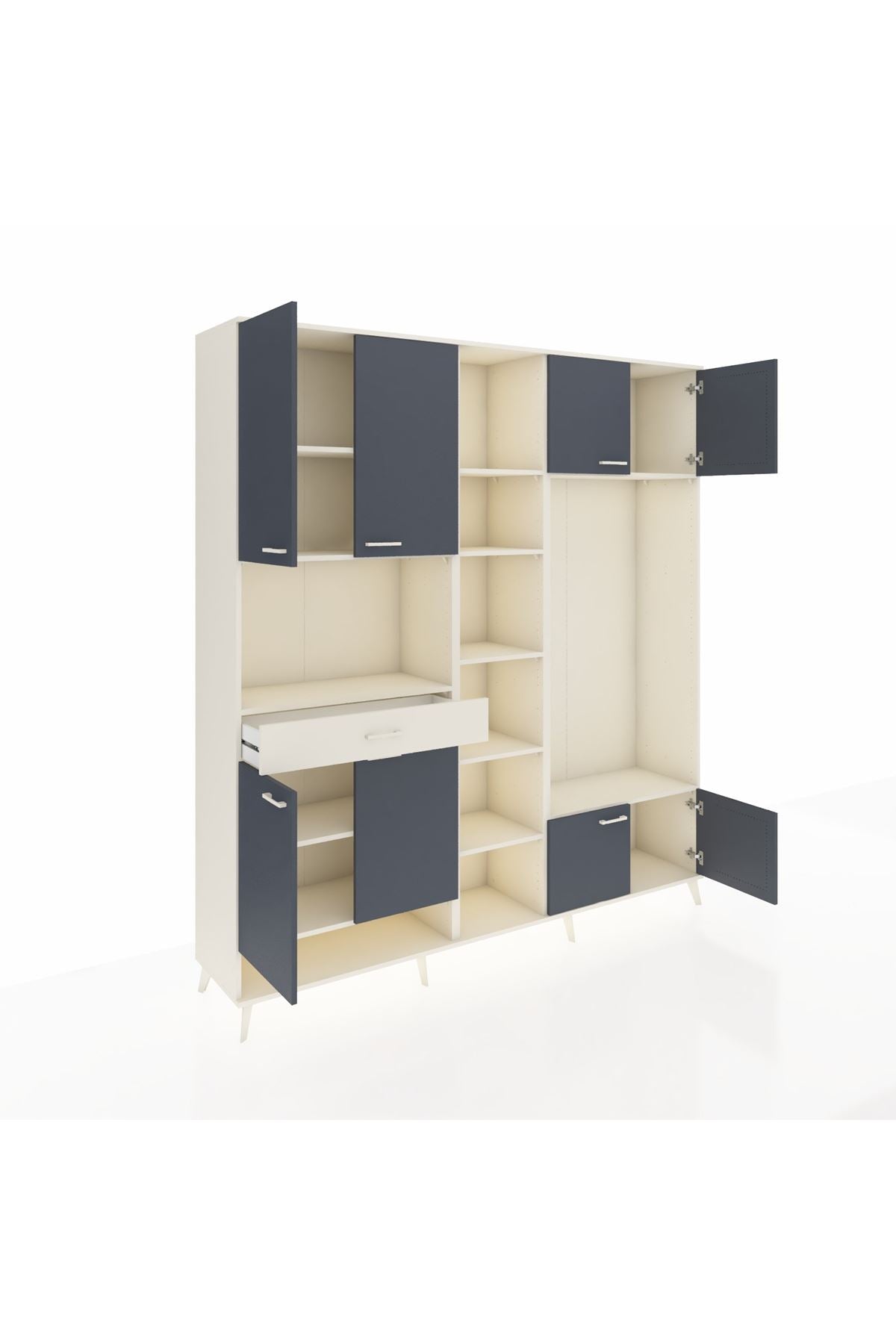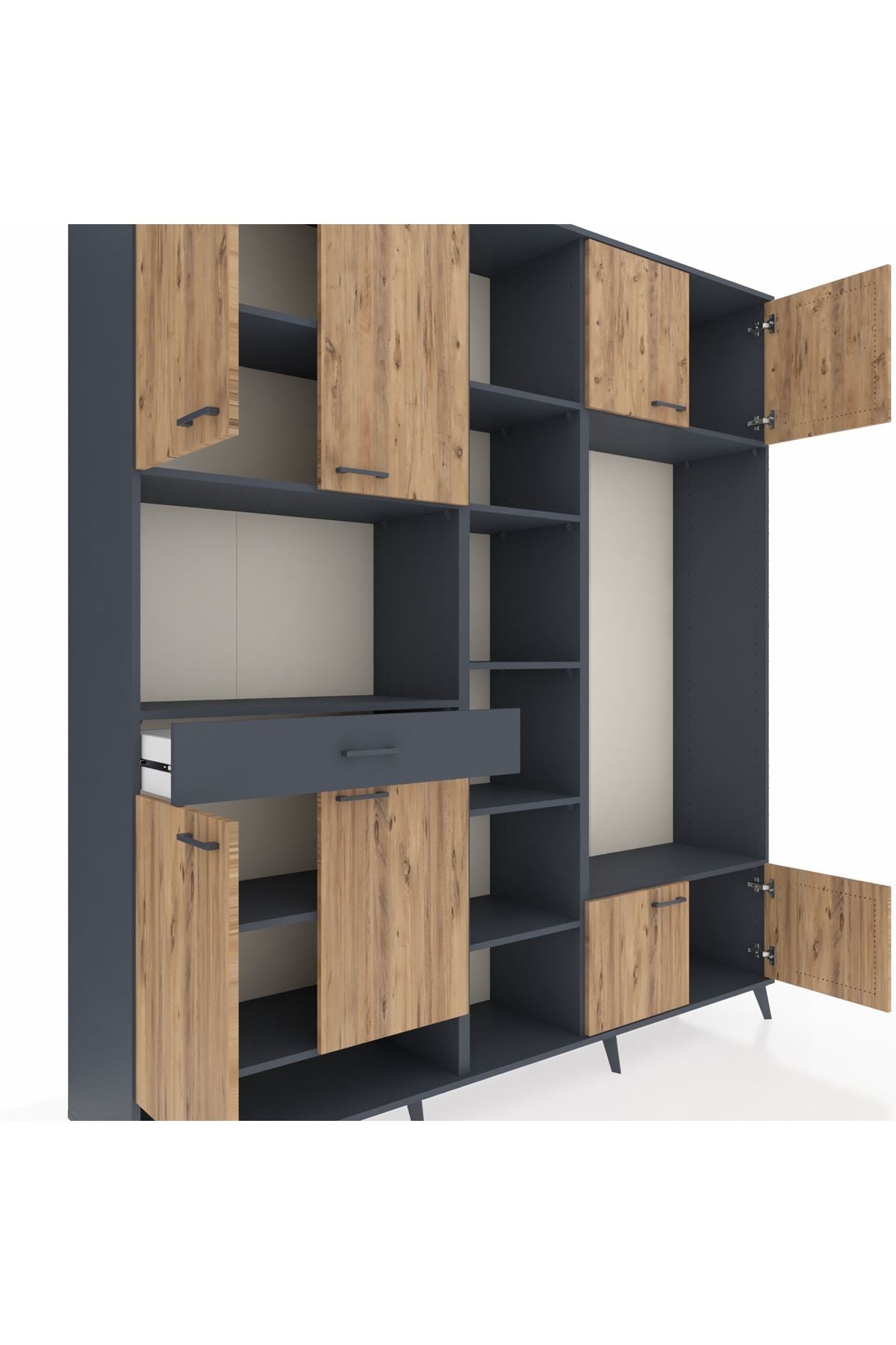 📌 Hyperion Dolap 12 Raflı Tek Çekmeceli 8 Kapaklı 220x44x243