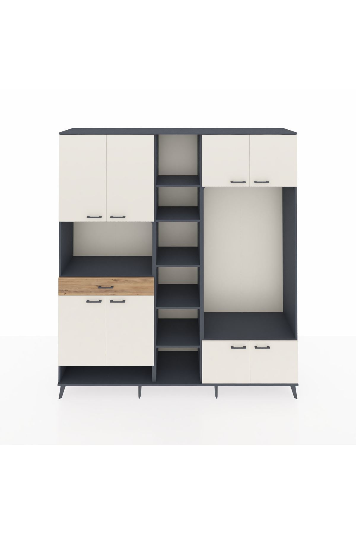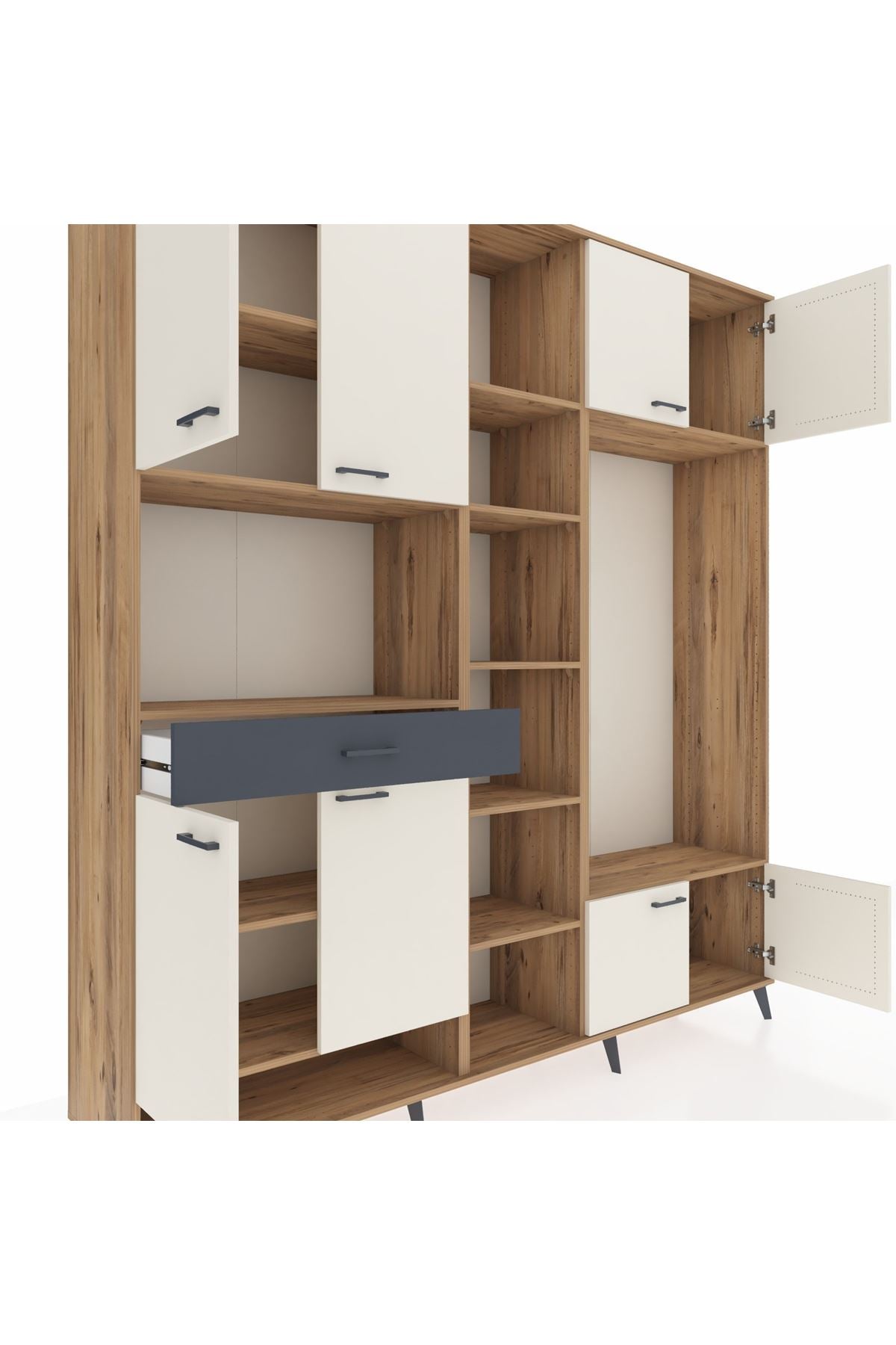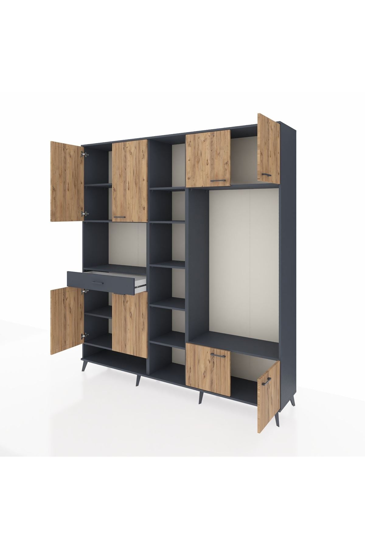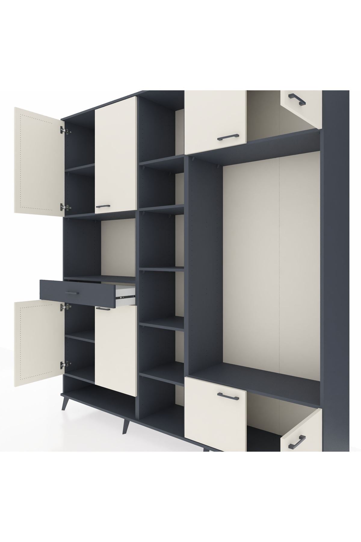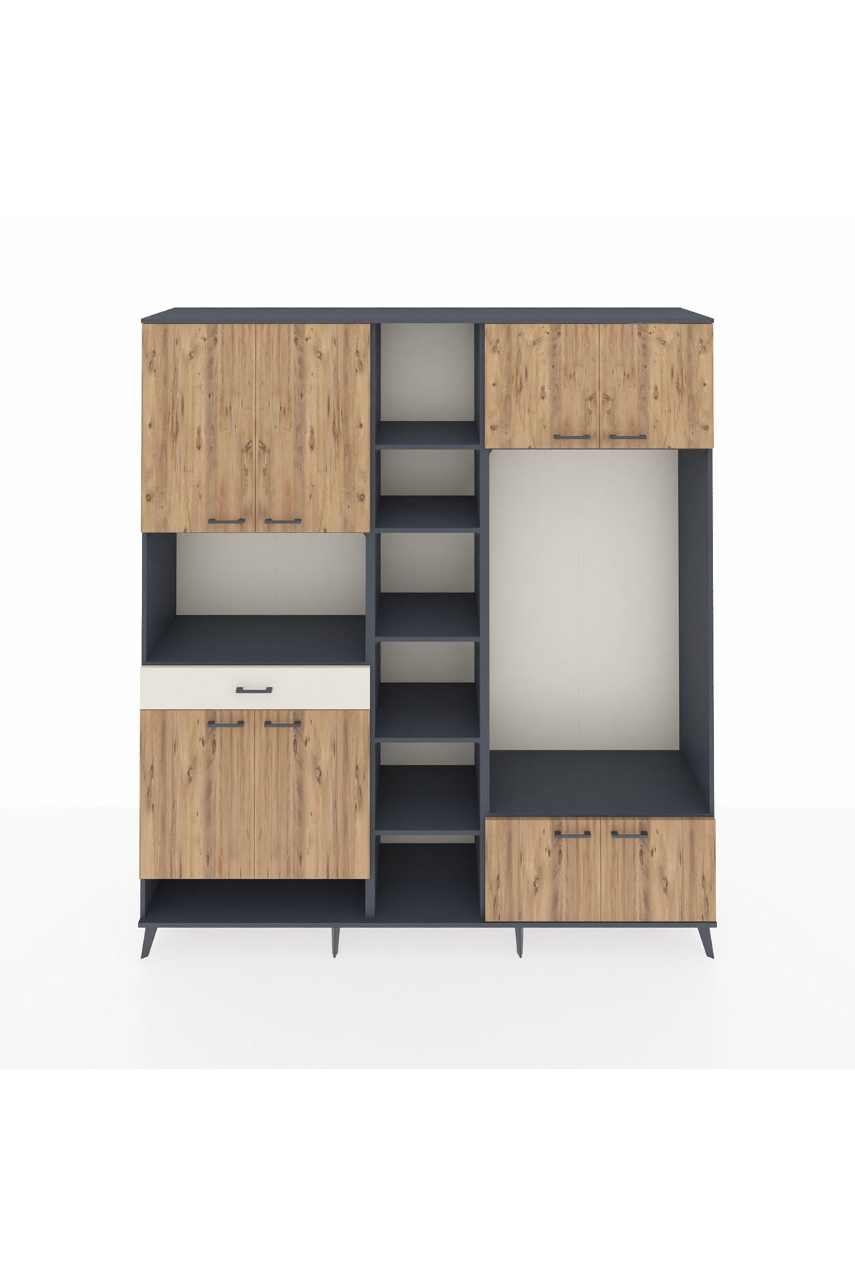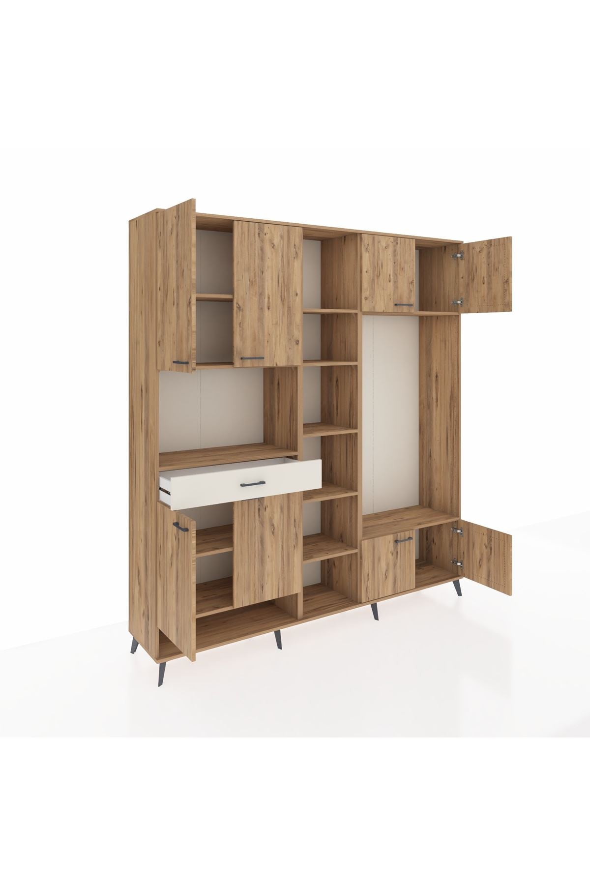 📌 Hyperion Dolap 12 Raflı Tek Çekmeceli 8 Kapaklı 220x44x243