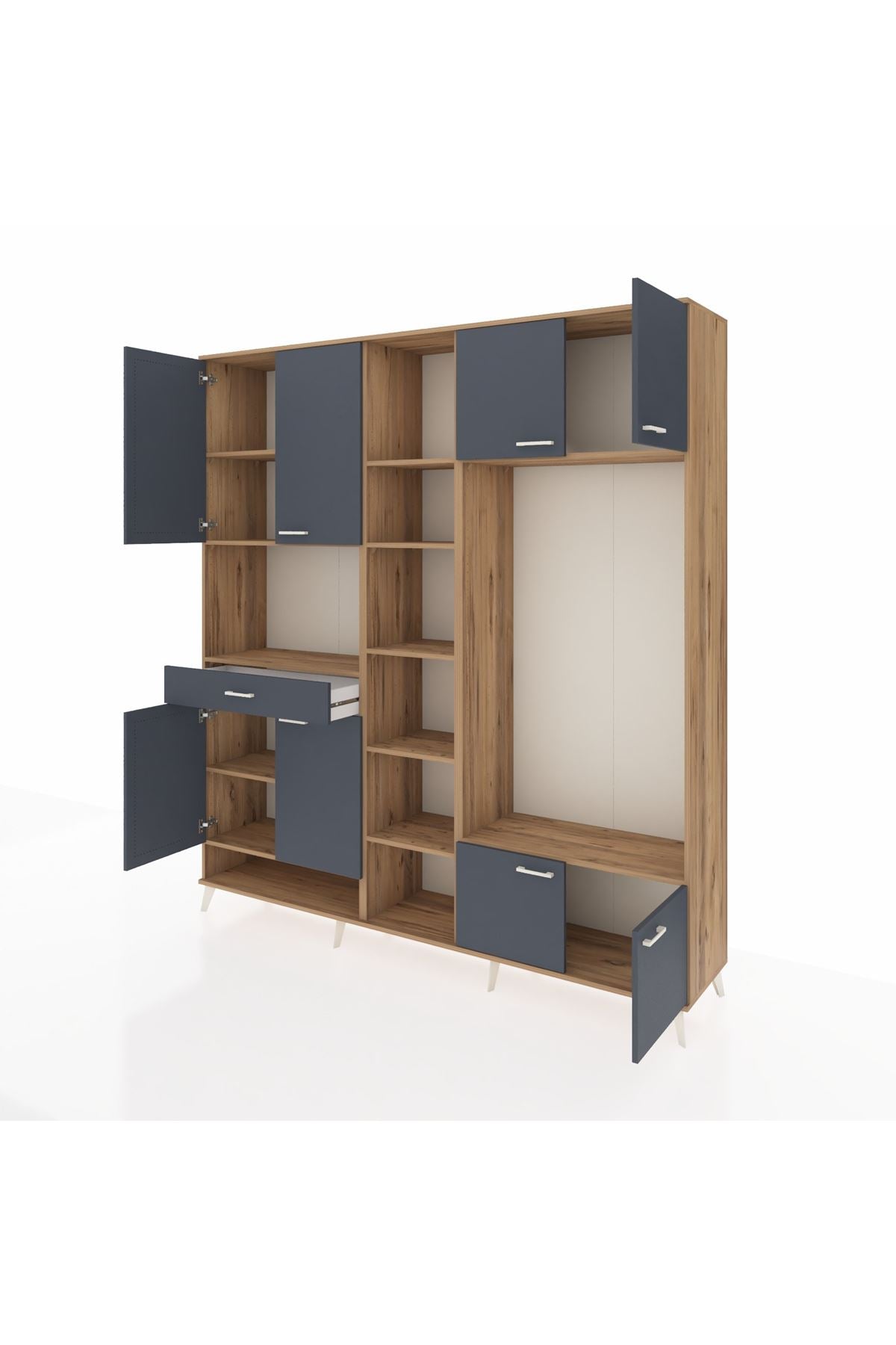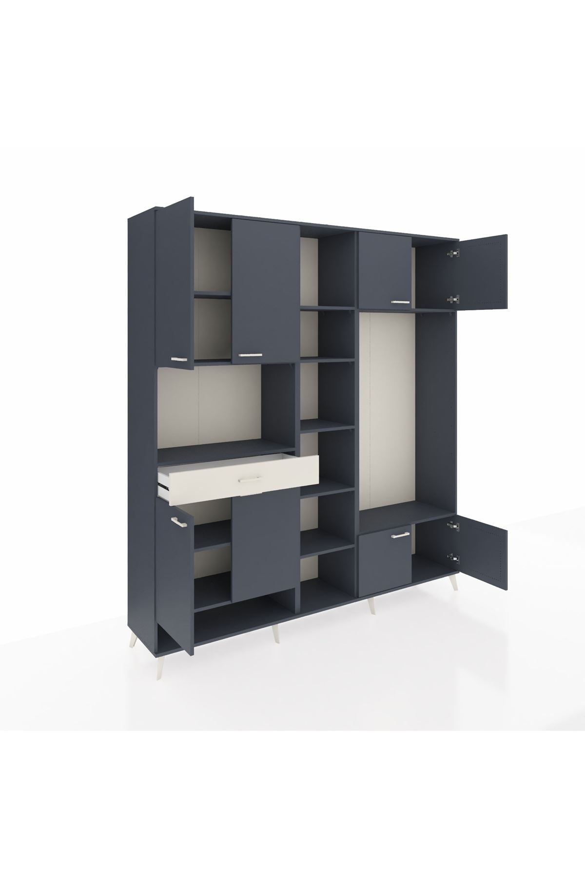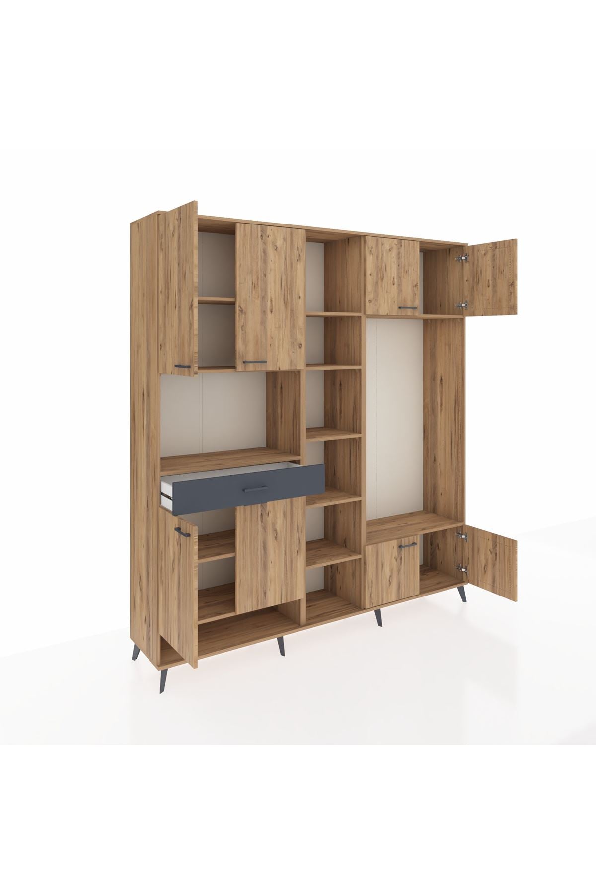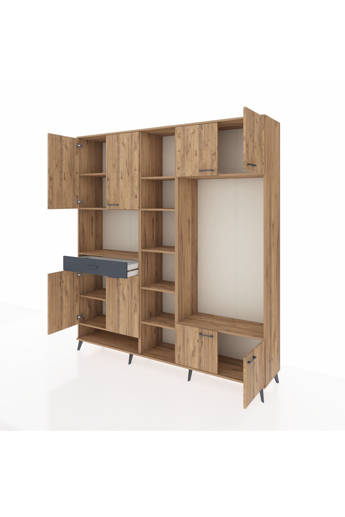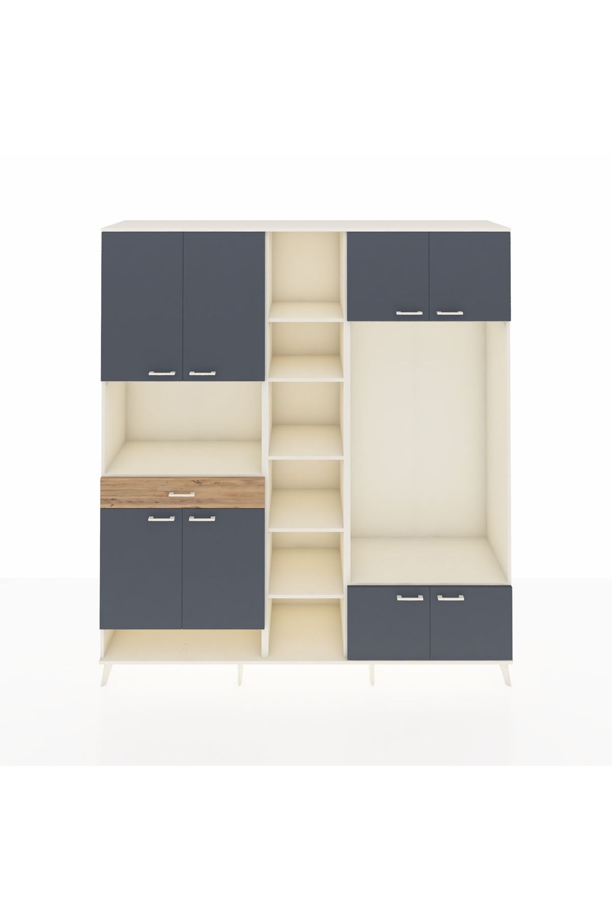 📌 Hyperion Dolap 12 Raflı Tek Çekmeceli 8 Kapaklı 220x44x243