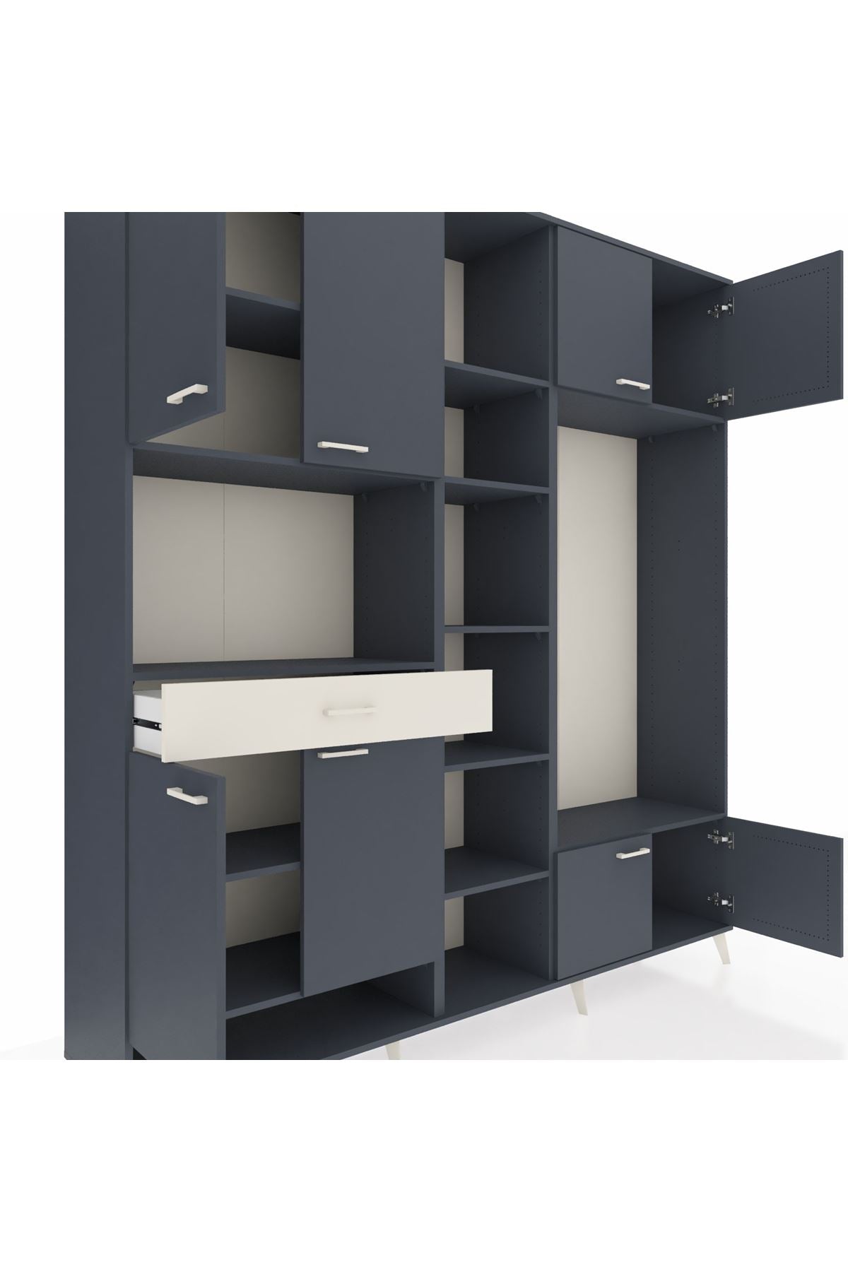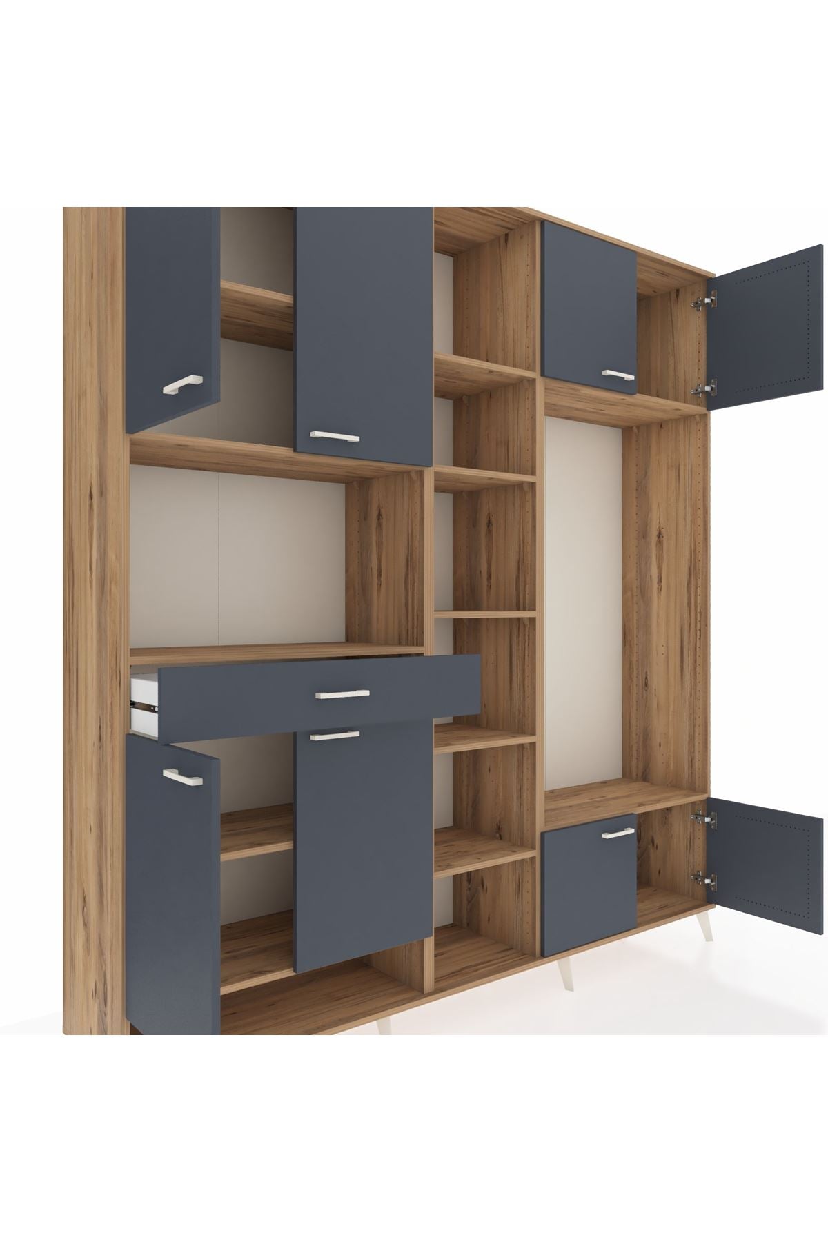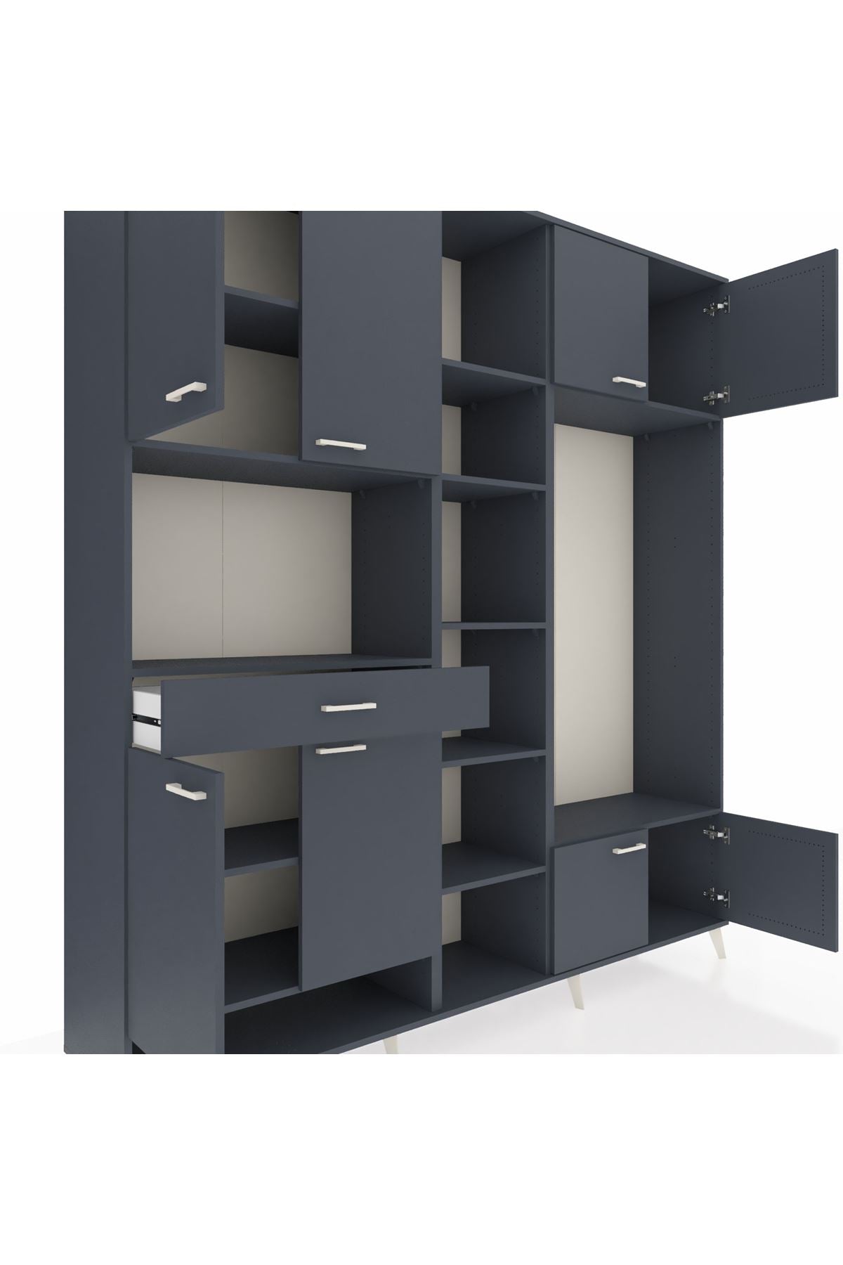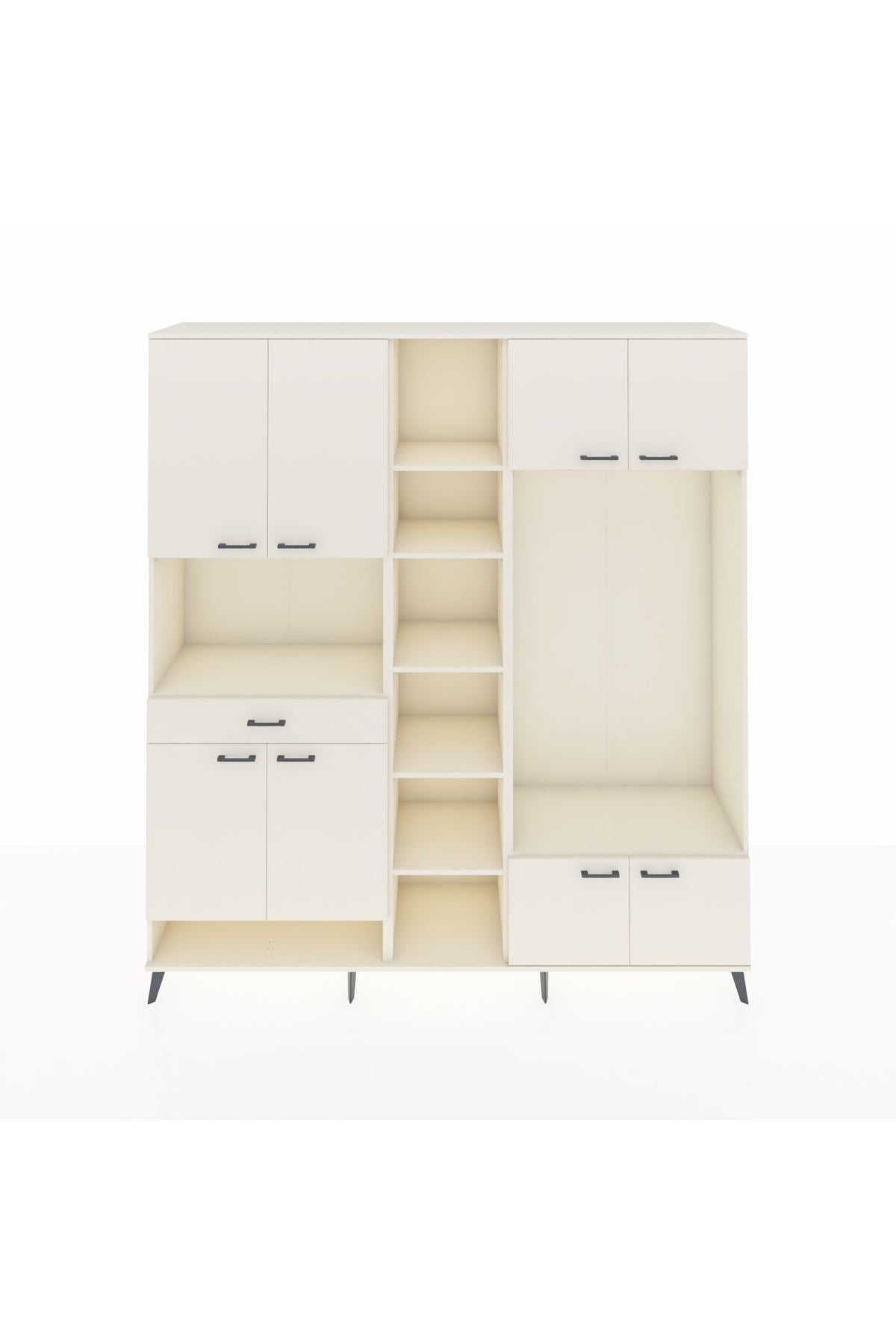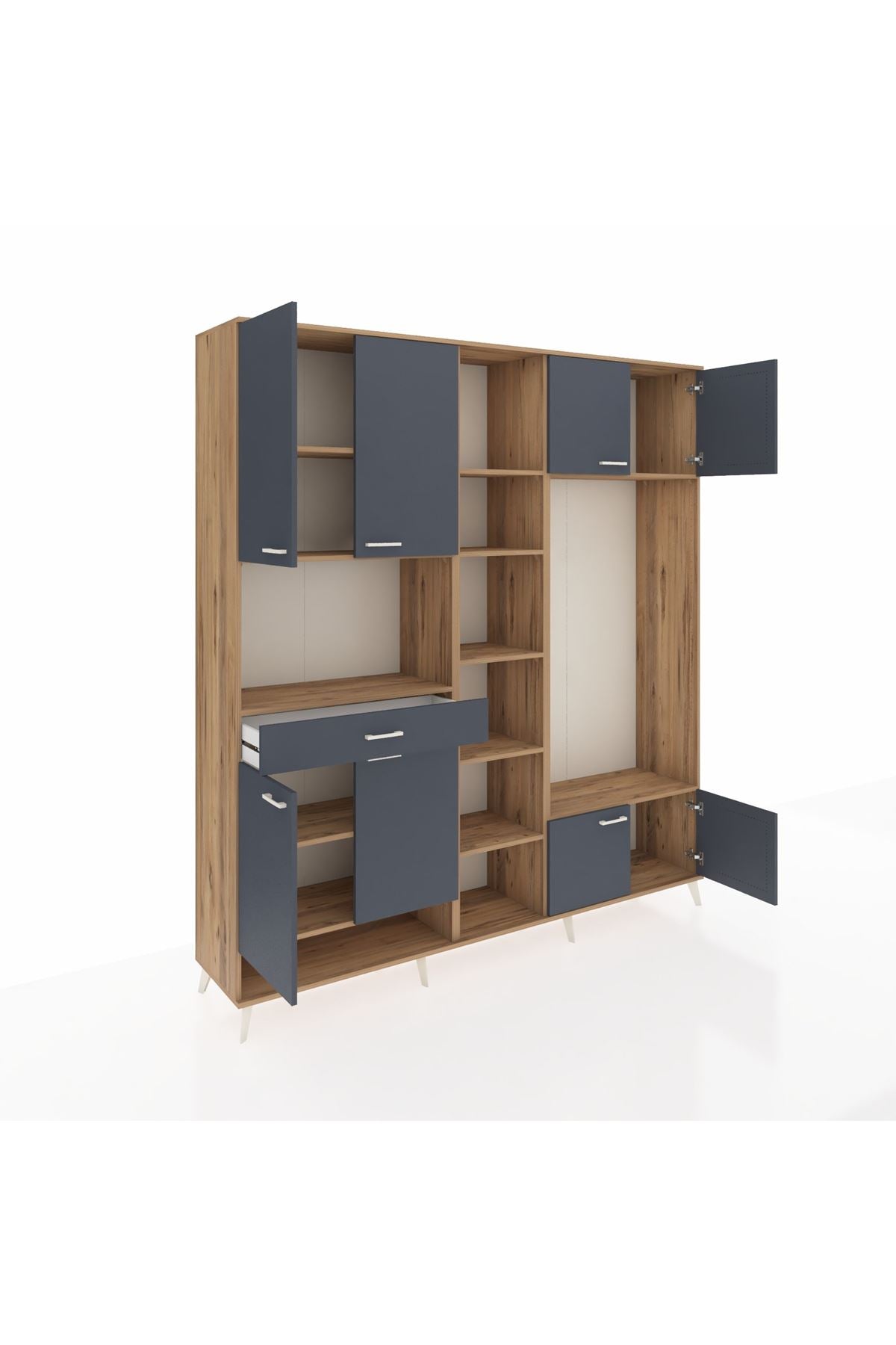 📌 Hyperion Dolap 12 Raflı Tek Çekmeceli 8 Kapaklı 220x44x243