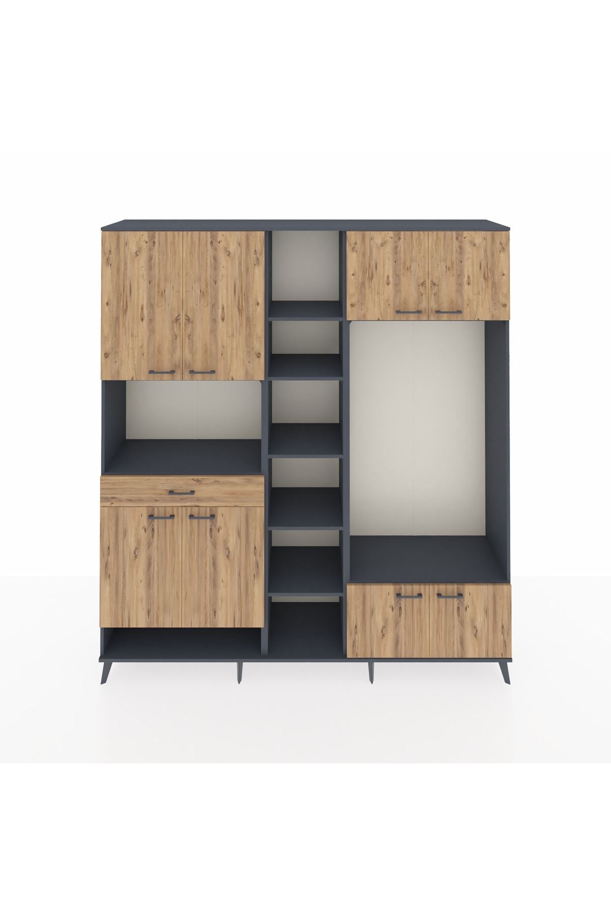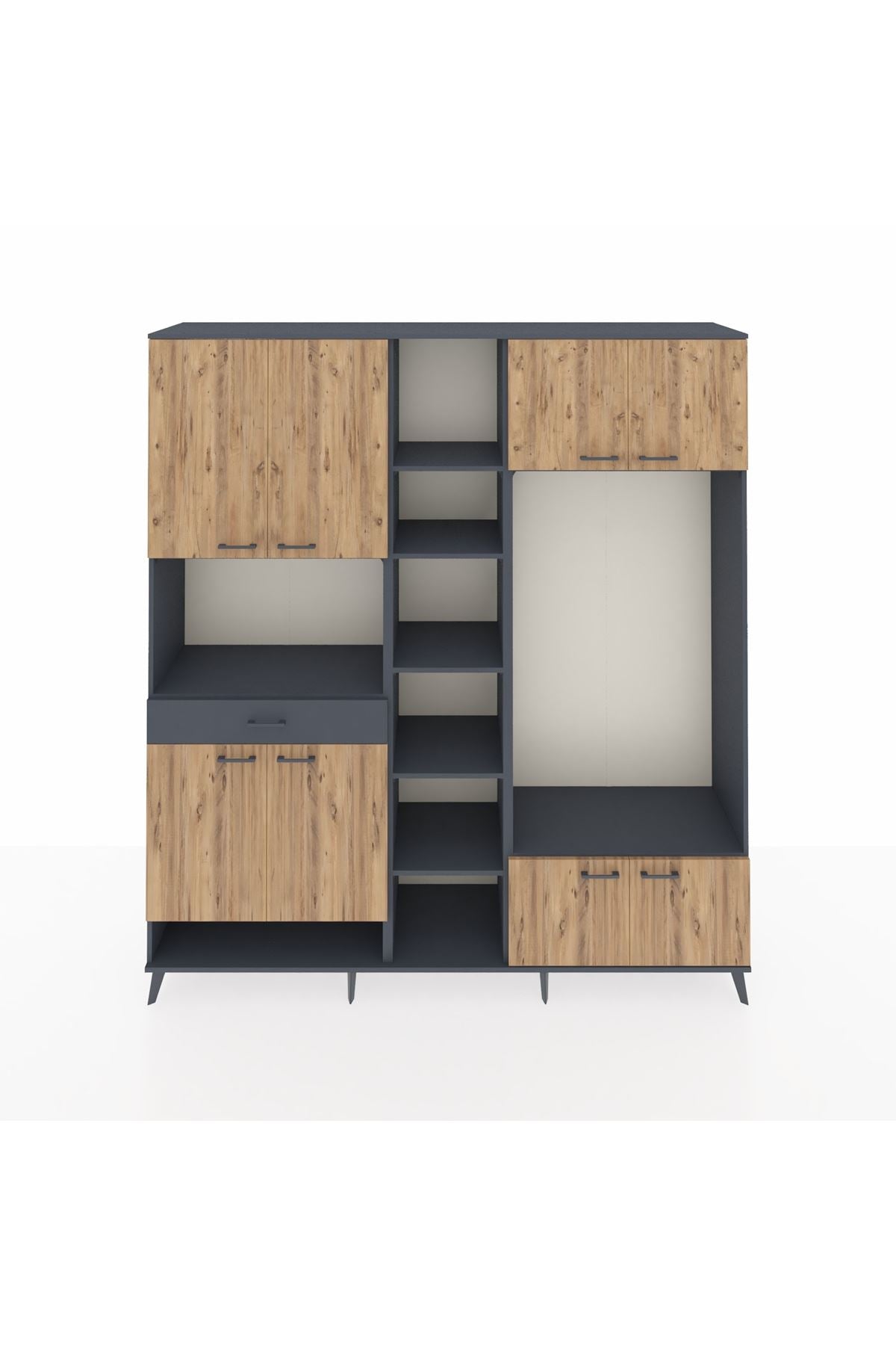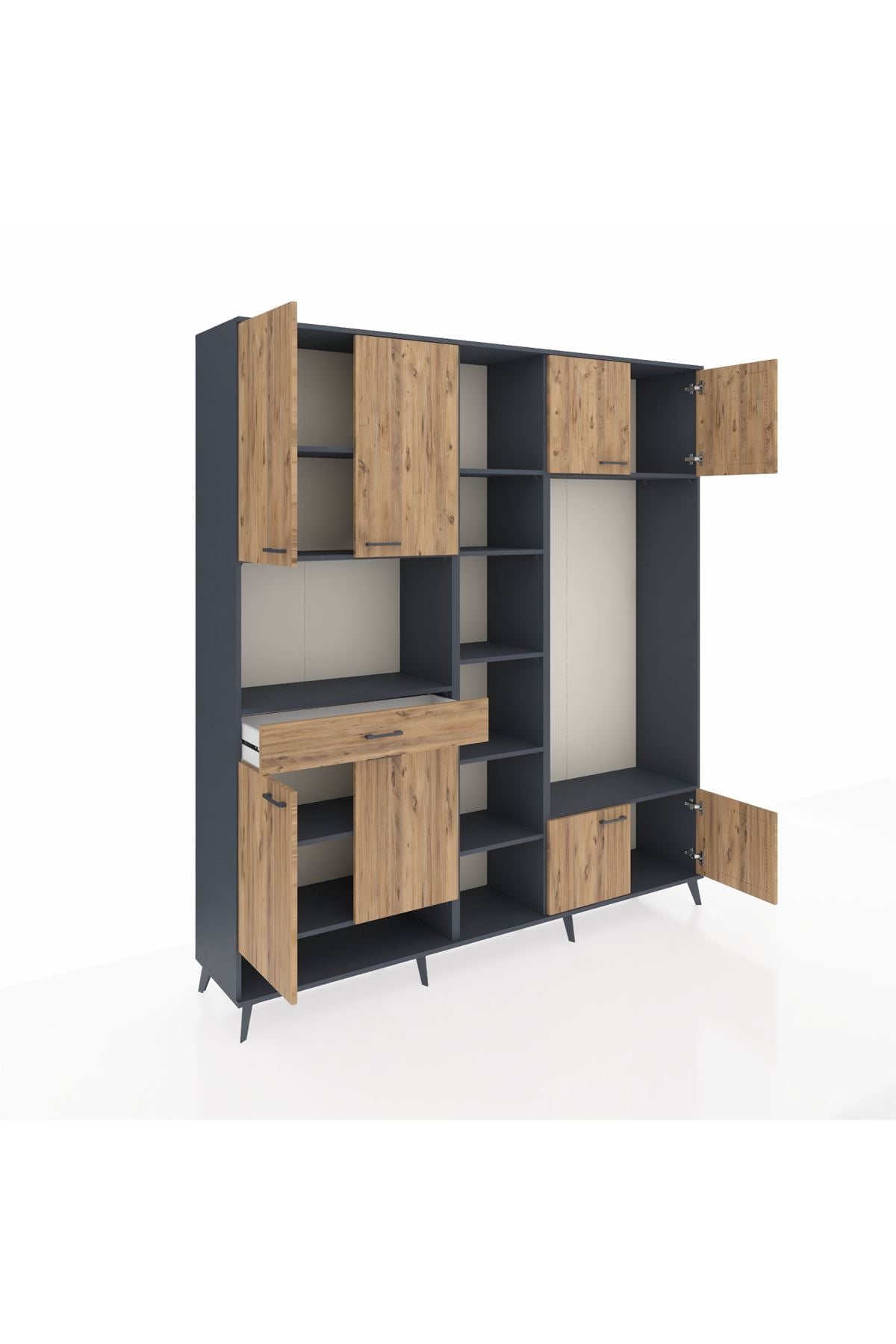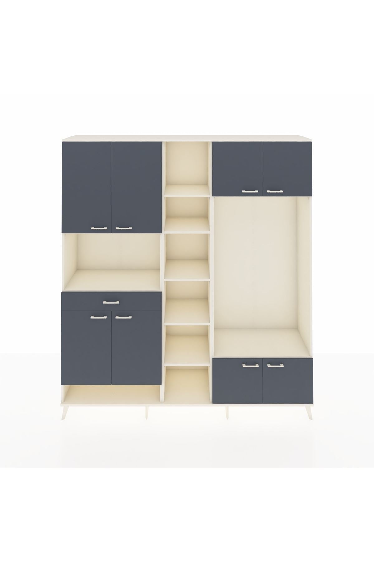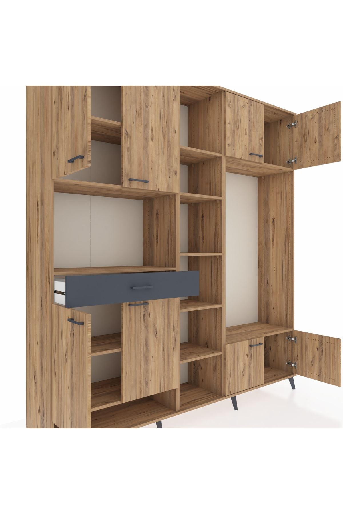 📌 Hyperion Dolap 12 Raflı Tek Çekmeceli 8 Kapaklı 220x44x243