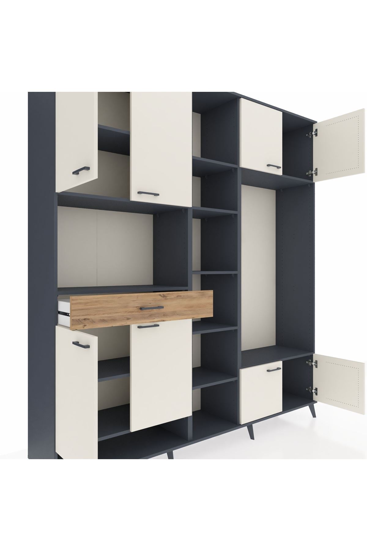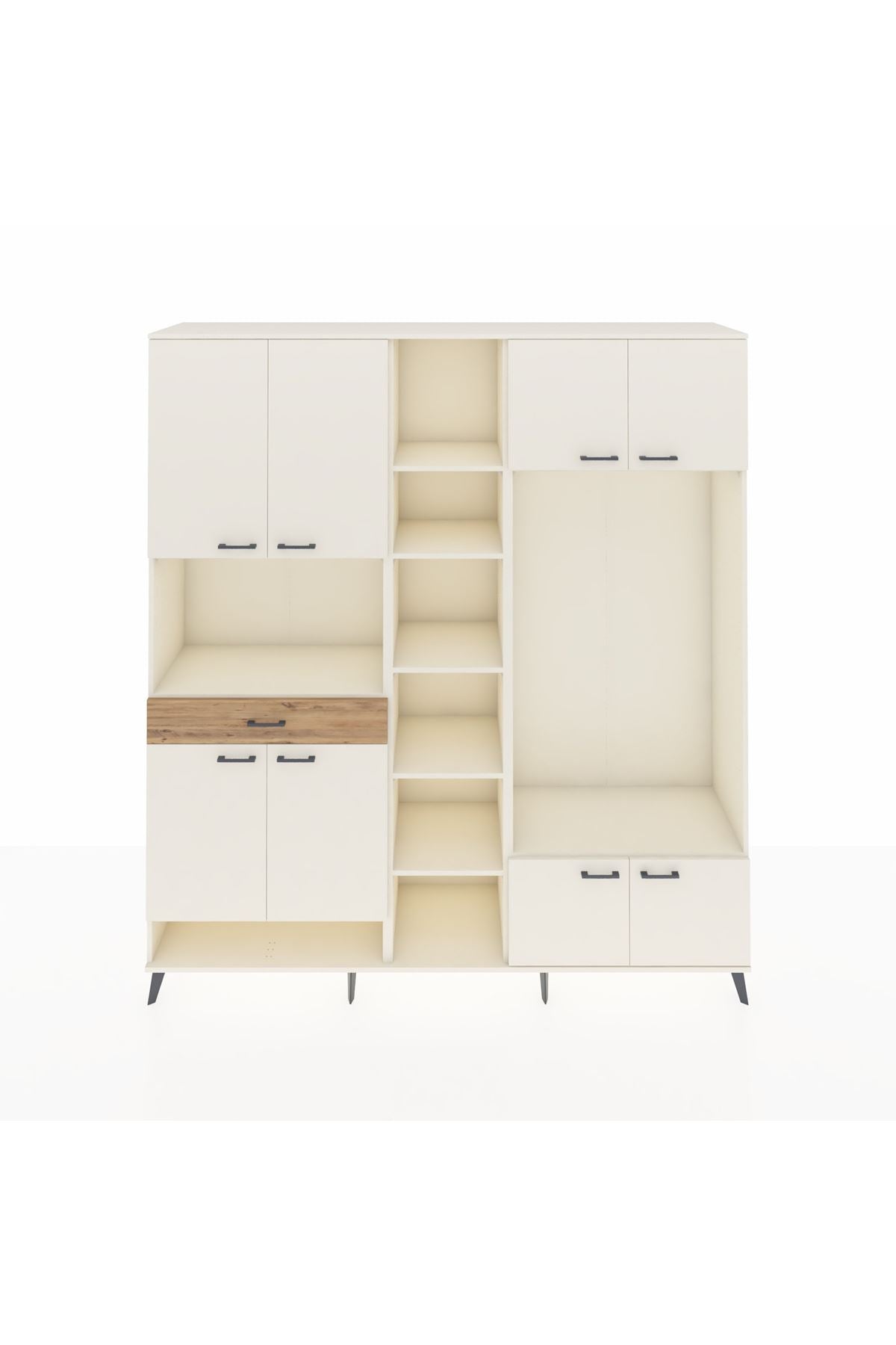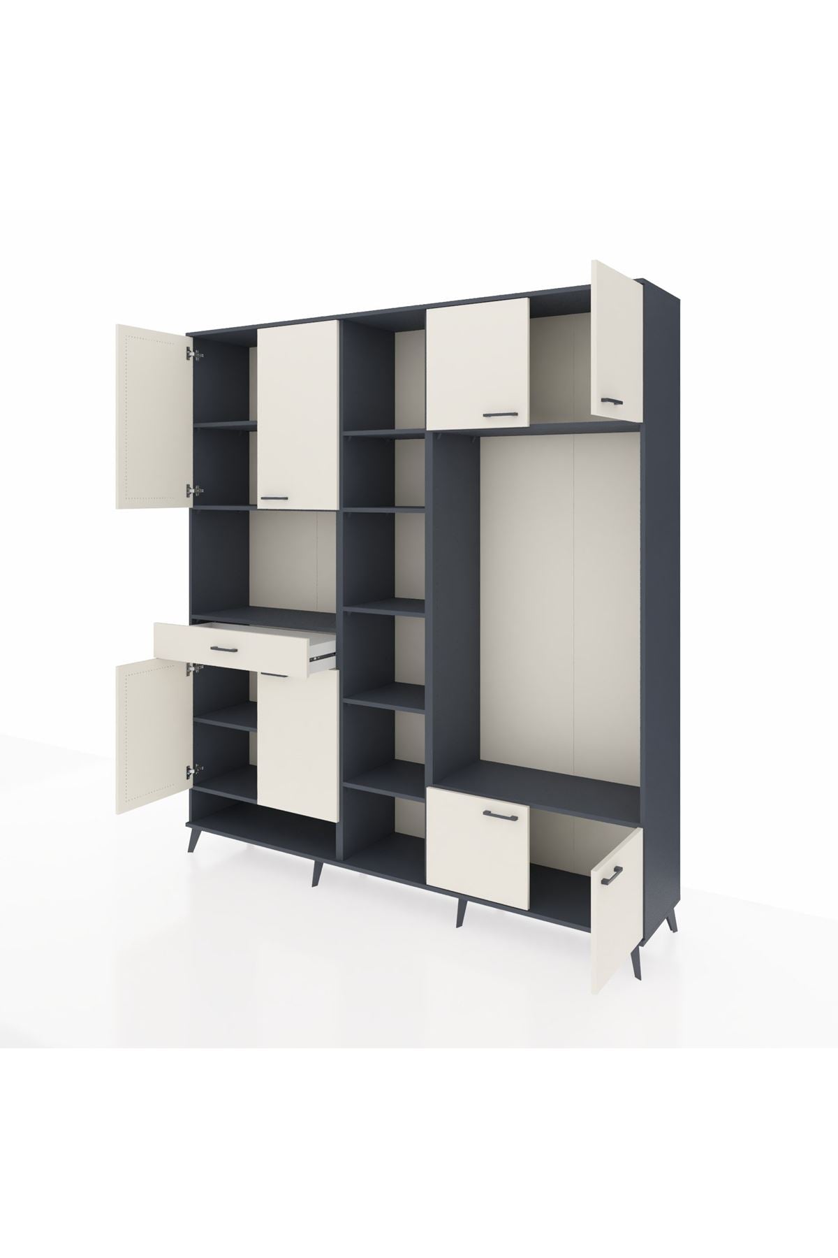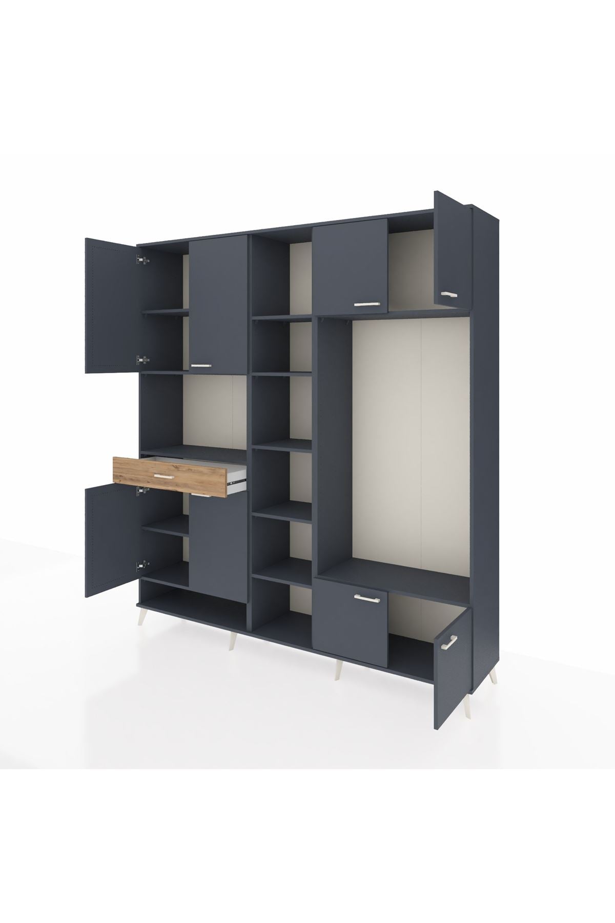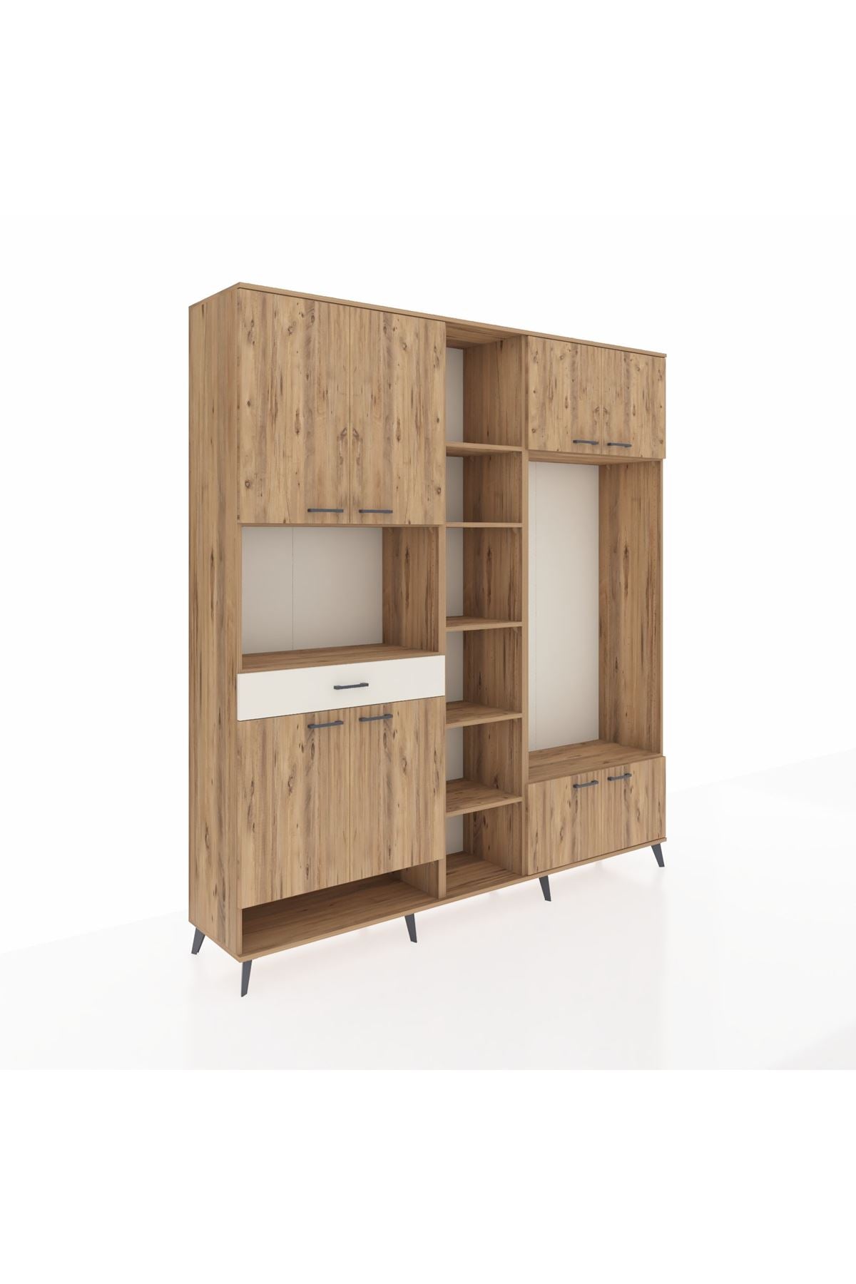 📌 Hyperion Dolap 12 Raflı Tek Çekmeceli 8 Kapaklı 220x44x243