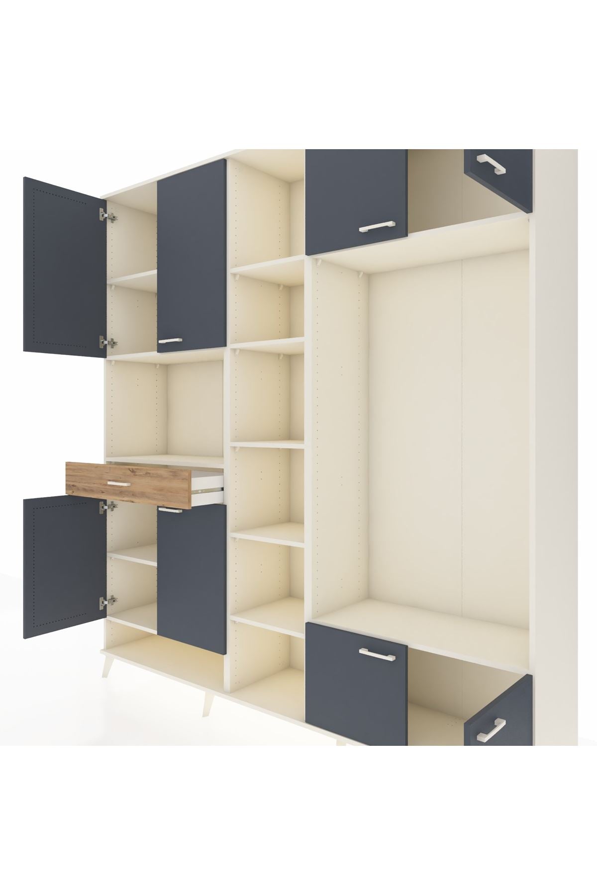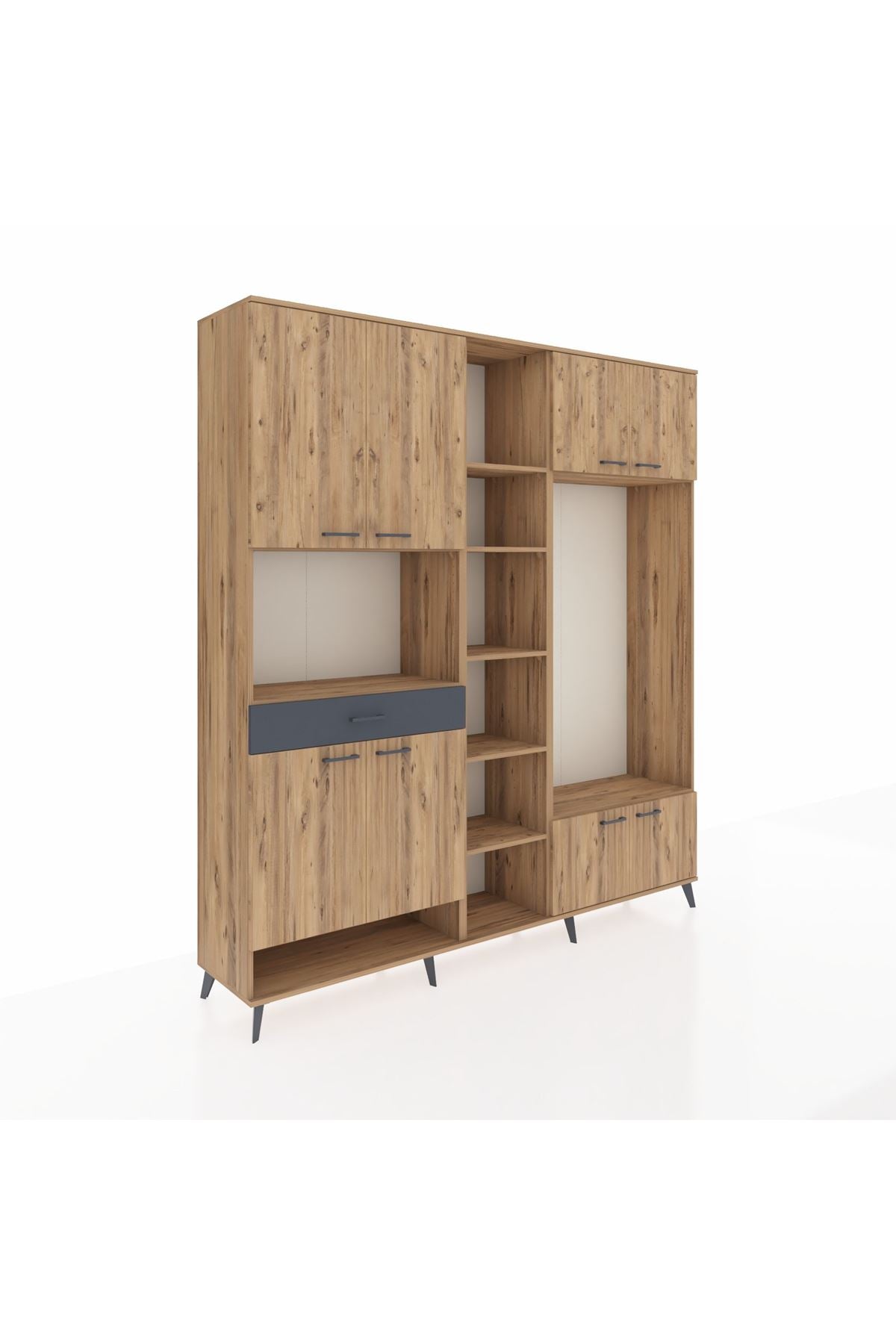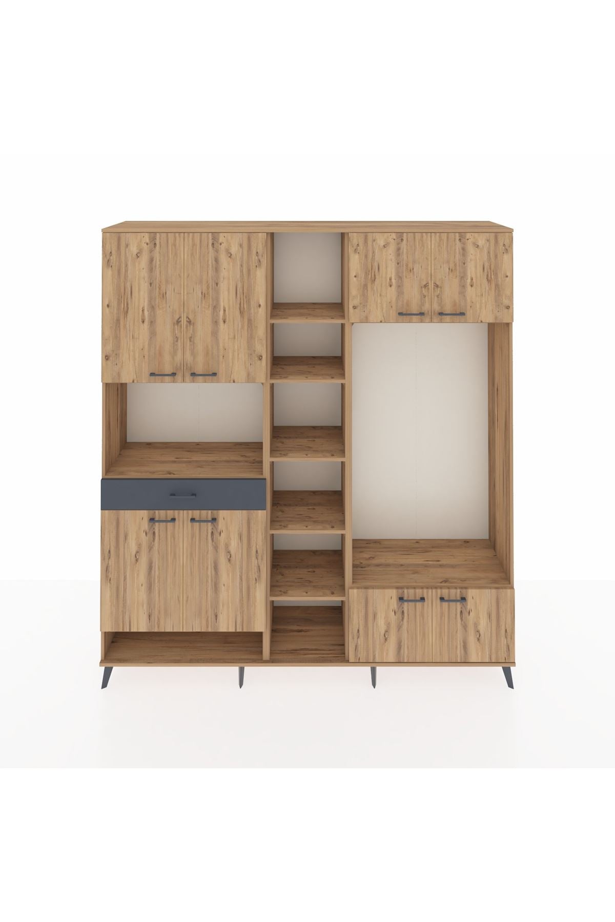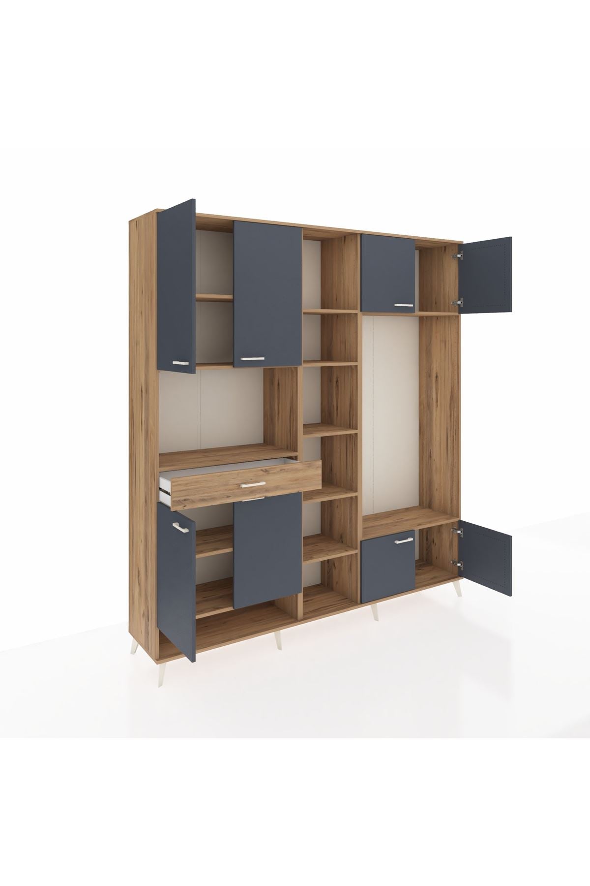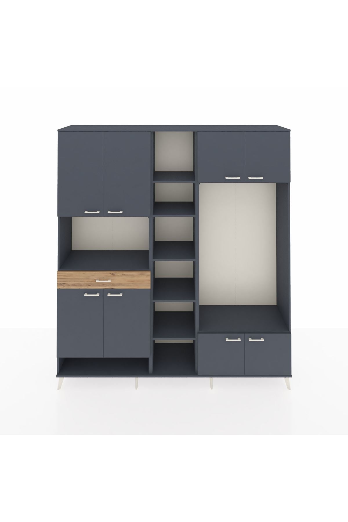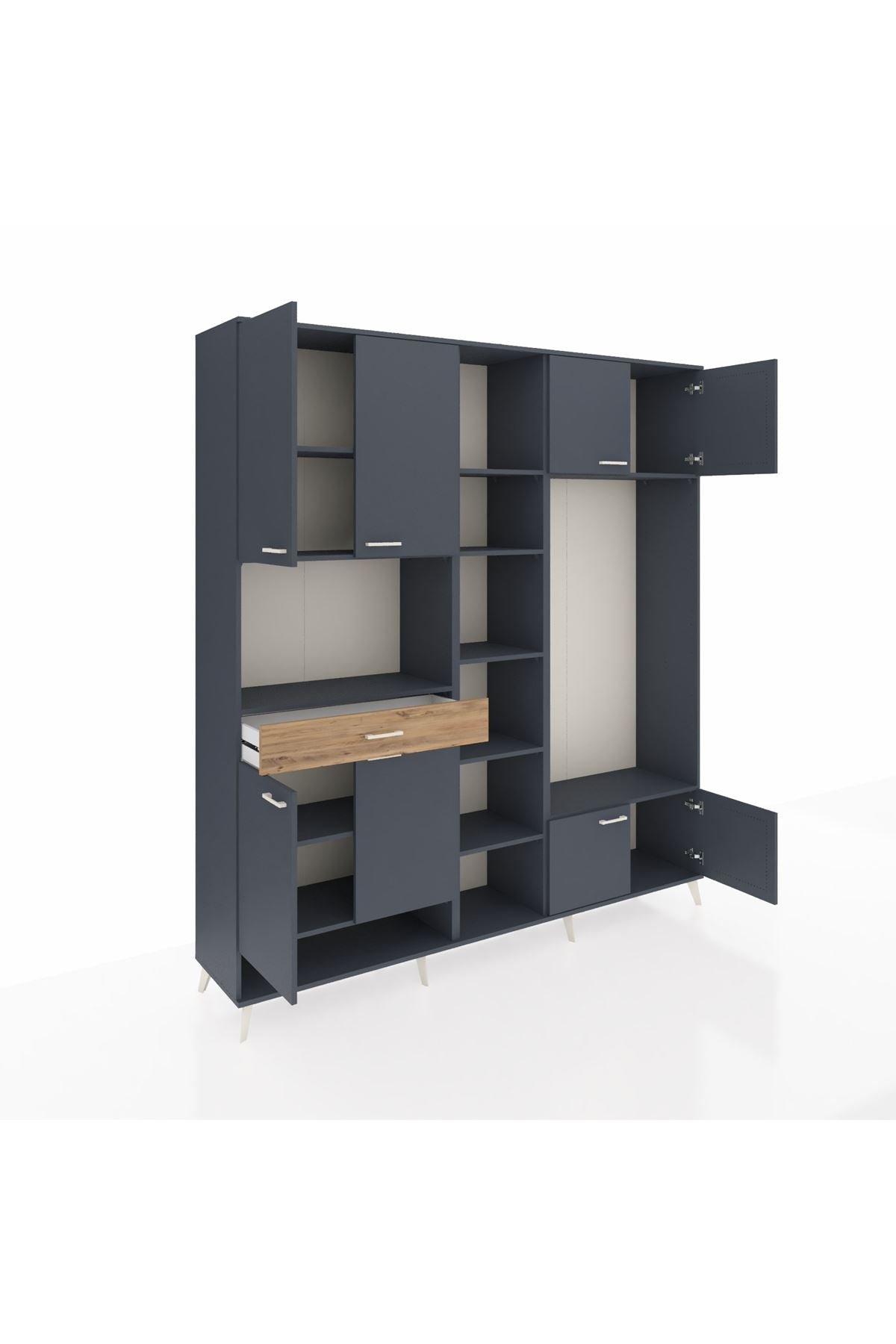 📌 Hyperion Dolap 12 Raflı Tek Çekmeceli 8 Kapaklı 220x44x243