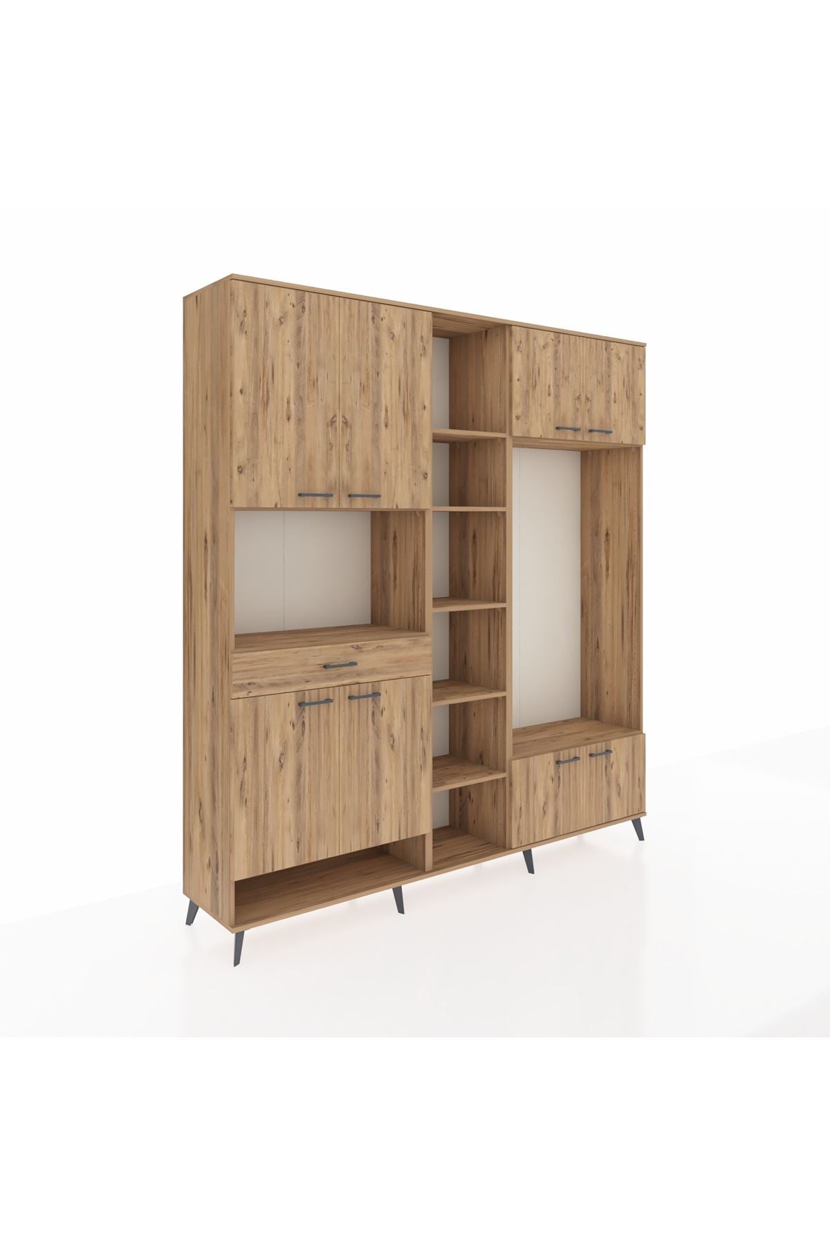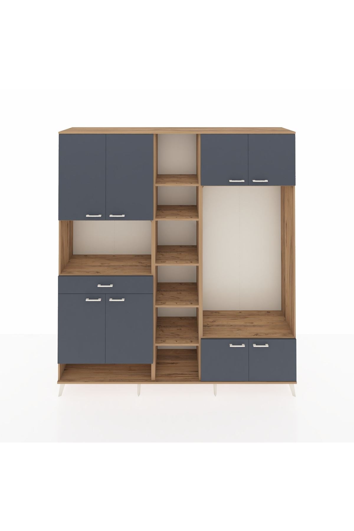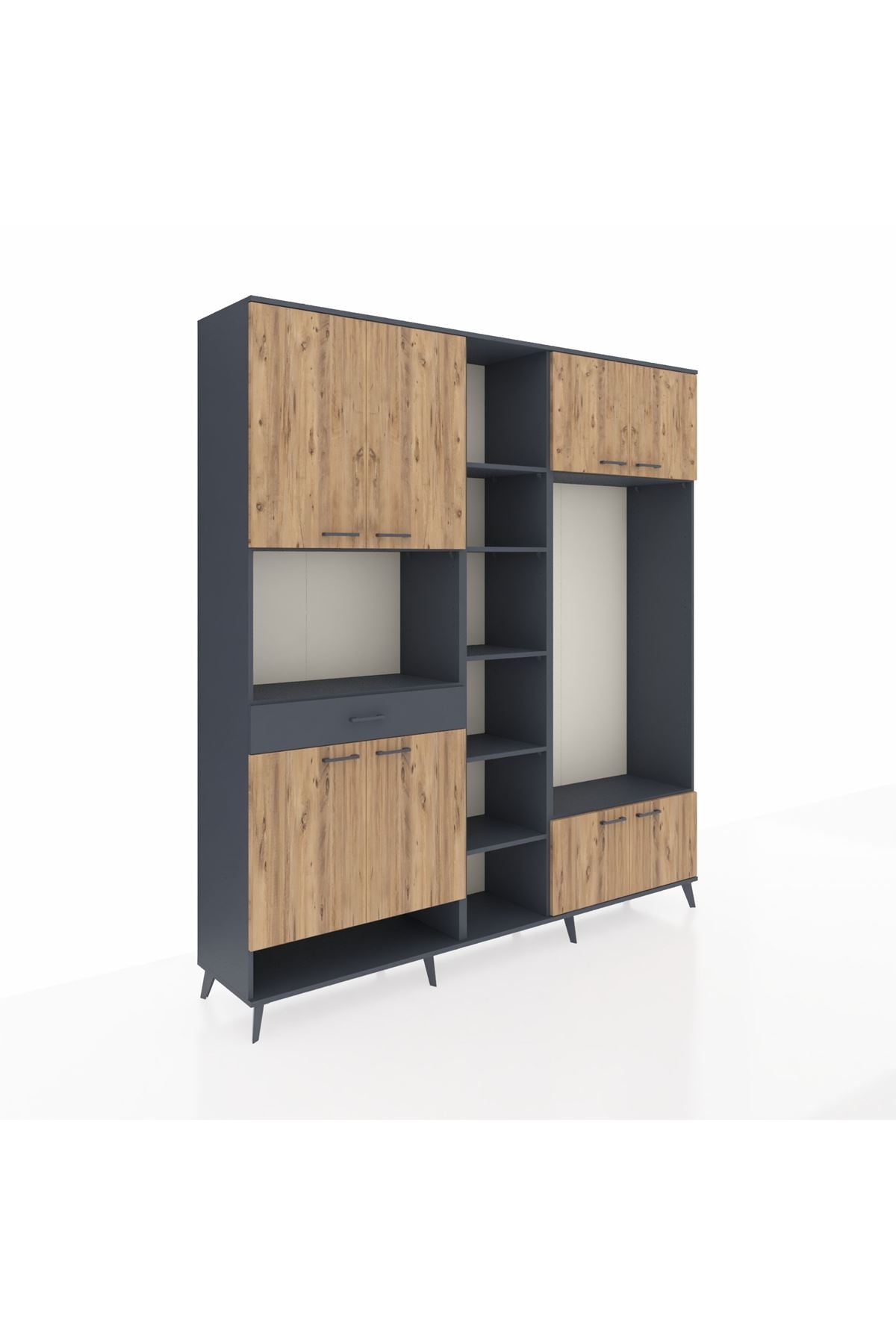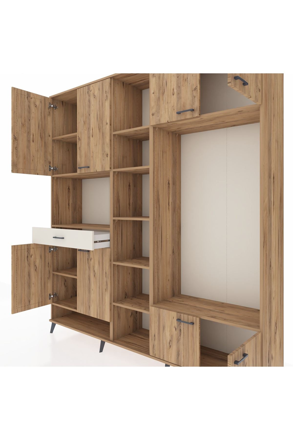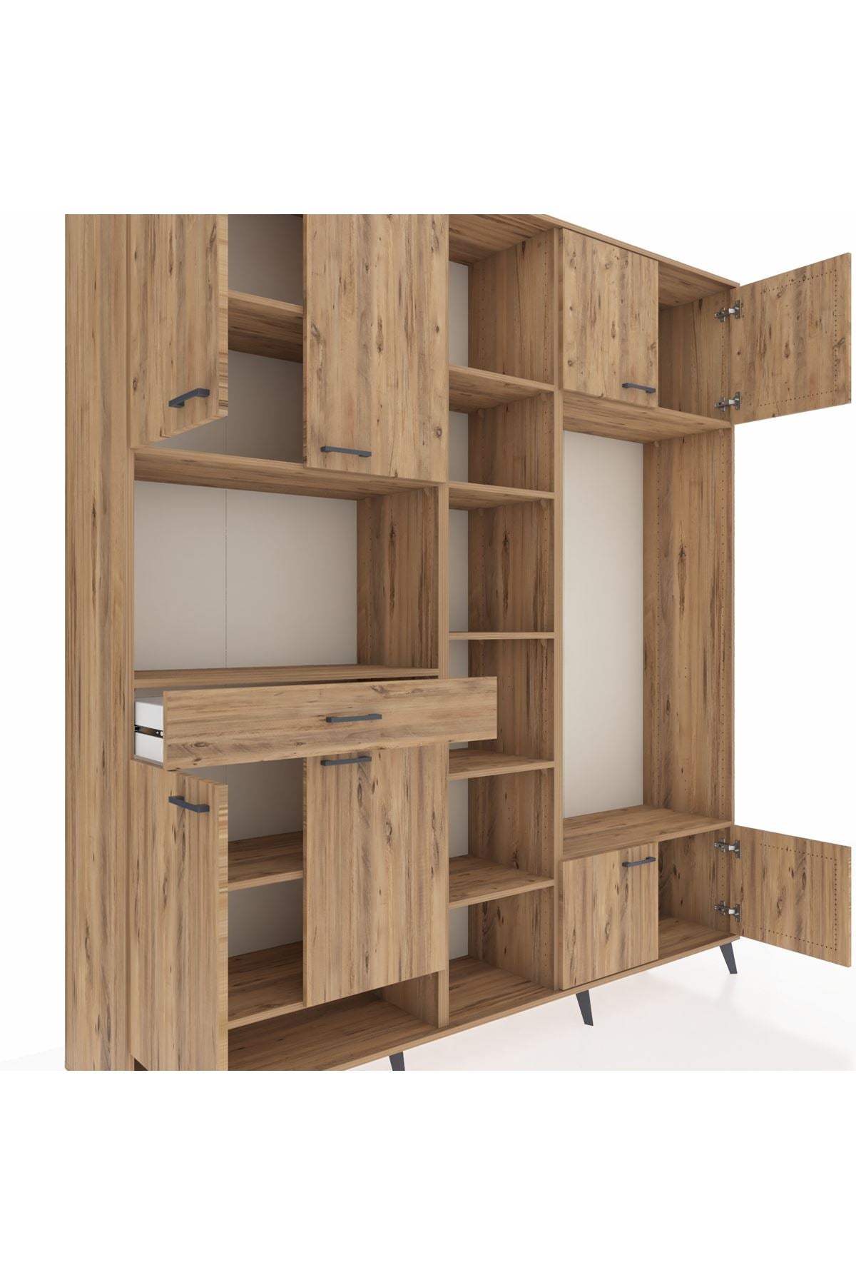 📌 Hyperion Dolap 12 Raflı Tek Çekmeceli 8 Kapaklı 220x44x243