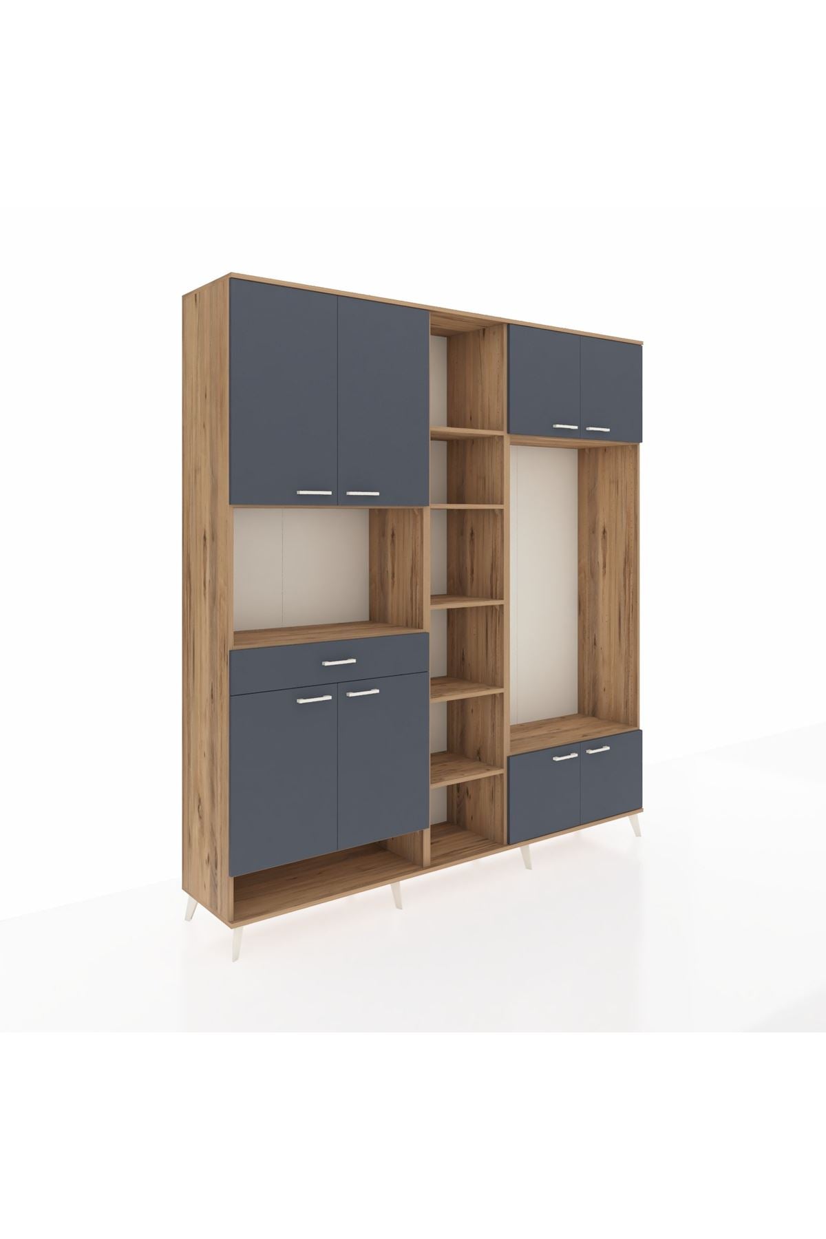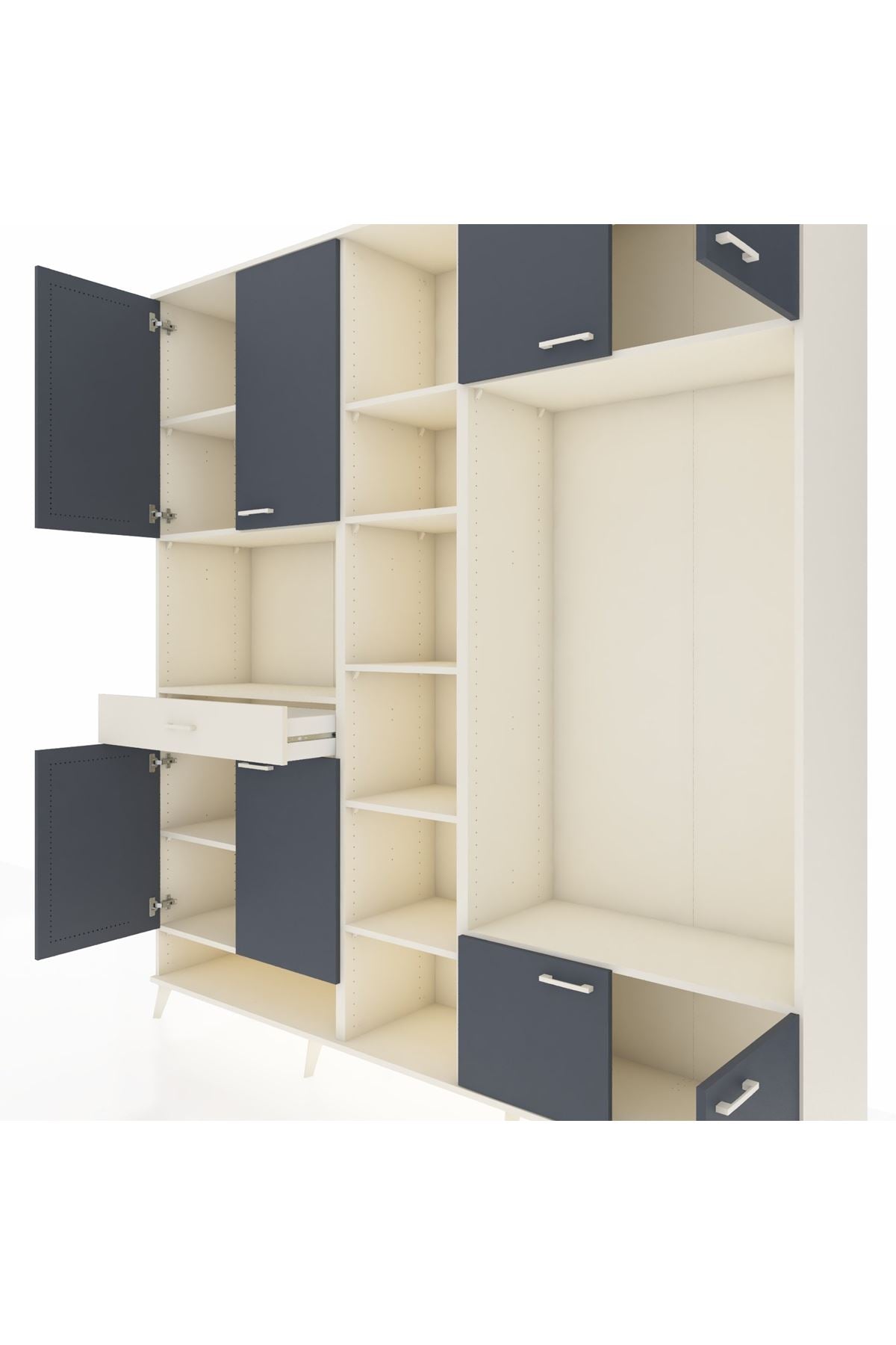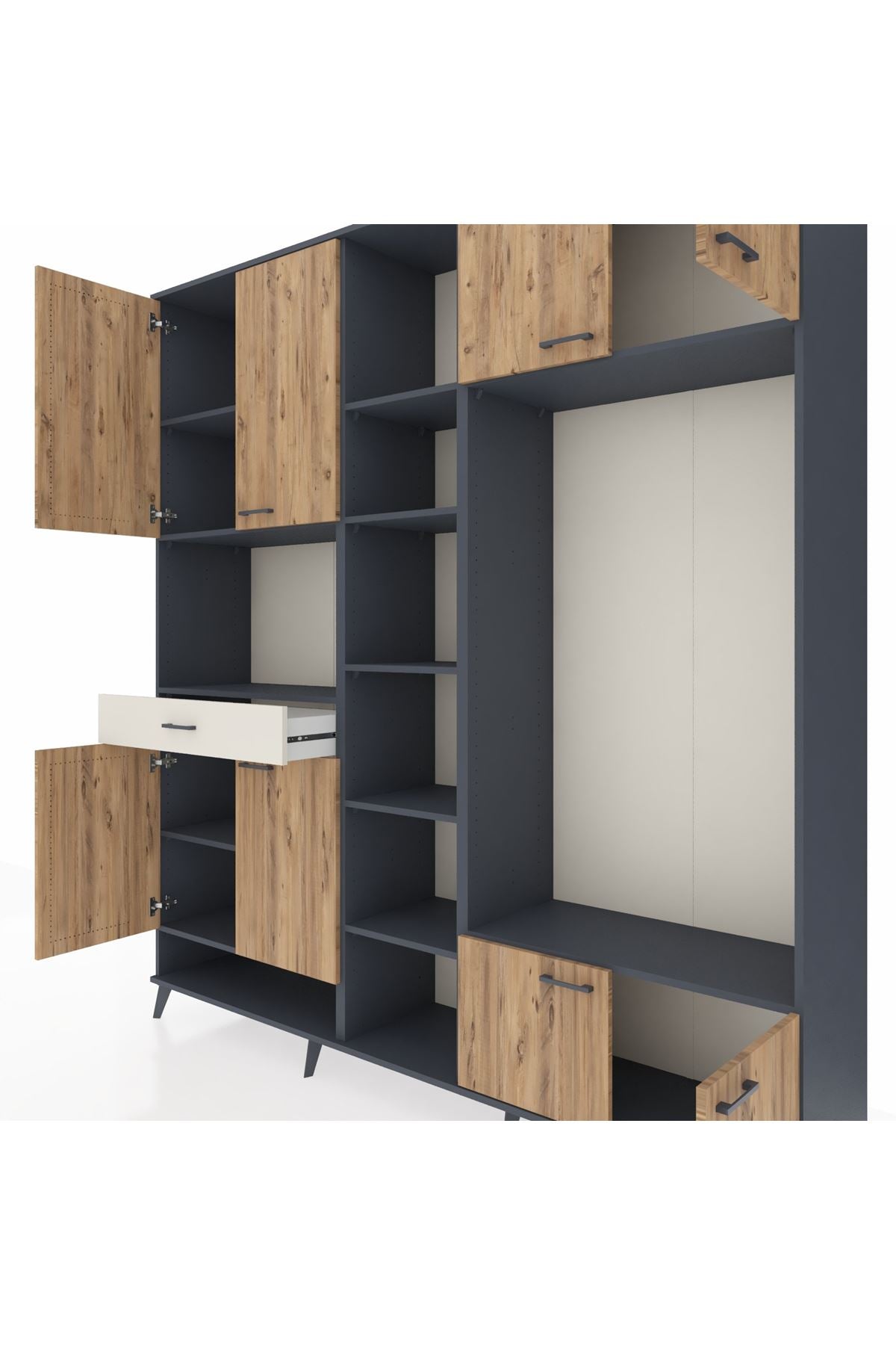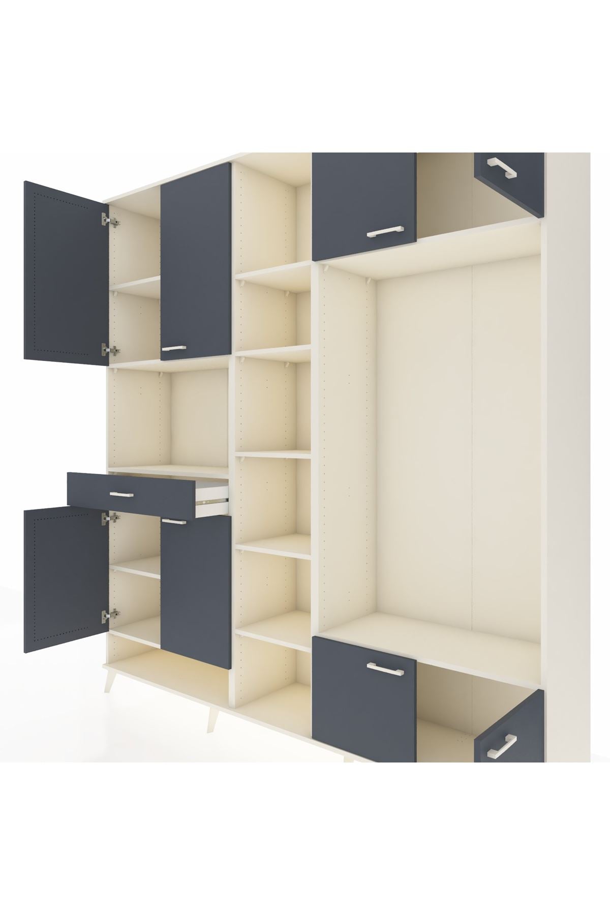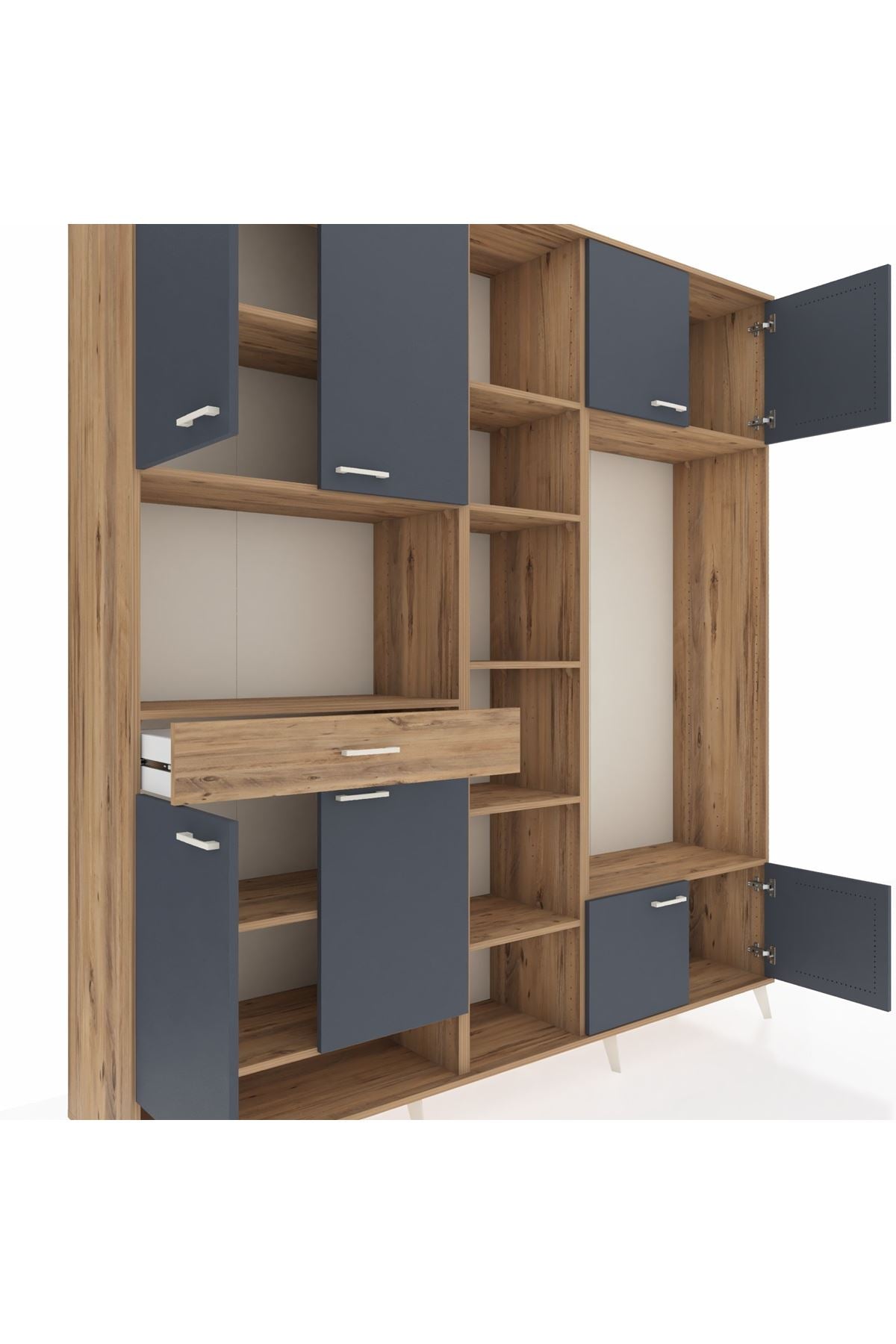 📌 Hyperion Dolap 12 Raflı Tek Çekmeceli 8 Kapaklı 220x44x243