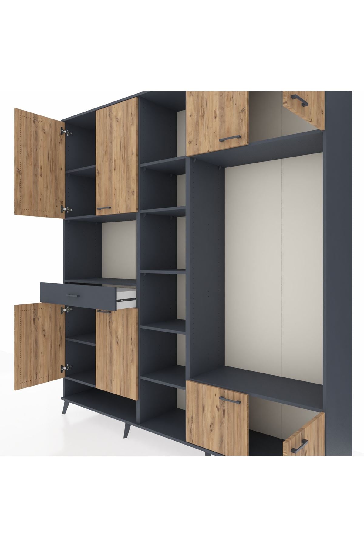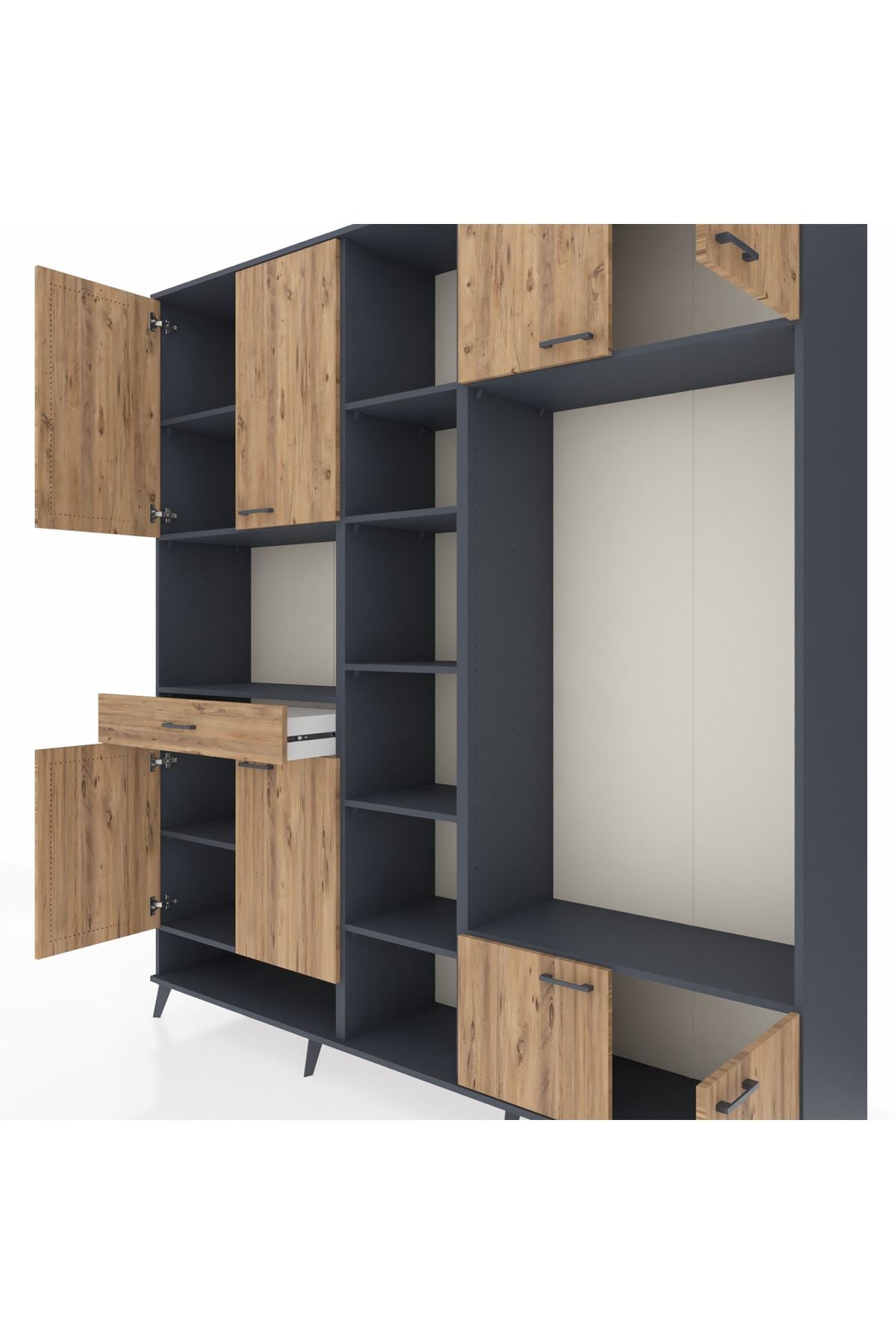 Hyperion dolap, yatak odası, giyinme odası, oturma odası veya çalışma odası gibi farklı yaşam alanlarında kullanıma uygundur. Geniş depolama alanı ve şık tasarımı sayesinde evinize kolayca uyum sağlar.