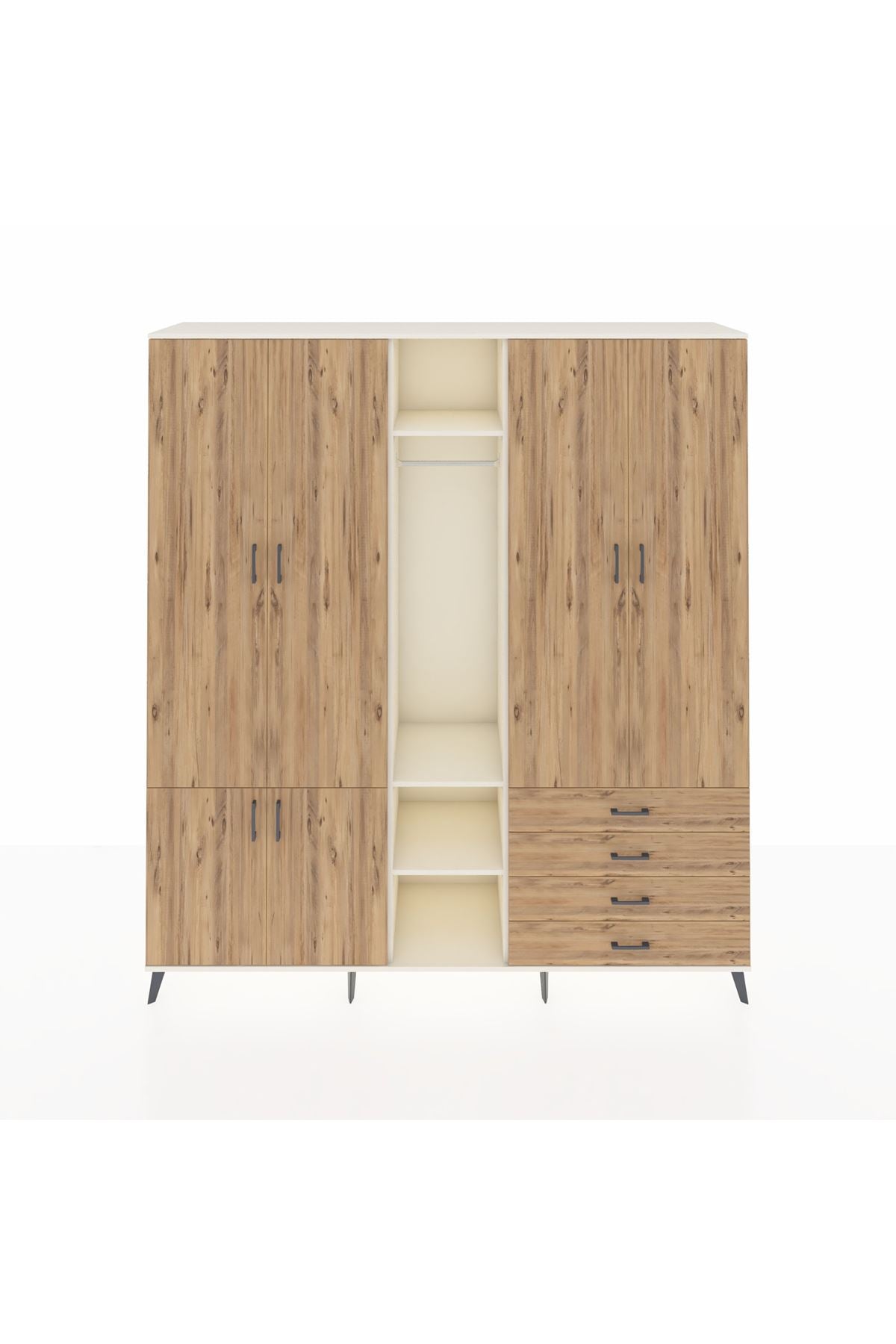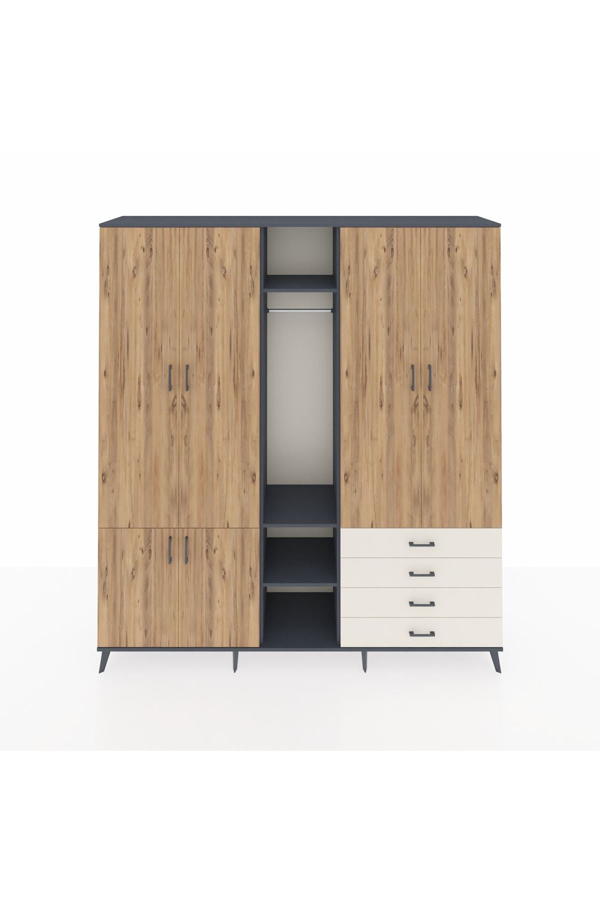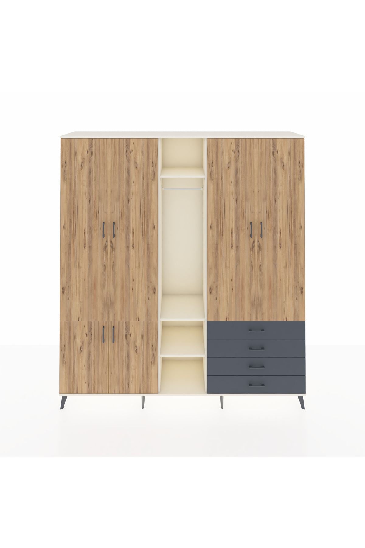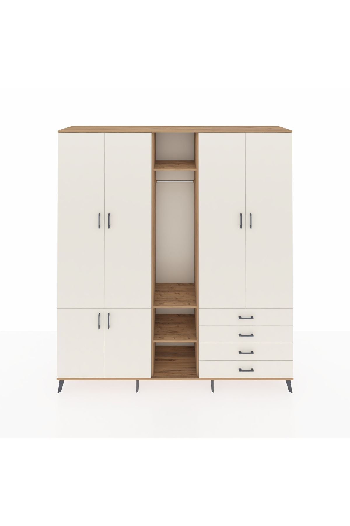 🦾 Metal ayaklar, dolaba modern bir görünüm kazandırırken, aynı zamanda sağlam bir temel oluşturur. Metal kulplar ise, dolabın açılıp kapanmasını kolaylaştırır ve şık bir detay olarak öne çıkar.