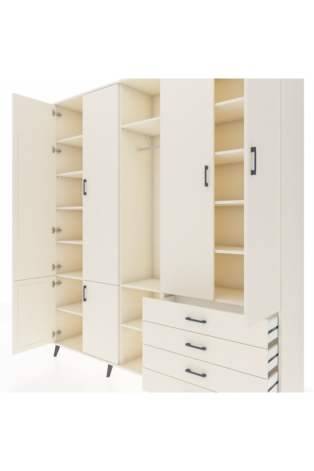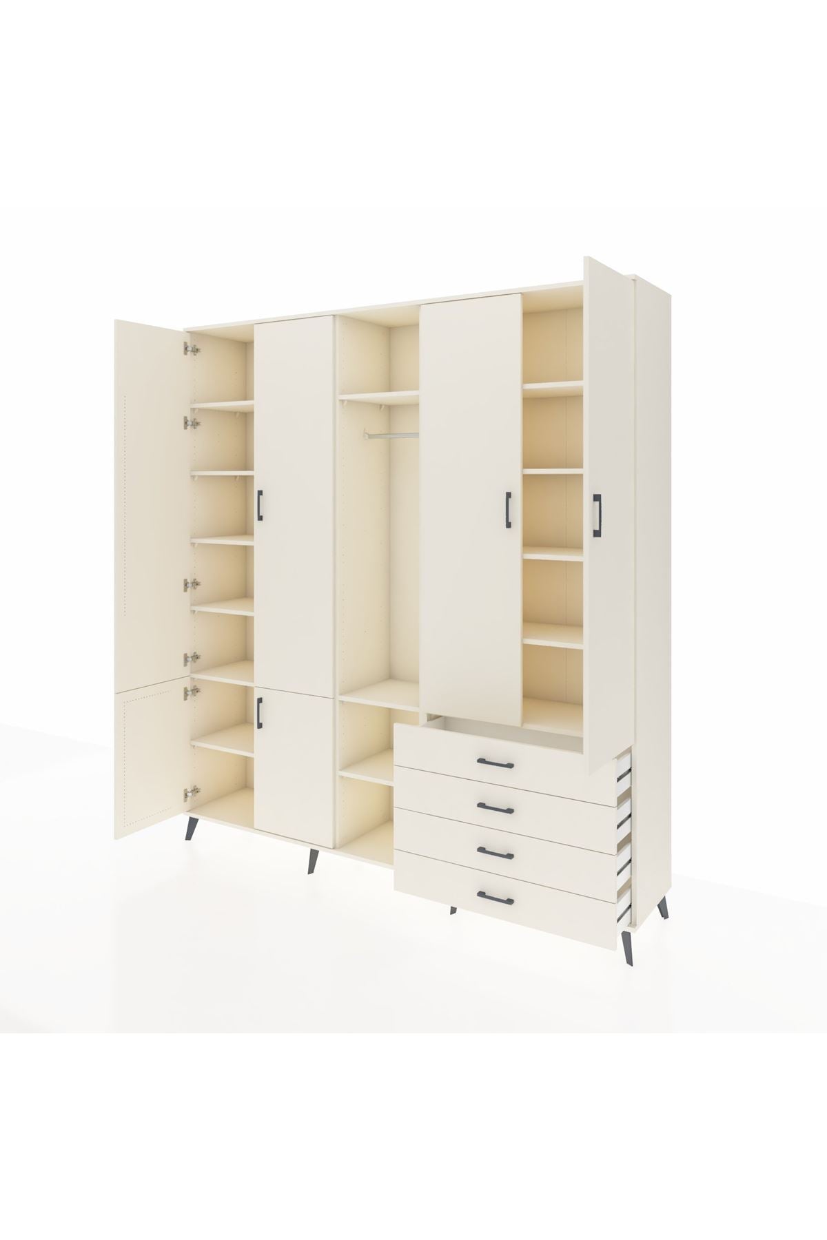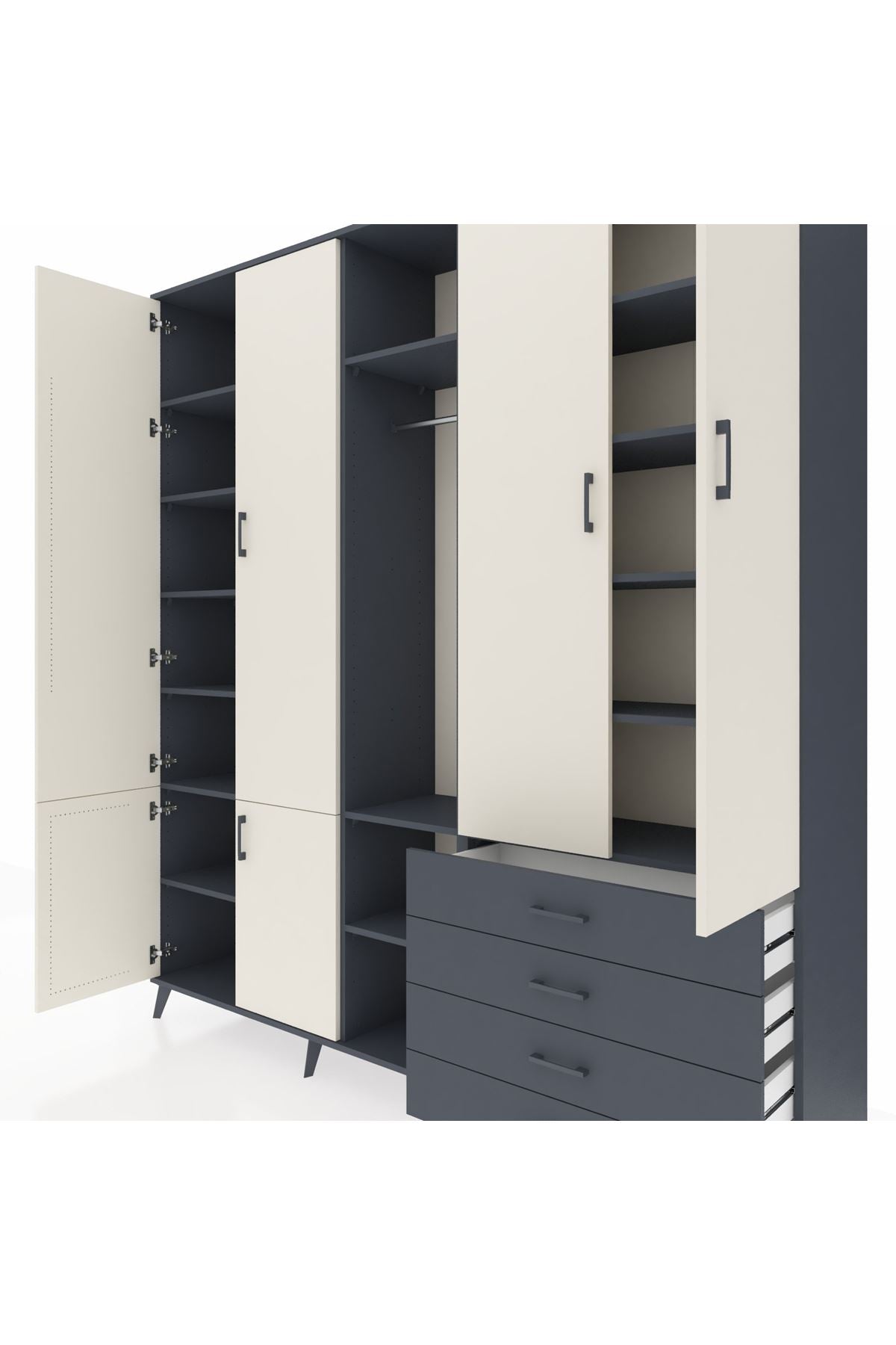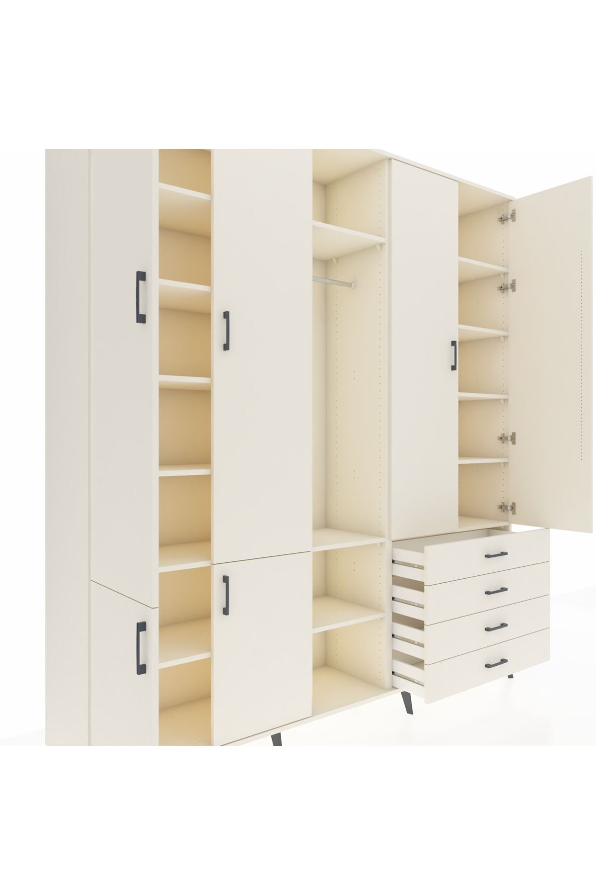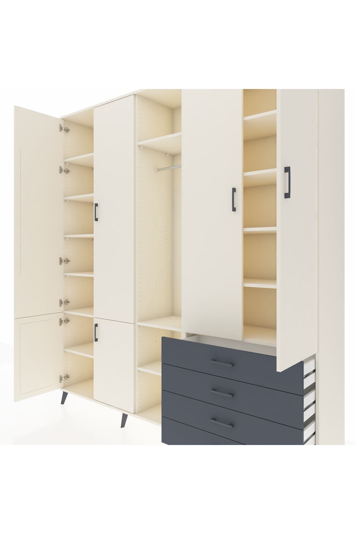 📌 Hyperion Dolap 14 Raflı 4 Çekmeceli Tek Askılı 220x44x243