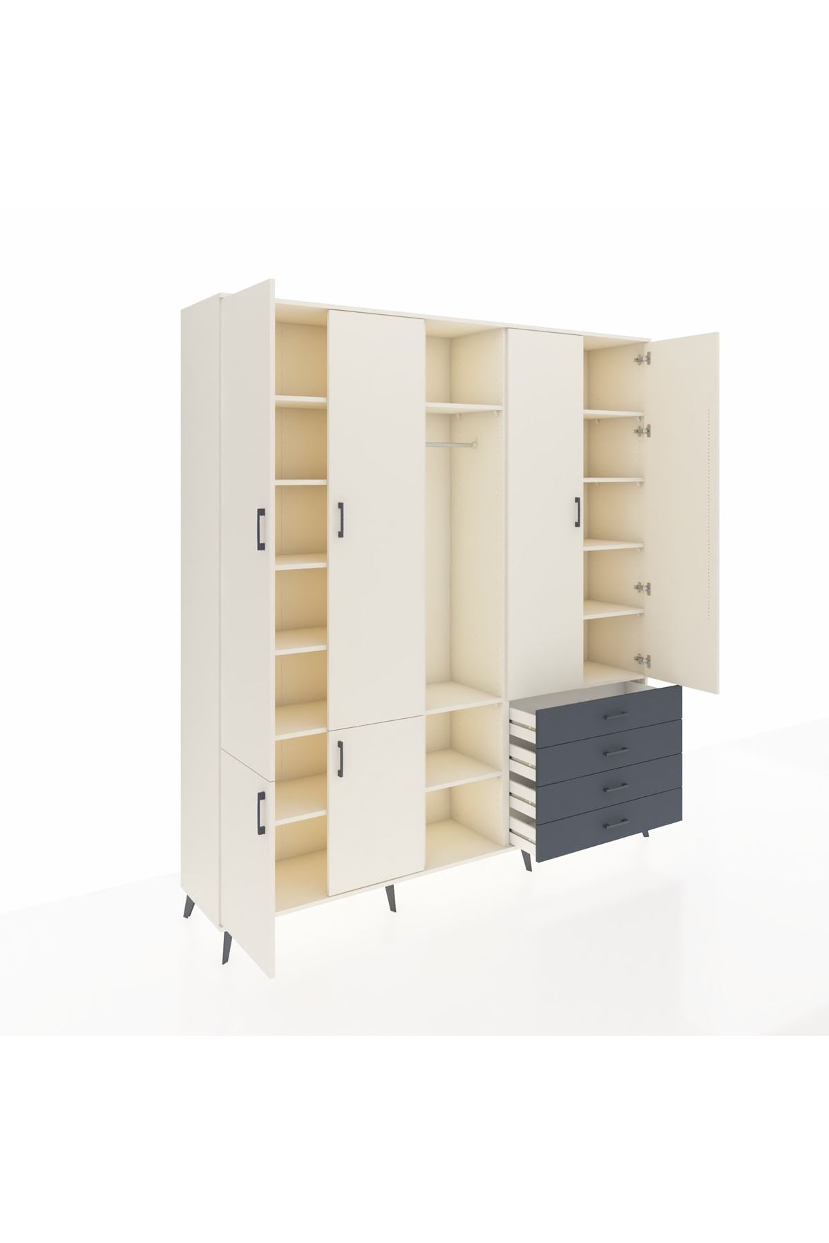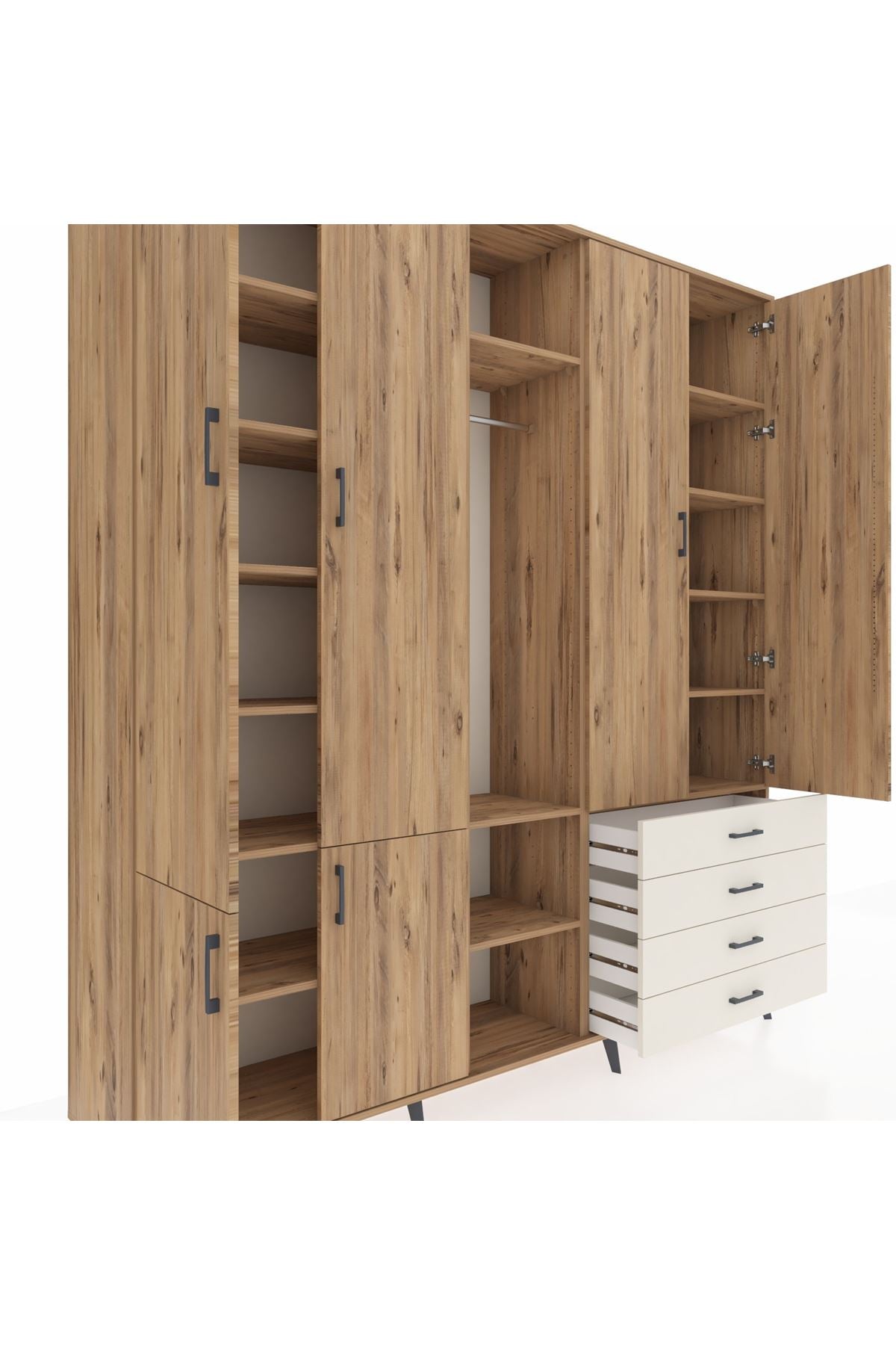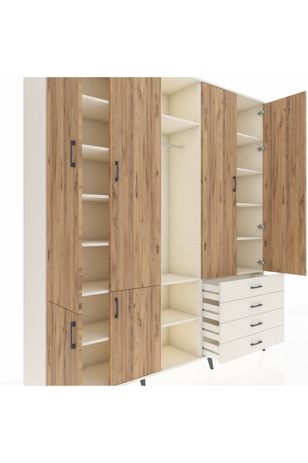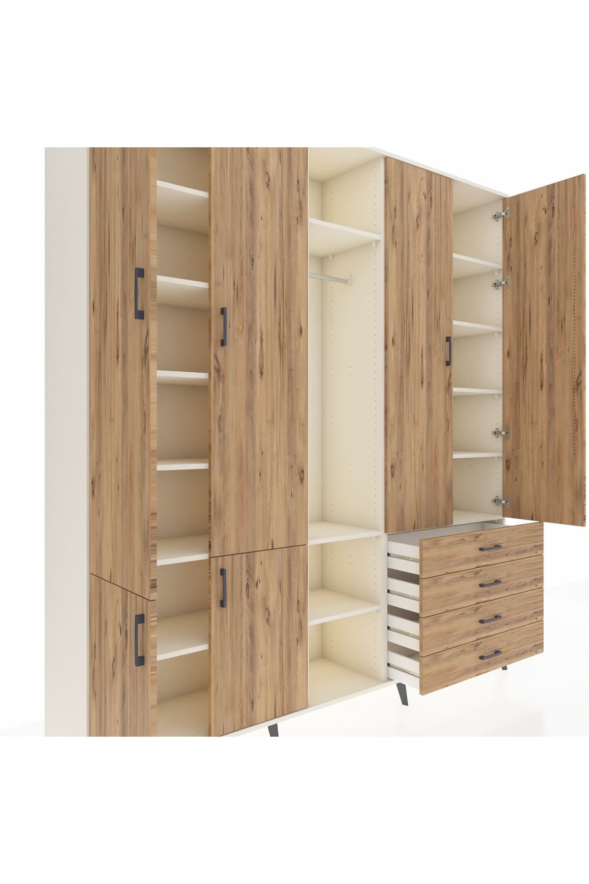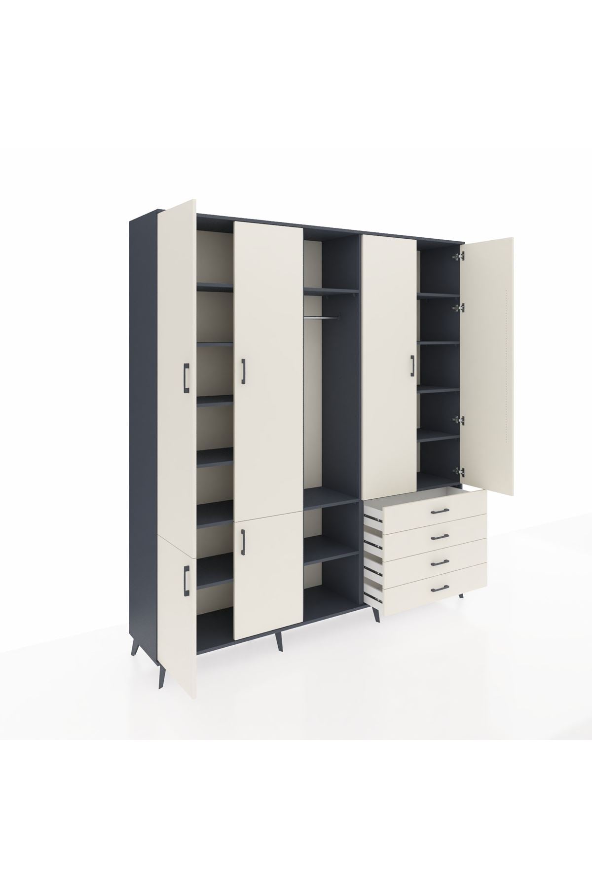📌 Hyperion Dolap 14 Raflı 4 Çekmeceli Tek Askılı 220x44x243