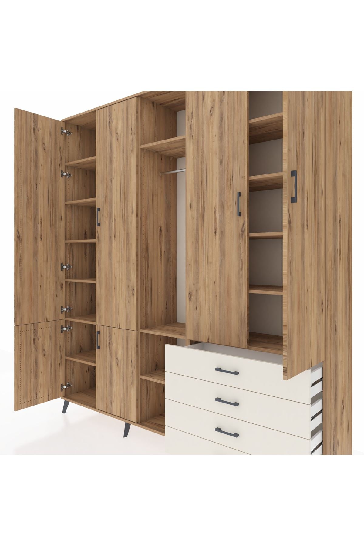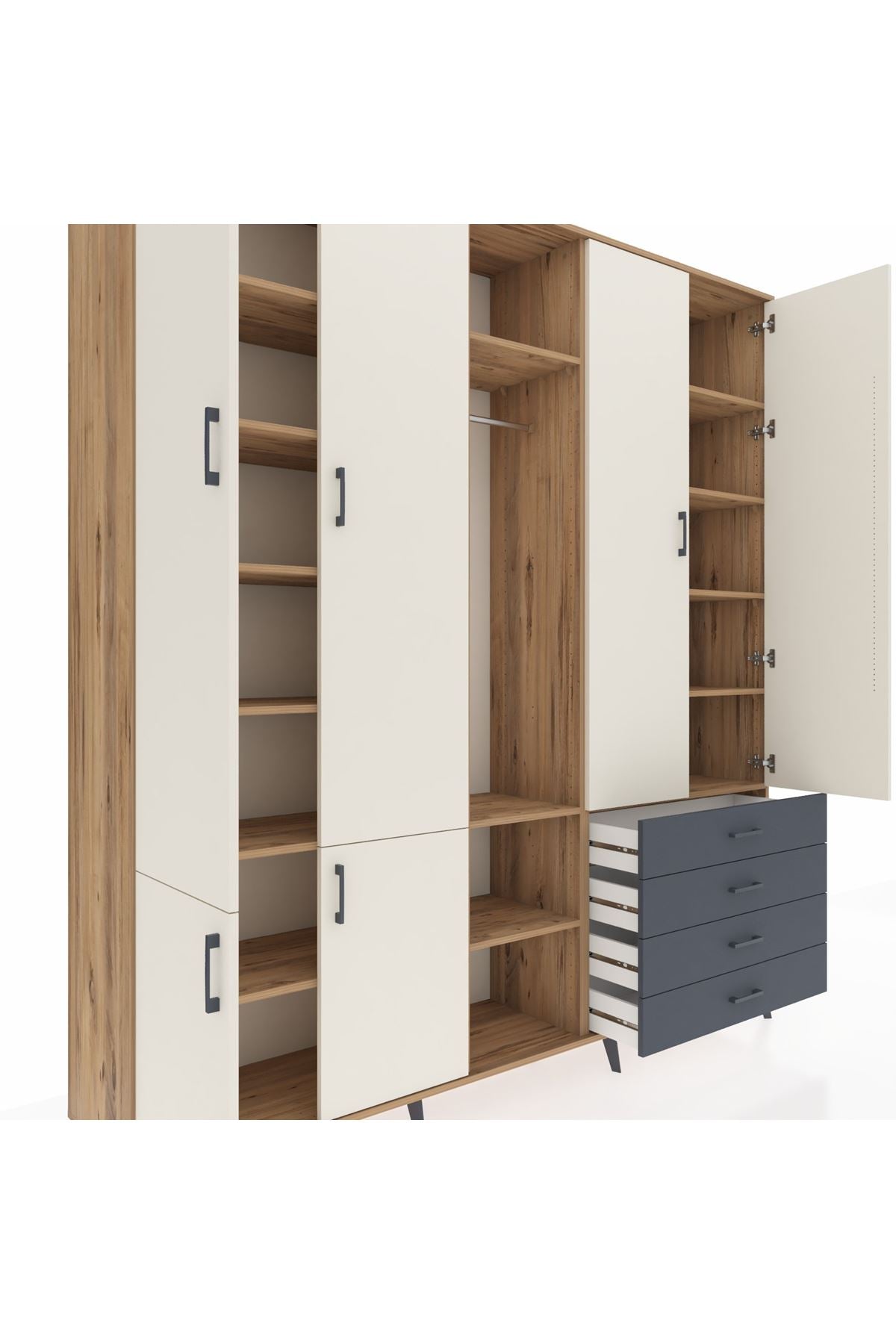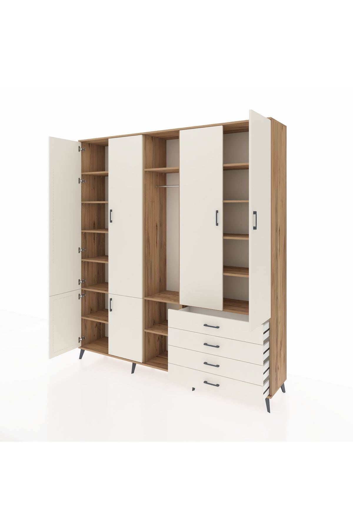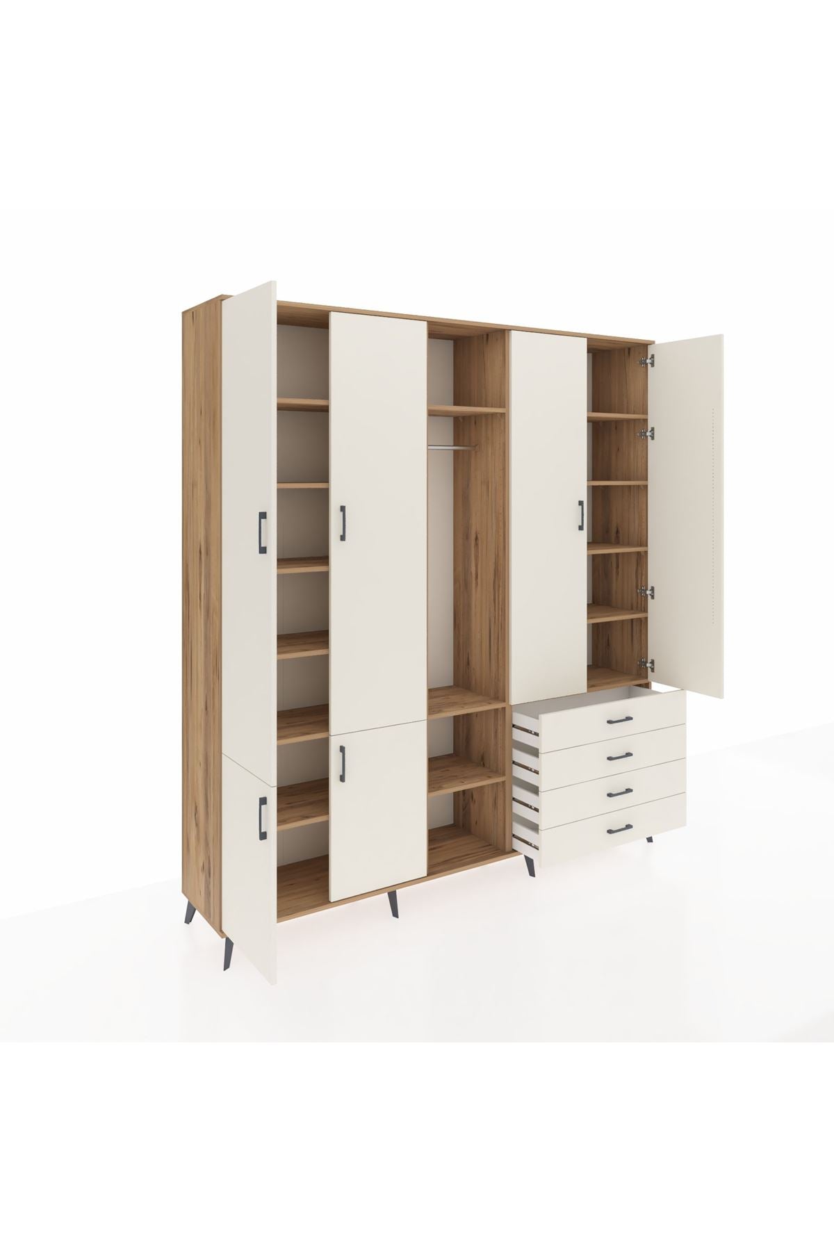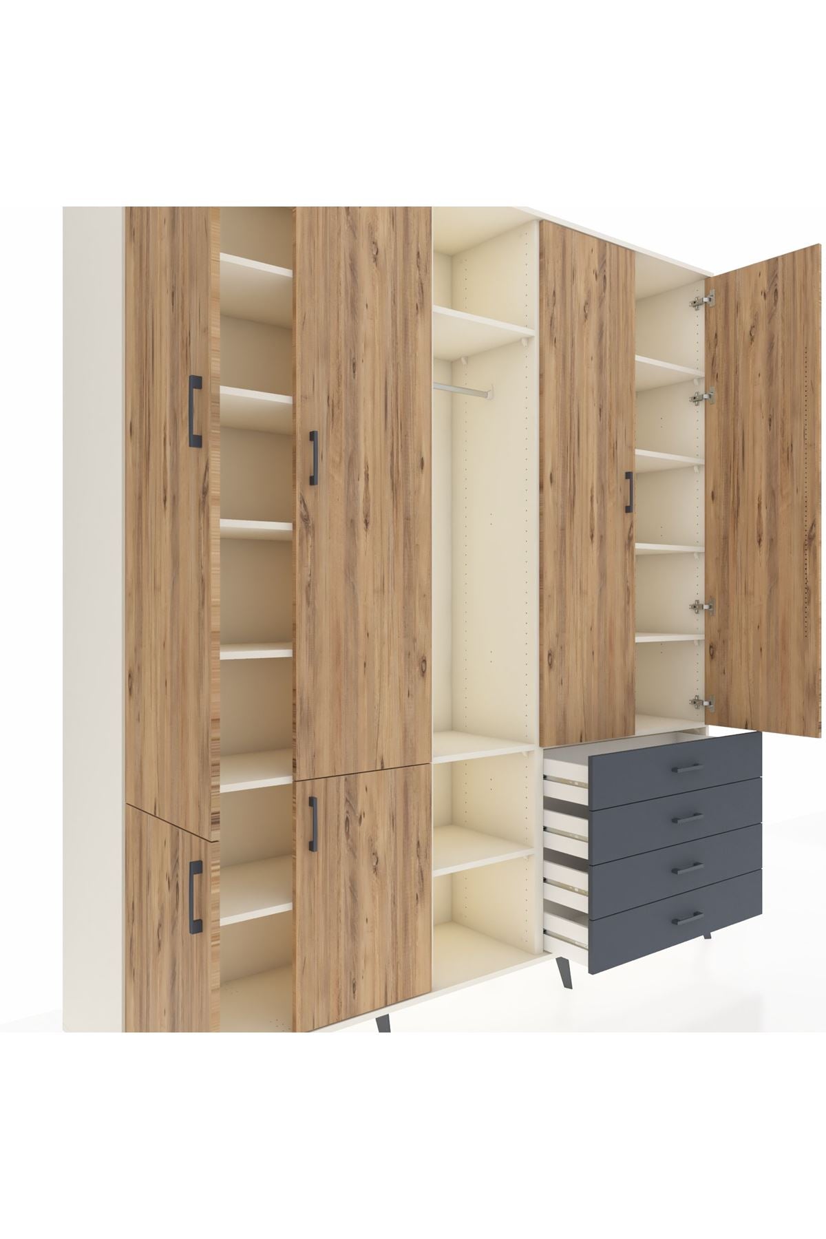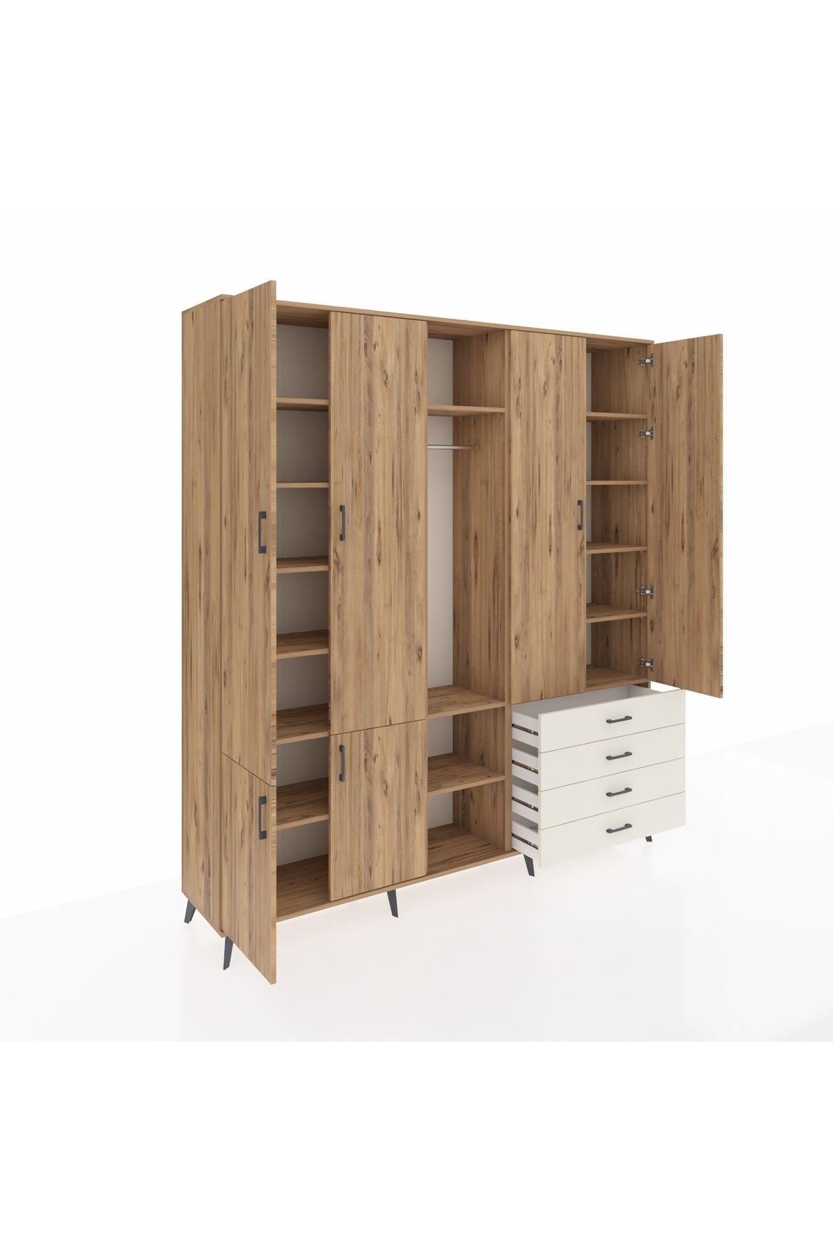 📌 Hyperion Dolap 14 Raflı 4 Çekmeceli Tek Askılı 220x44x243