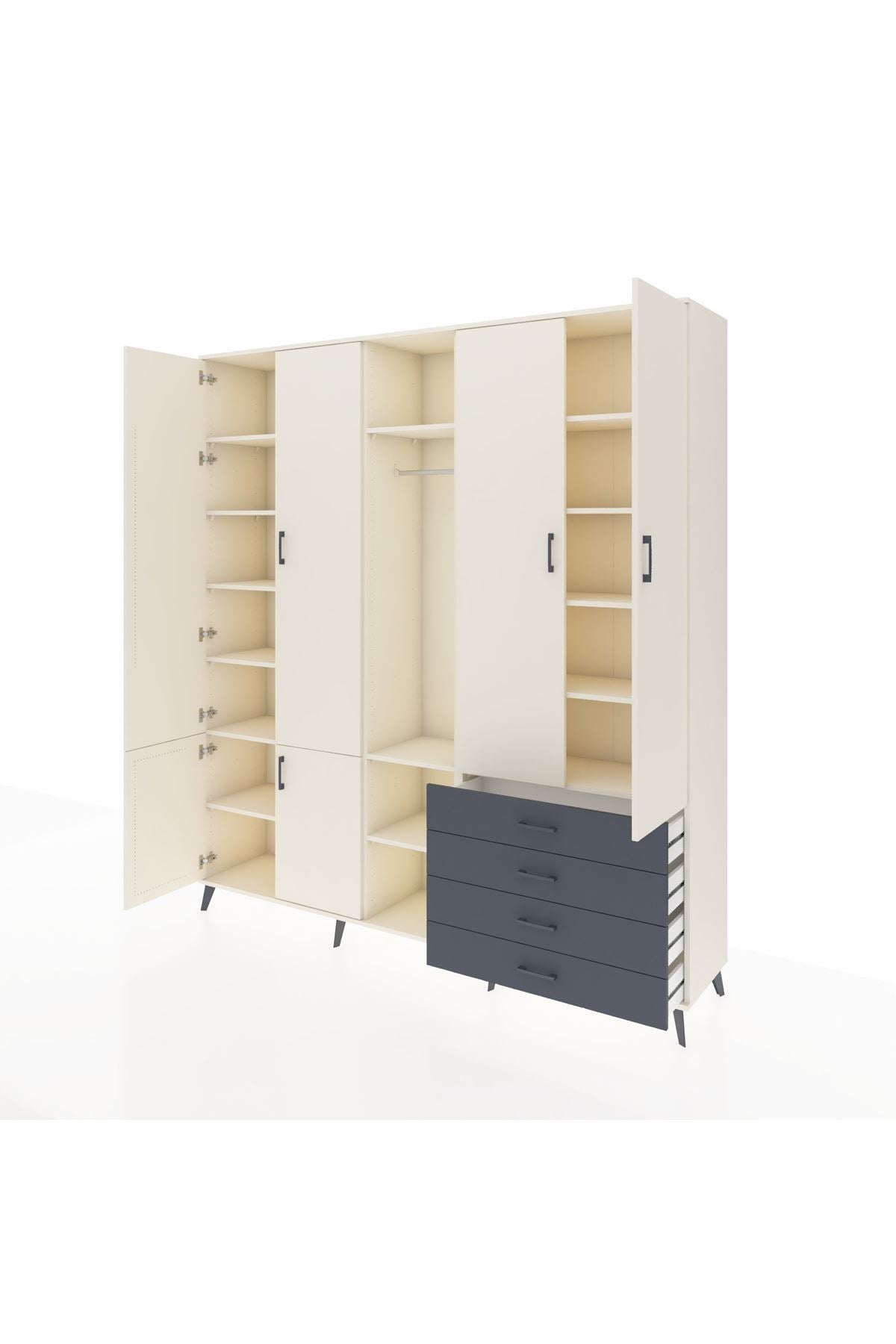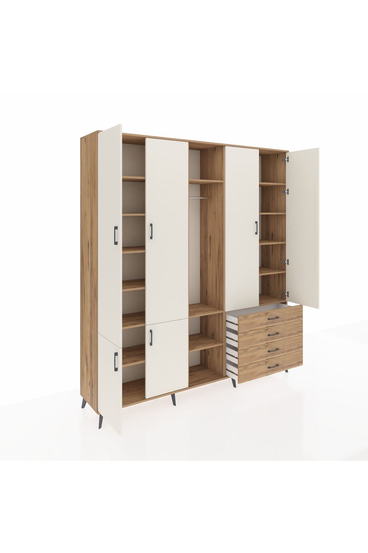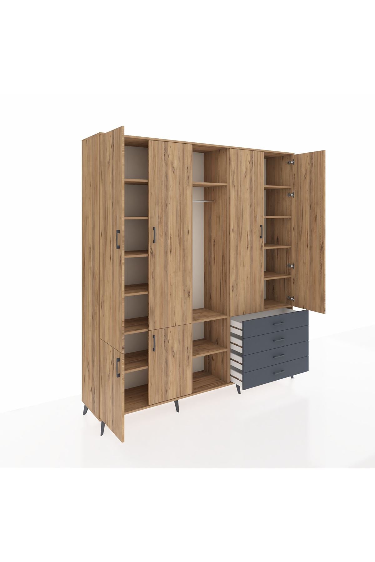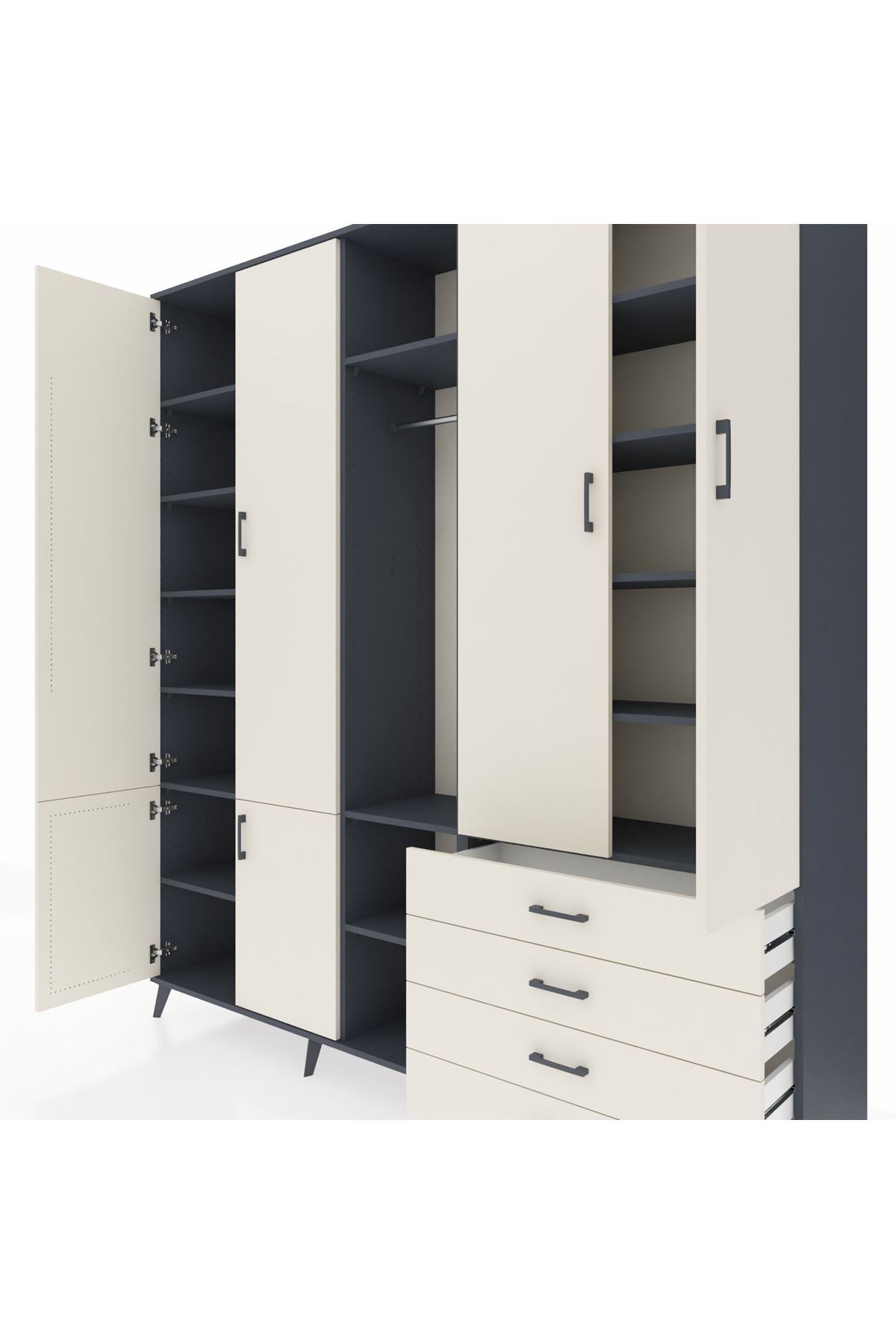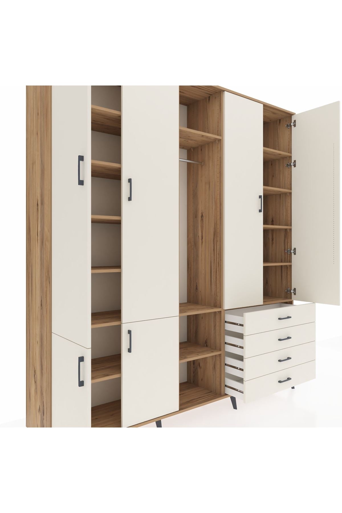 📌 Hyperion Dolap 14 Raflı 4 Çekmeceli Tek Askılı 220x44x243