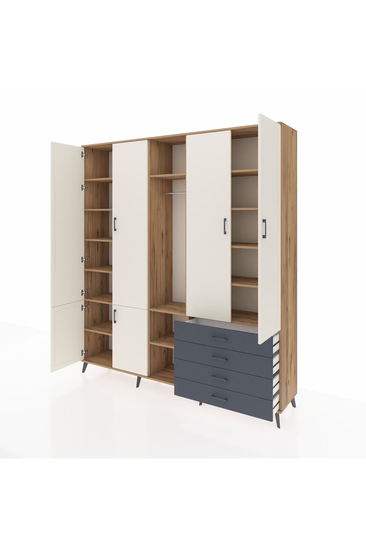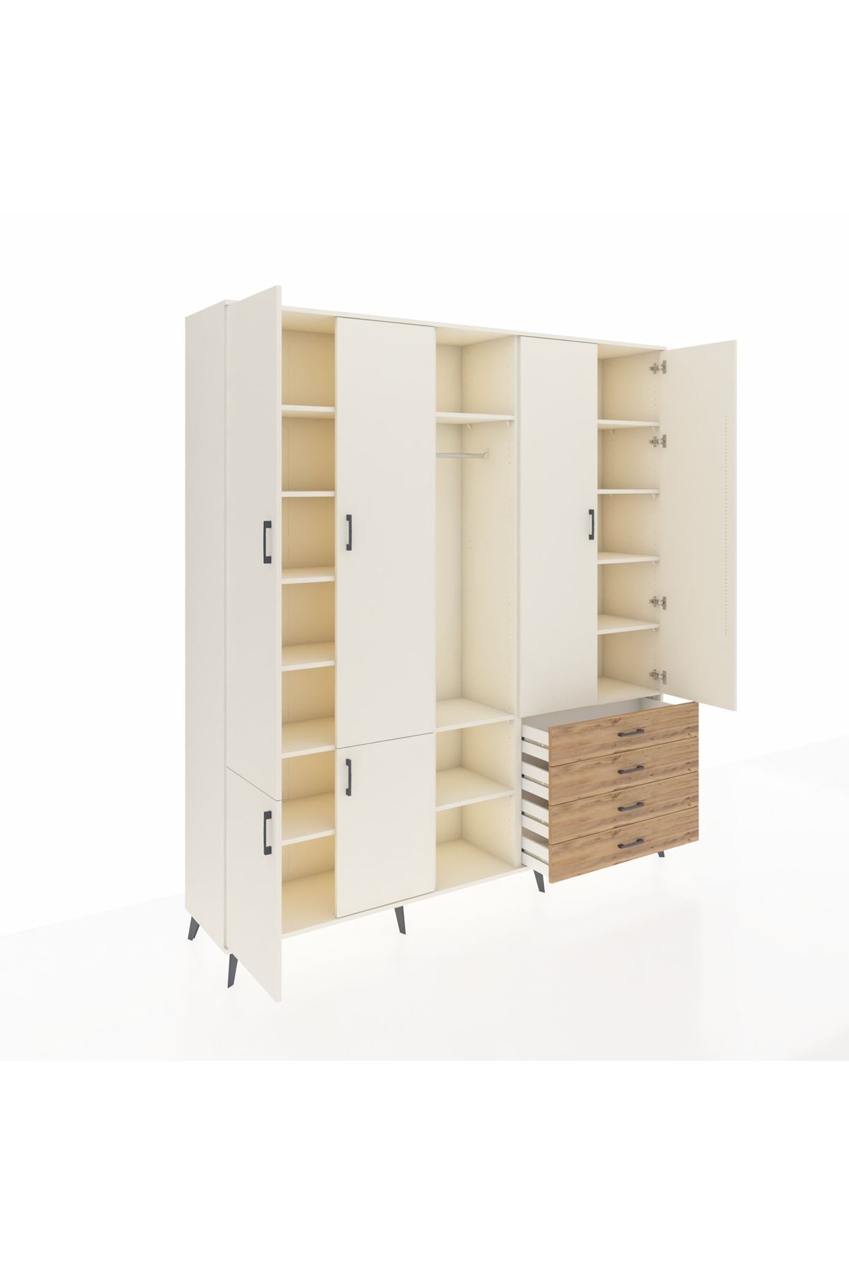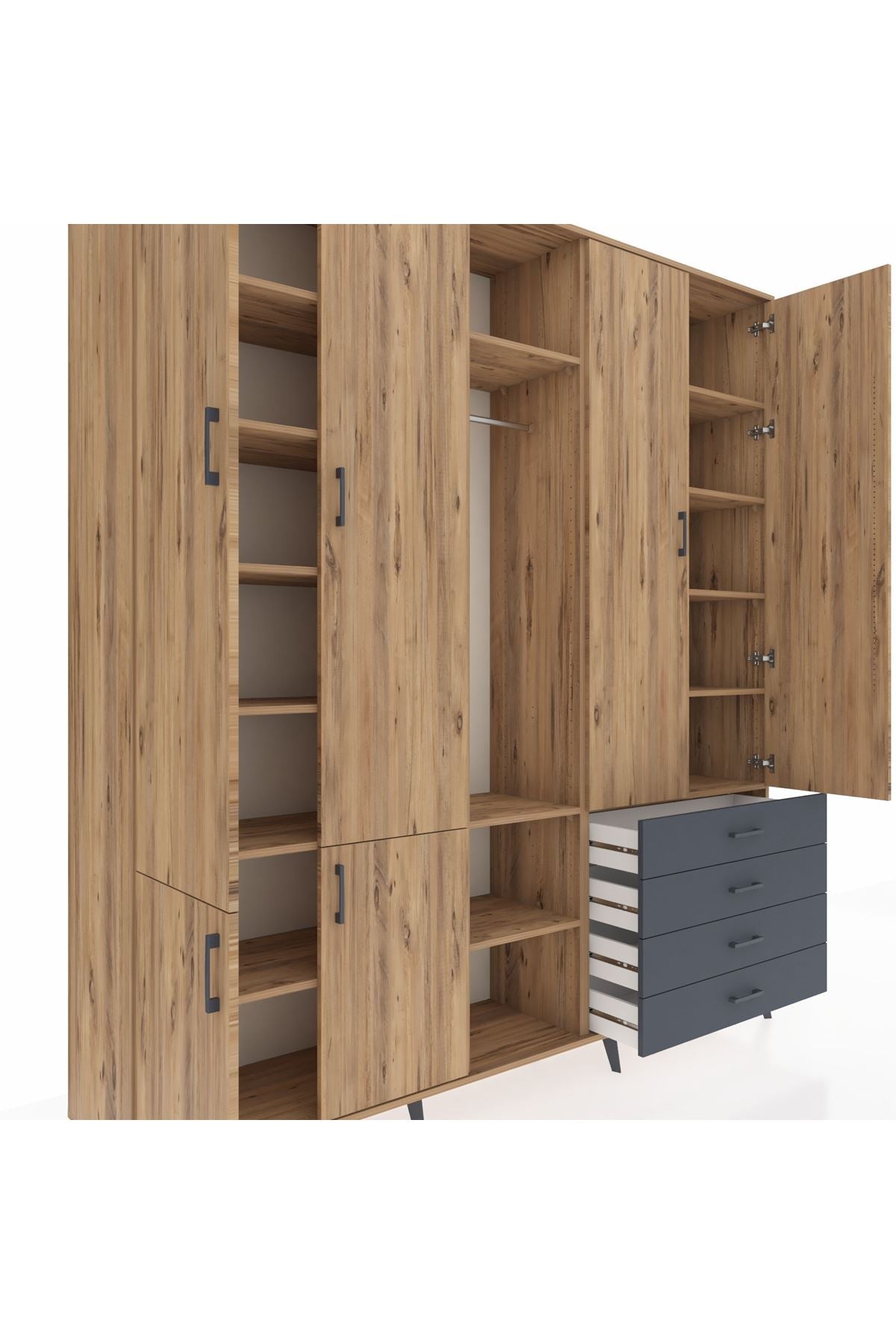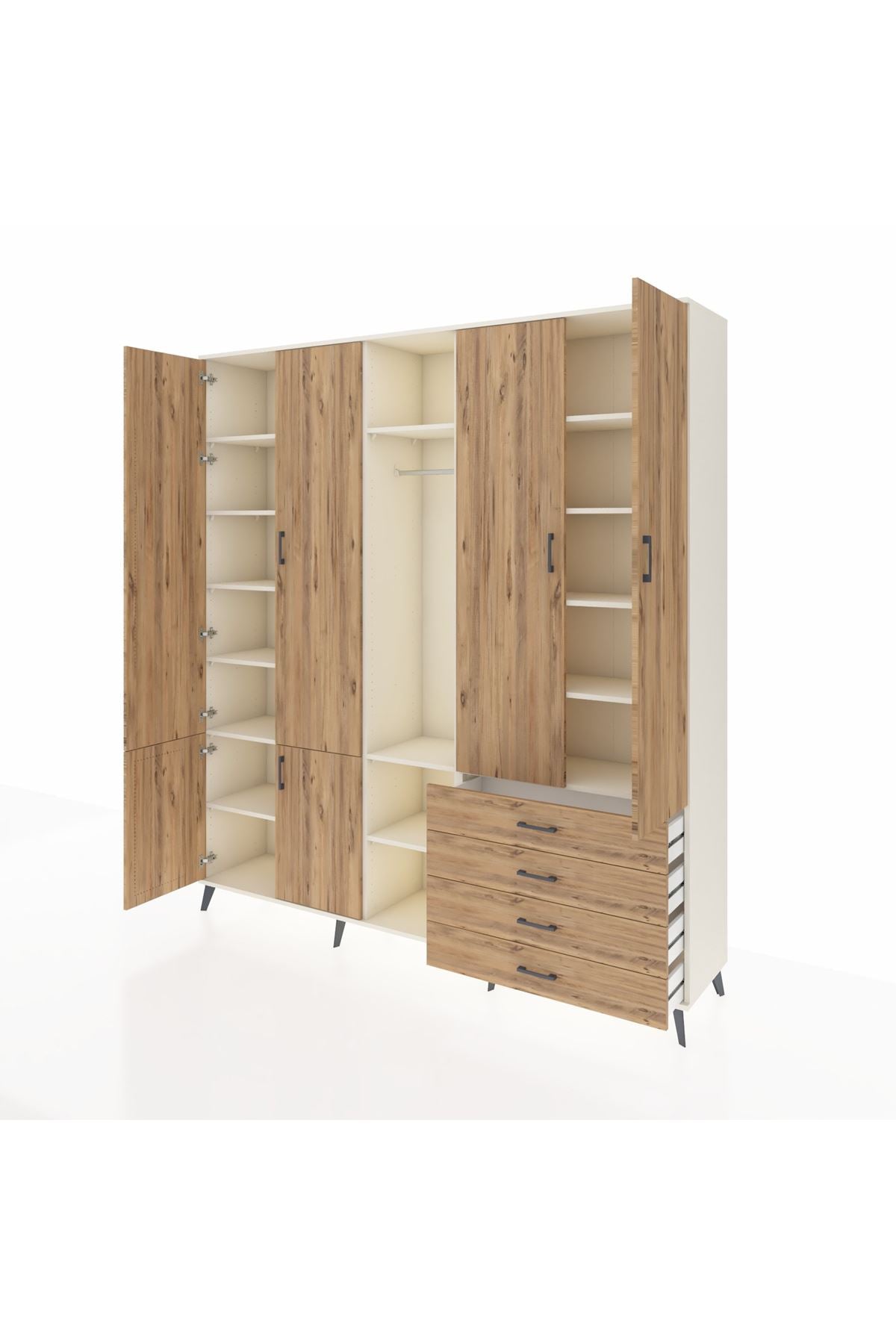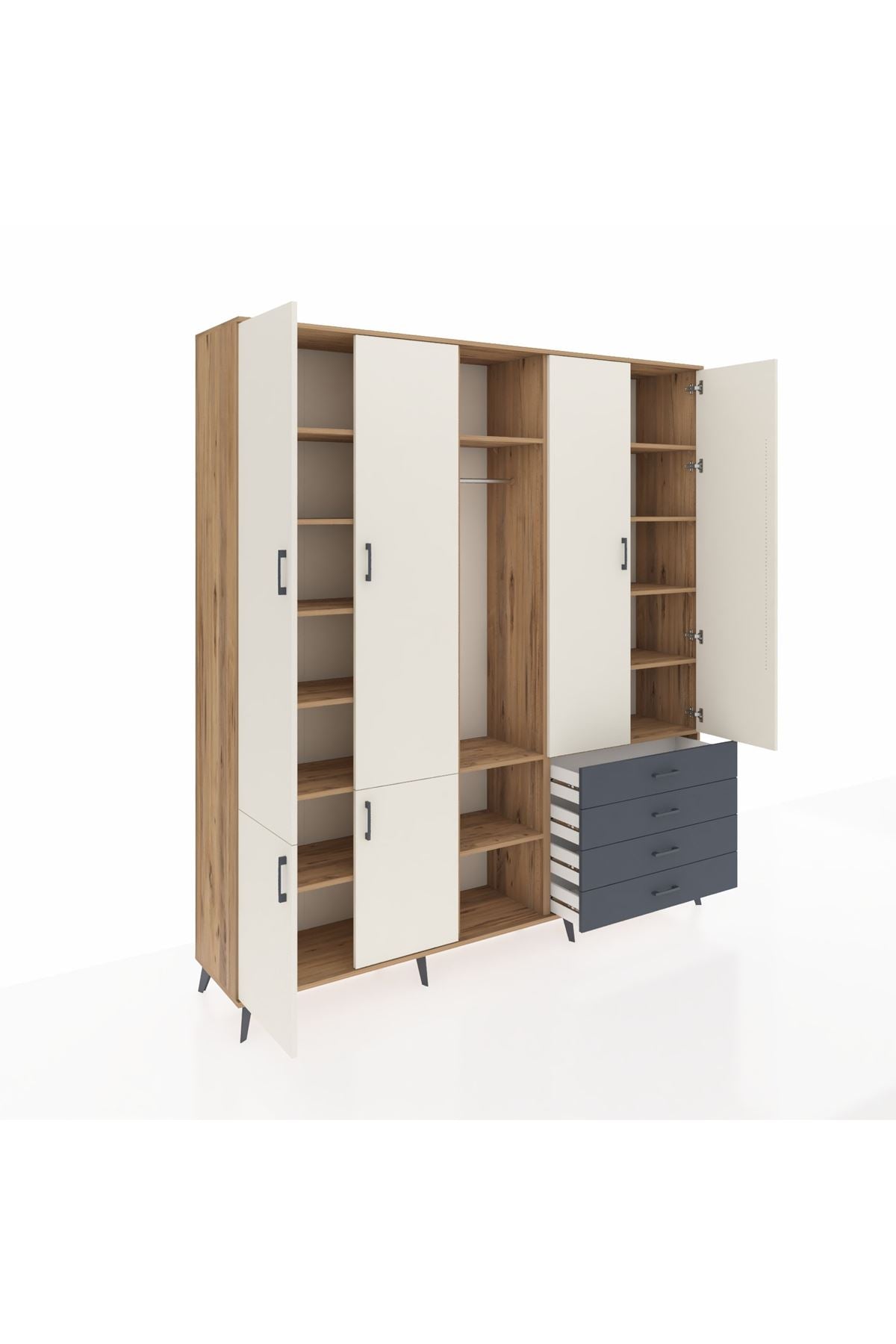 📌 Hyperion Dolap 14 Raflı 4 Çekmeceli Tek Askılı 220x44x243