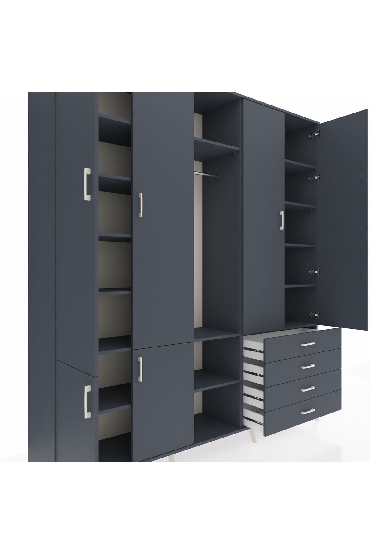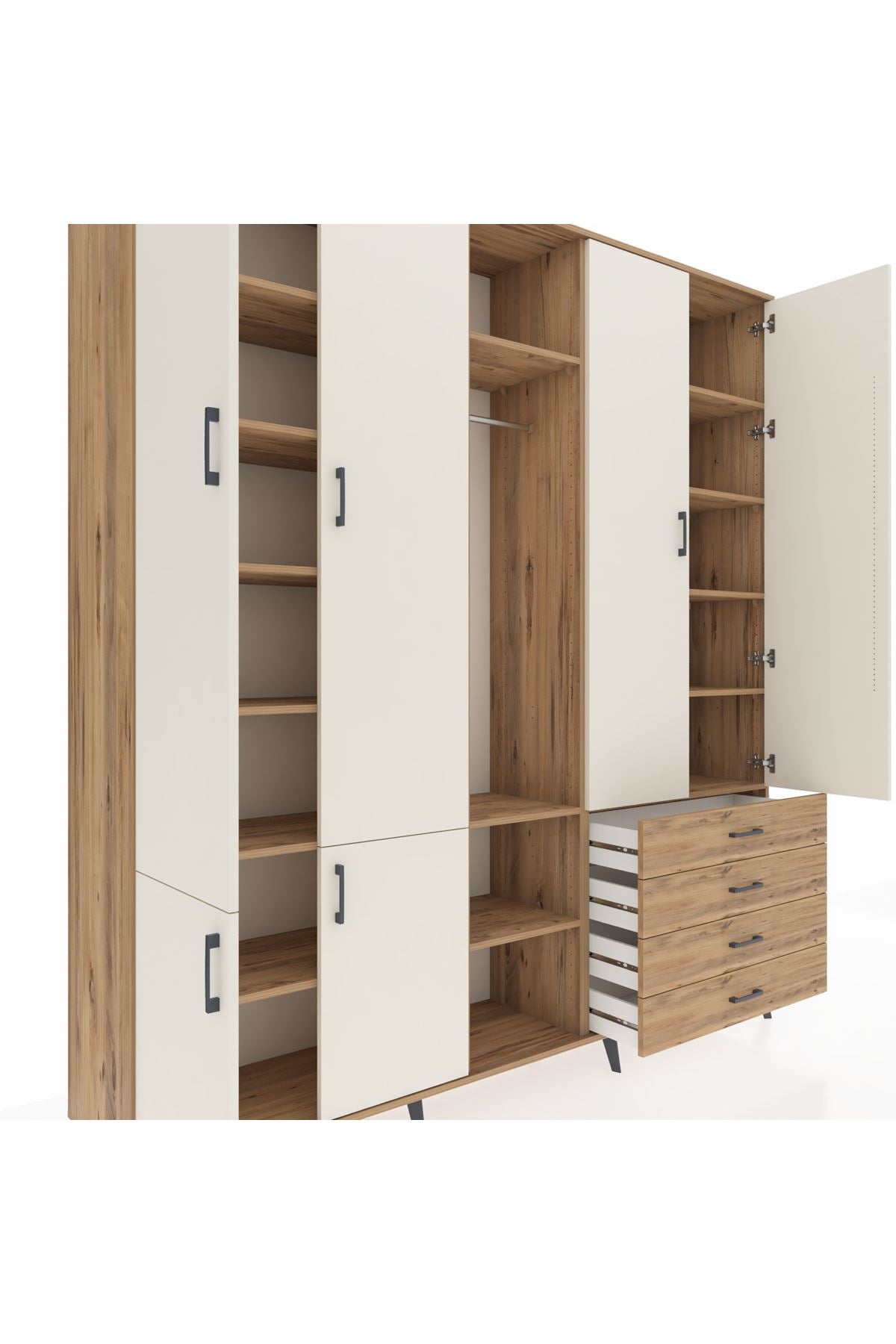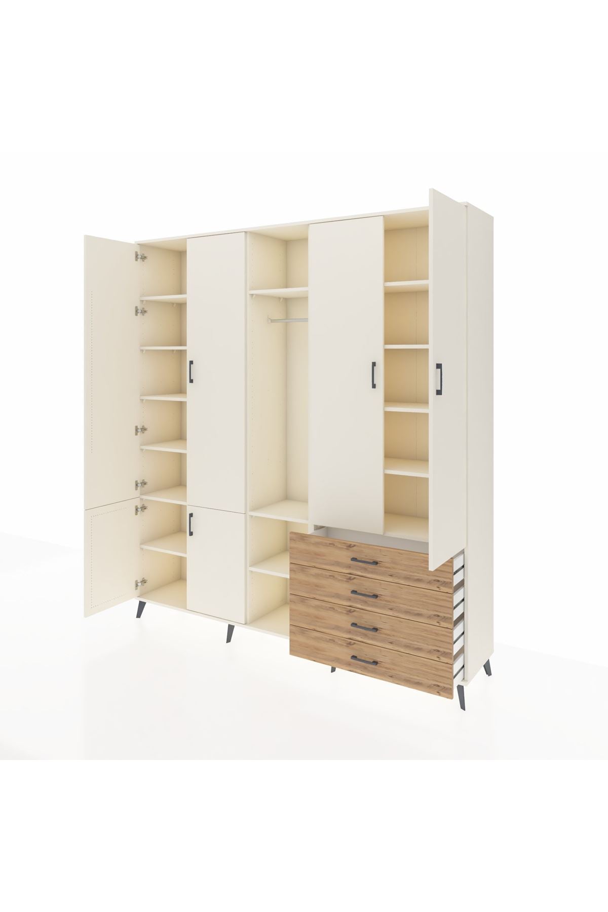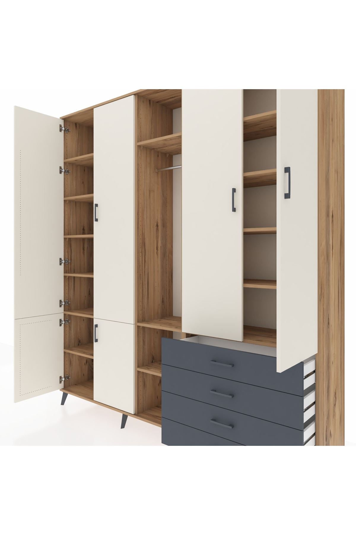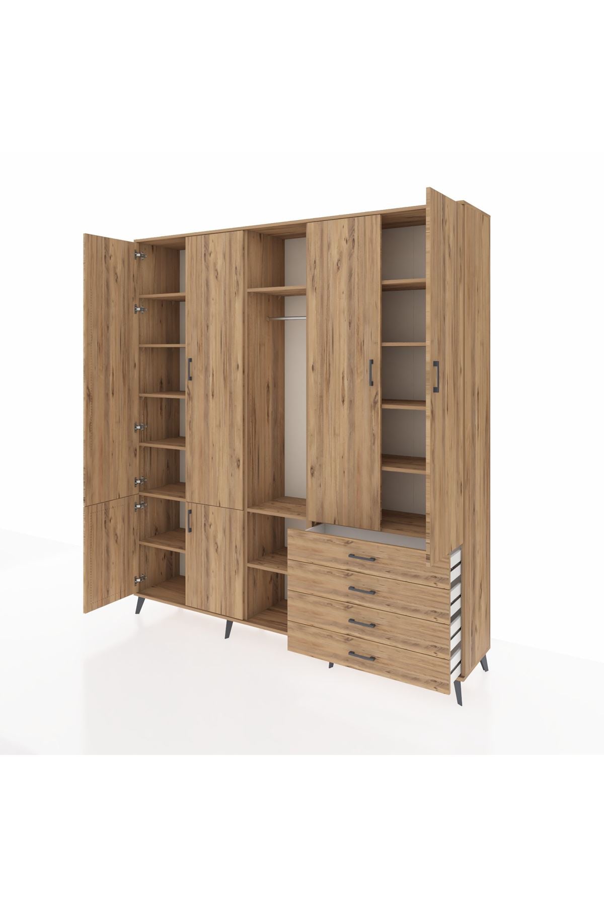 📌 Hyperion Dolap 14 Raflı 4 Çekmeceli Tek Askılı 220x44x243