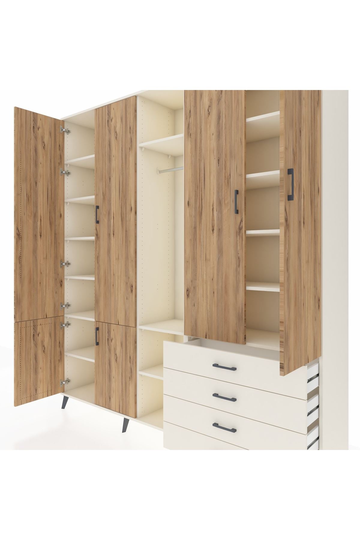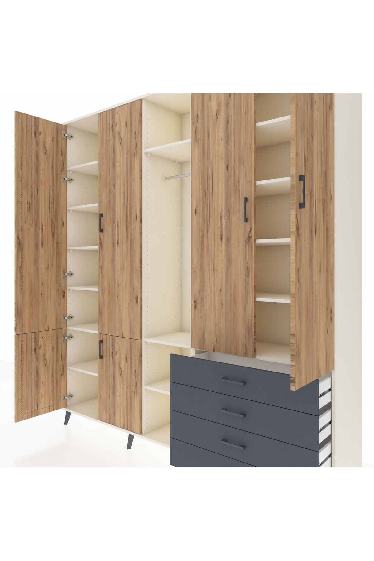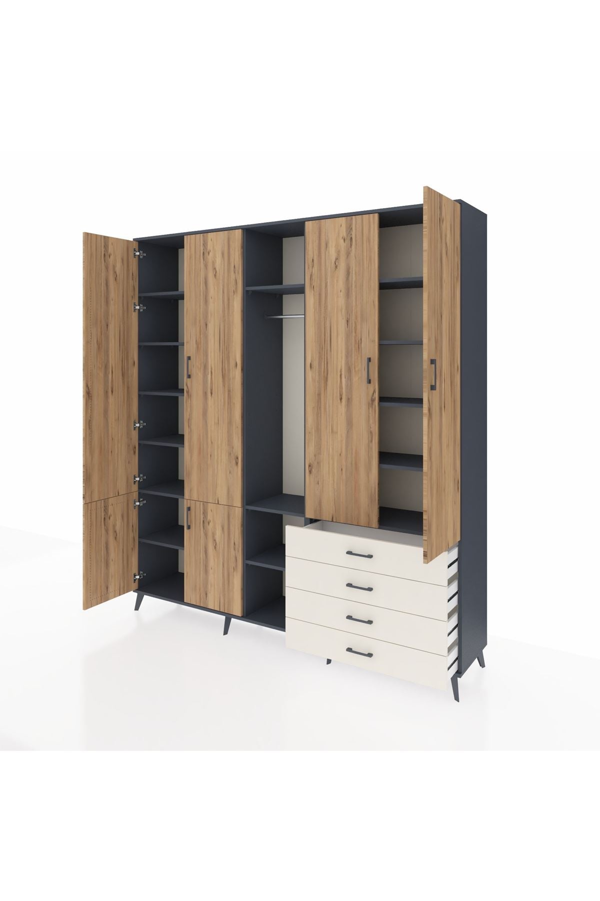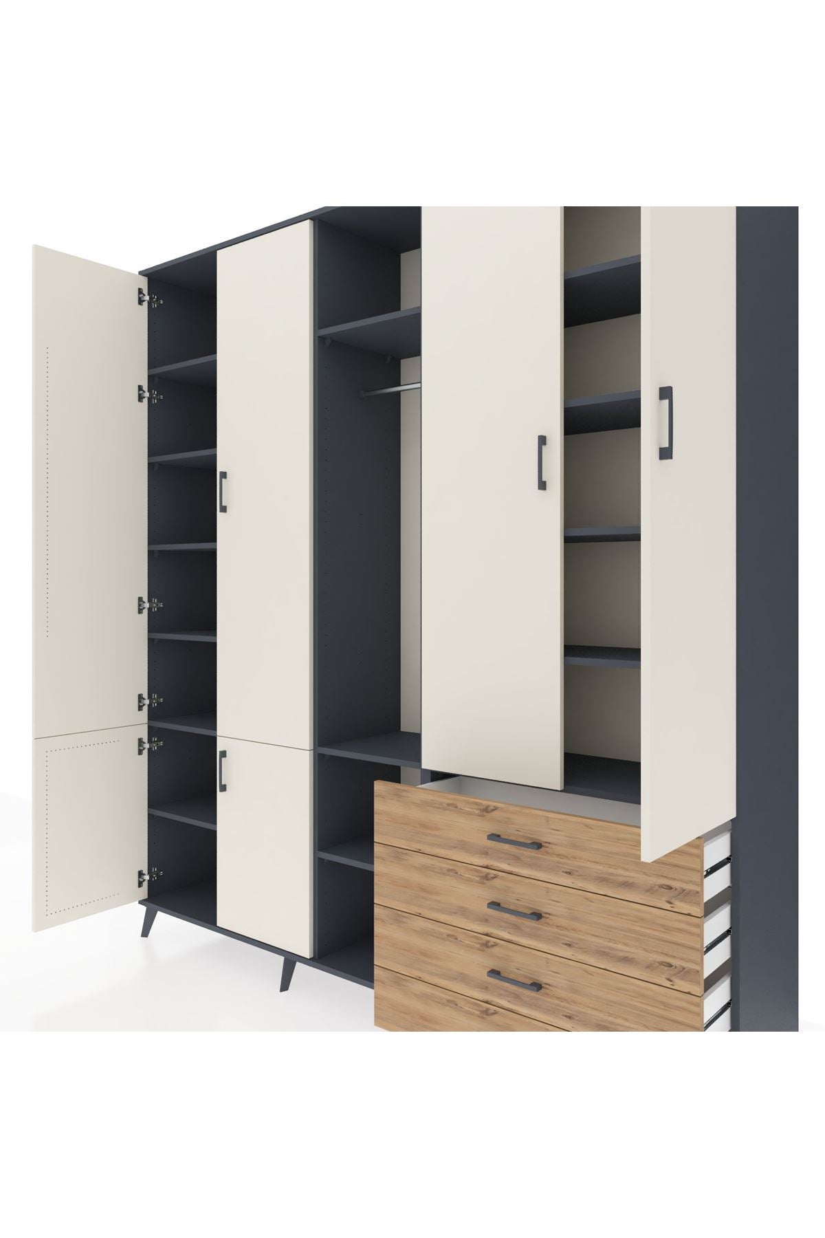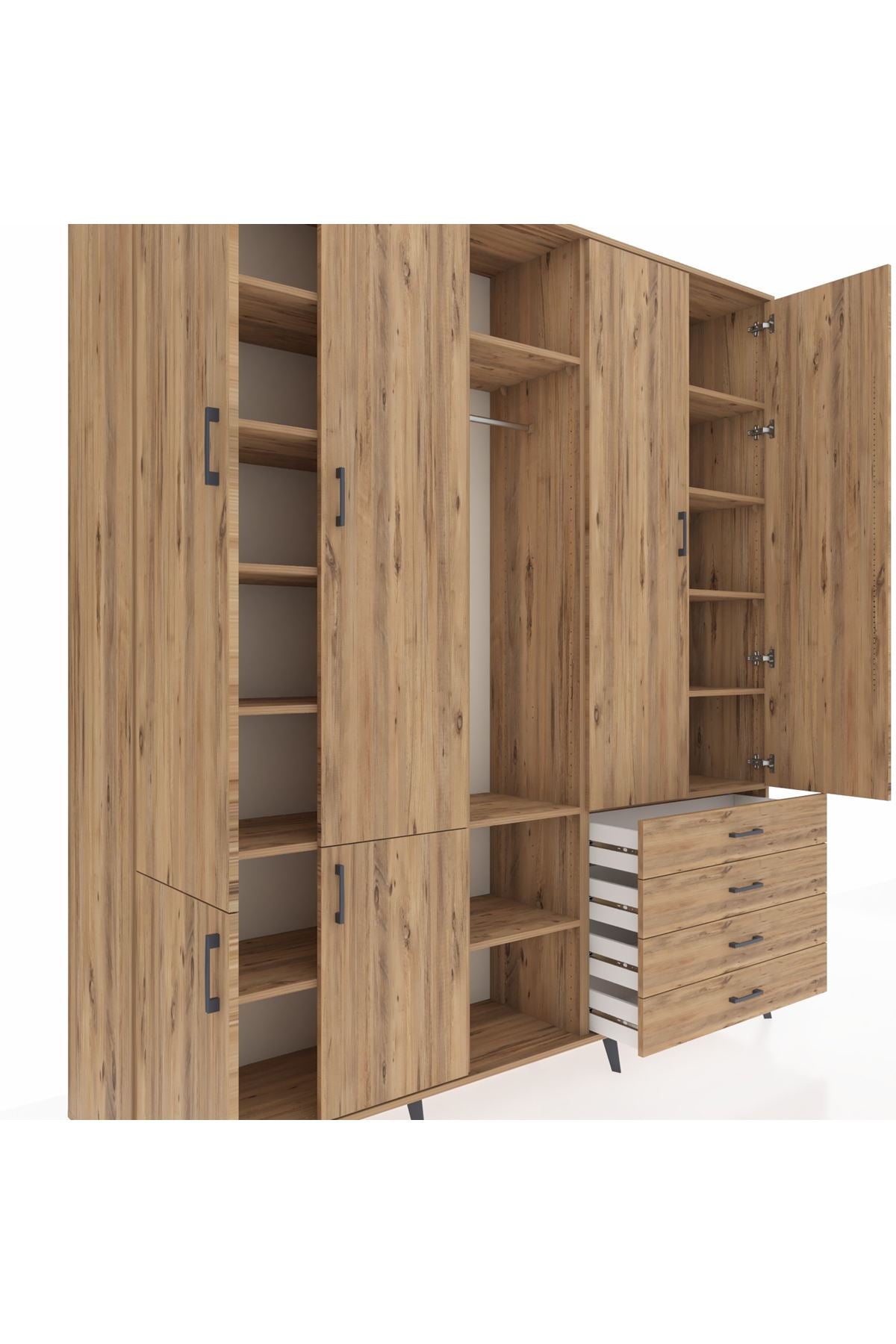 📌 Hyperion Dolap 14 Raflı 4 Çekmeceli Tek Askılı 220x44x243