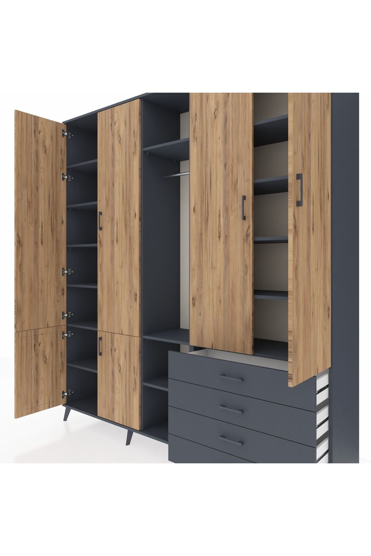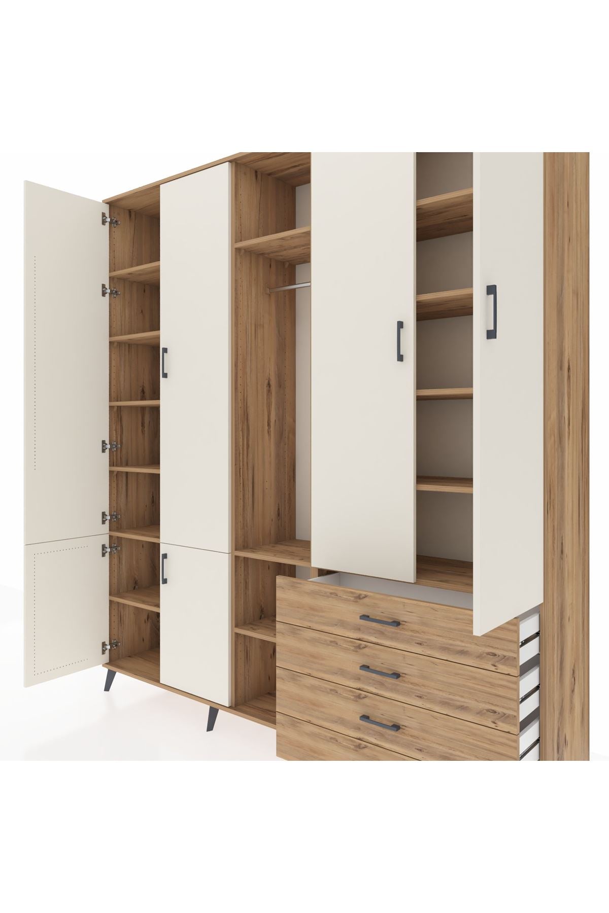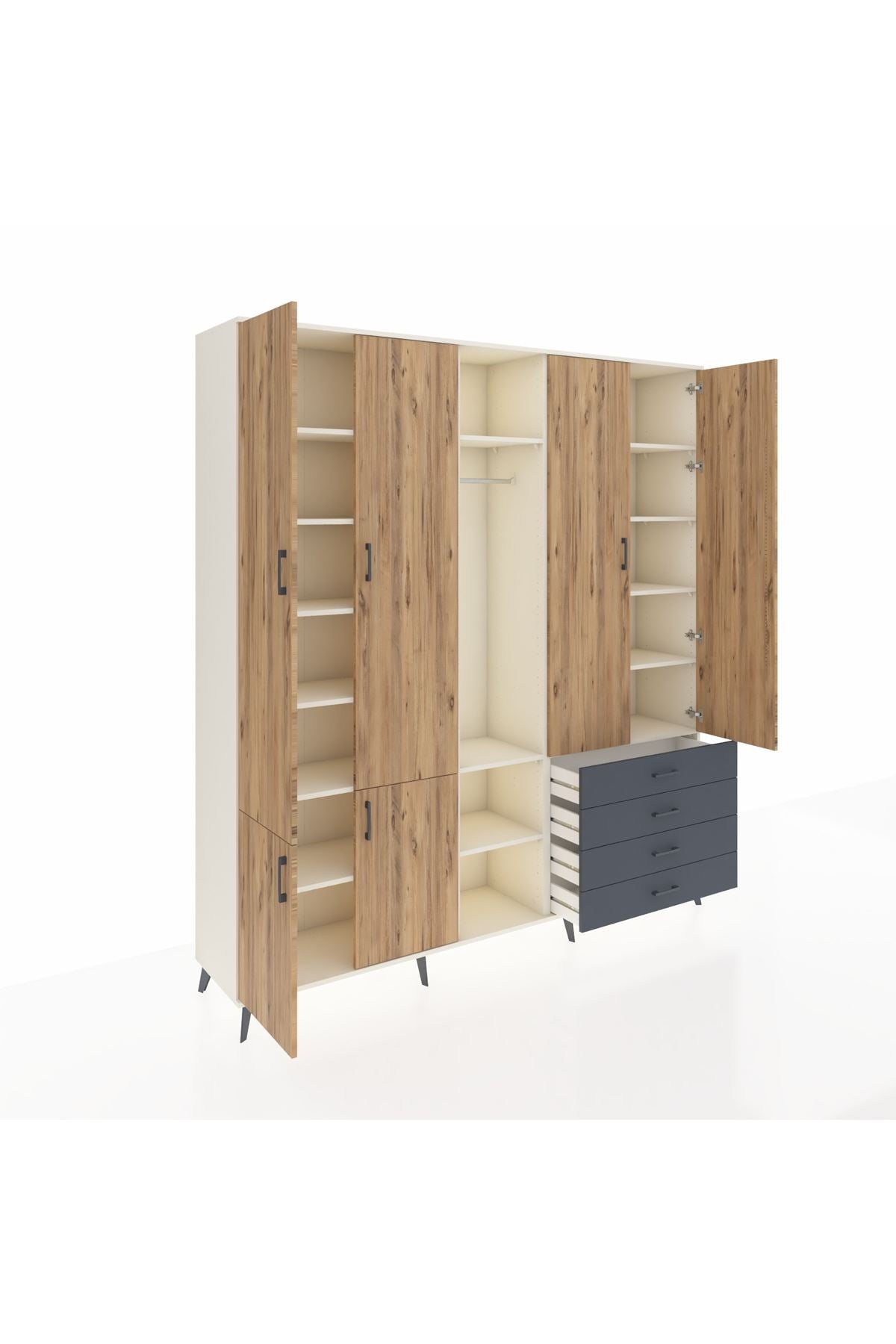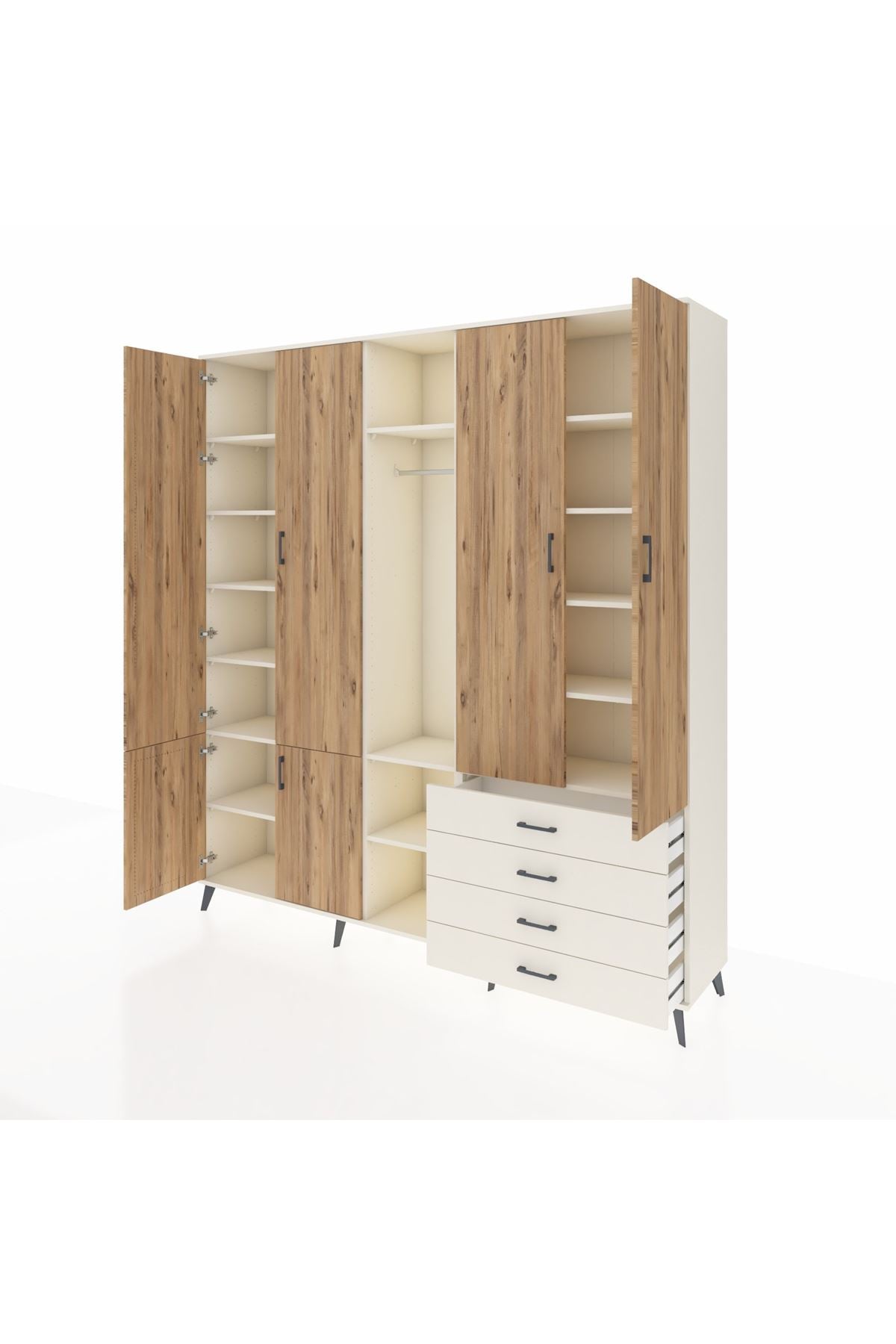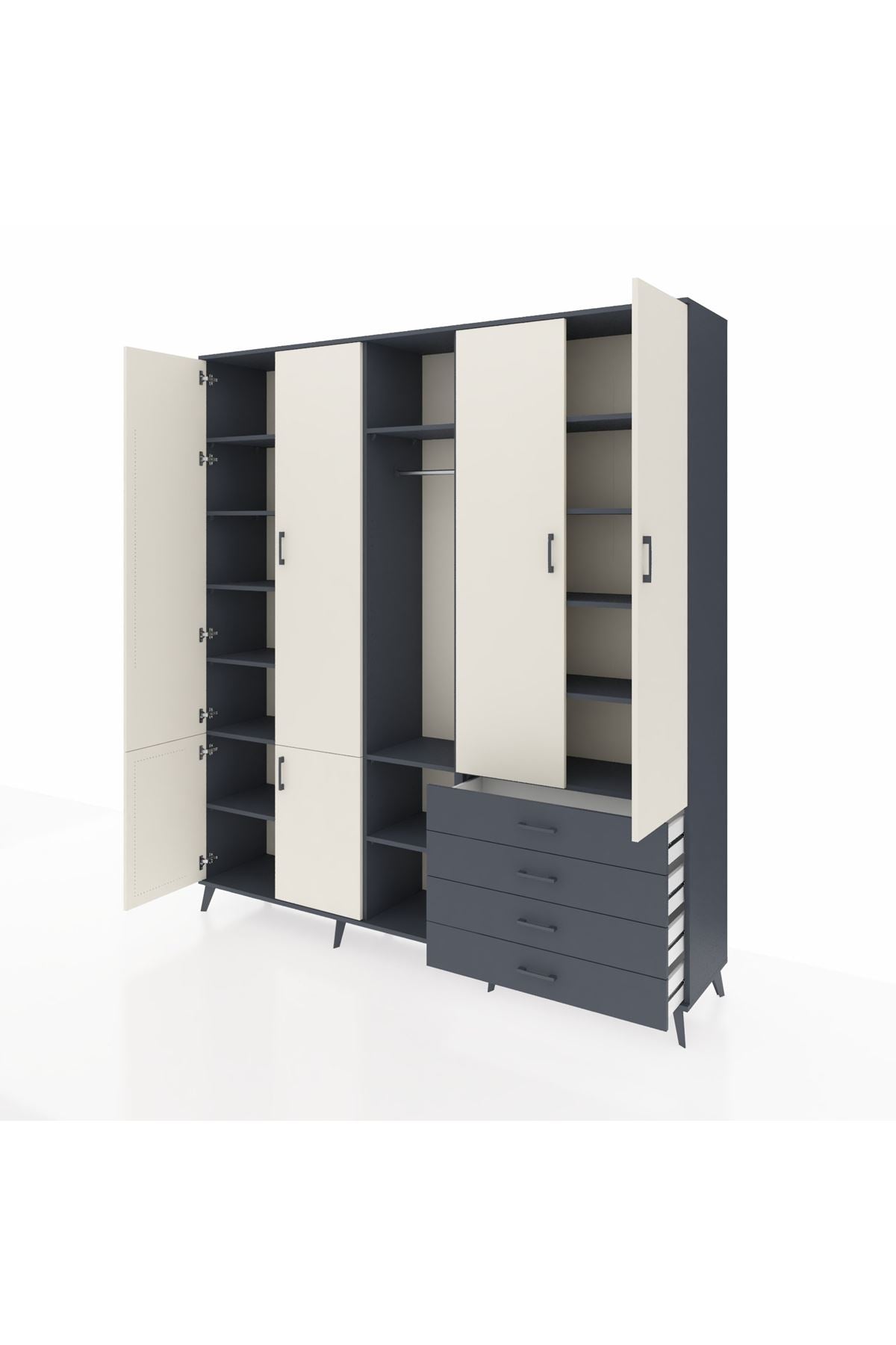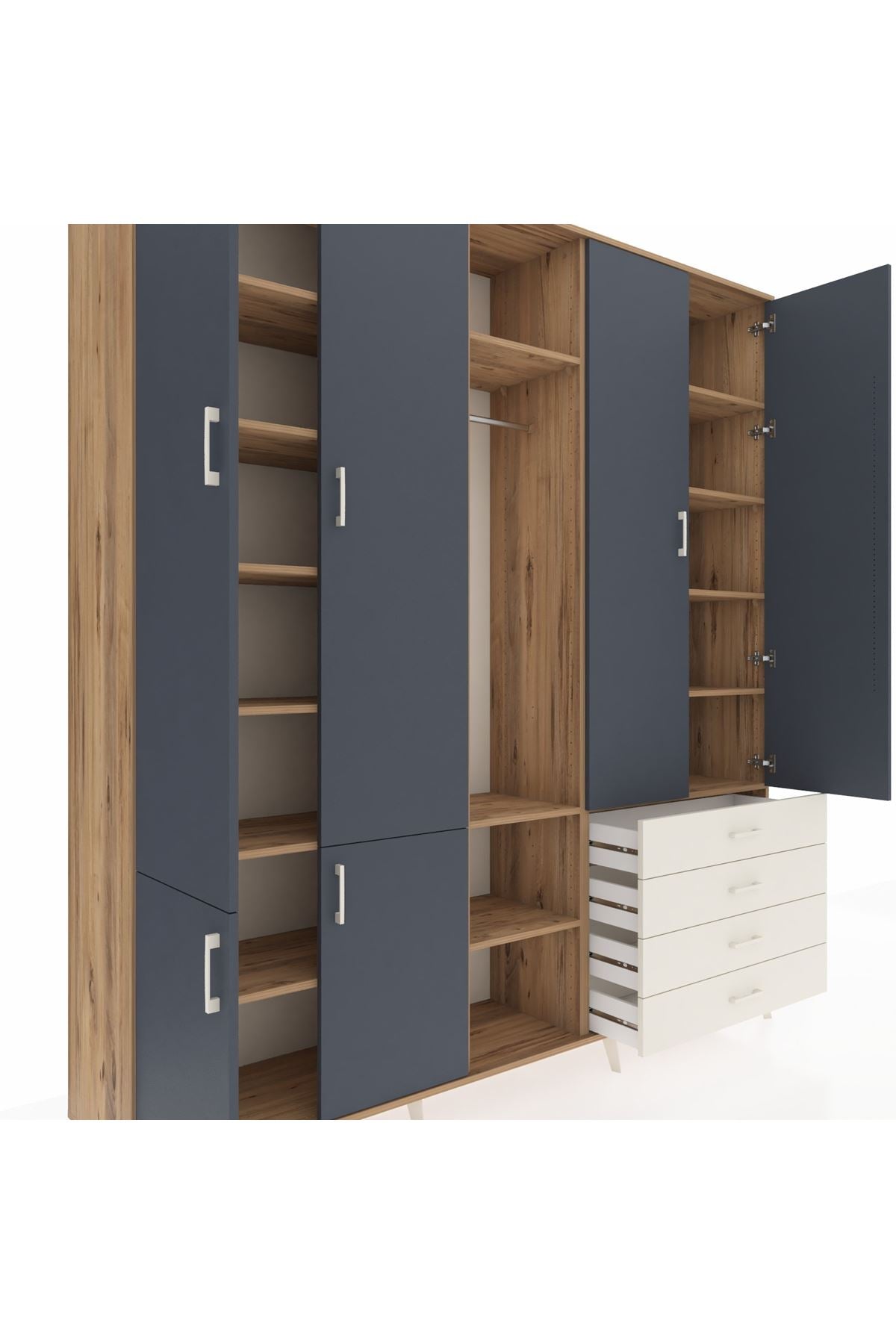 📌 Hyperion Dolap 14 Raflı 4 Çekmeceli Tek Askılı 220x44x243