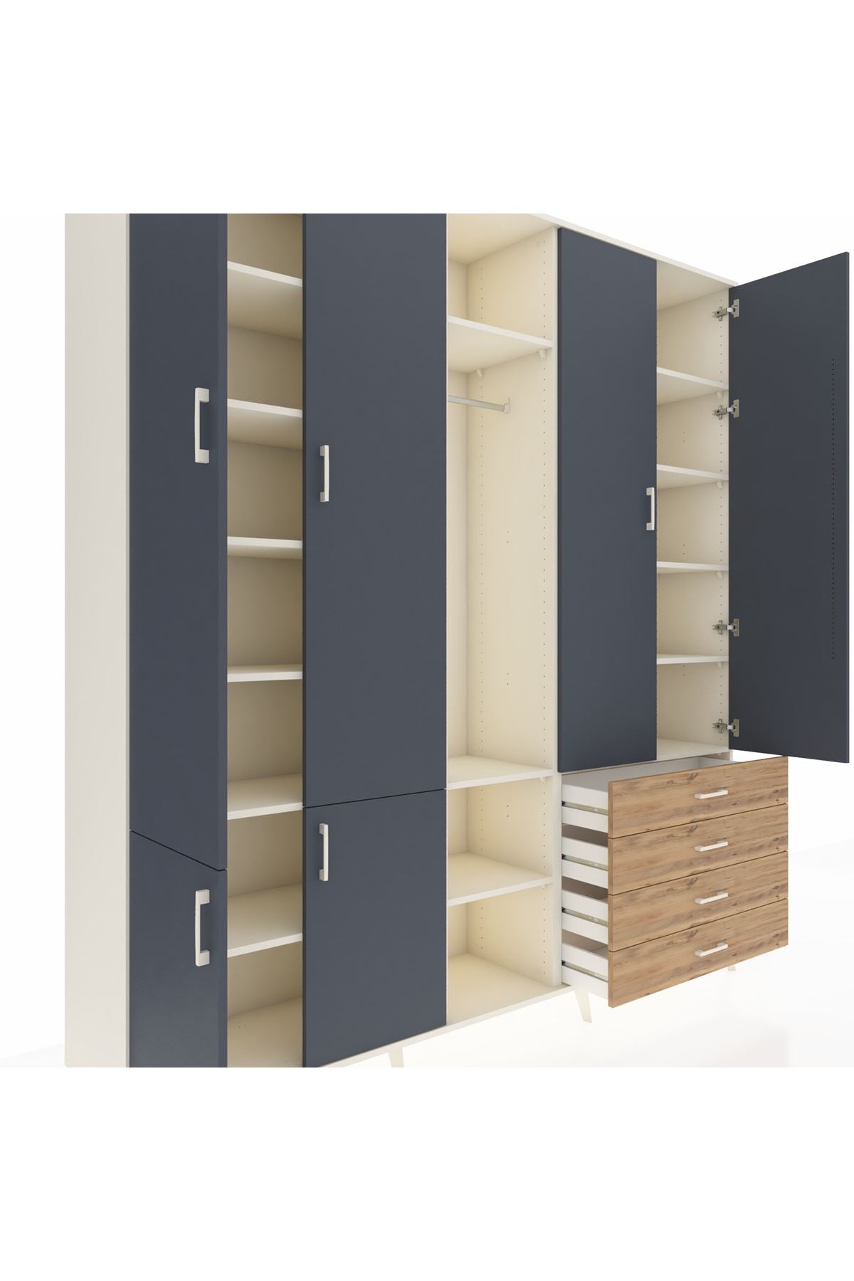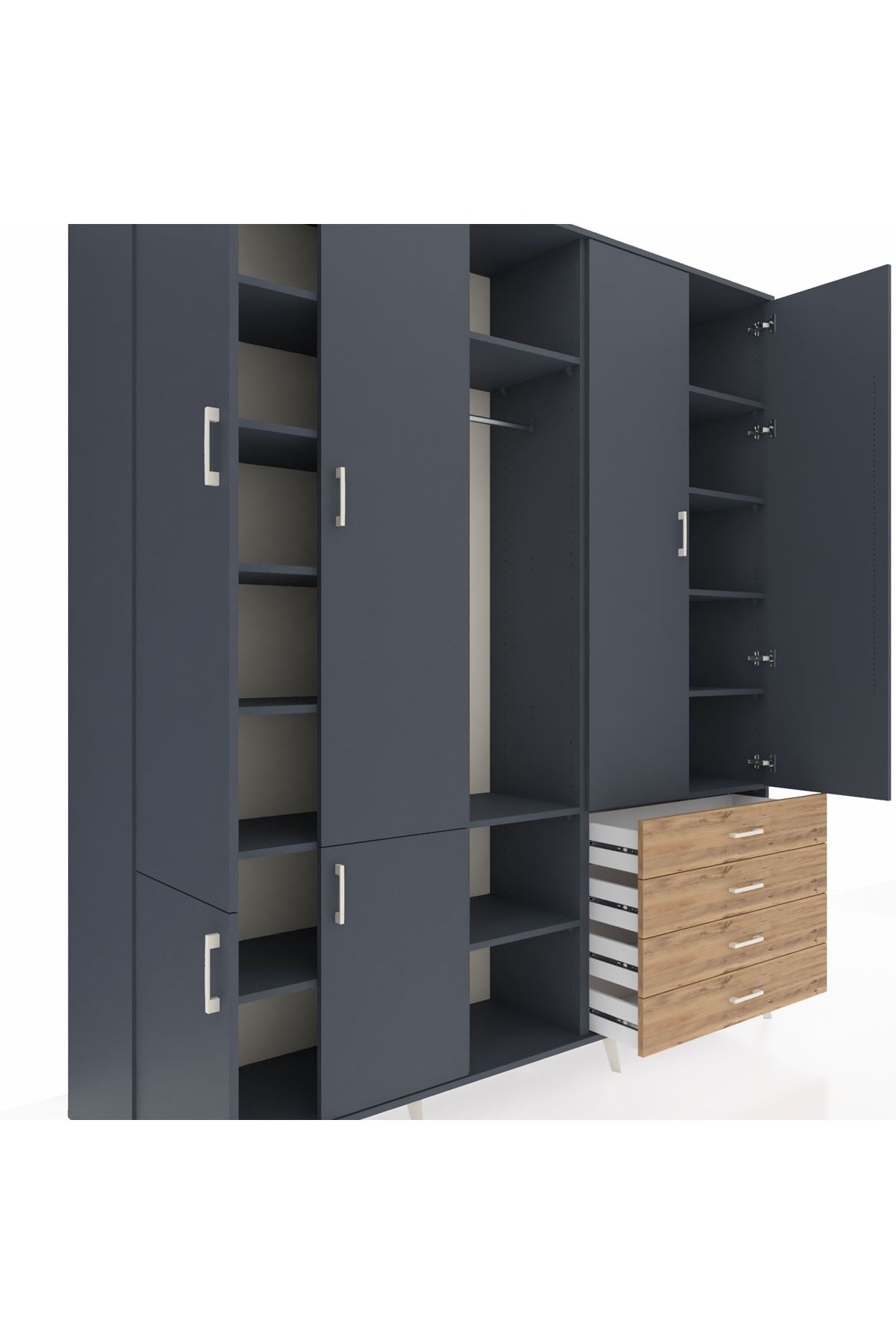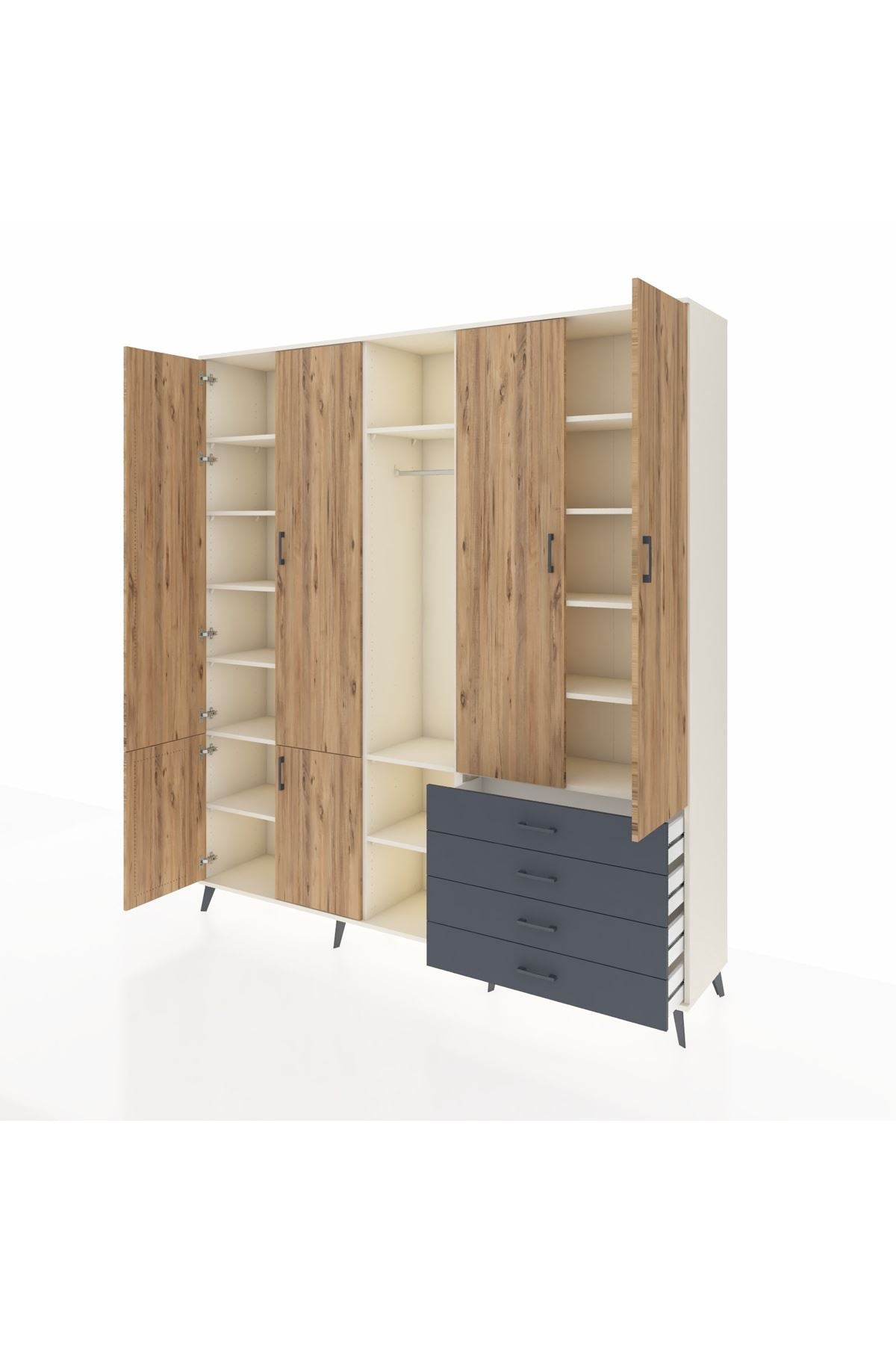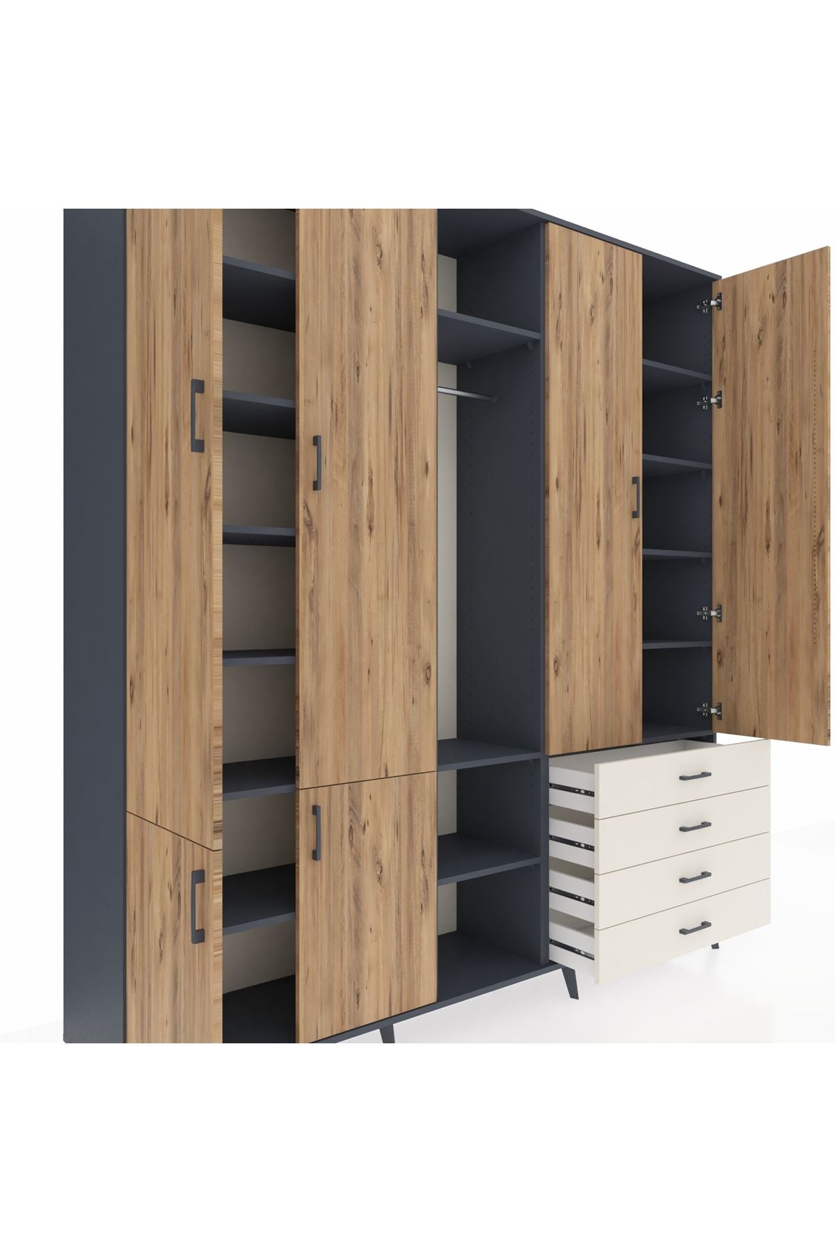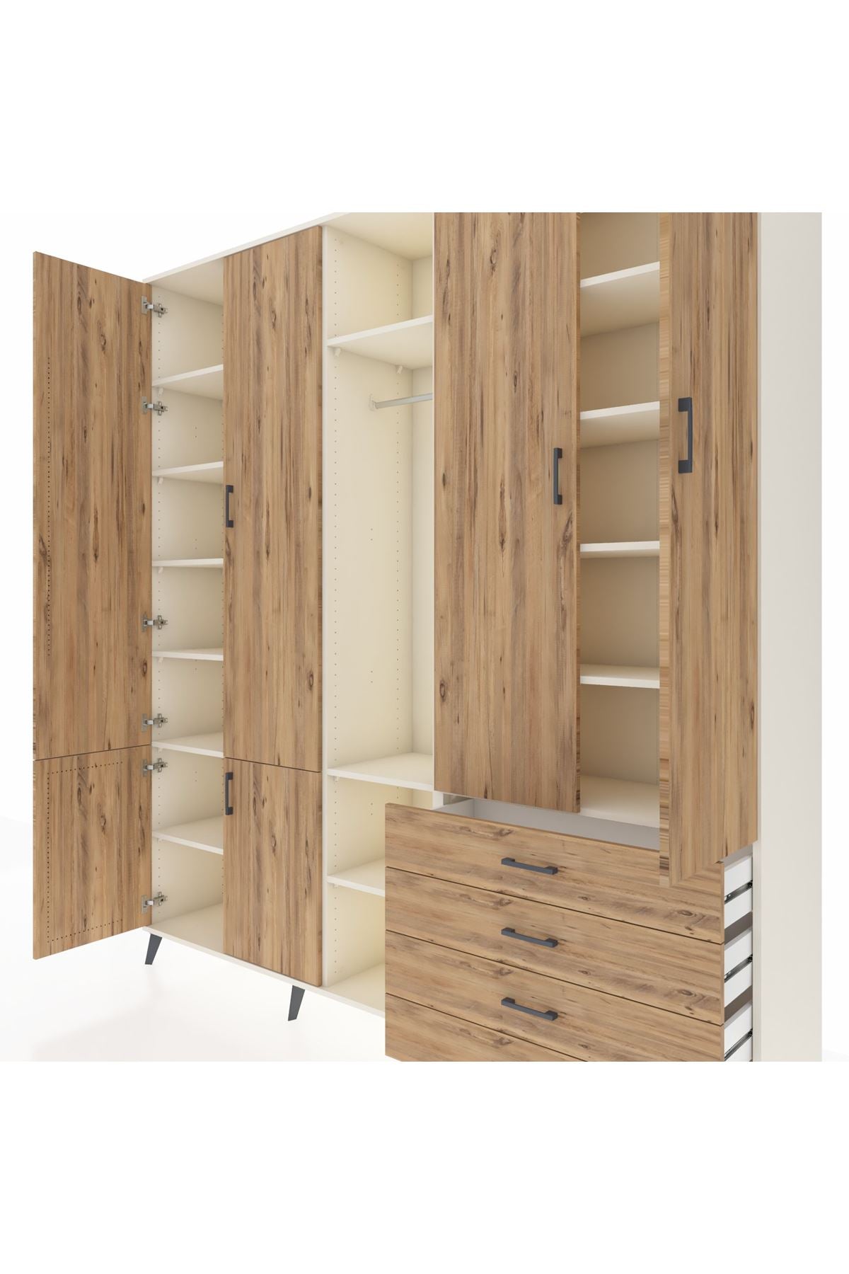 📌 Hyperion Dolap 14 Raflı 4 Çekmeceli Tek Askılı 220x44x243