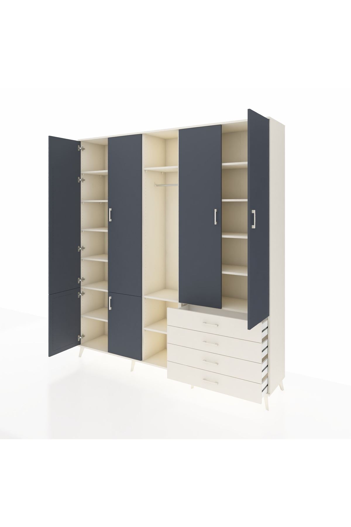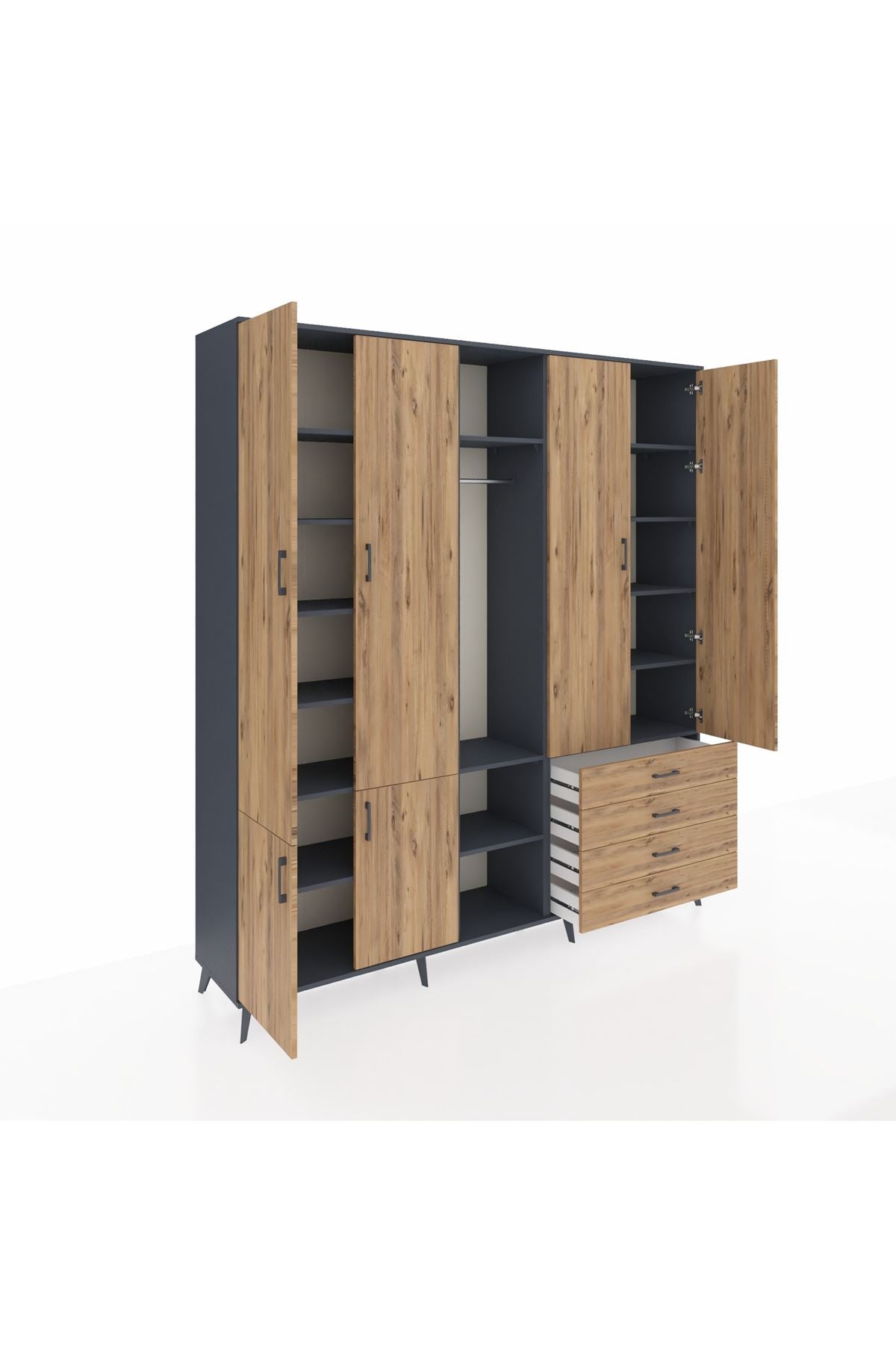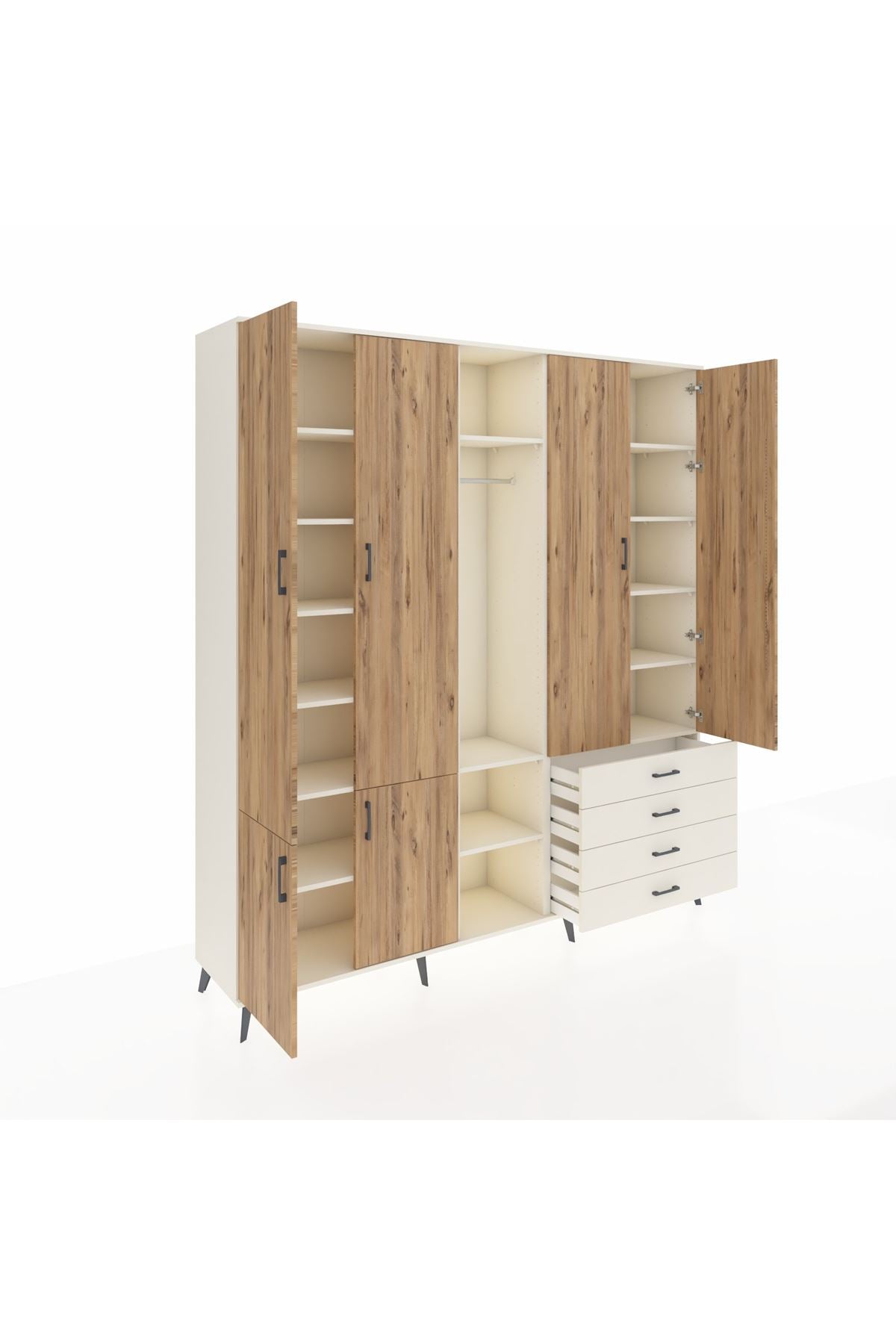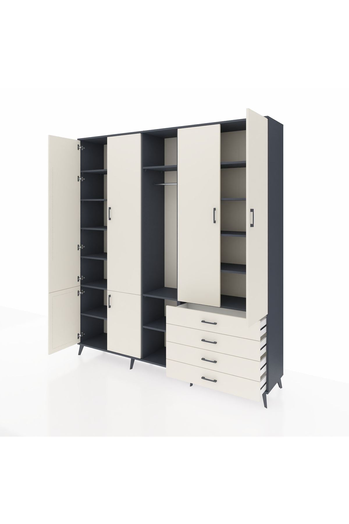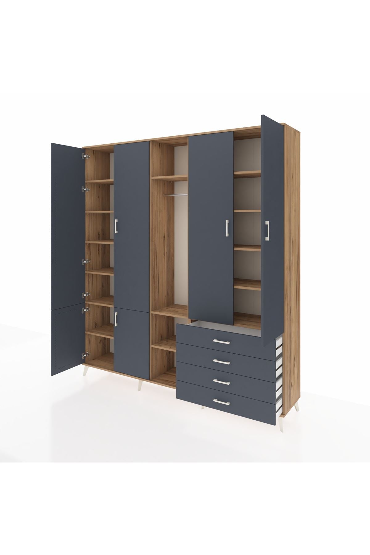 📌 Hyperion Dolap 14 Raflı 4 Çekmeceli Tek Askılı 220x44x243