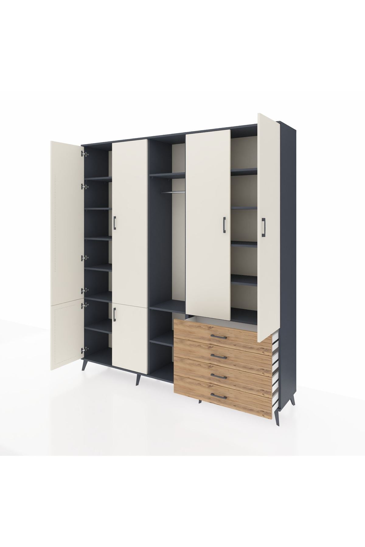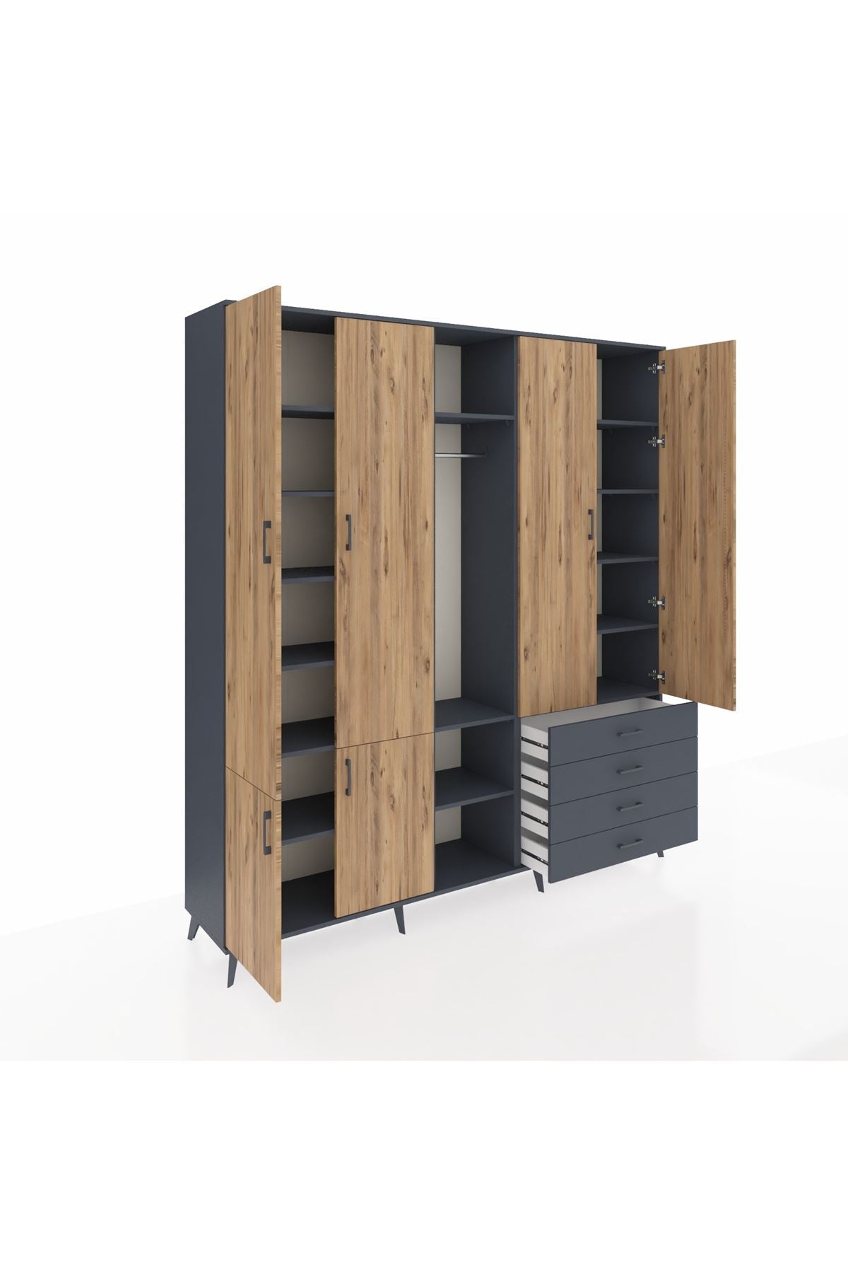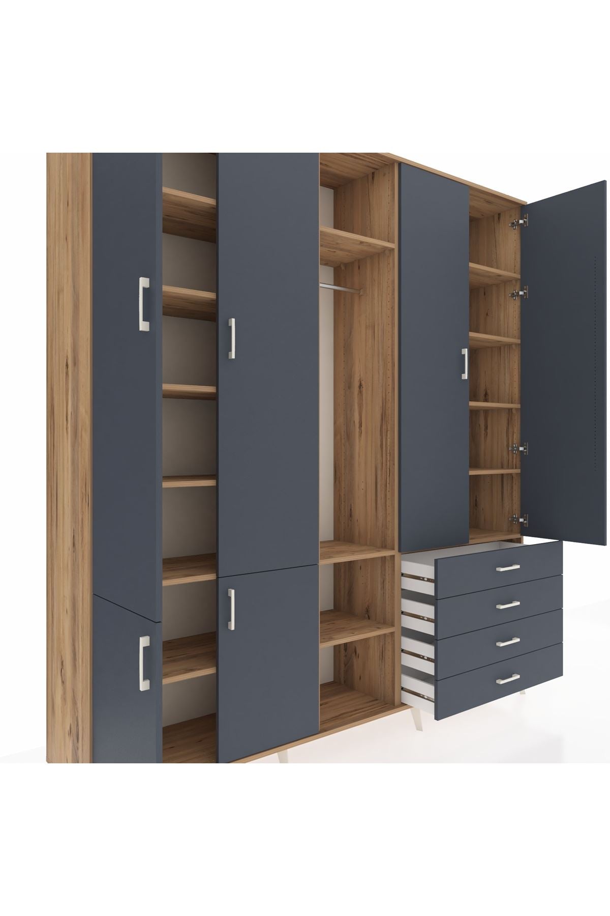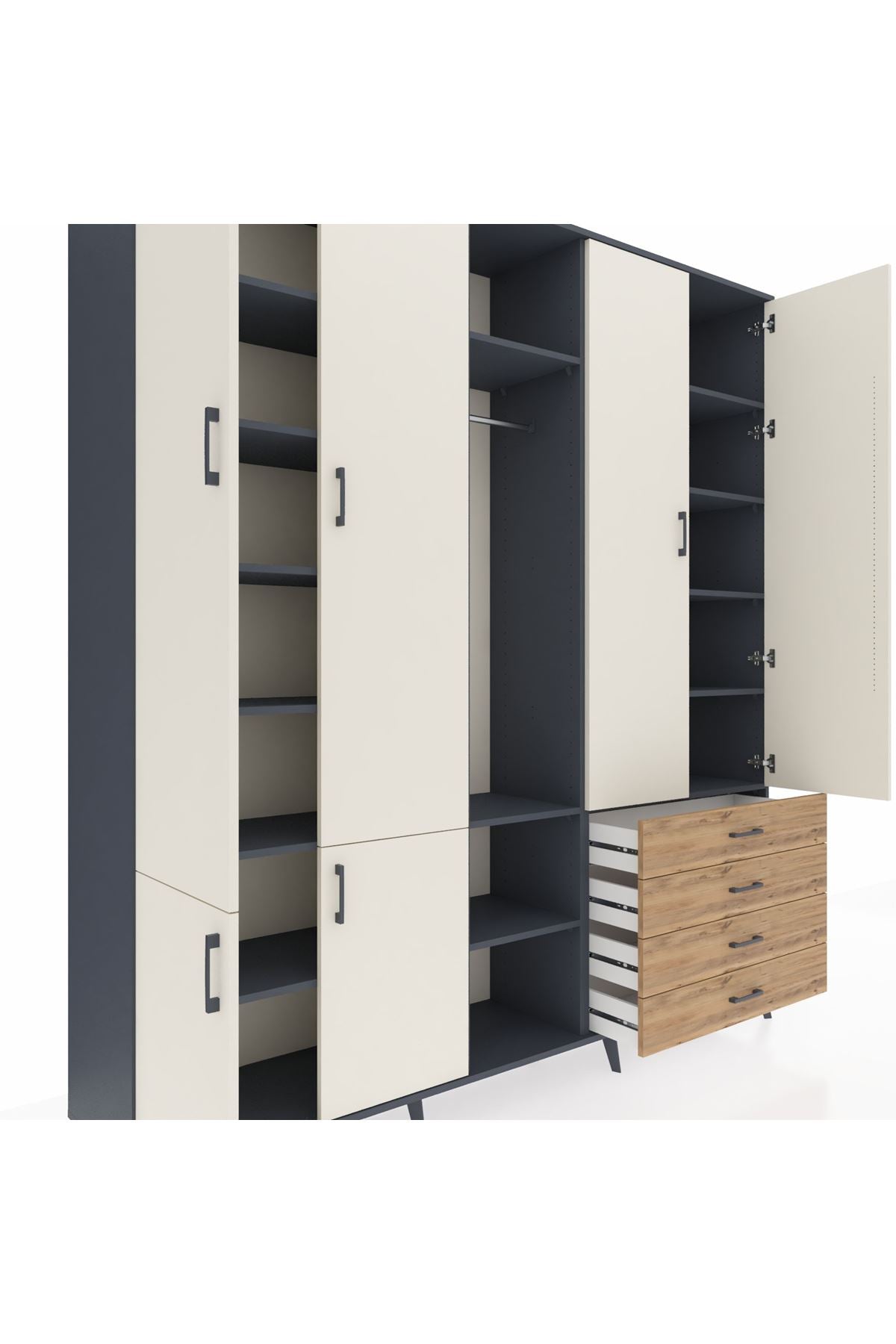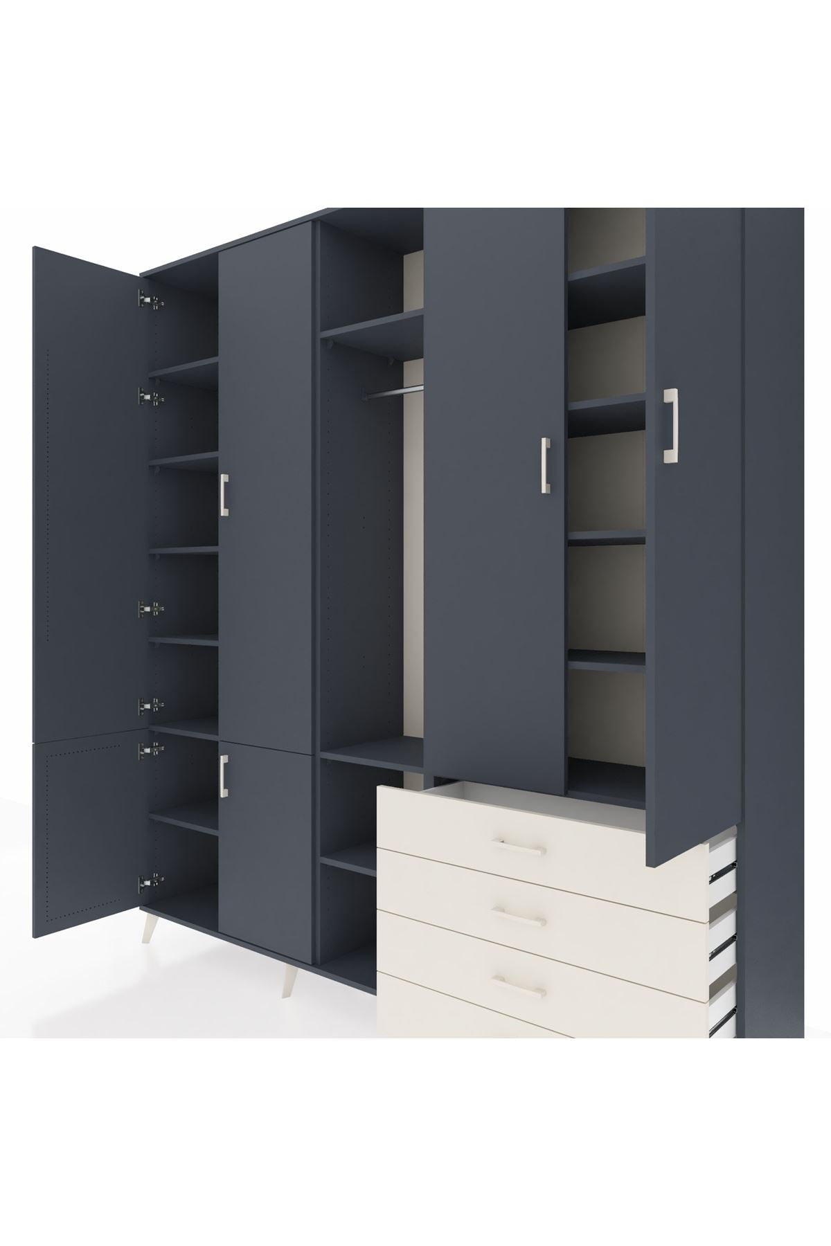 📌 Hyperion Dolap 14 Raflı 4 Çekmeceli Tek Askılı 220x44x243