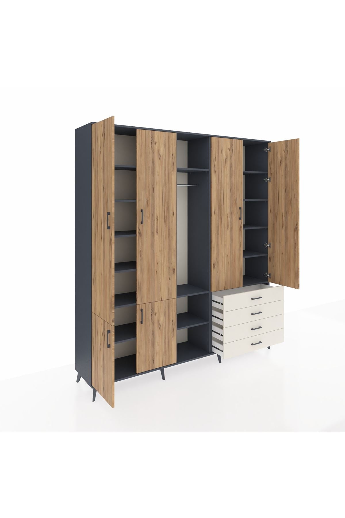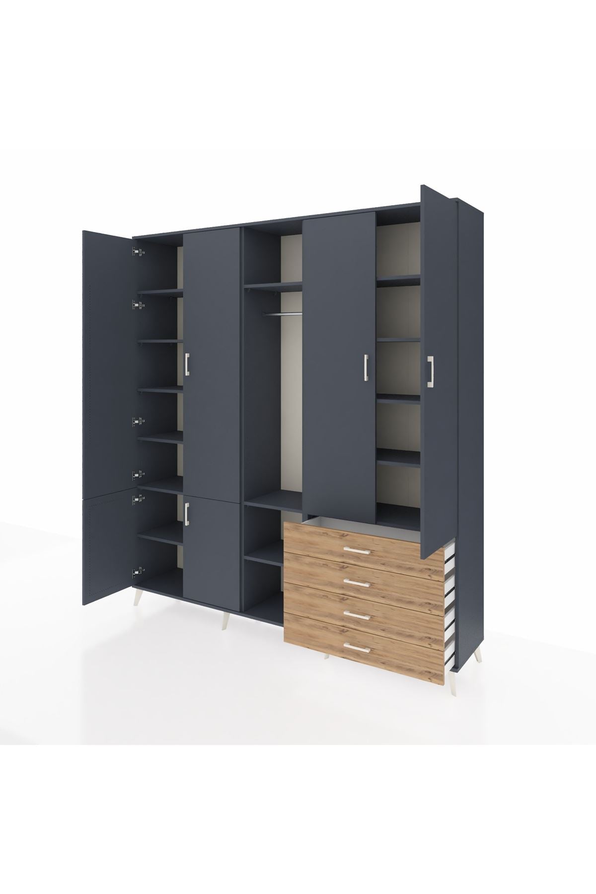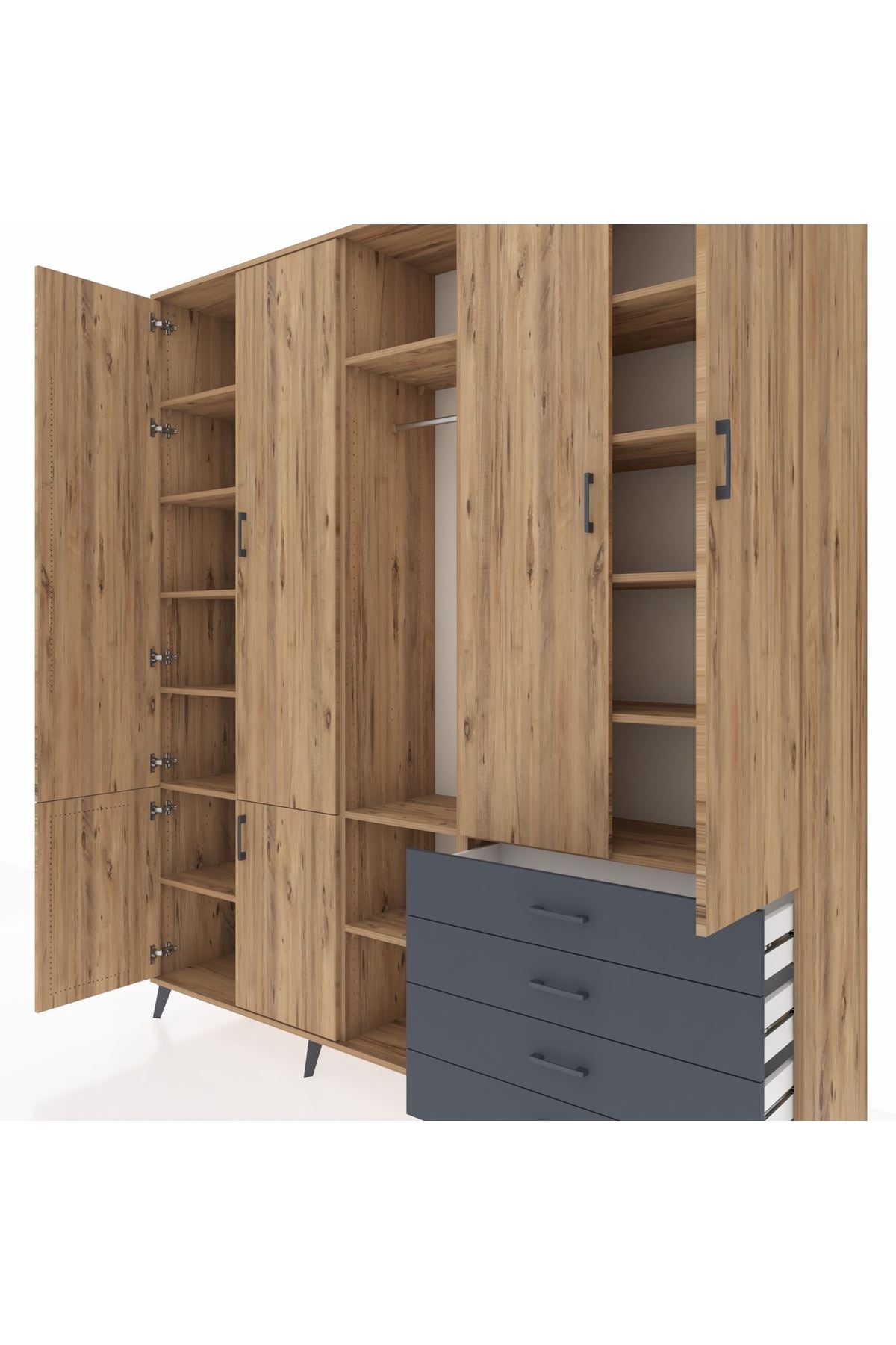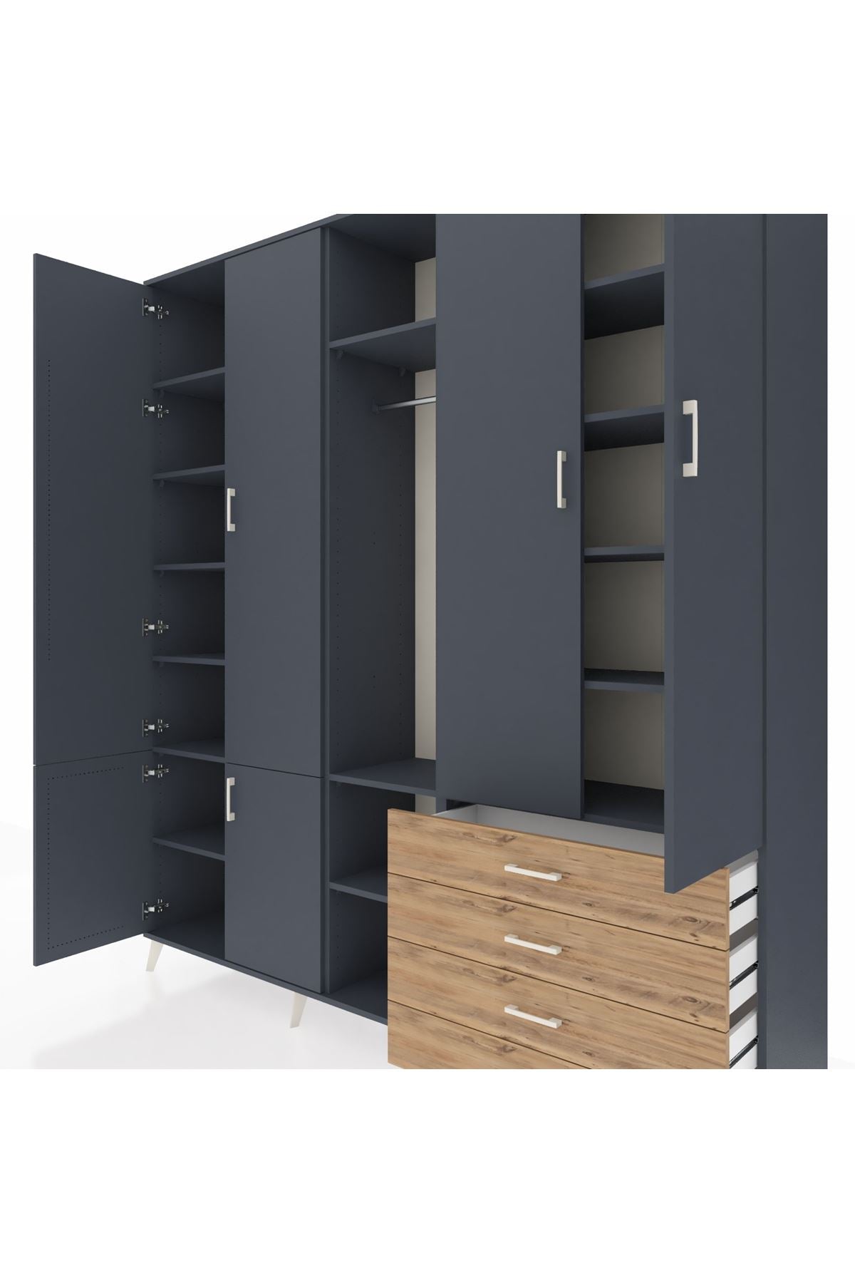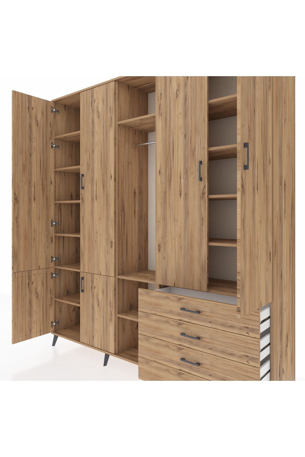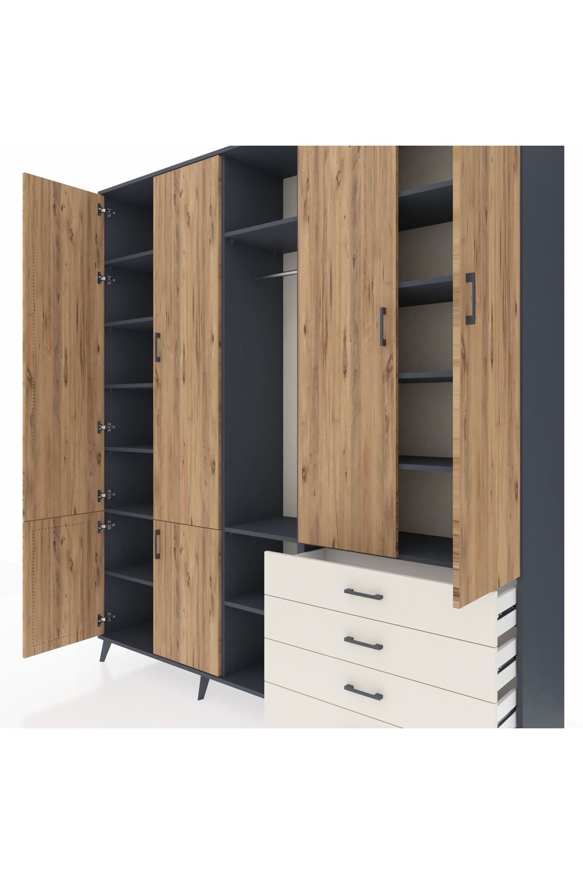 📌 Hyperion Dolap 14 Raflı 4 Çekmeceli Tek Askılı 220x44x243