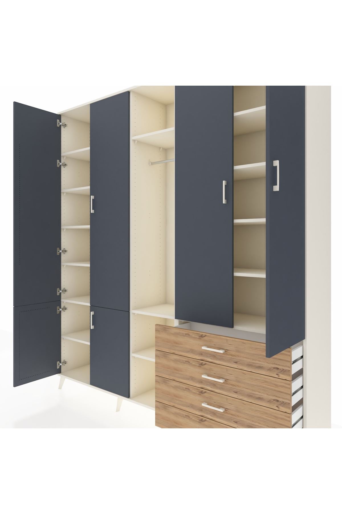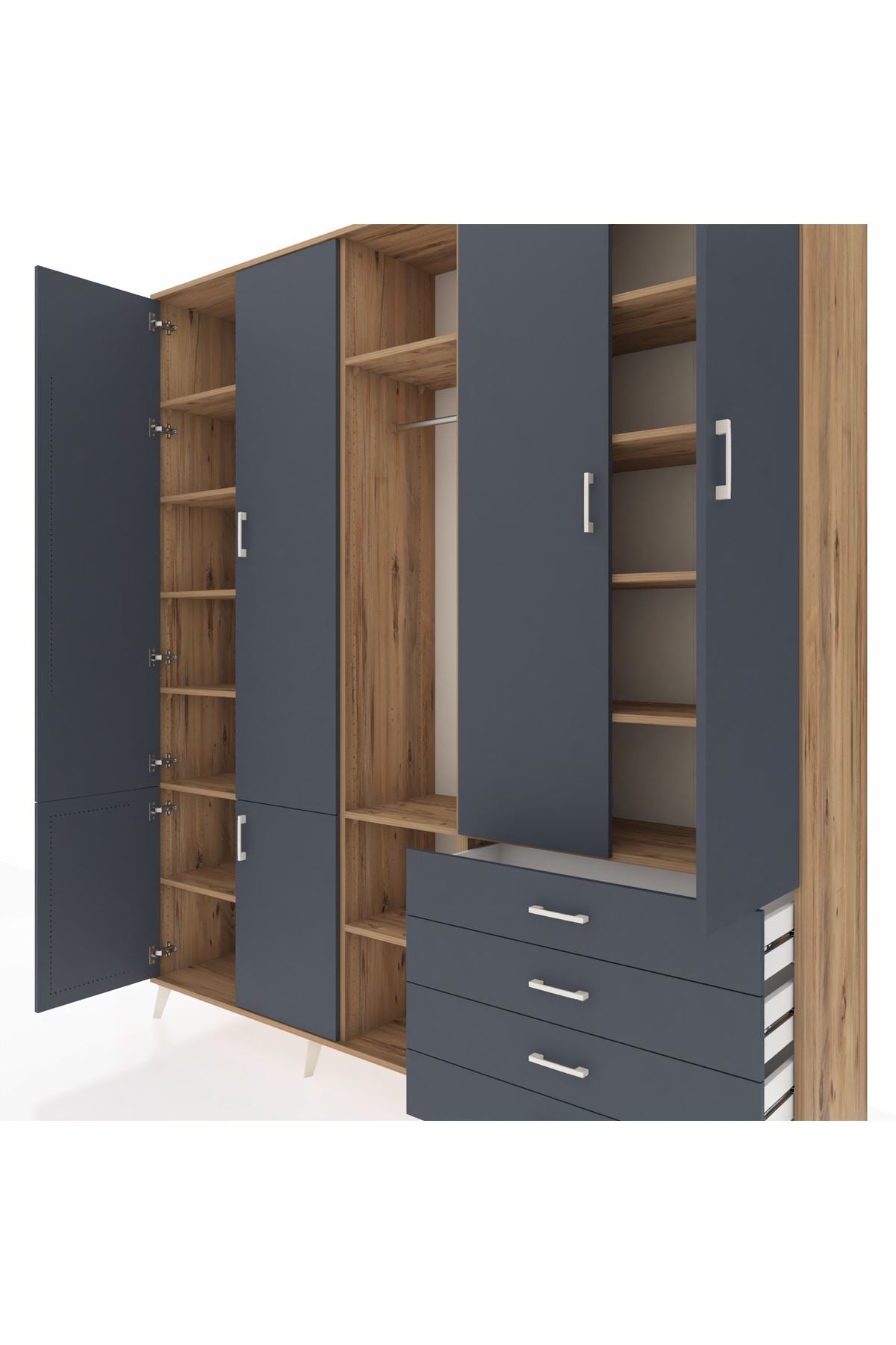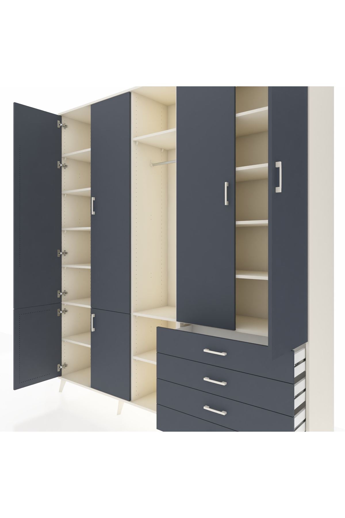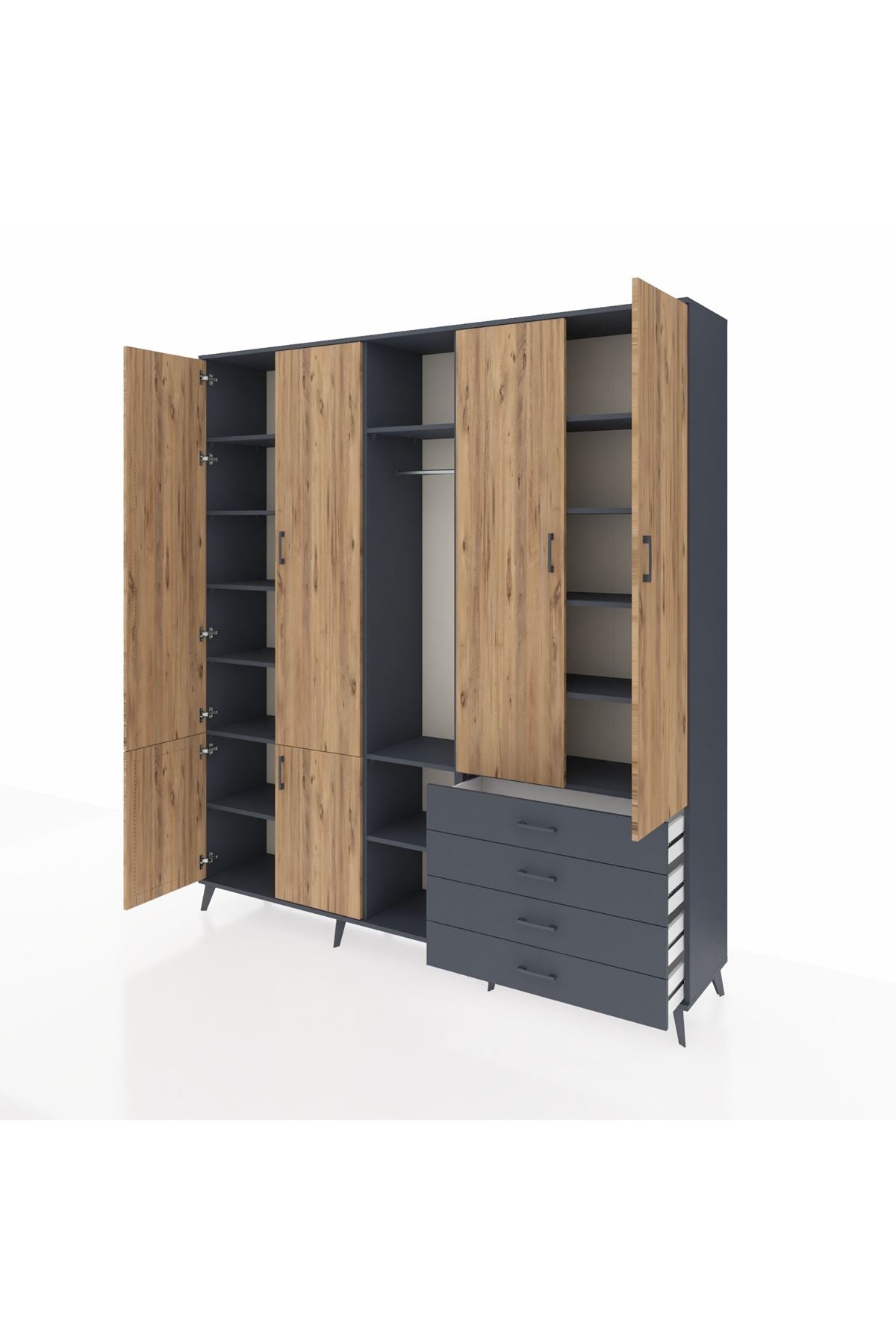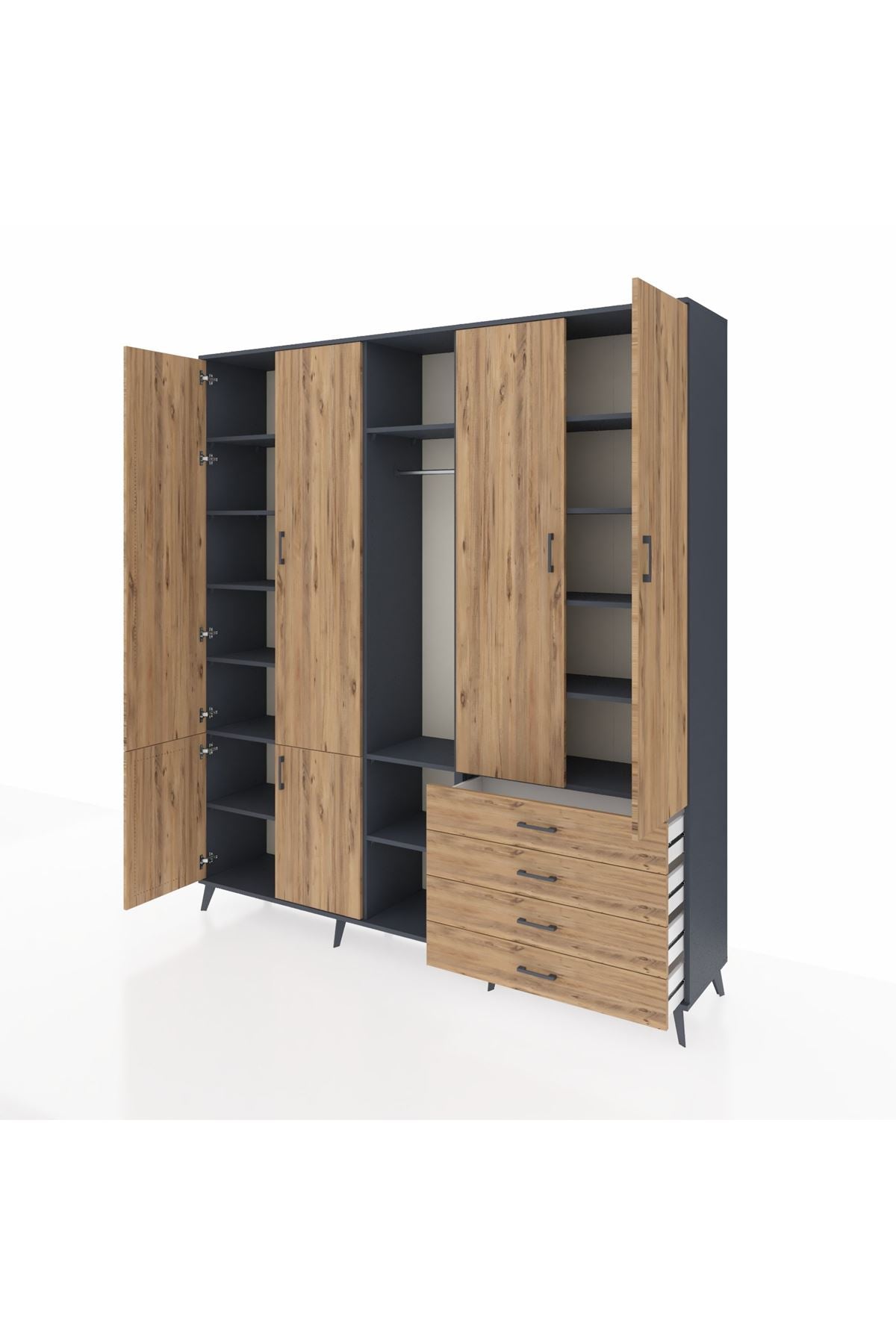📌 Hyperion Dolap 14 Raflı 4 Çekmeceli Tek Askılı 220x44x243