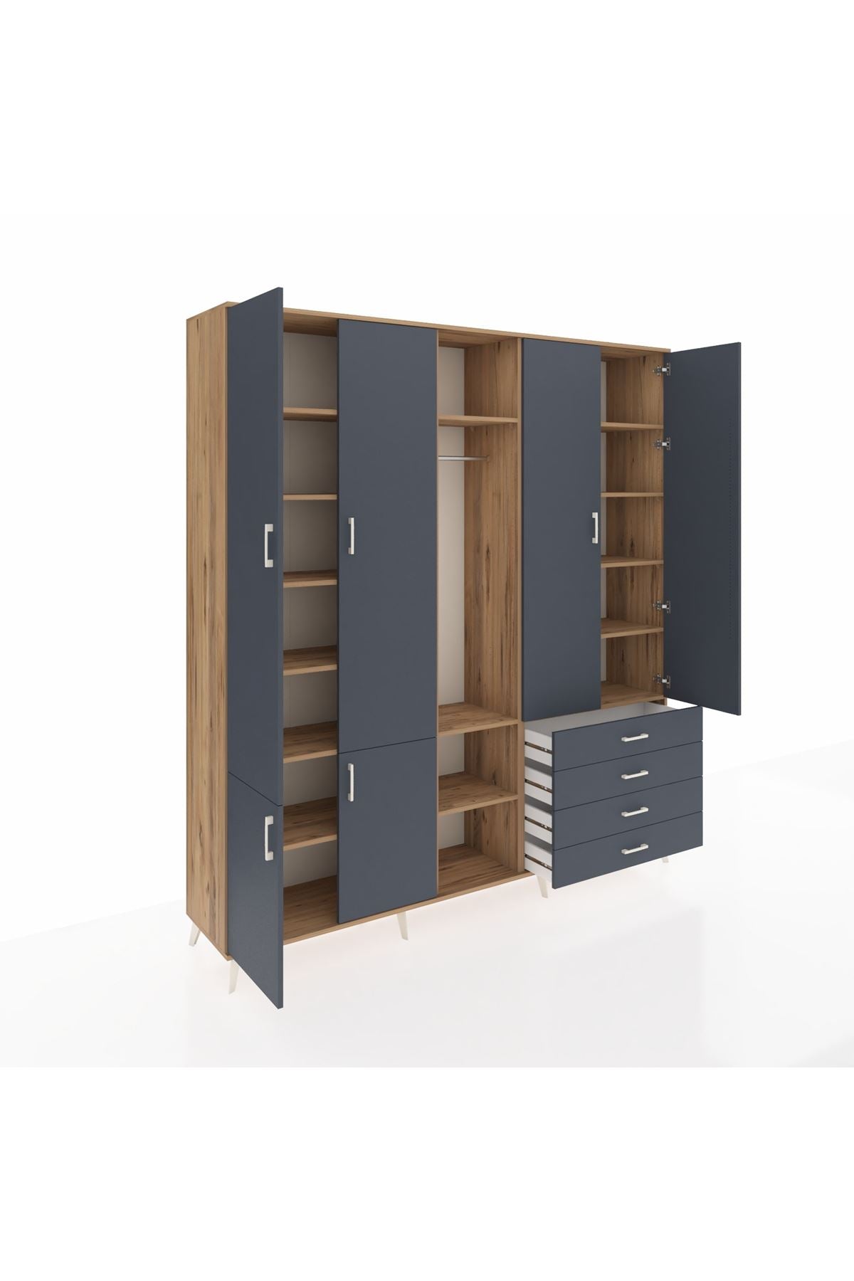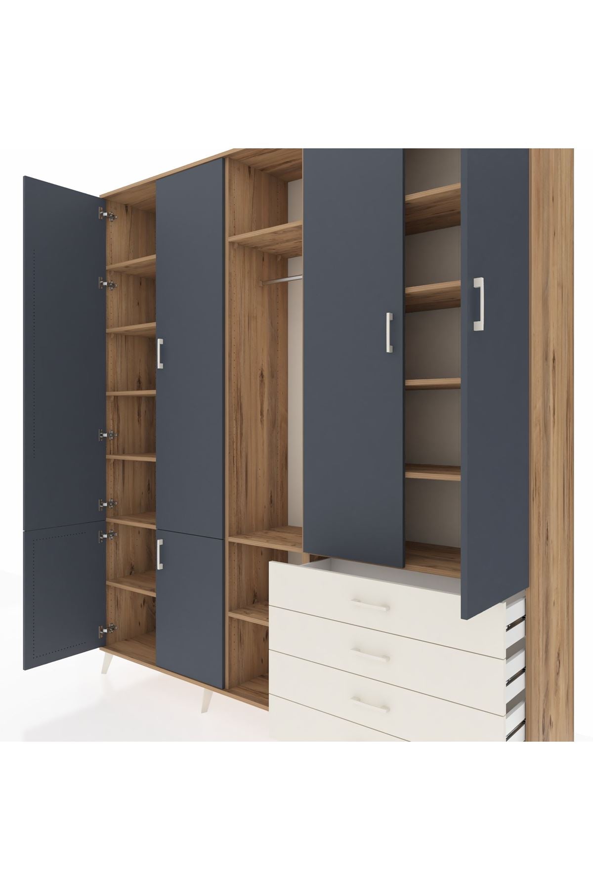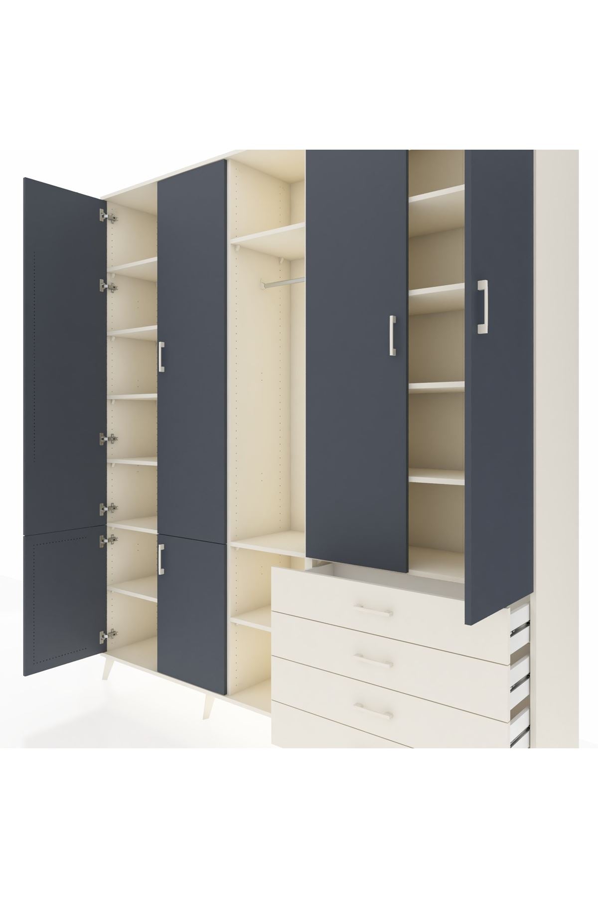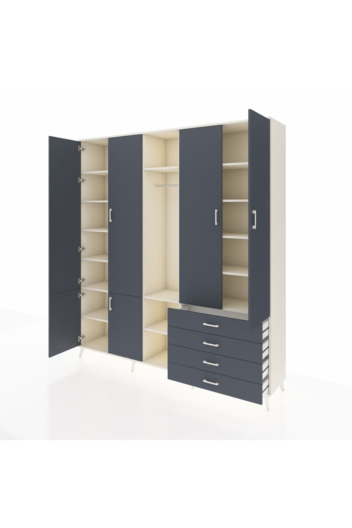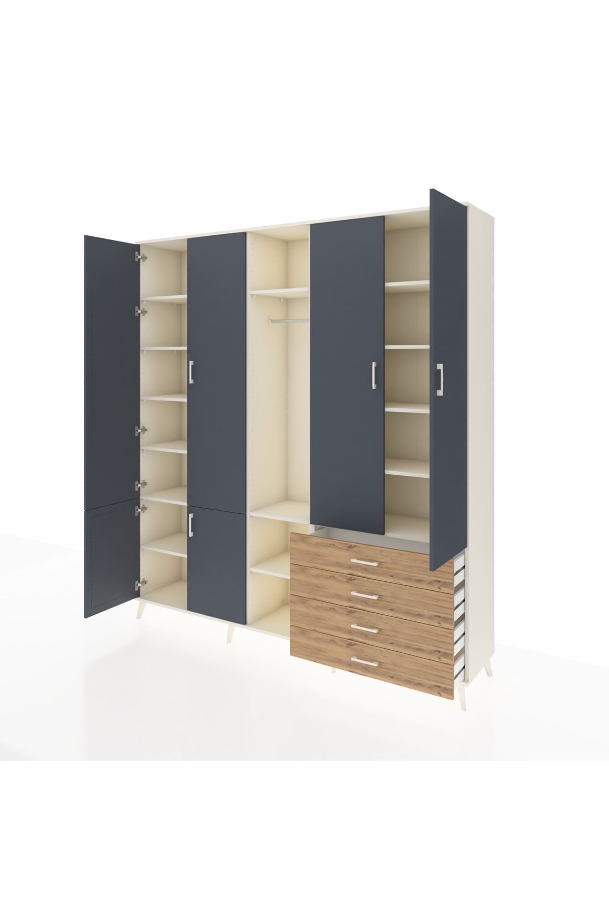 📌 Hyperion Dolap 14 Raflı 4 Çekmeceli Tek Askılı 220x44x243