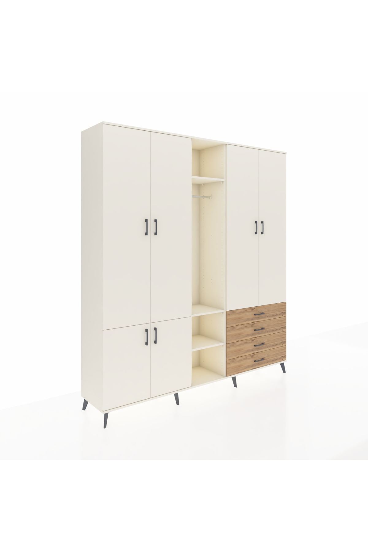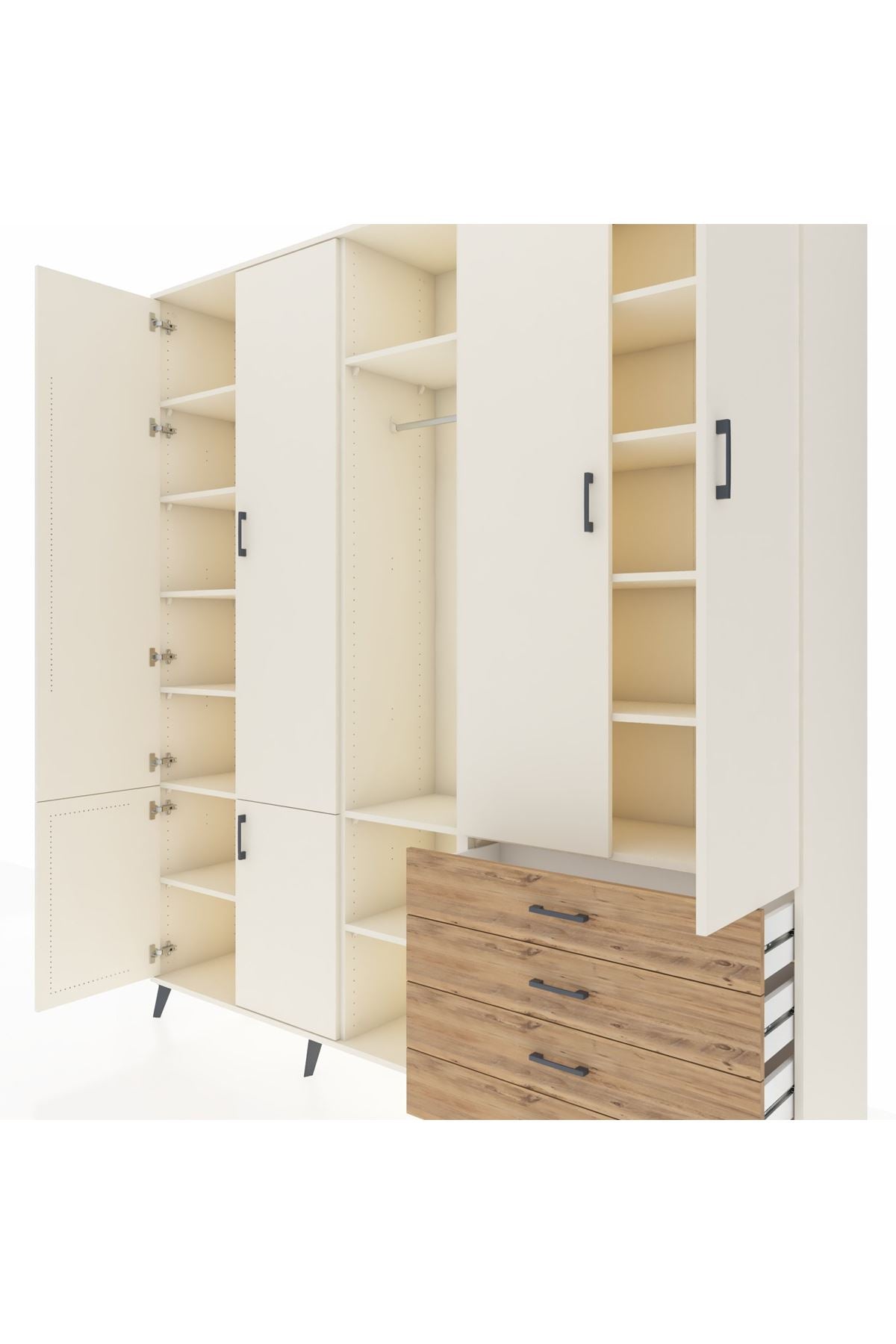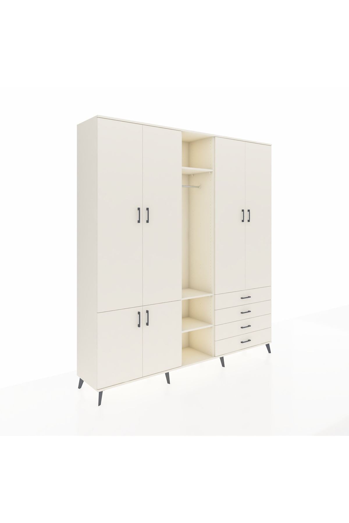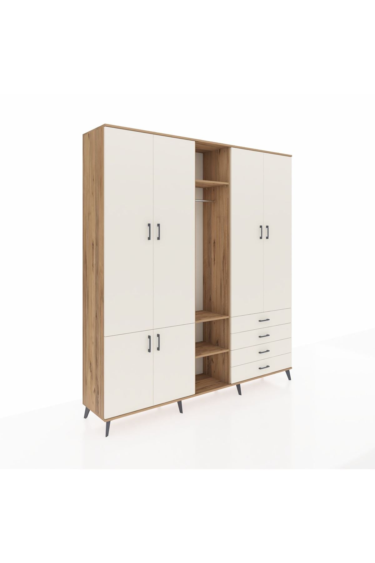Giyinme odanızda veya giyinme alanınızda, kıyafetlerinizi, ayakkabılarınızı ve çantalarınızı organize etmek için mükemmel bir çözümdür. Raflar ve çekmeceler, eşyalarınızı kategorize etmenize yardımcı olurken, askılı bölümü ise, uzun elbiselerinizi ve ceketlerinizi düzenli bir şekilde saklamanızı sağlar.