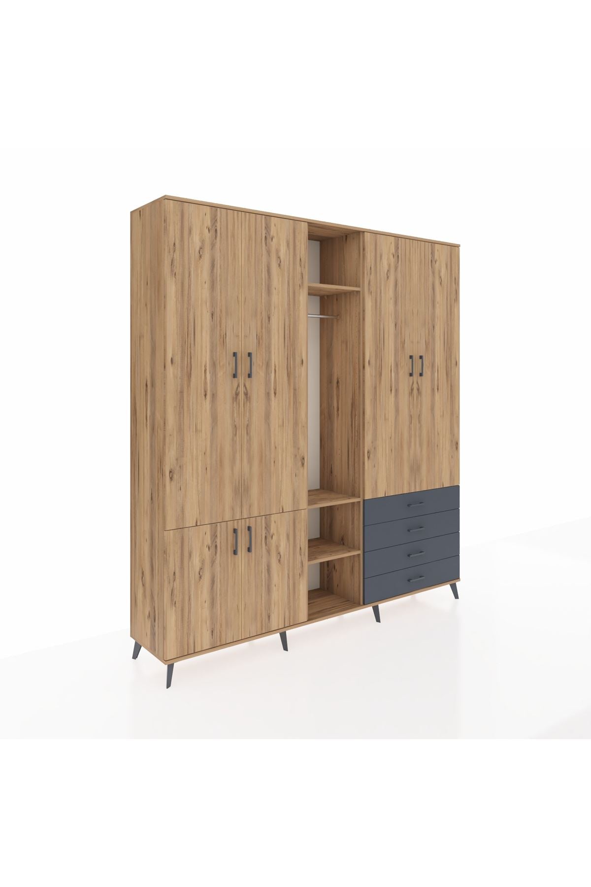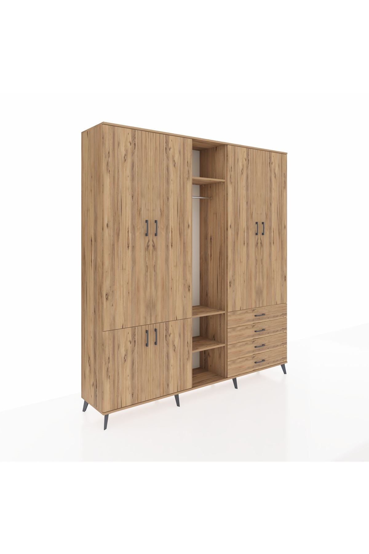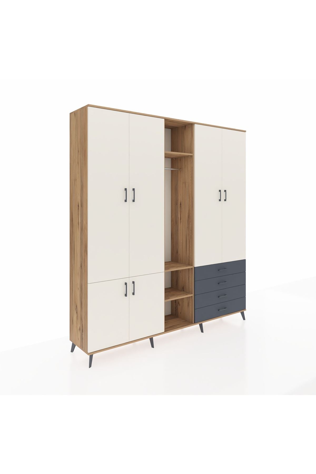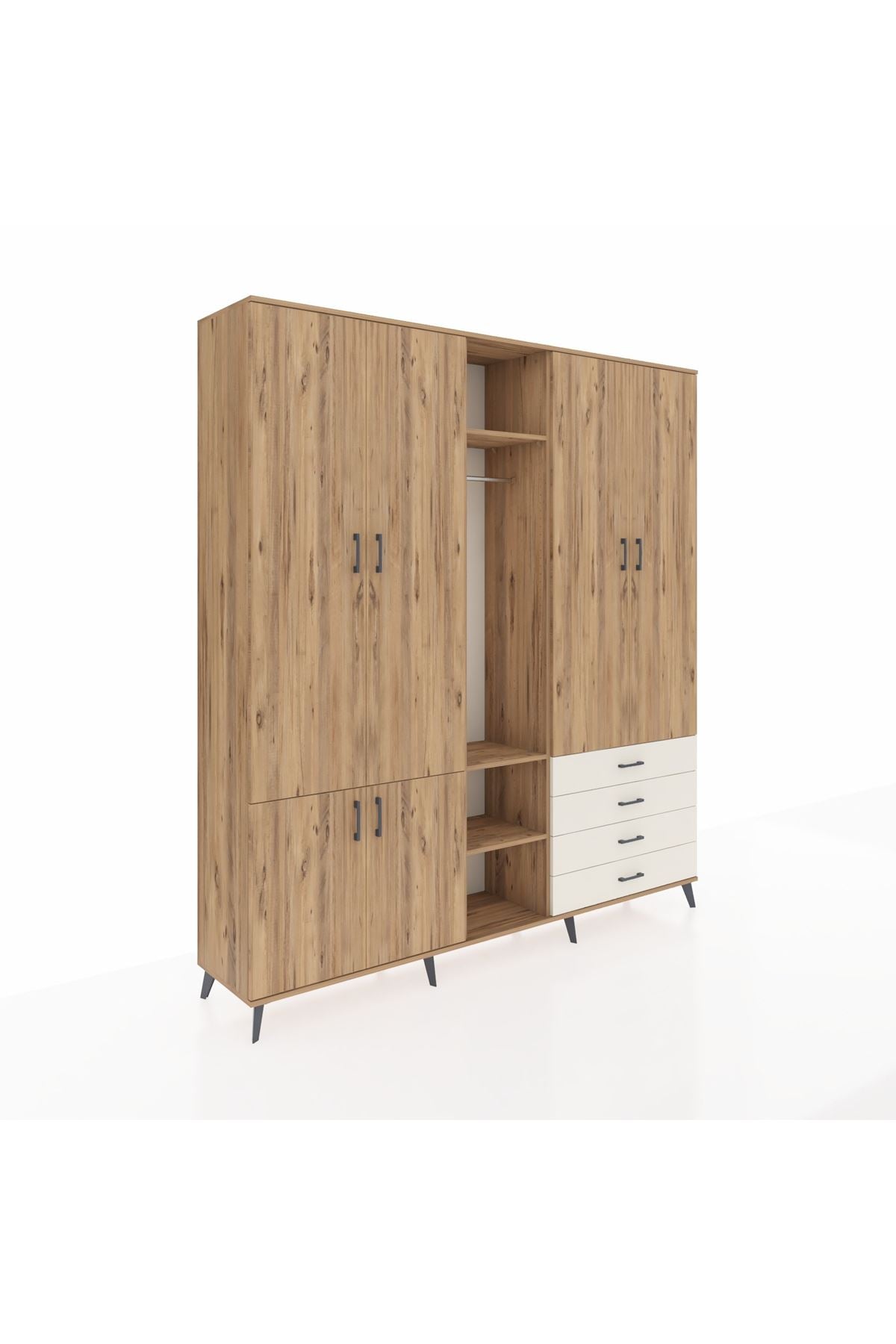 Giyinme odanızda veya giyinme alanınızda, kıyafetlerinizi, ayakkabılarınızı ve çantalarınızı organize etmek için mükemmel bir çözümdür. Raflar ve çekmeceler, eşyalarınızı kategorize etmenize yardımcı olurken, askılı bölümü ise, uzun elbiselerinizi ve ceketlerinizi düzenli bir şekilde saklamanızı sağlar.