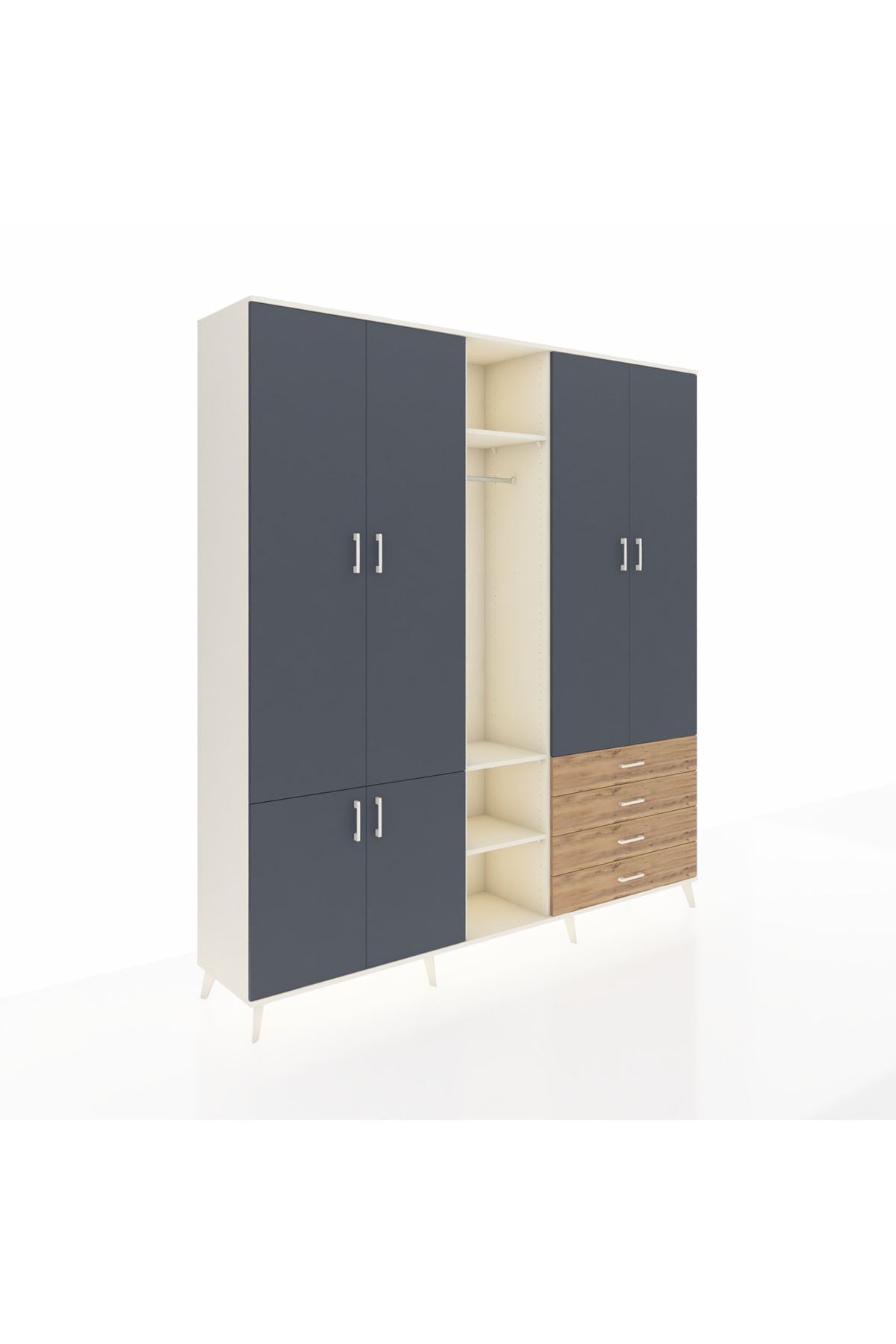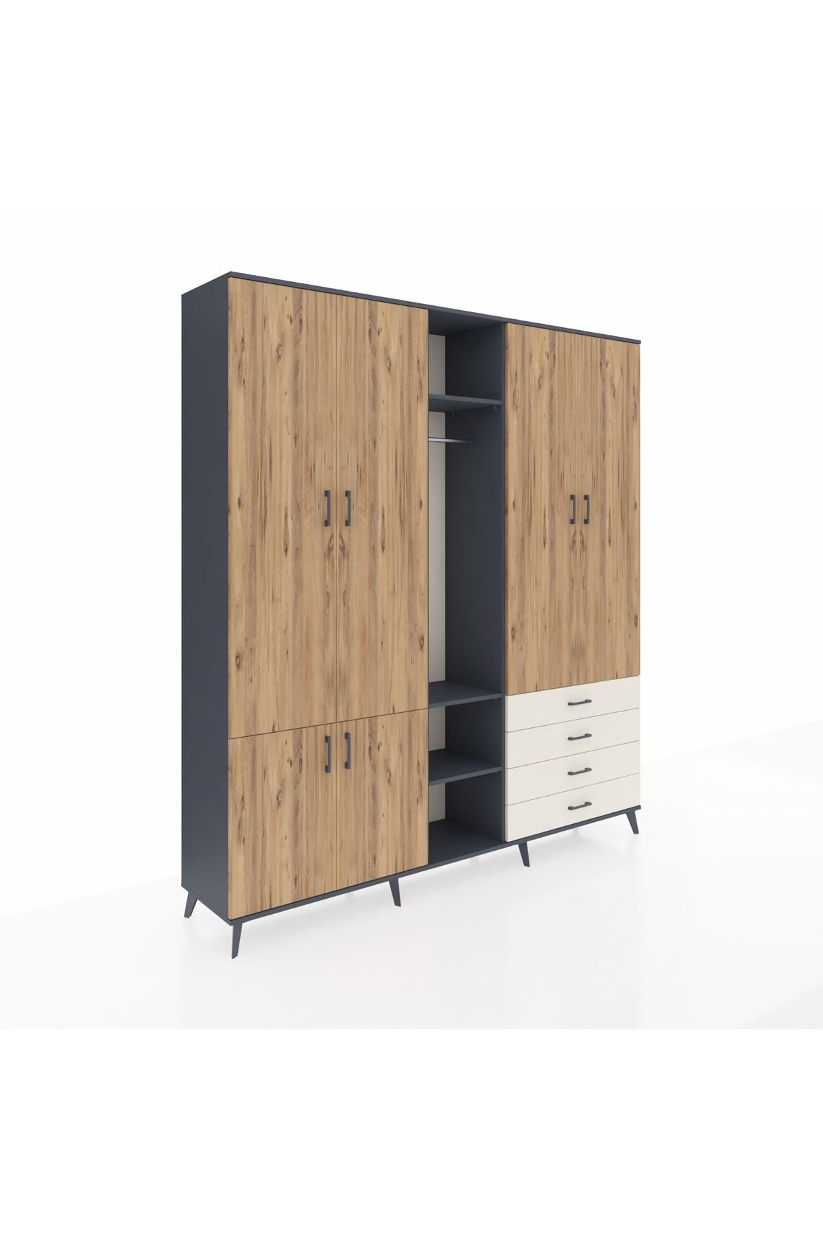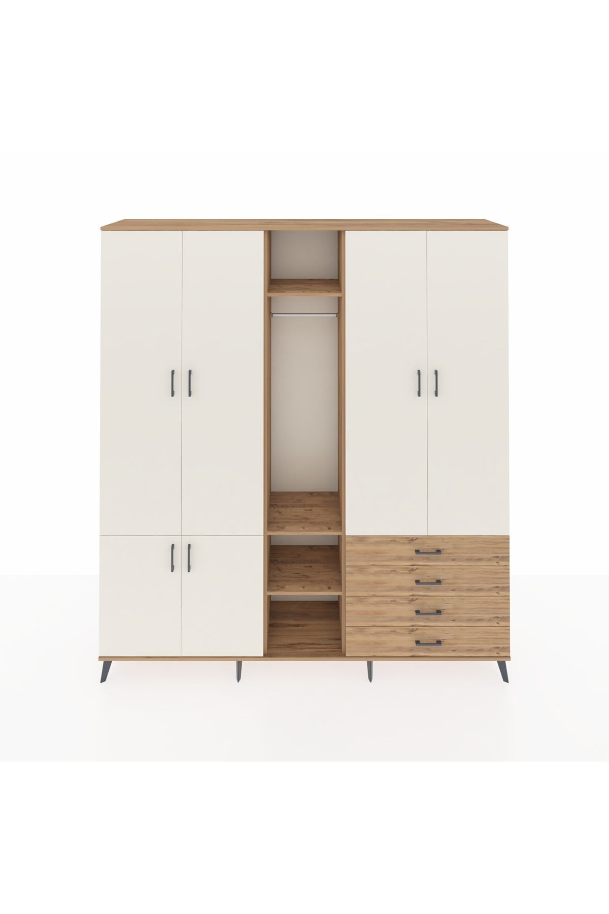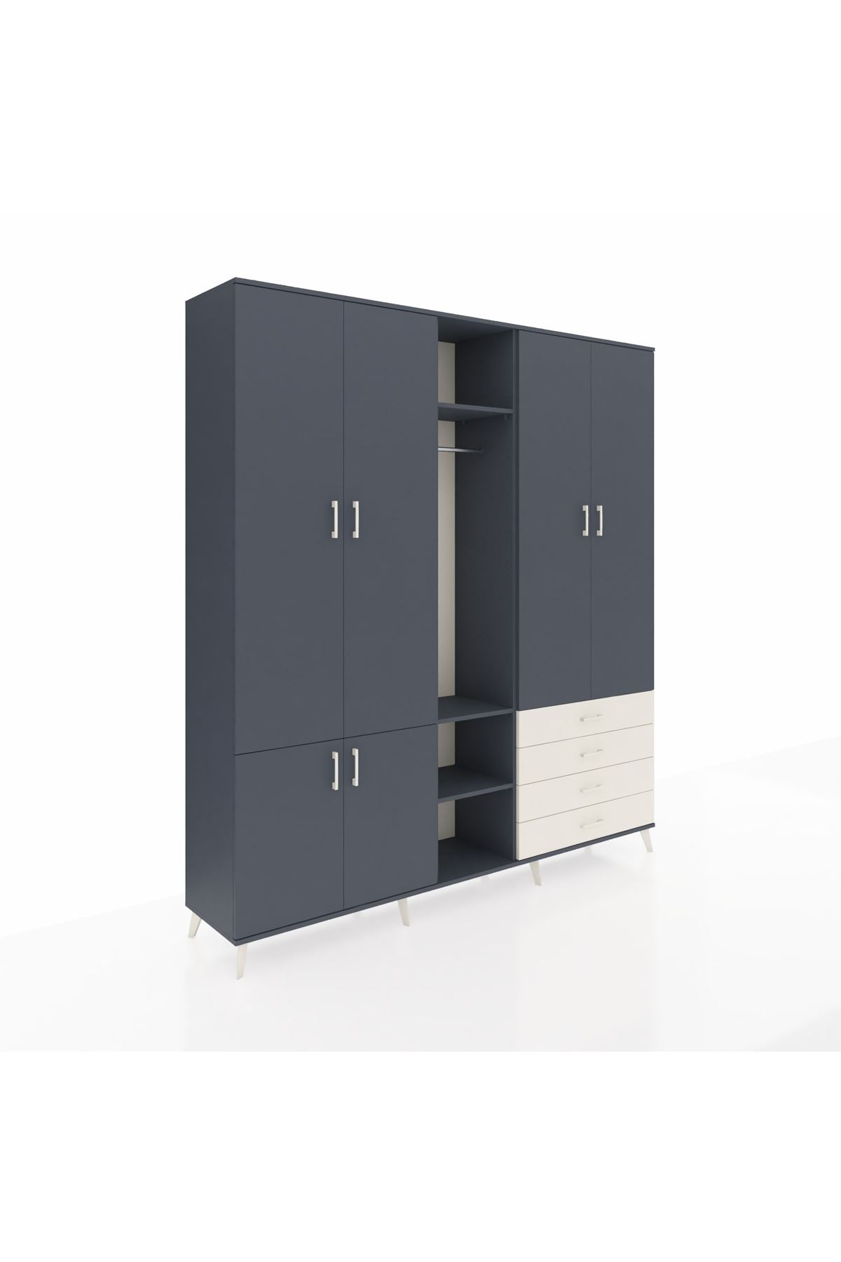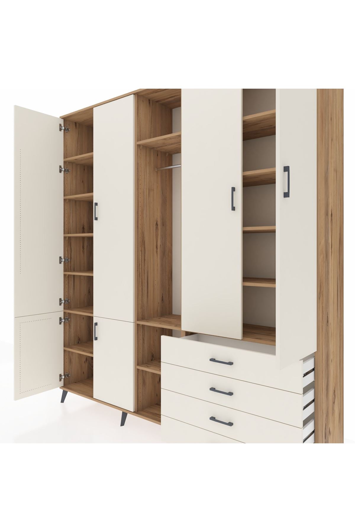 Giyinme odanızda veya giyinme alanınızda, kıyafetlerinizi, ayakkabılarınızı ve çantalarınızı organize etmek için mükemmel bir çözümdür. Raflar ve çekmeceler, eşyalarınızı kategorize etmenize yardımcı olurken, askılı bölümü ise, uzun elbiselerinizi ve ceketlerinizi düzenli bir şekilde saklamanızı sağlar.