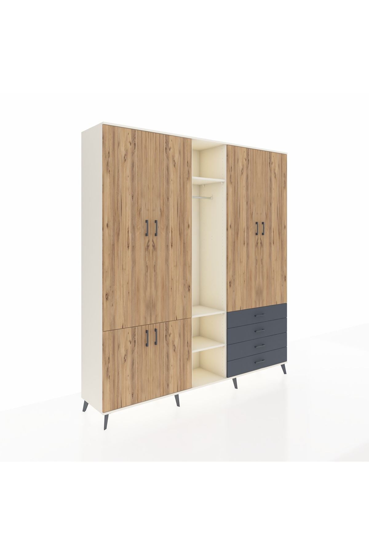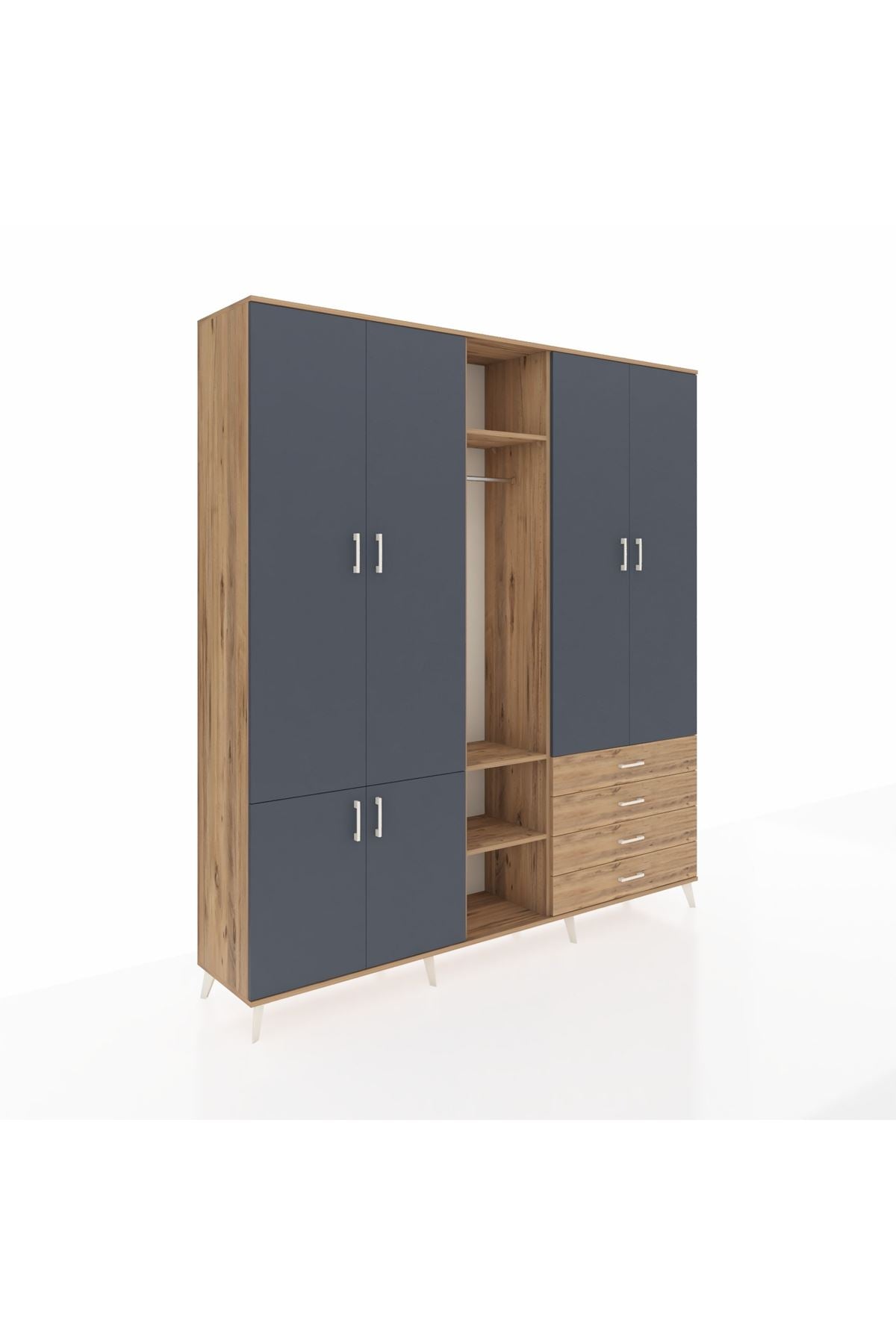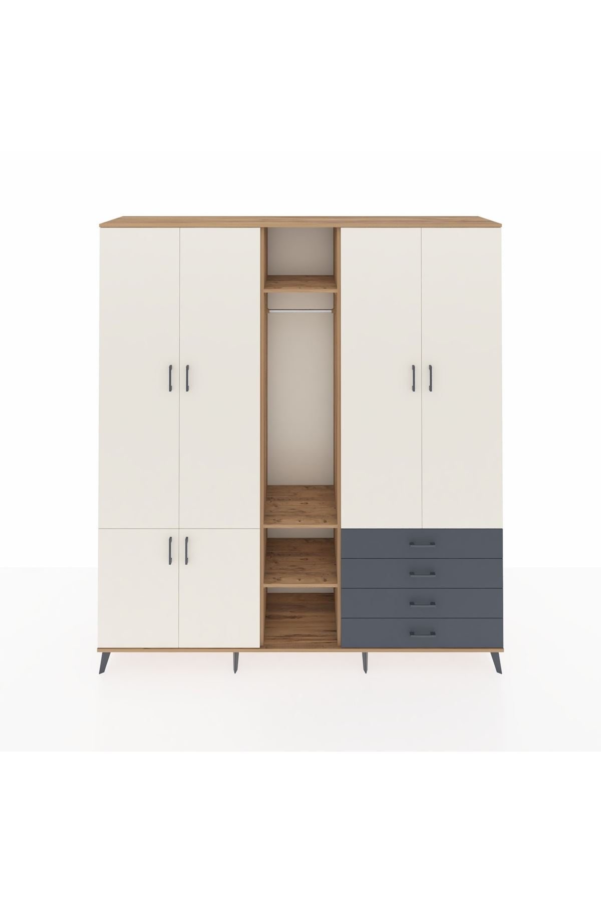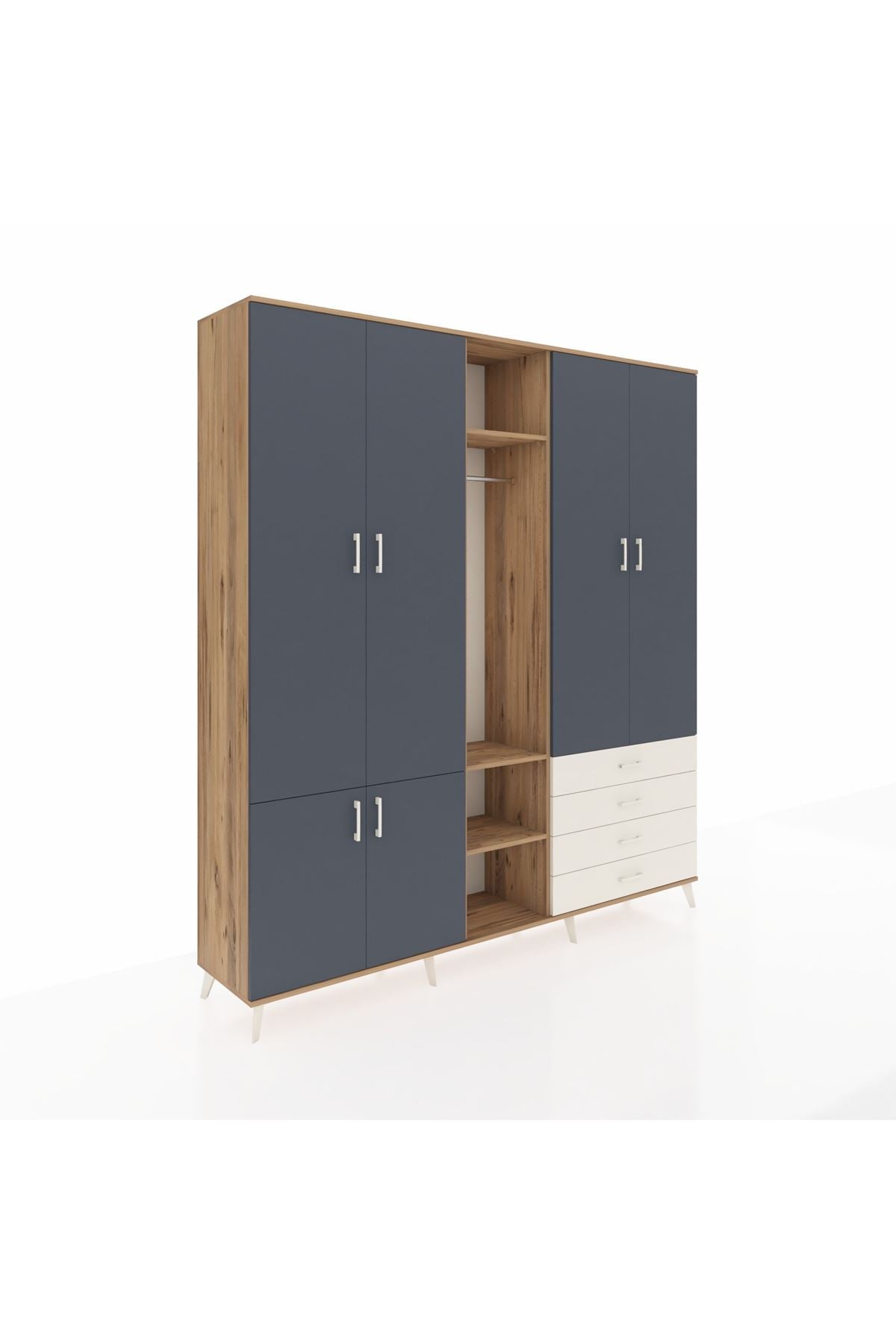 Giyinme odanızda veya giyinme alanınızda, kıyafetlerinizi, ayakkabılarınızı ve çantalarınızı organize etmek için mükemmel bir çözümdür. Raflar ve çekmeceler, eşyalarınızı kategorize etmenize yardımcı olurken, askılı bölümü ise, uzun elbiselerinizi ve ceketlerinizi düzenli bir şekilde saklamanızı sağlar.