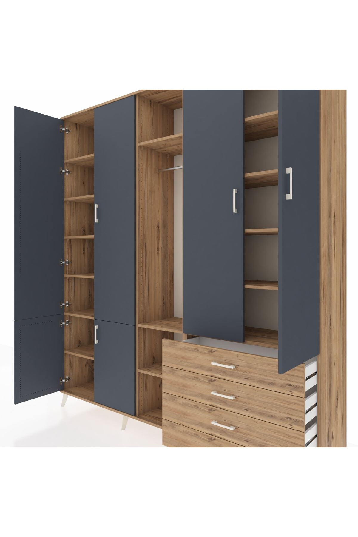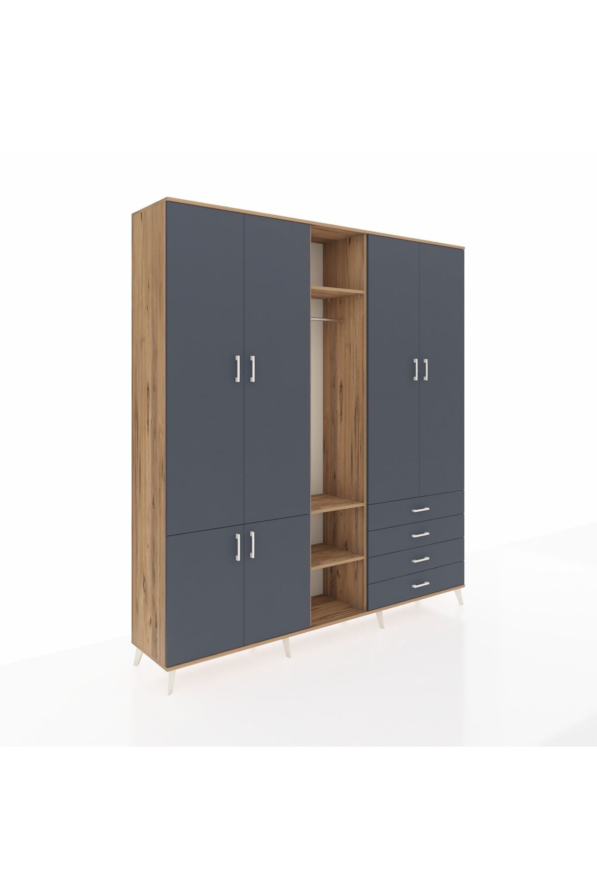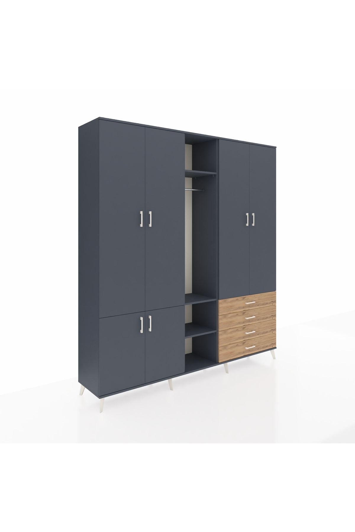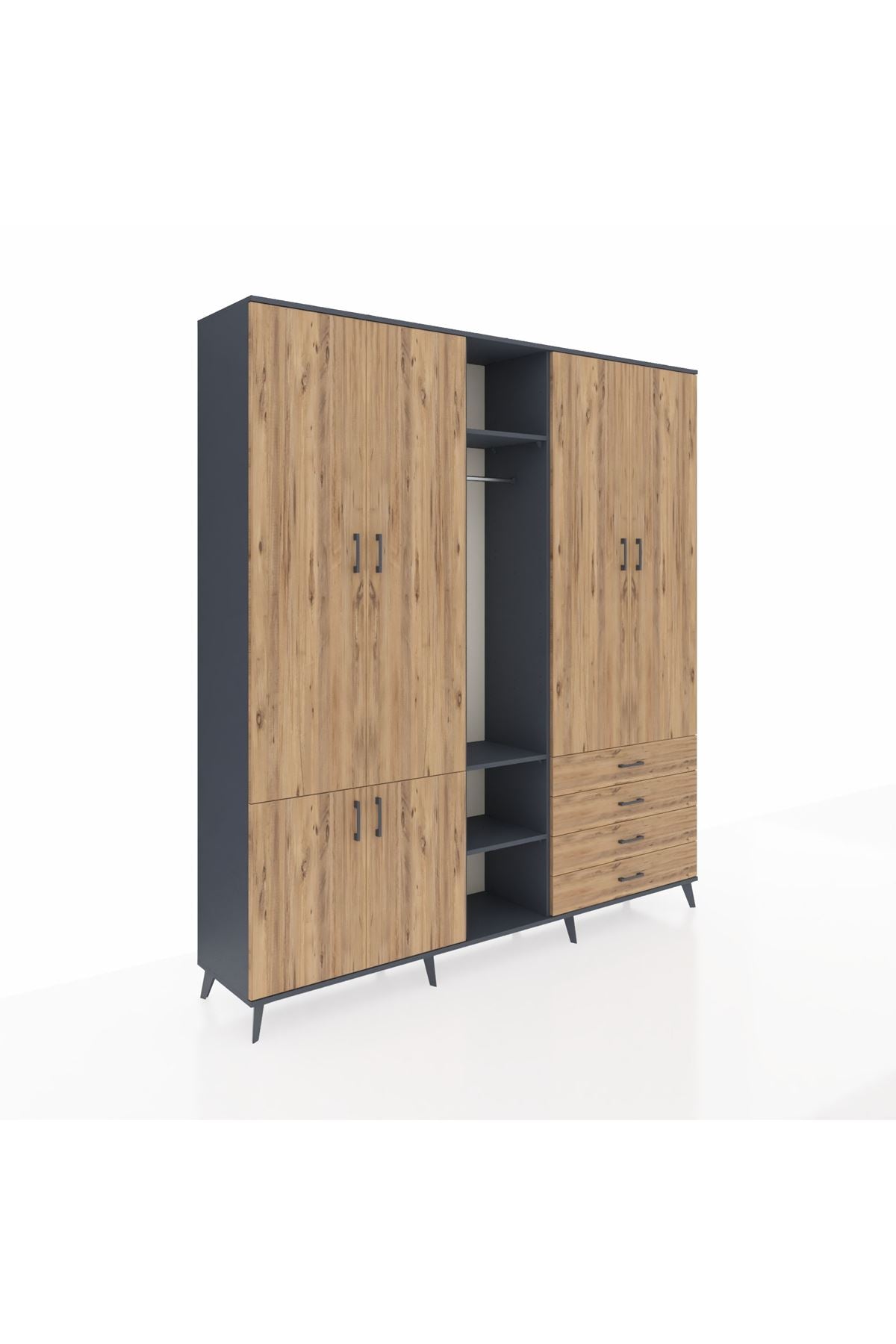 Giyinme odanızda veya giyinme alanınızda, kıyafetlerinizi, ayakkabılarınızı ve çantalarınızı organize etmek için mükemmel bir çözümdür. Raflar ve çekmeceler, eşyalarınızı kategorize etmenize yardımcı olurken, askılı bölümü ise, uzun elbiselerinizi ve ceketlerinizi düzenli bir şekilde saklamanızı sağlar.