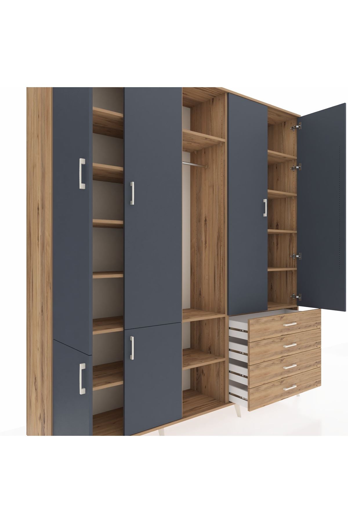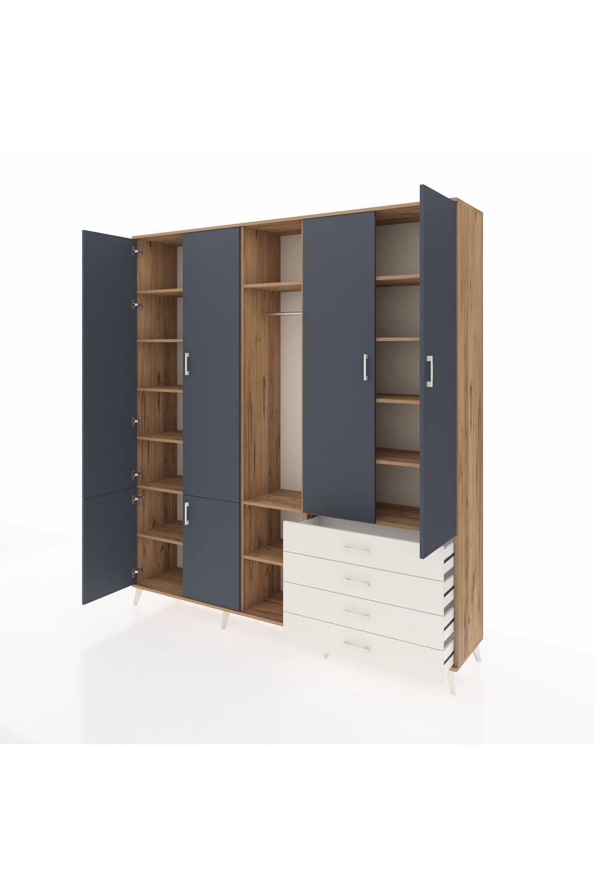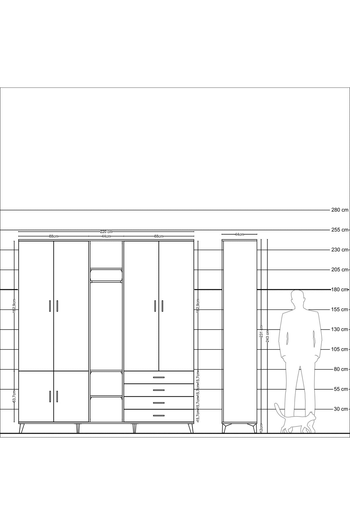 Yatak odanızda kıyafetlerinizi, aksesuarlarınızı ve diğer eşyalarınızı düzenli bir şekilde saklamak için idealdir. 14 rafı ve 4 çekmecesi sayesinde geniş bir depolama alanı sunar. Tek askılı bölümü ise, elbiselerinizi kırışmadan asmanıza olanak tanır.