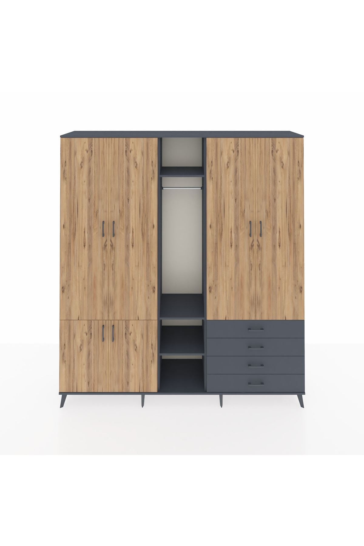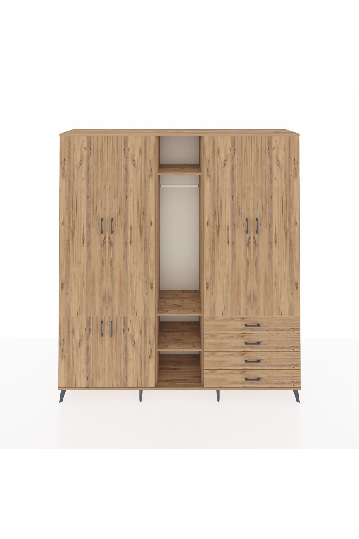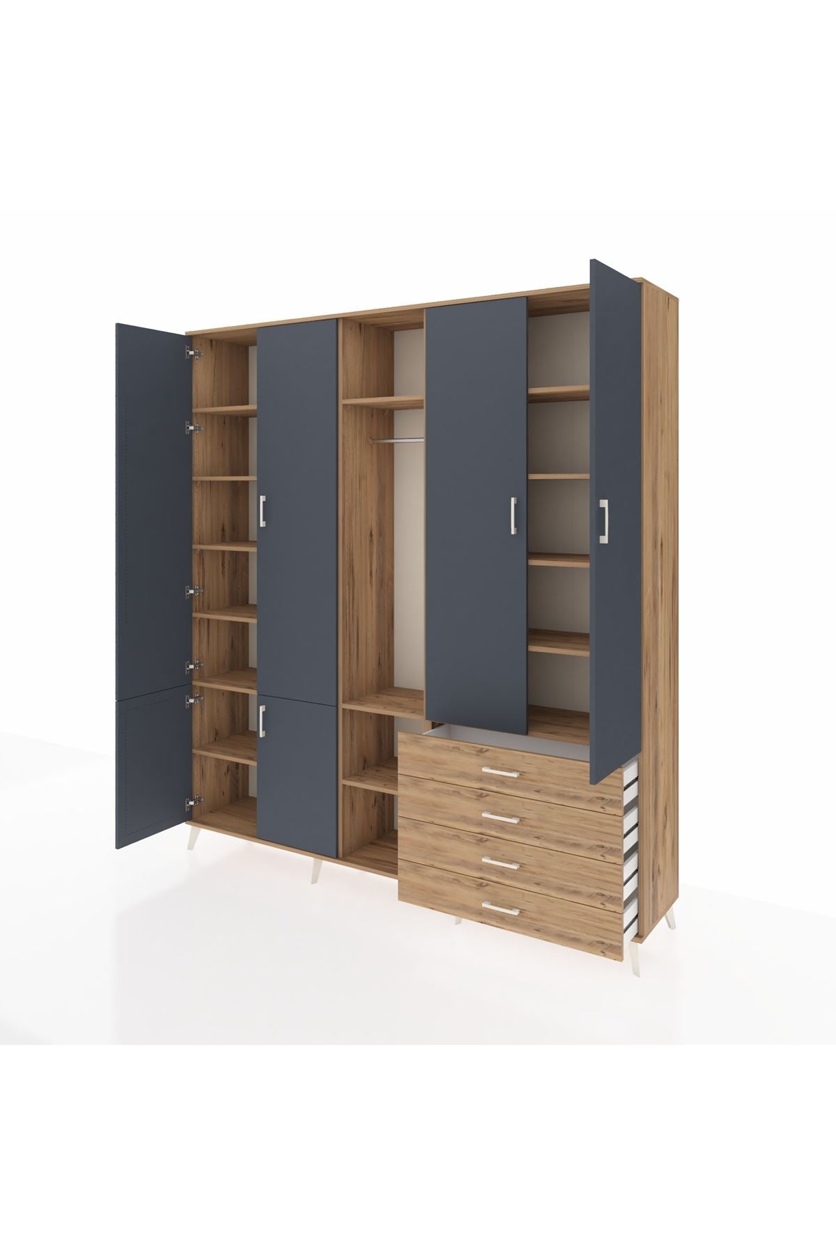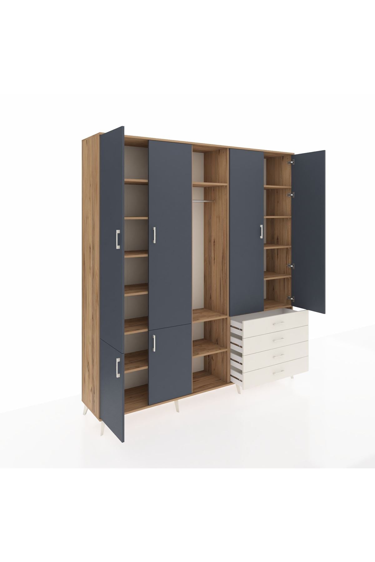 Yatak odanızda kıyafetlerinizi, aksesuarlarınızı ve diğer eşyalarınızı düzenli bir şekilde saklamak için idealdir. 14 rafı ve 4 çekmecesi sayesinde geniş bir depolama alanı sunar. Tek askılı bölümü ise, elbiselerinizi kırışmadan asmanıza olanak tanır.