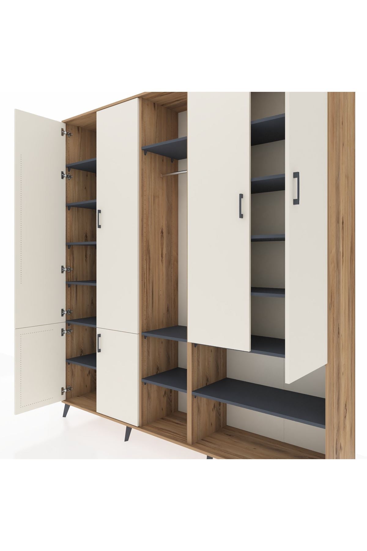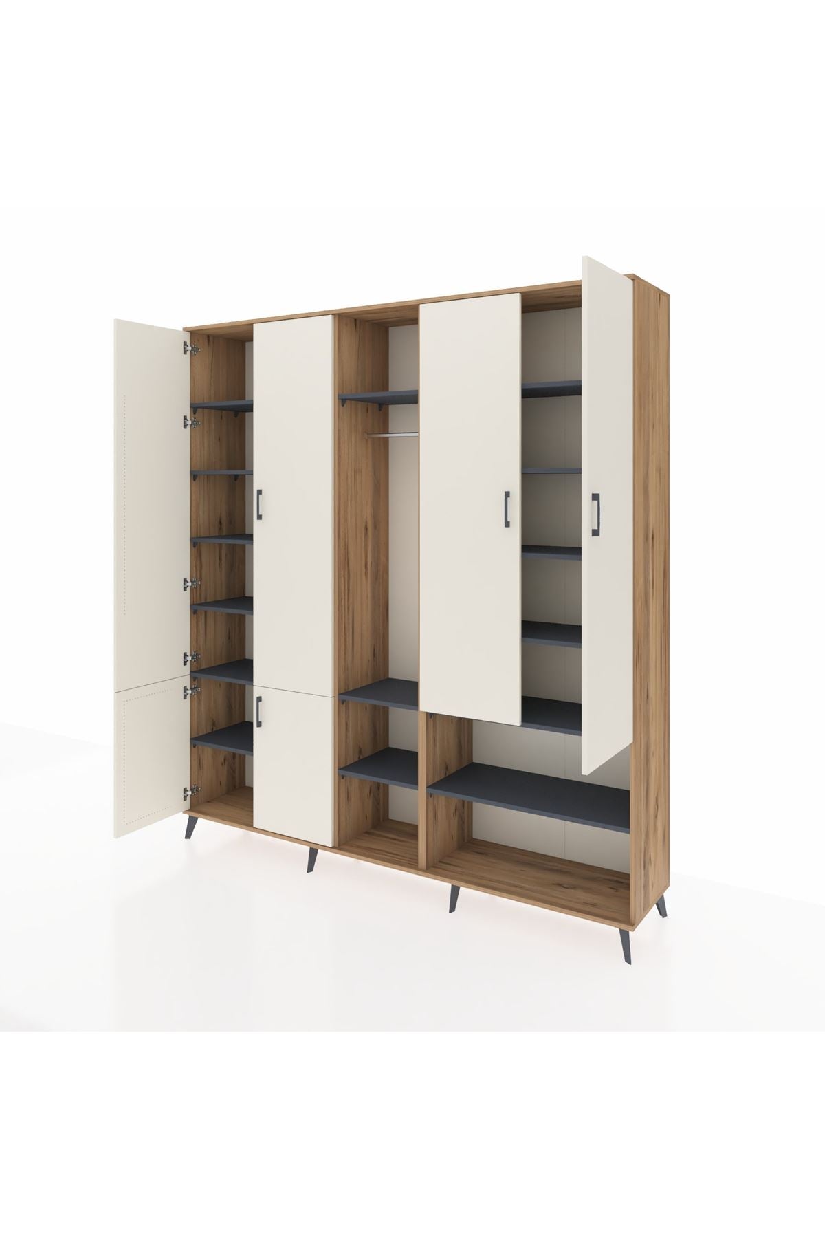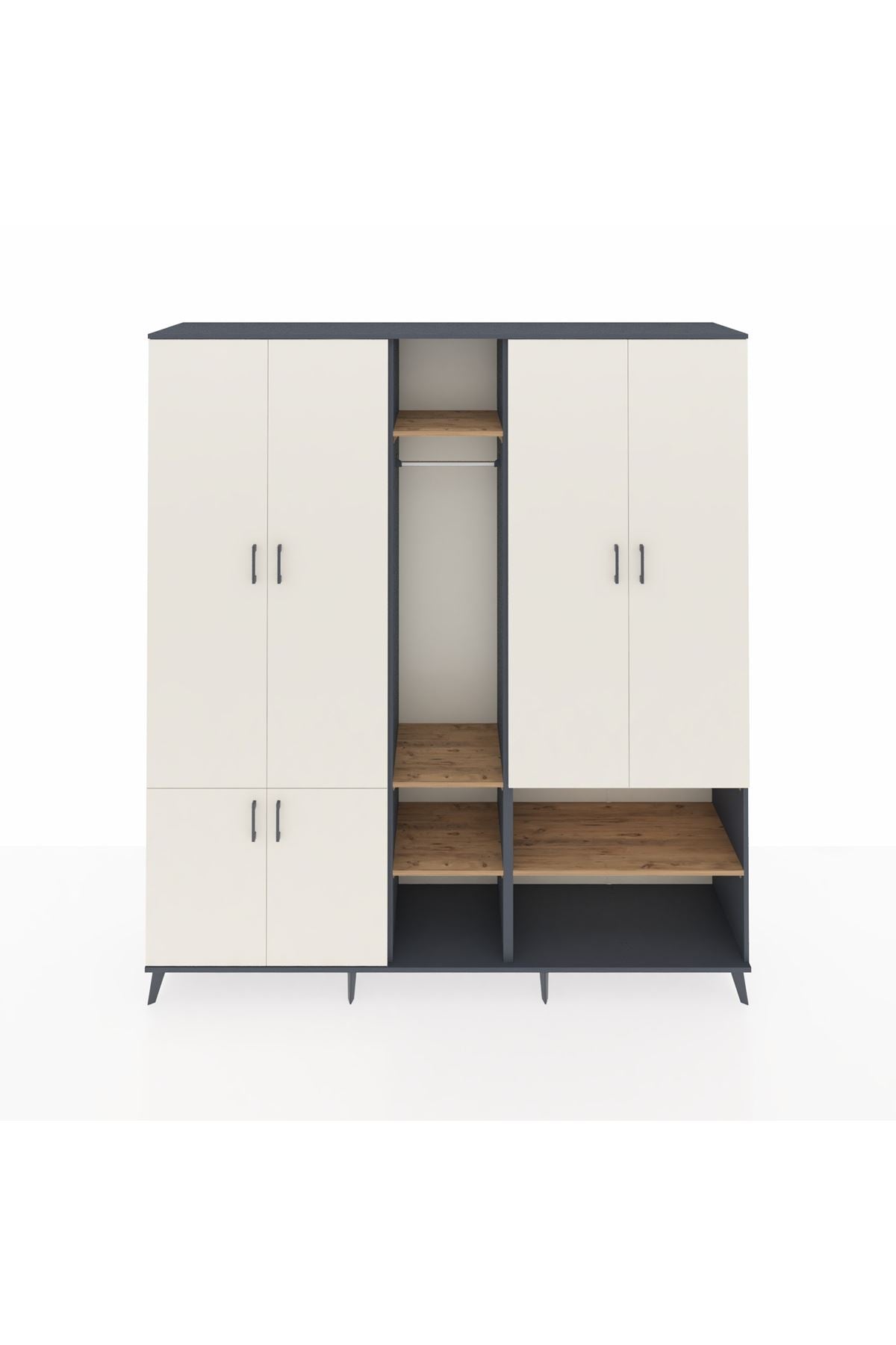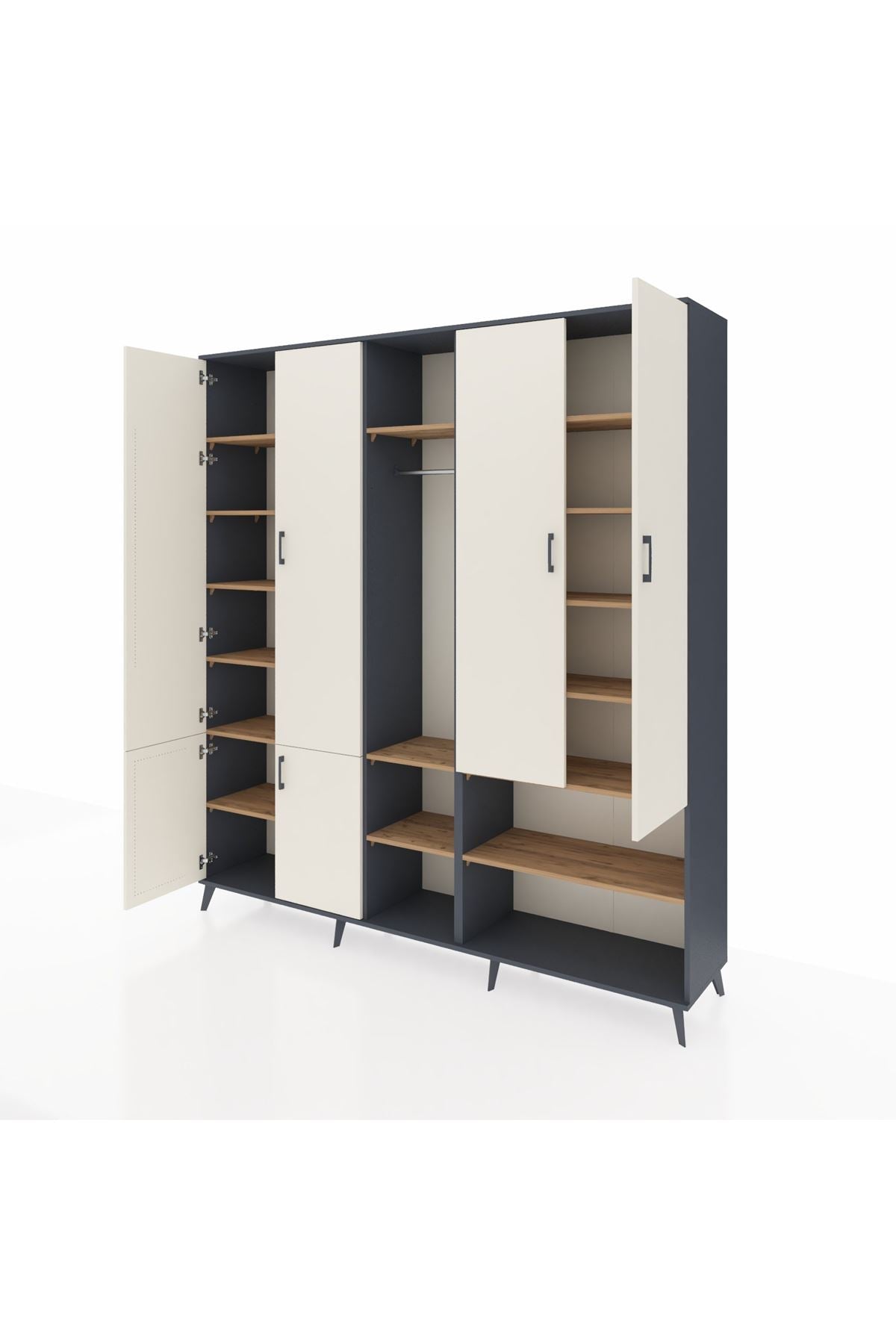 Giyinme odanızda tam bir düzen sağlayacak olan bu dolap, ayakkabılarınızdan aksesuarlarınıza kadar her şeyi organize etmenize olanak tanır. Şık ve fonksiyonel tasarımıyla giyinme odanızın atmosferini zenginleştirir.
