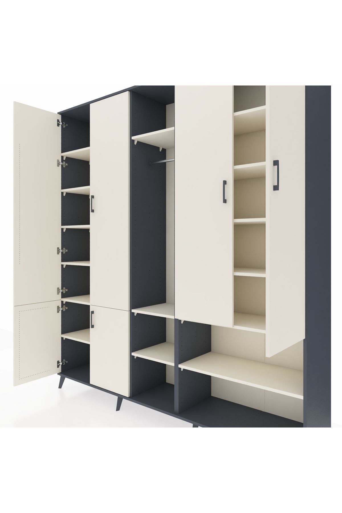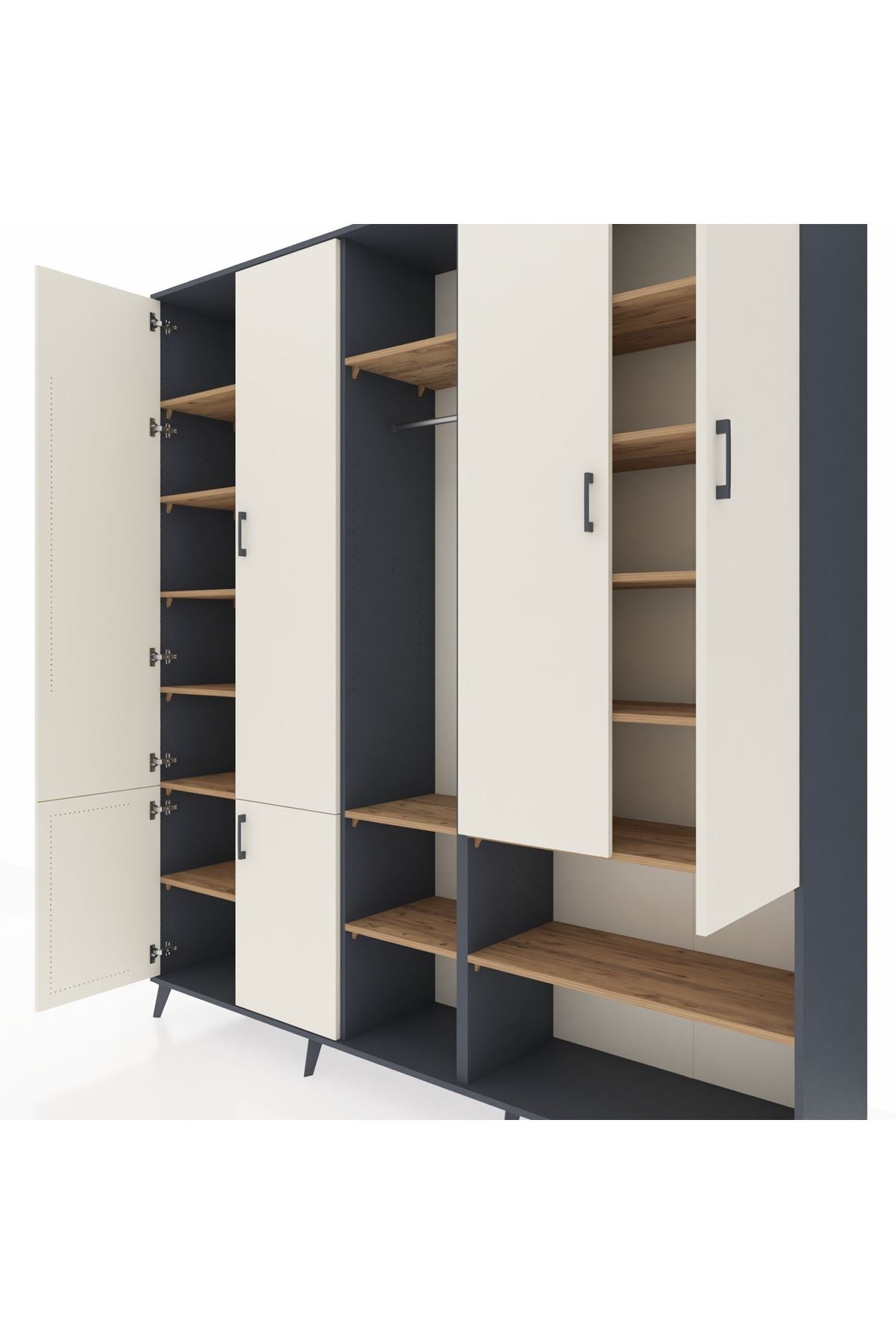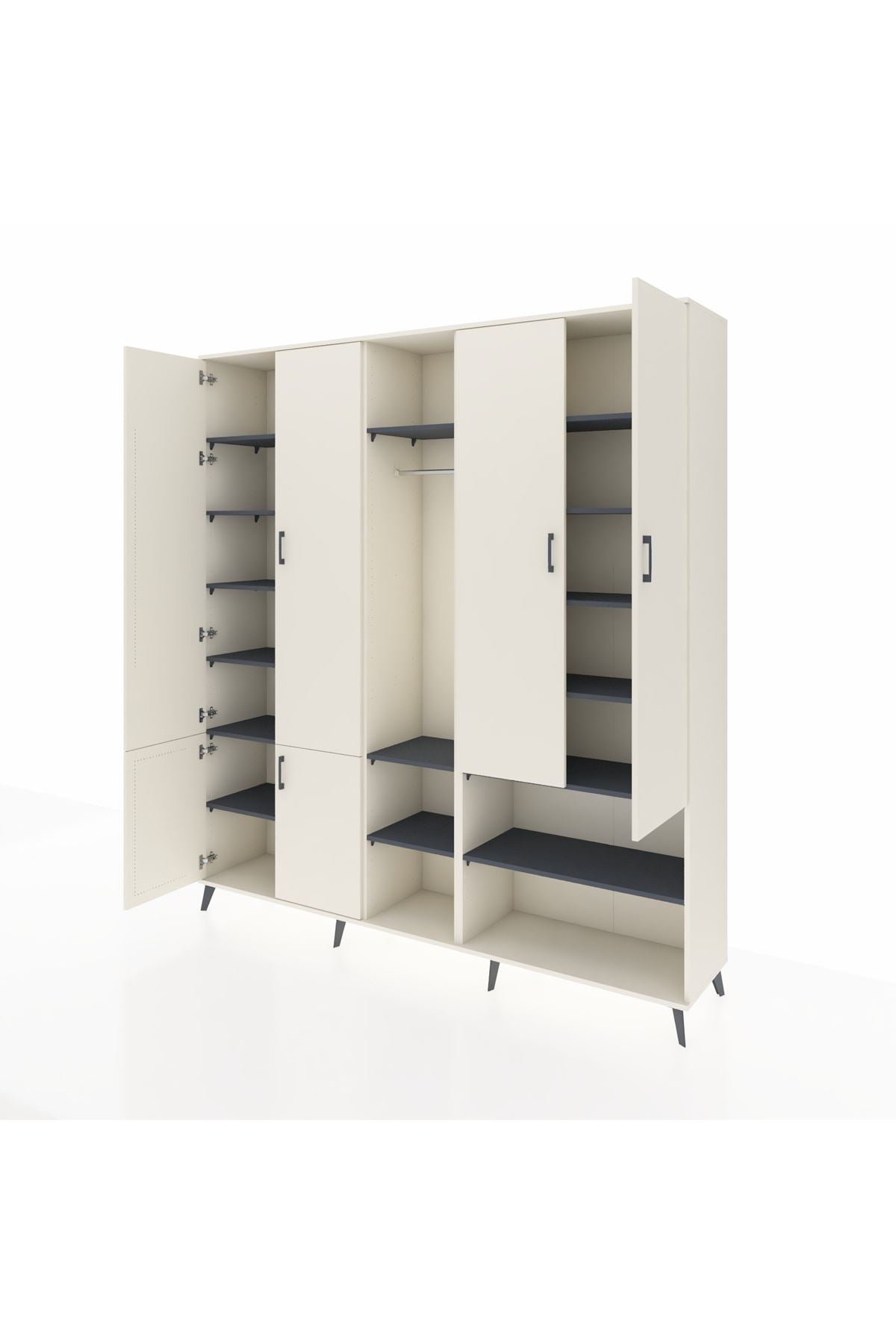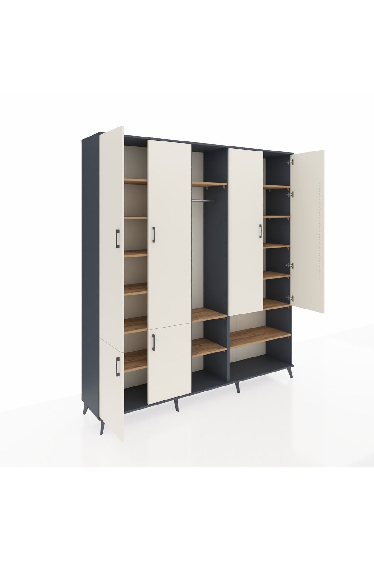 Giyinme odanızda tam bir düzen sağlayacak olan bu dolap, ayakkabılarınızdan aksesuarlarınıza kadar her şeyi organize etmenize olanak tanır. Şık ve fonksiyonel tasarımıyla giyinme odanızın atmosferini zenginleştirir.