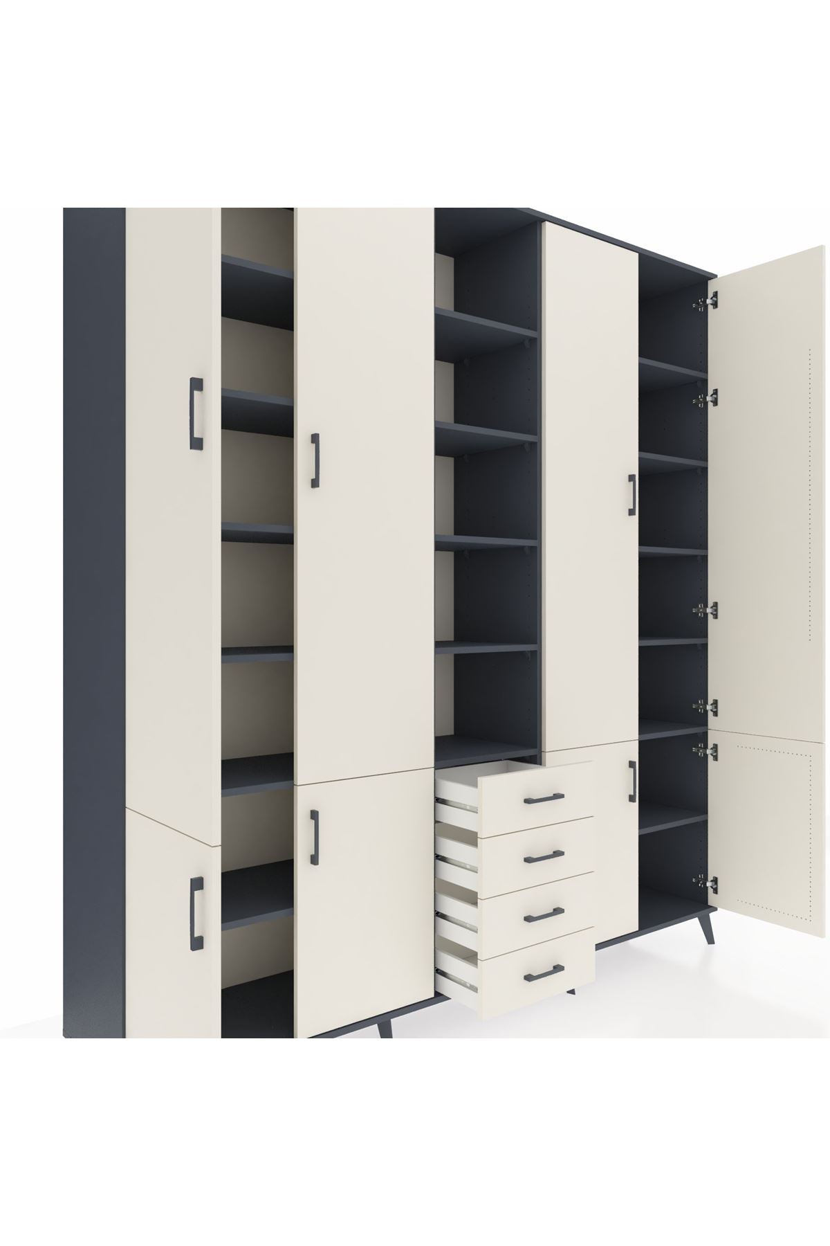 📌 Hyperion Dolap 17 Raflı 4 Çekmeceli 8 Kapaklı 220x44x243