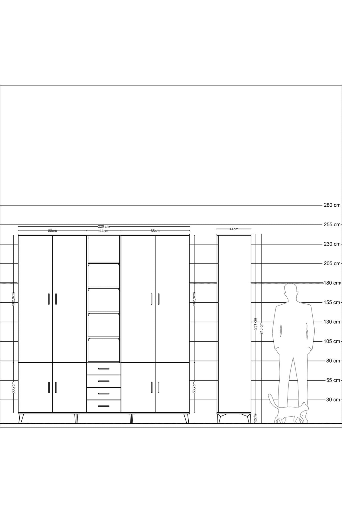 Hyperion Dolap 17 Raflı 4 Çekmeceli 8 Kapaklı 220x44x243