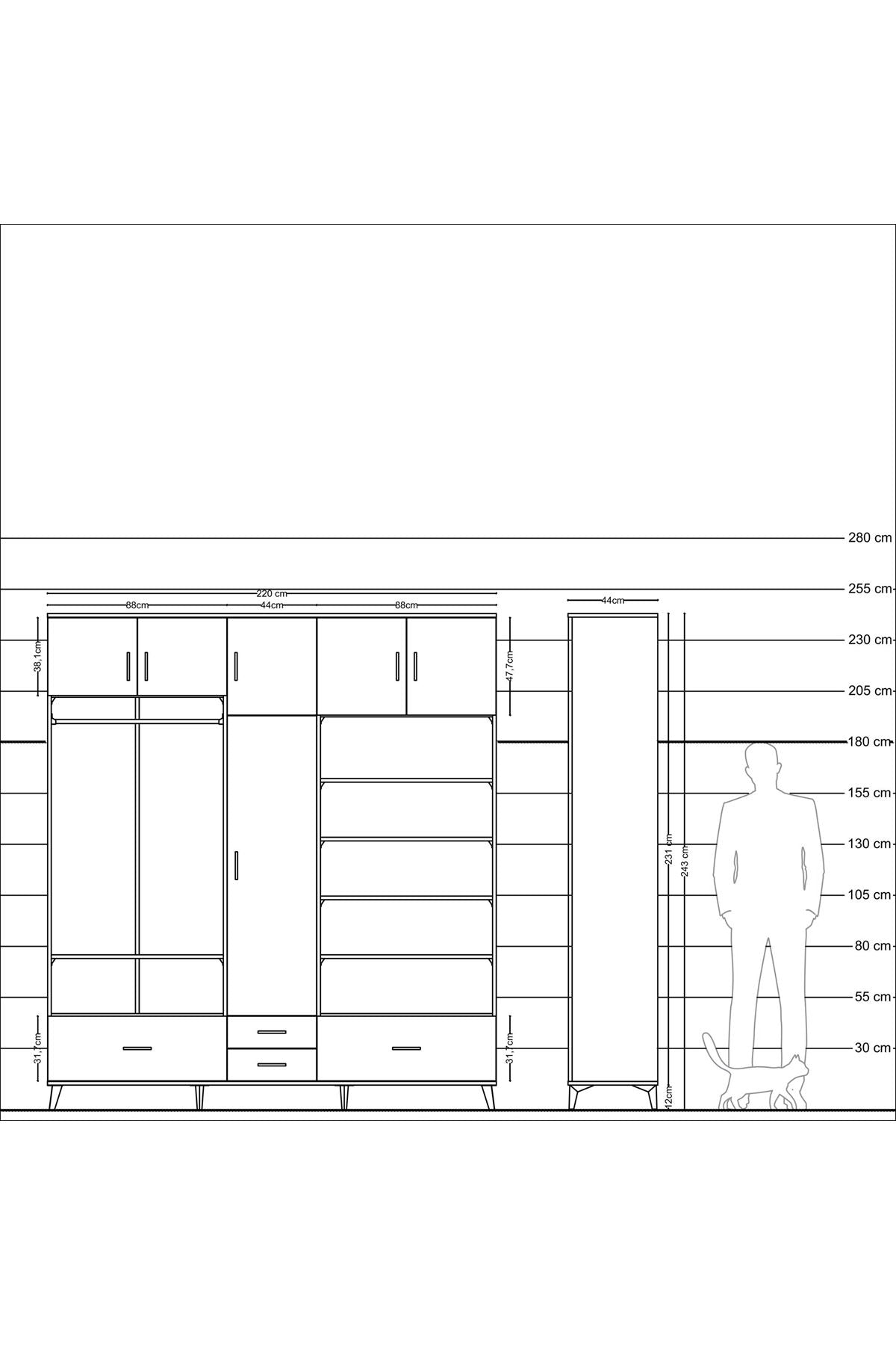 Hyperion Dolap 18 Raflı 4 Çekmeceli Tek Askılı 220x44x243