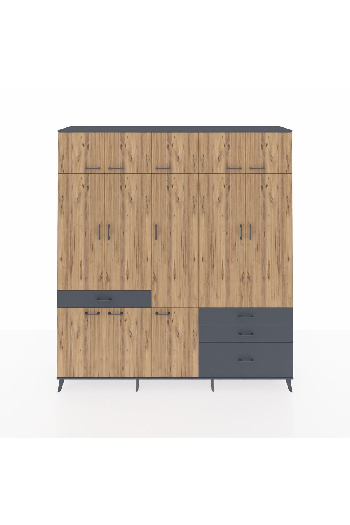 Hyperion Dolap 8 Raflı 4 Çekmeceli 3 Askılı 220x44x243 Antrasit-Çam/Antrasit