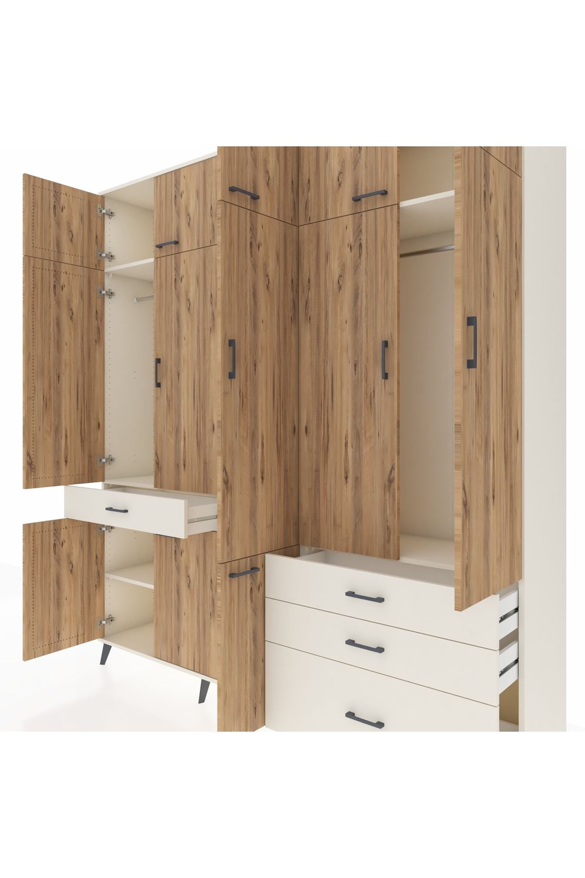 Hyperion Dolap 8 Raflı 4 Çekmeceli 3 Askılı 220x44x243 Aytaşı-Çam/Aytaşı