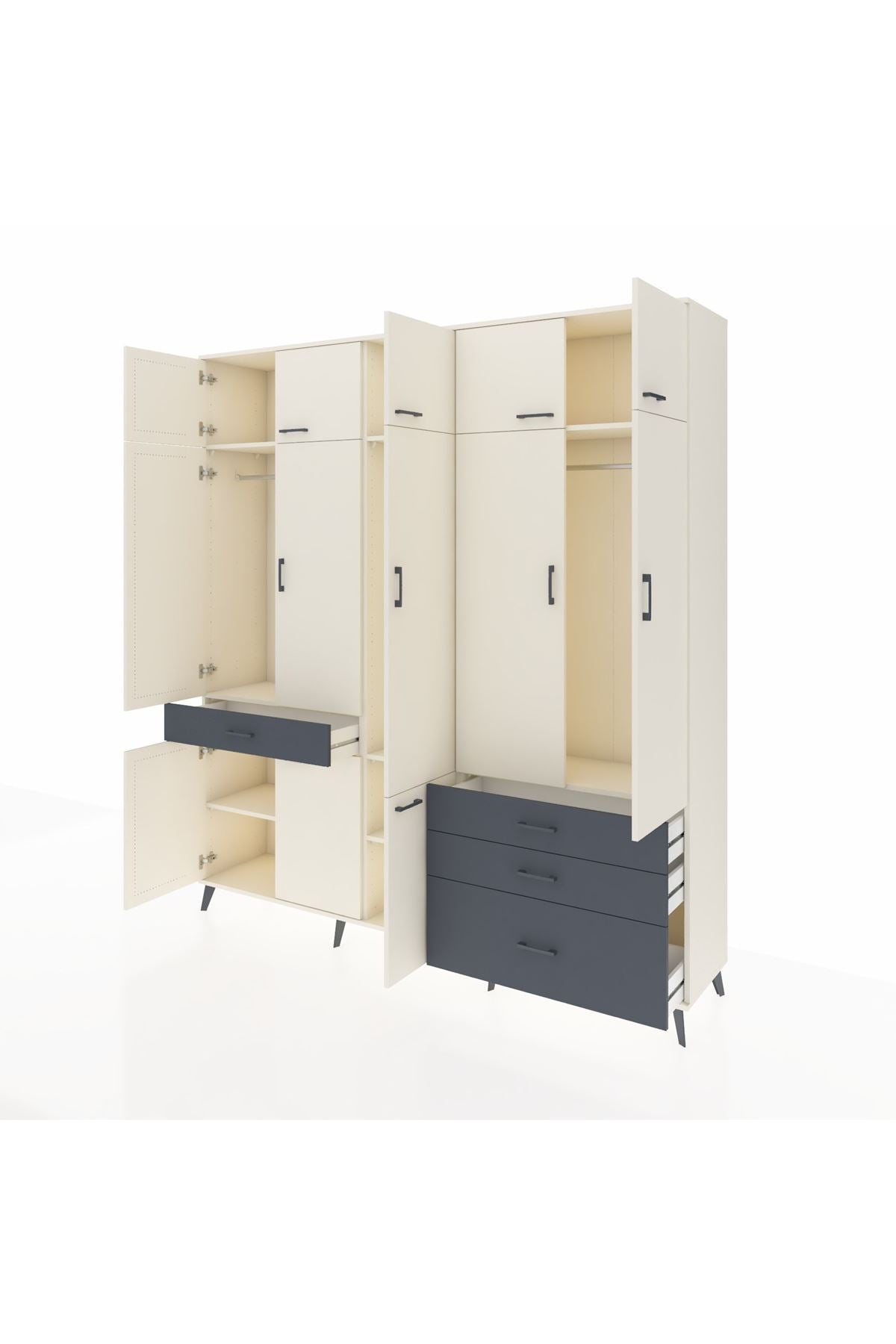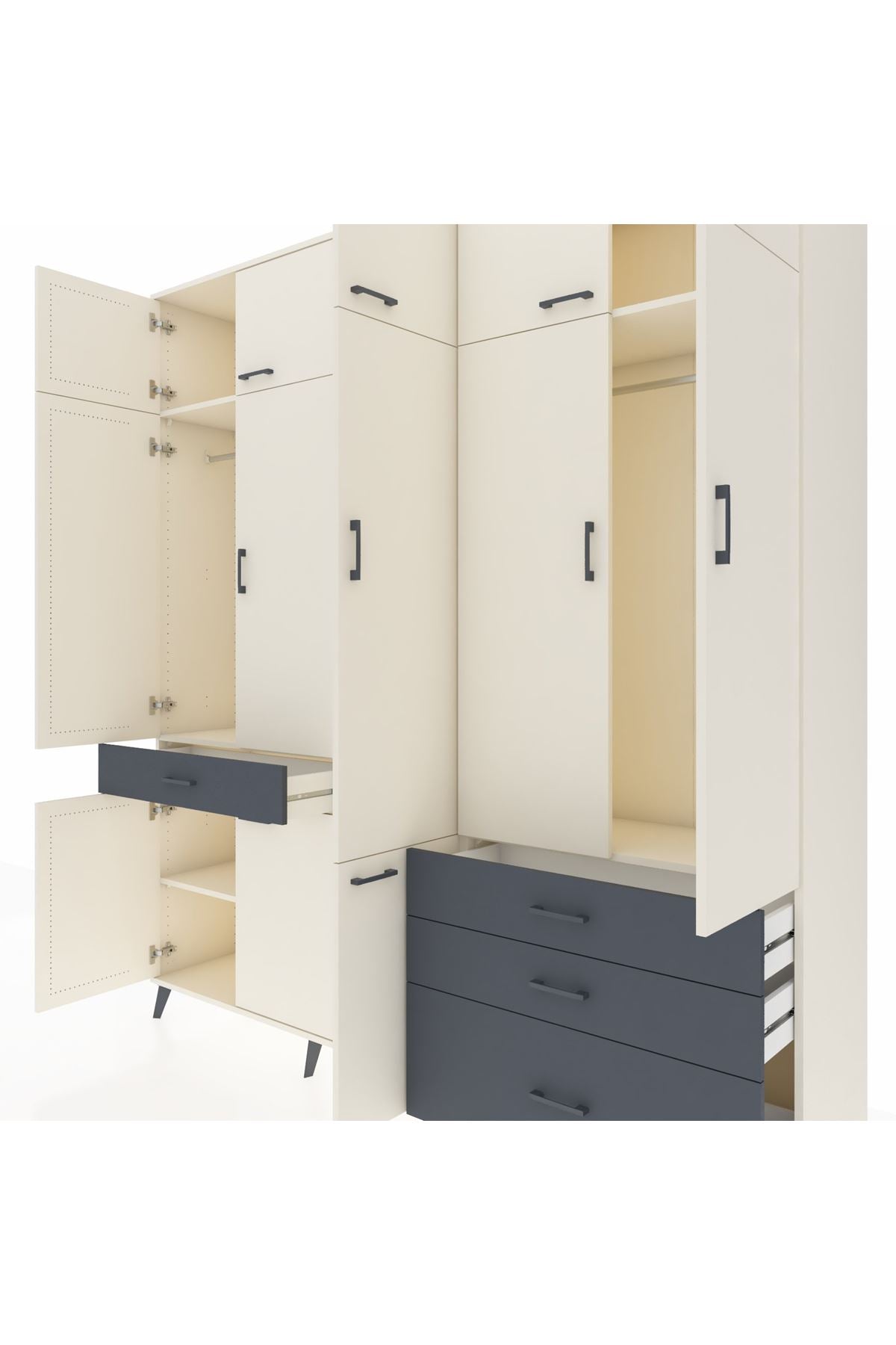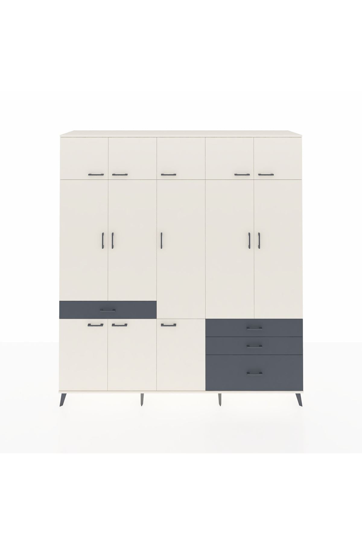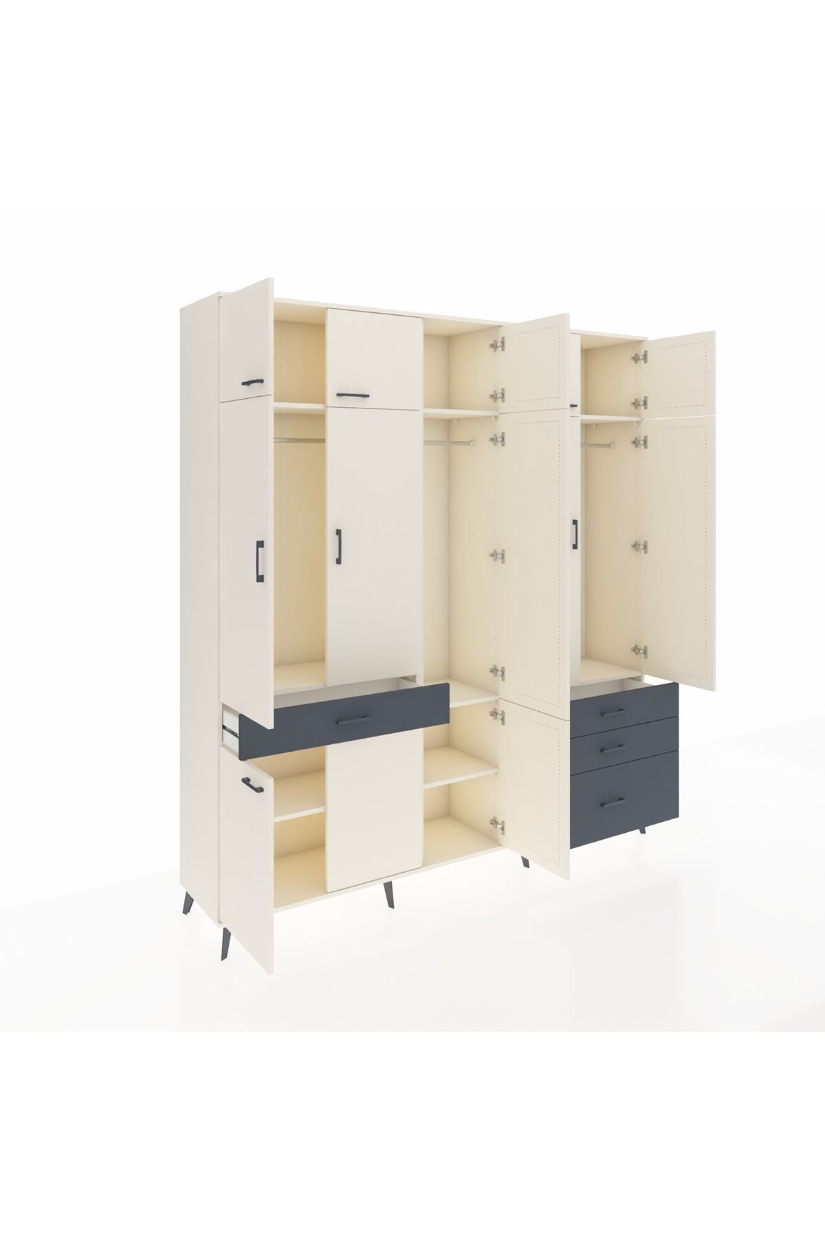 Hyperion Dolap 8 Raflı 4 Çekmeceli 3 Askılı 220x44x243 Aytaşı-Aytaşı/Antrasit